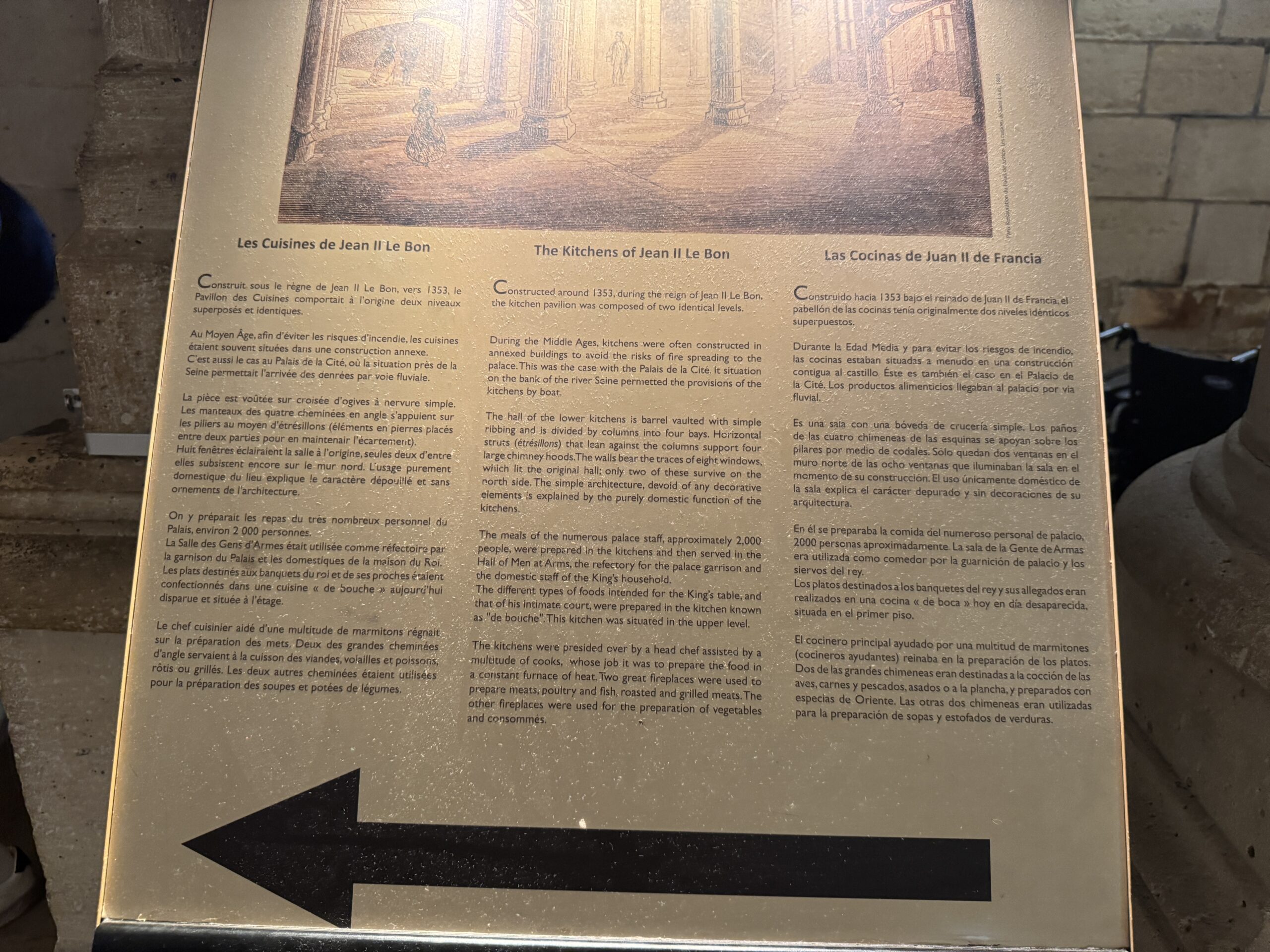 В Средние века, чтобы избежать пожара, кухни часто располагались в здании, примыкавшем к замку. Так было и во Дворце Сите. Продукты питания доставлялись во дворец по реке.