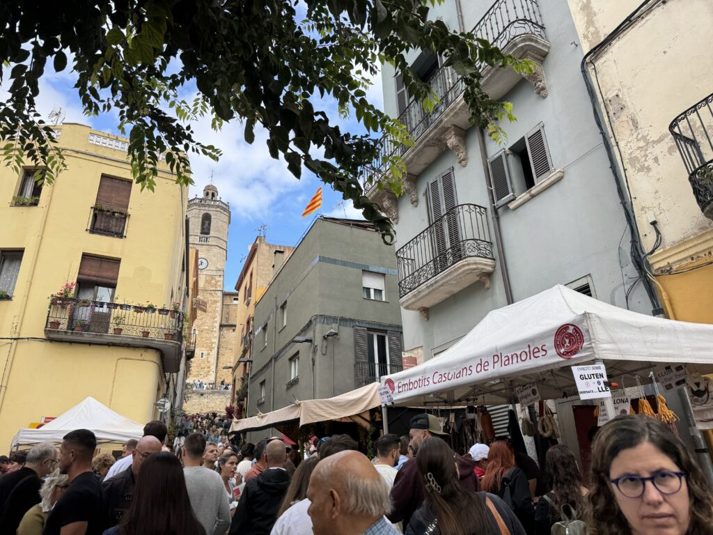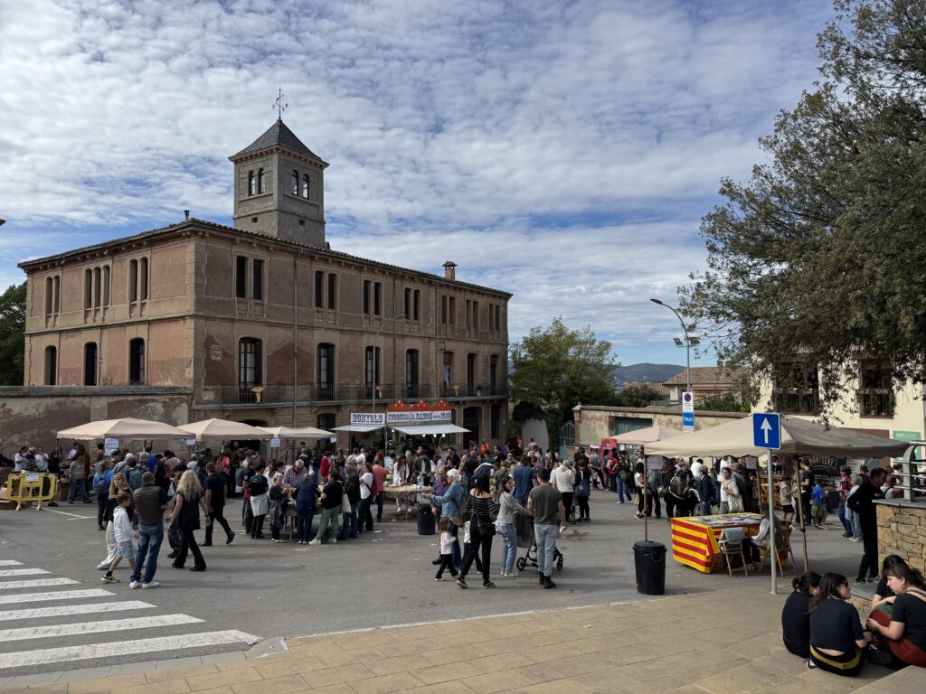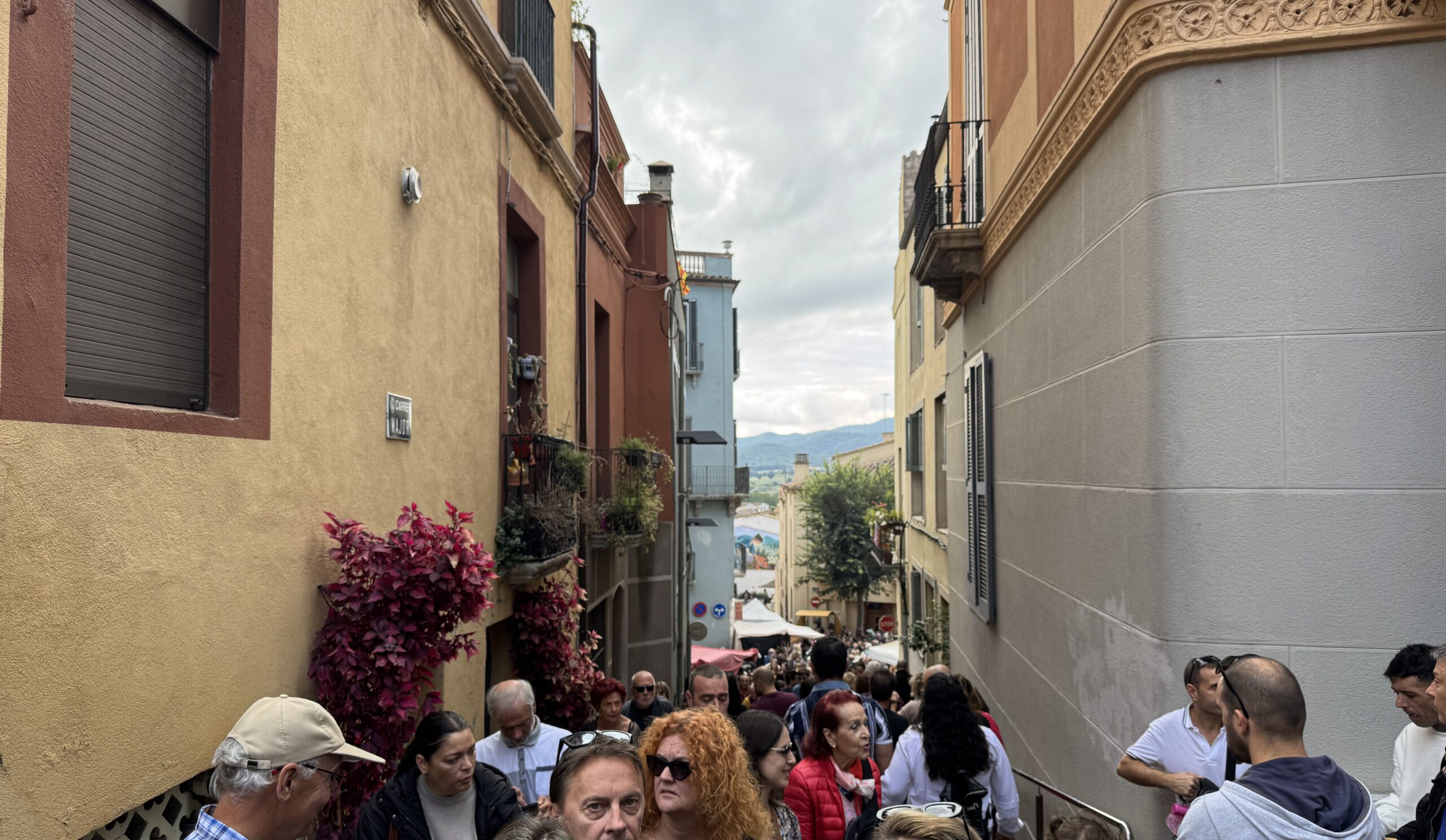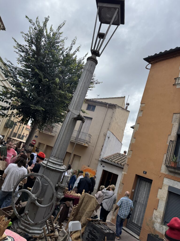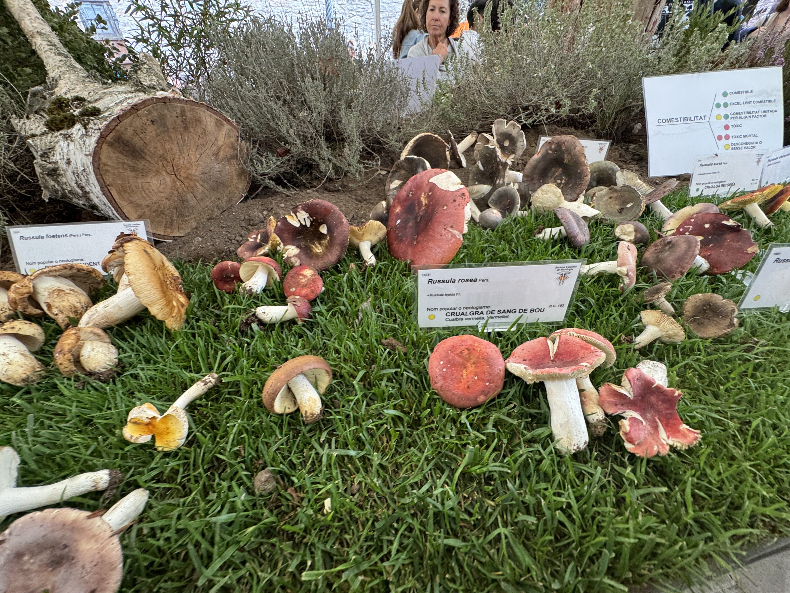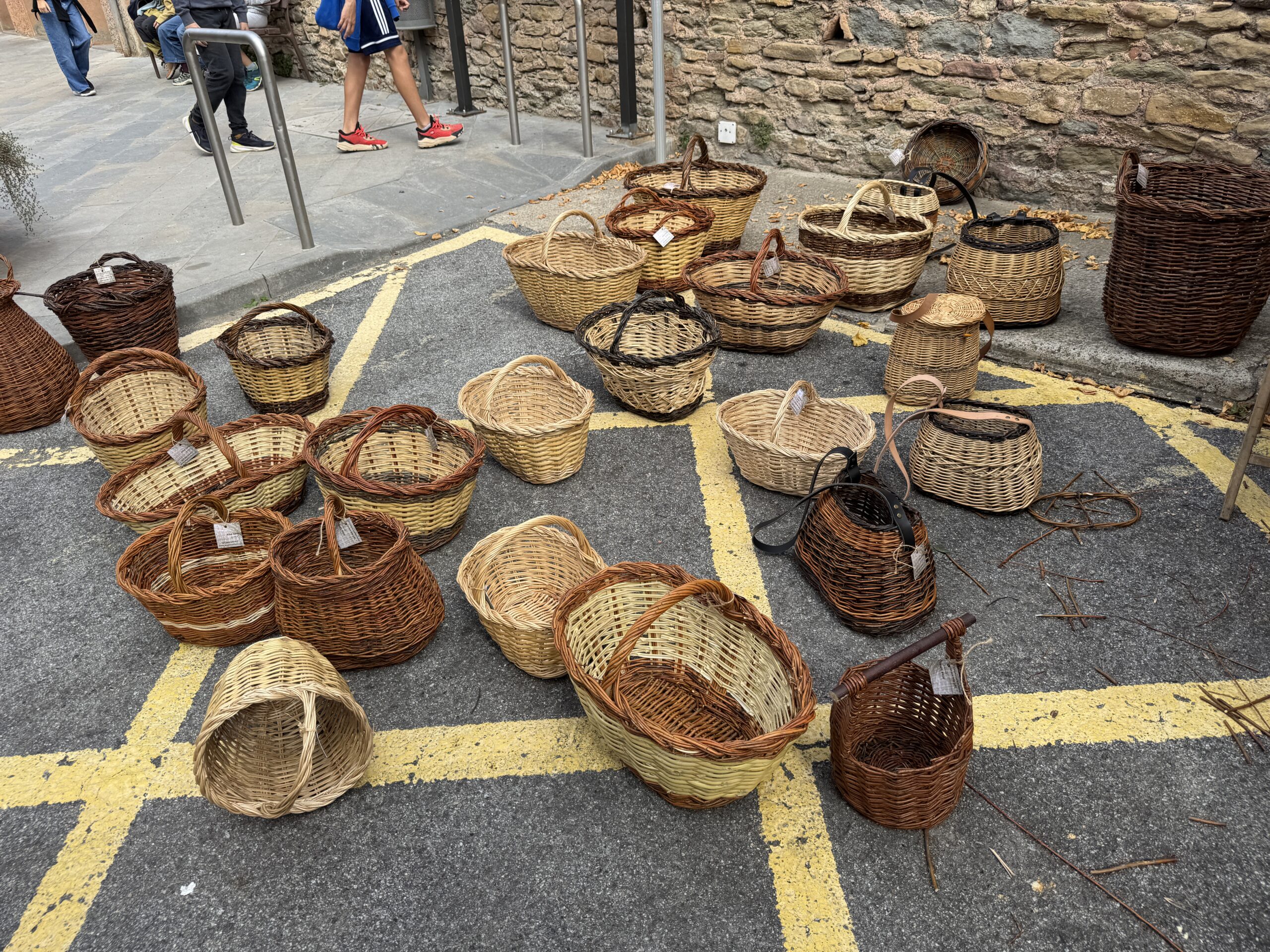 На грибной фестиваль в Сева мы едем каждый год, до остальных добираемся очень редко — нужна машина. И в этот раз мы решили начать с Fira del Bolet de Llagostera 2025. И нам не понравилось буквально с первых мгновений. Если в Сева продумана большая парковка и стоят регулировщики, то в Льягостера просто автомобильный кошмар. Огромное количество машин ездит по одной и той же траектории в надежде найти место для парковки. Мы нашли почти за городом и шли пешком. С толпами других людей. Это было вторым минусом. Потоки людей не организованы разумно, ярмарка распланирована абсурдно. Назвать это грибным мероприятием можно с трудом. Выставка в мэрии настолько скромна и так бездарно сделана, что я постаралась как можно скорее её покинуть. Грибы на продажу были совсем не лучшего качества. Другие продукты — помидоры, спаржа и цветы — не компенсировали дефицита хороших грибов и товаров, связанных с грибами. Мы залезли на башню-тюрьму, сделали круг по площади и начали протискиваться обратно к выходу из города, потому что всё это было страшно неприятно. Мы поспешили в Сева.