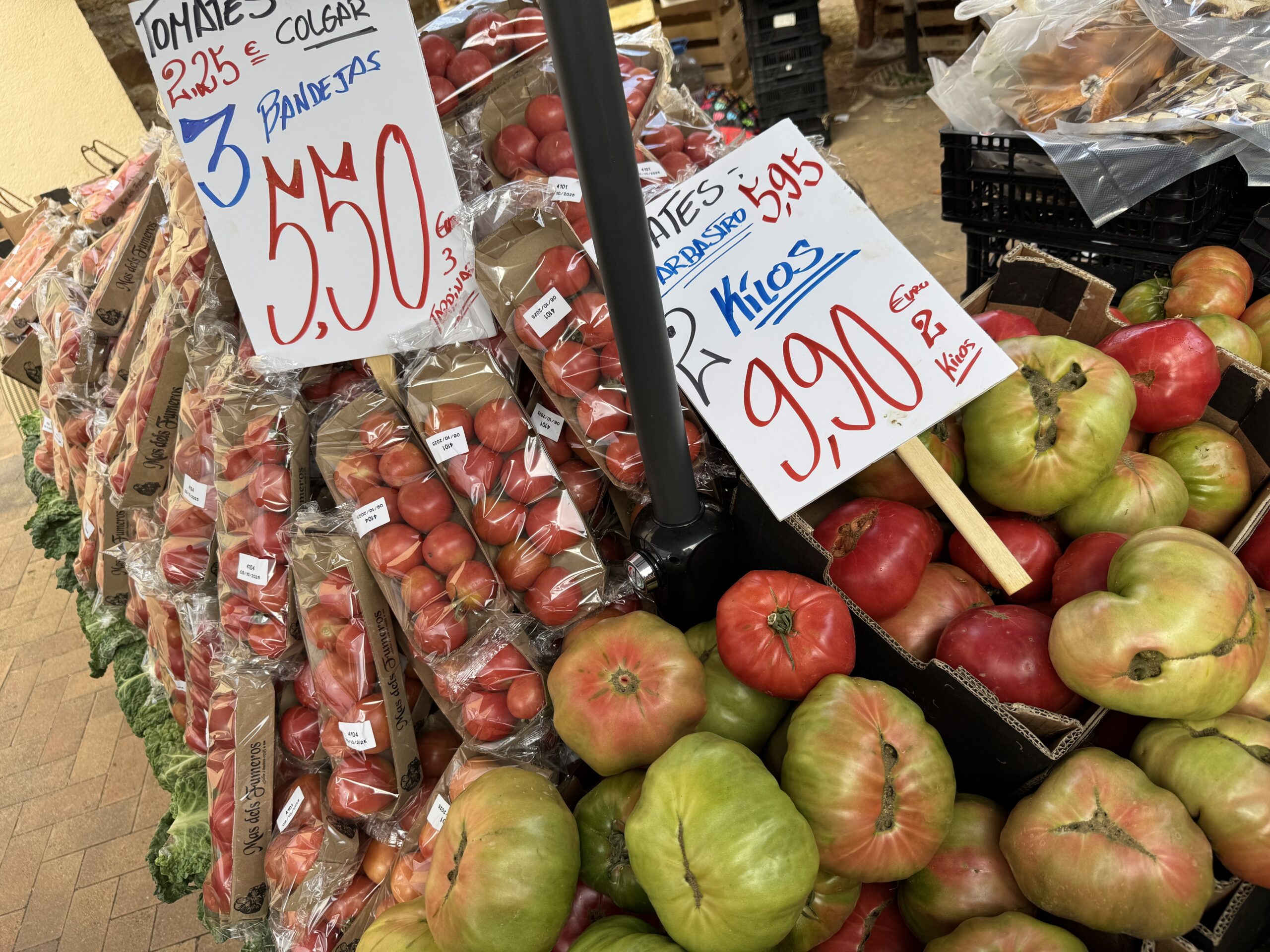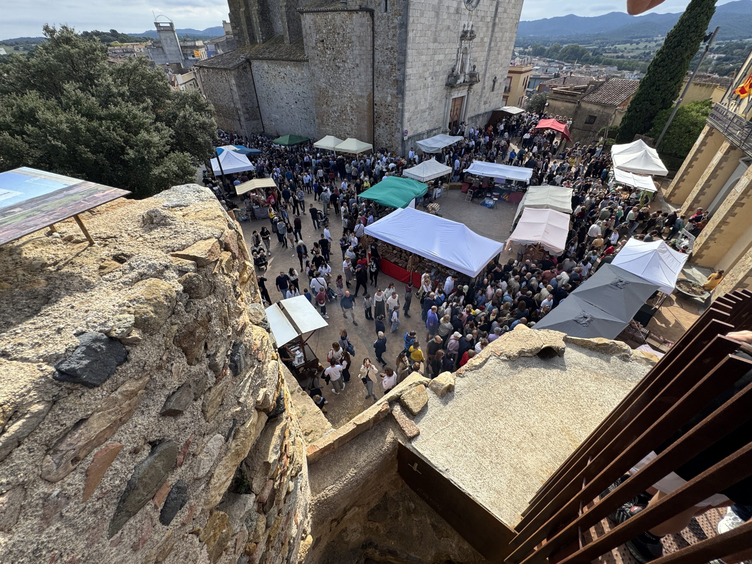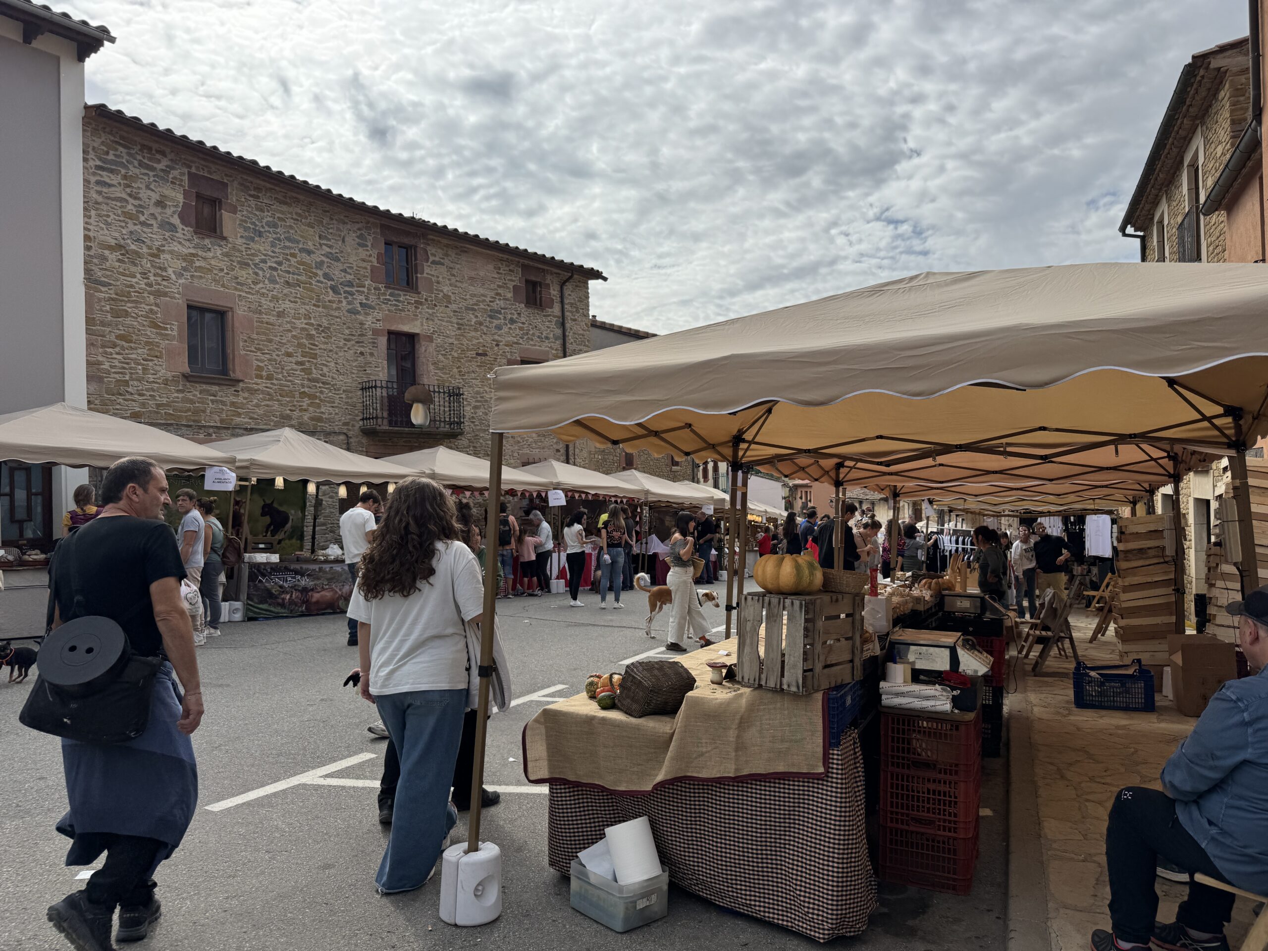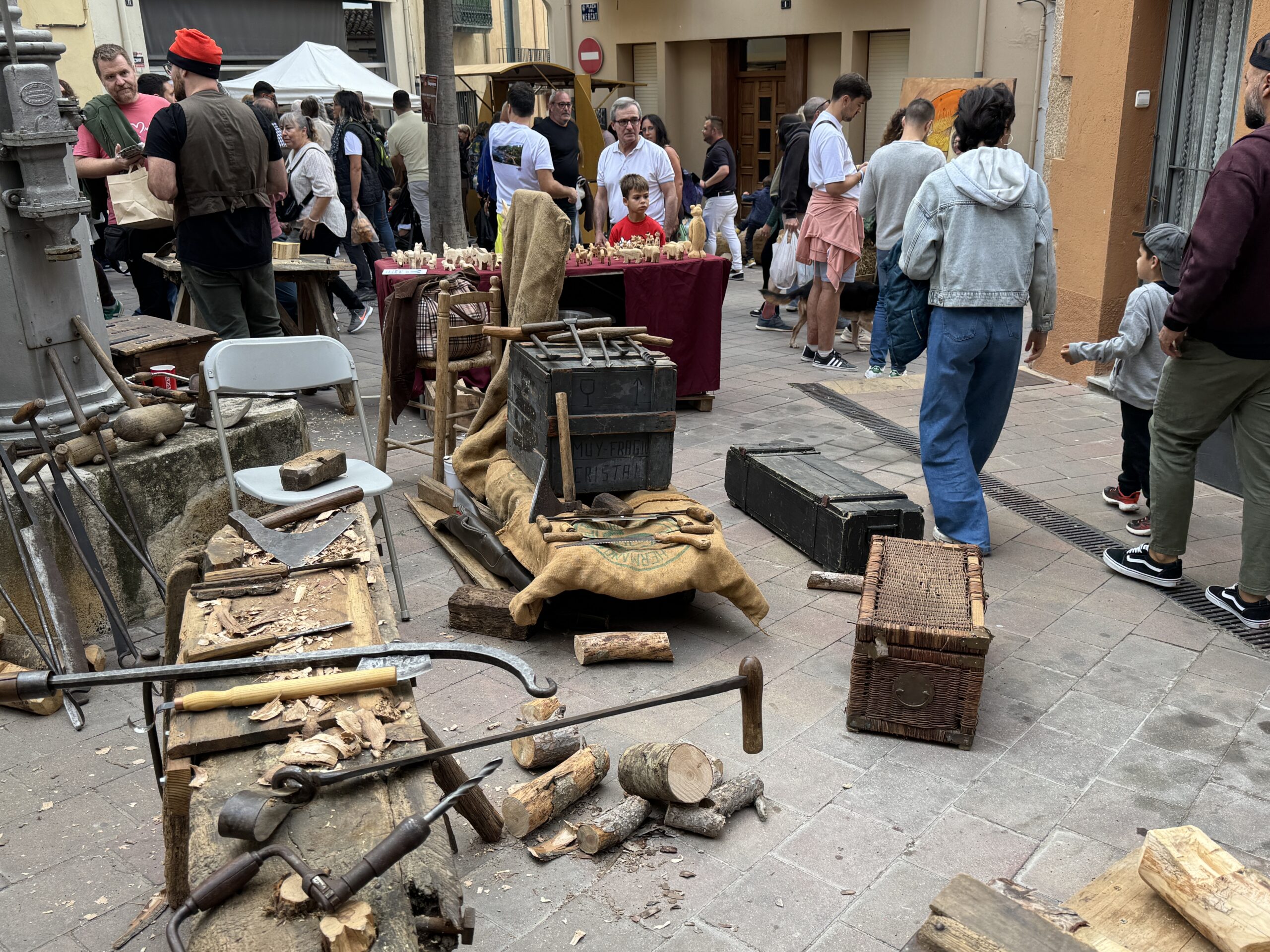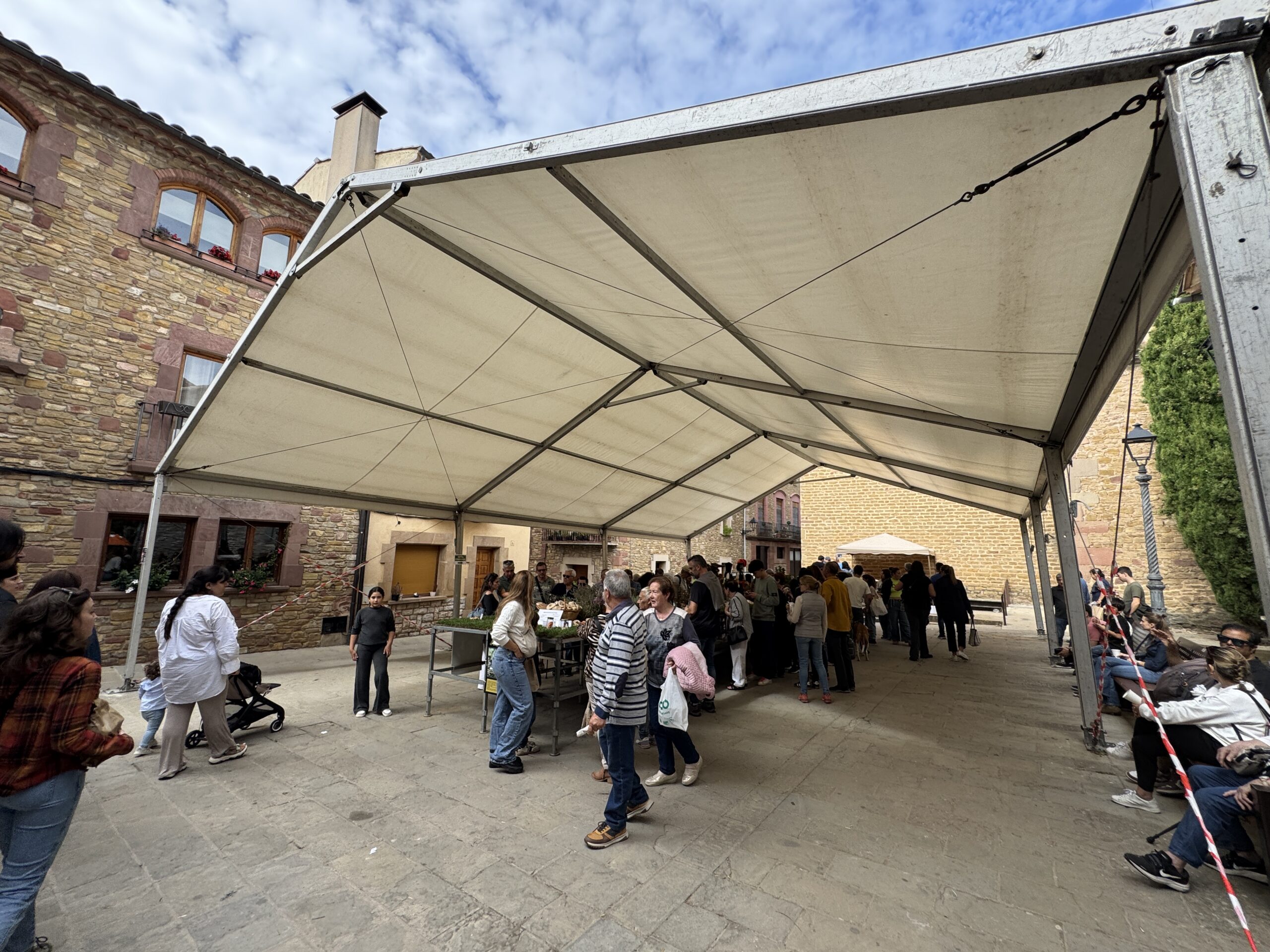 На грибной фестиваль в Сева мы едем каждый год, до остальных добираемся очень редко — нужна машина. И в этот раз мы решили начать с Fira del Bolet de Llagostera 2025. И нам не понравилось буквально с первых мгновений. Если в Сева продумана большая парковка и стоят регулировщики, то в Льягостера просто автомобильный кошмар. Огромное количество машин ездит по одной и той же траектории в надежде найти место для парковки. Мы нашли почти за городом и шли пешком. С толпами других людей. Это было вторым минусом. Потоки людей не организованы разумно, ярмарка распланирована абсурдно. Назвать это грибным мероприятием можно с трудом. Выставка в мэрии настолько скромна и так бездарно сделана, что я постаралась как можно скорее её покинуть. Грибы на продажу были совсем не лучшего качества. Другие продукты — помидоры, спаржа и цветы — не компенсировали дефицита хороших грибов и товаров, связанных с грибами. Мы залезли на башню-тюрьму, сделали круг по площади и начали протискиваться обратно к выходу из города, потому что всё это было страшно неприятно. Мы поспешили в Сева.