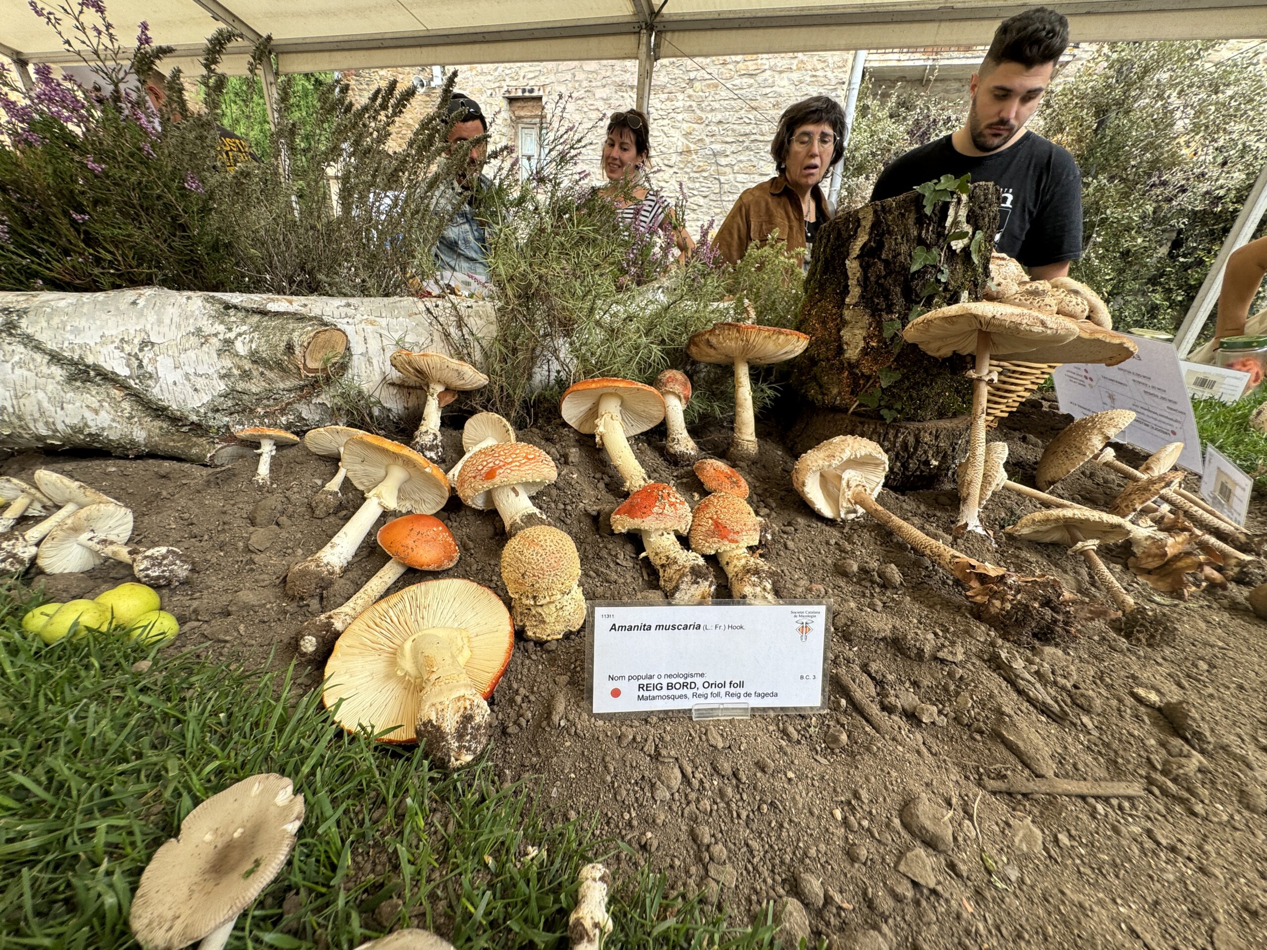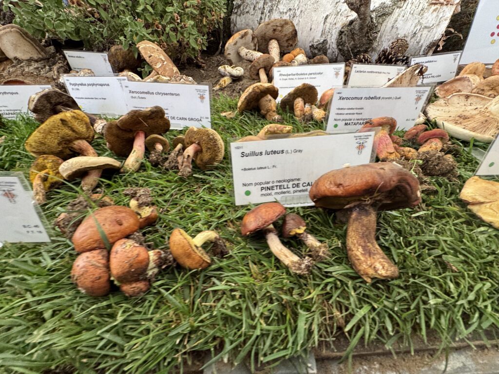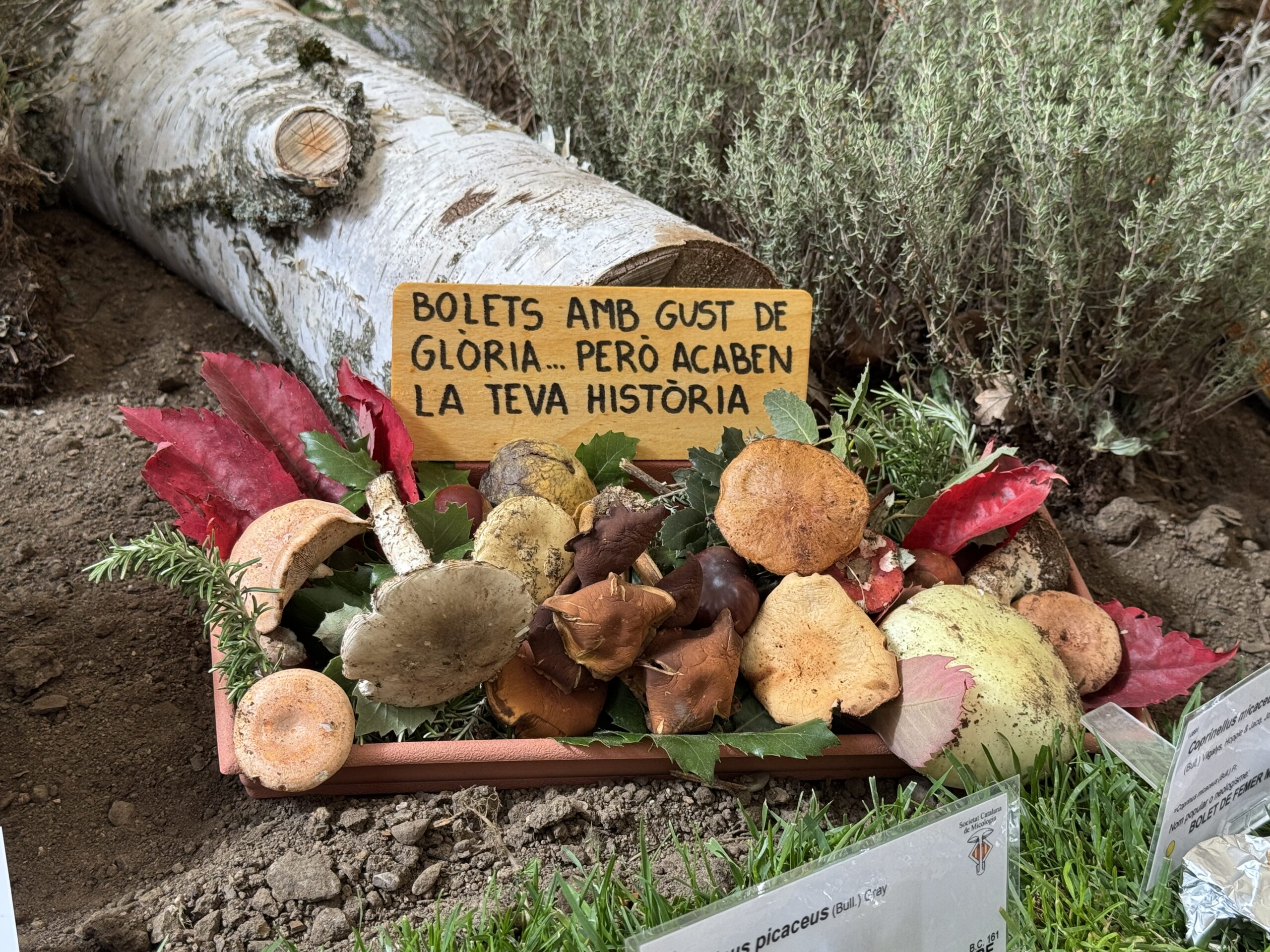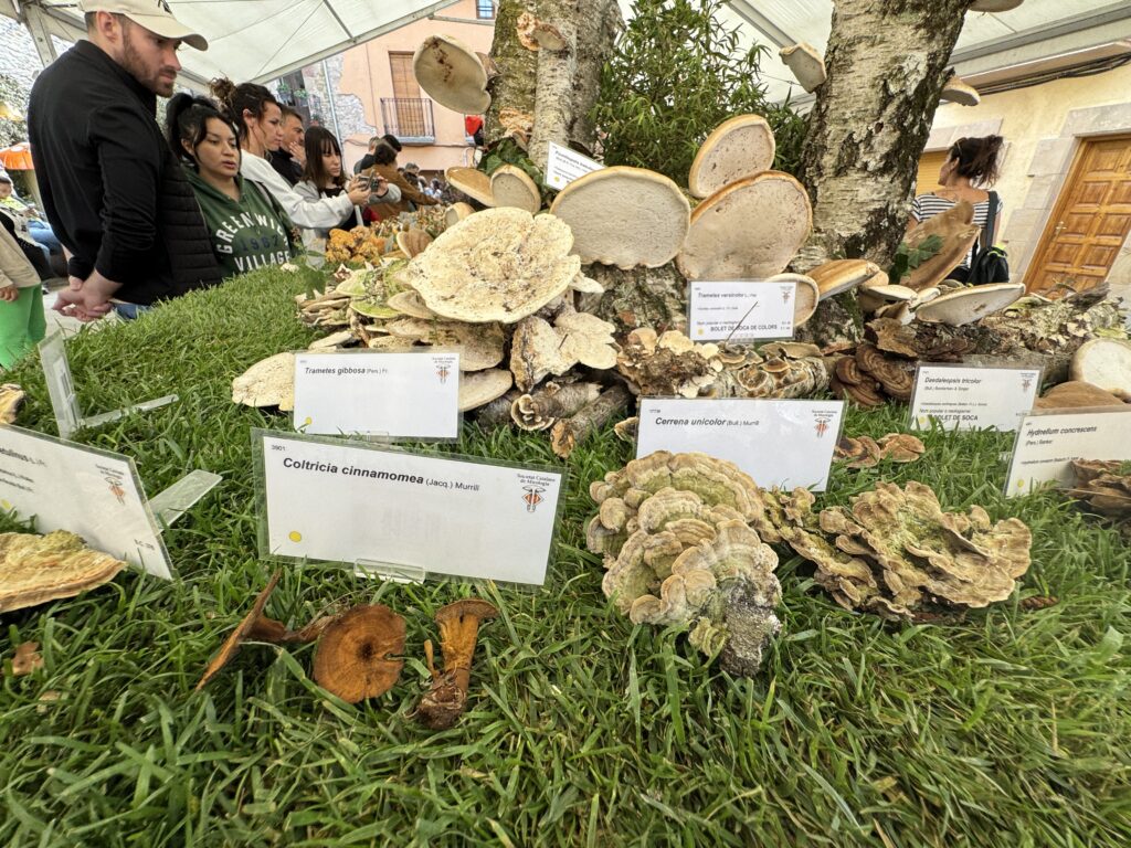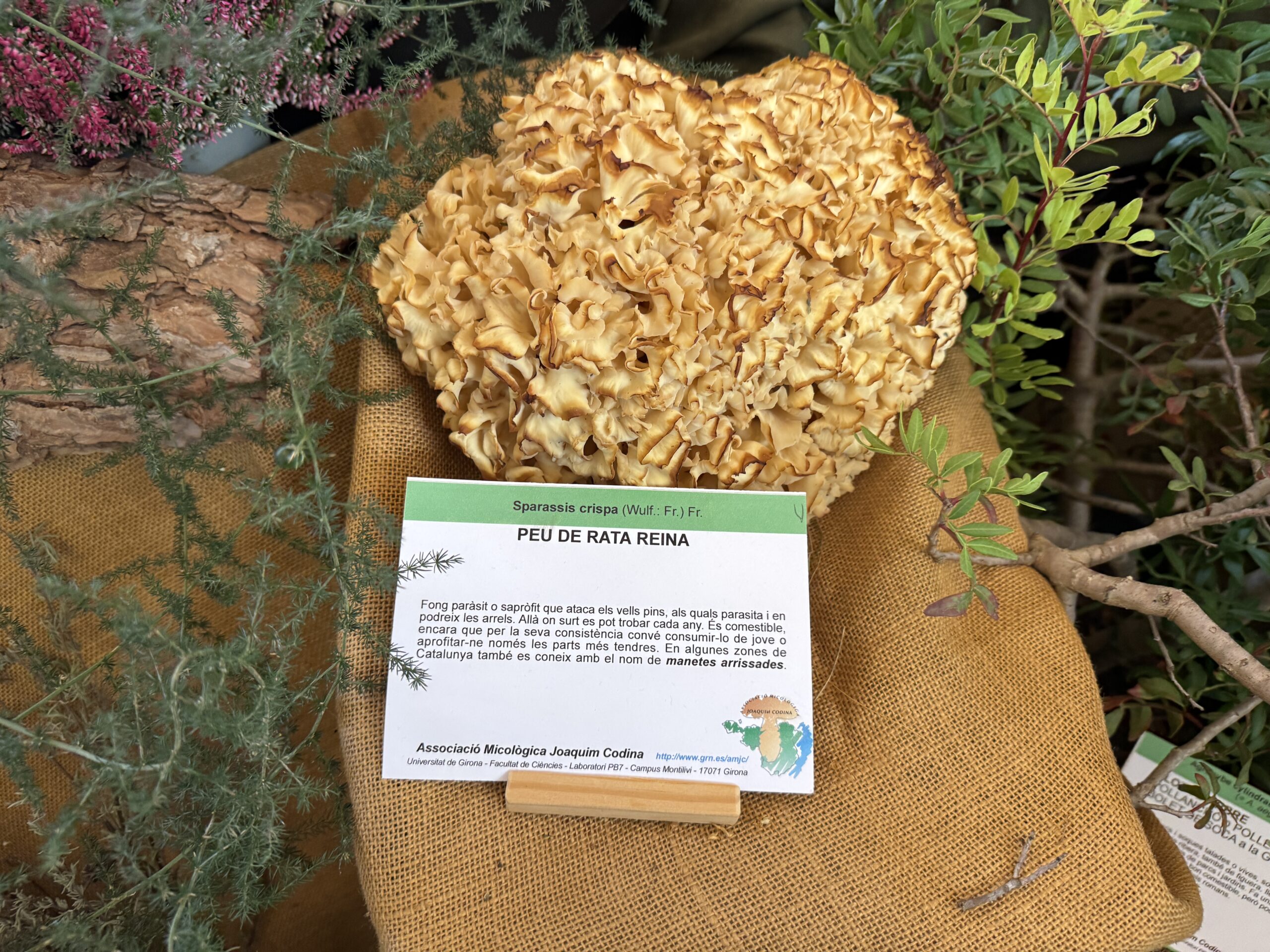 Когда мы добрались до Festa del Bolet de Seva 2025, там уже закончились основные массовые мероприятия. Гигантская грибная сковорода кормила последних жедающих. Но мы не претендовали на это блюдо — в сковороду грибы насыпают из ящиков, особо не перебирая — там и щепки, и всякий мусор. Из лесных грибов в этих ящиках только лисички. Плюс к ним продается в комплекте хлеб и вино, которые мы не едим. Мы прошли до хорошей грибной выставки и купили шиитаке с грибной фермы и варенье.
