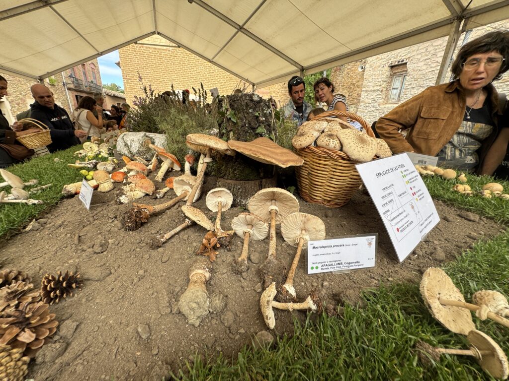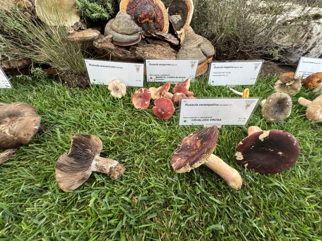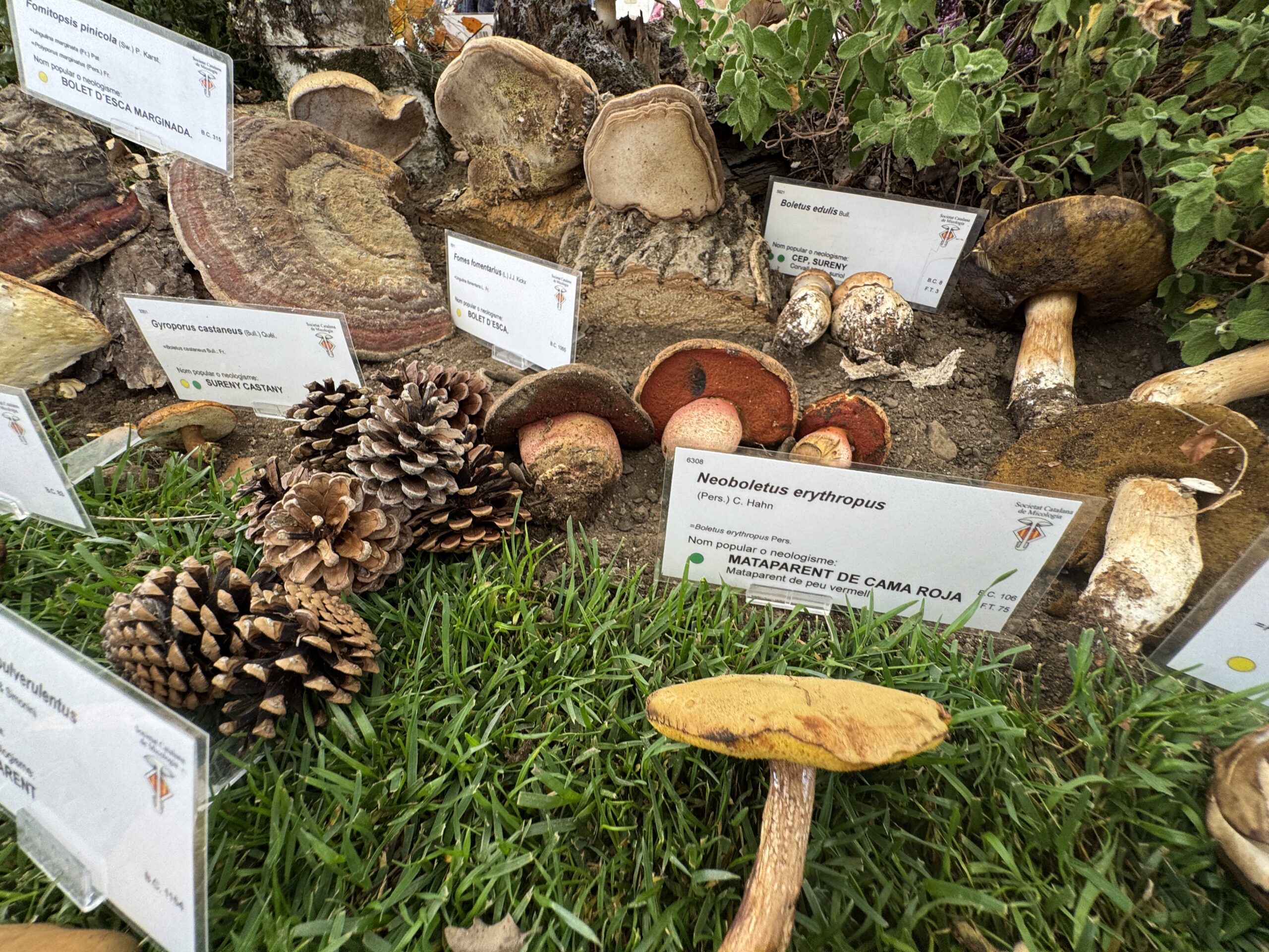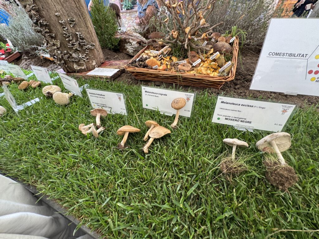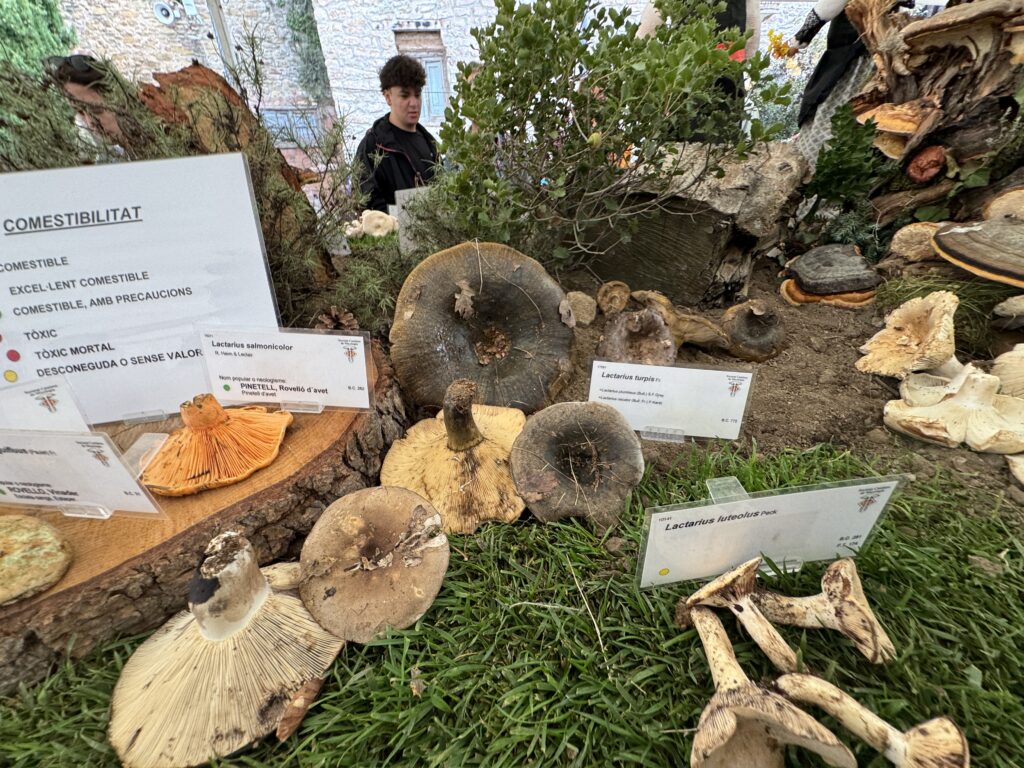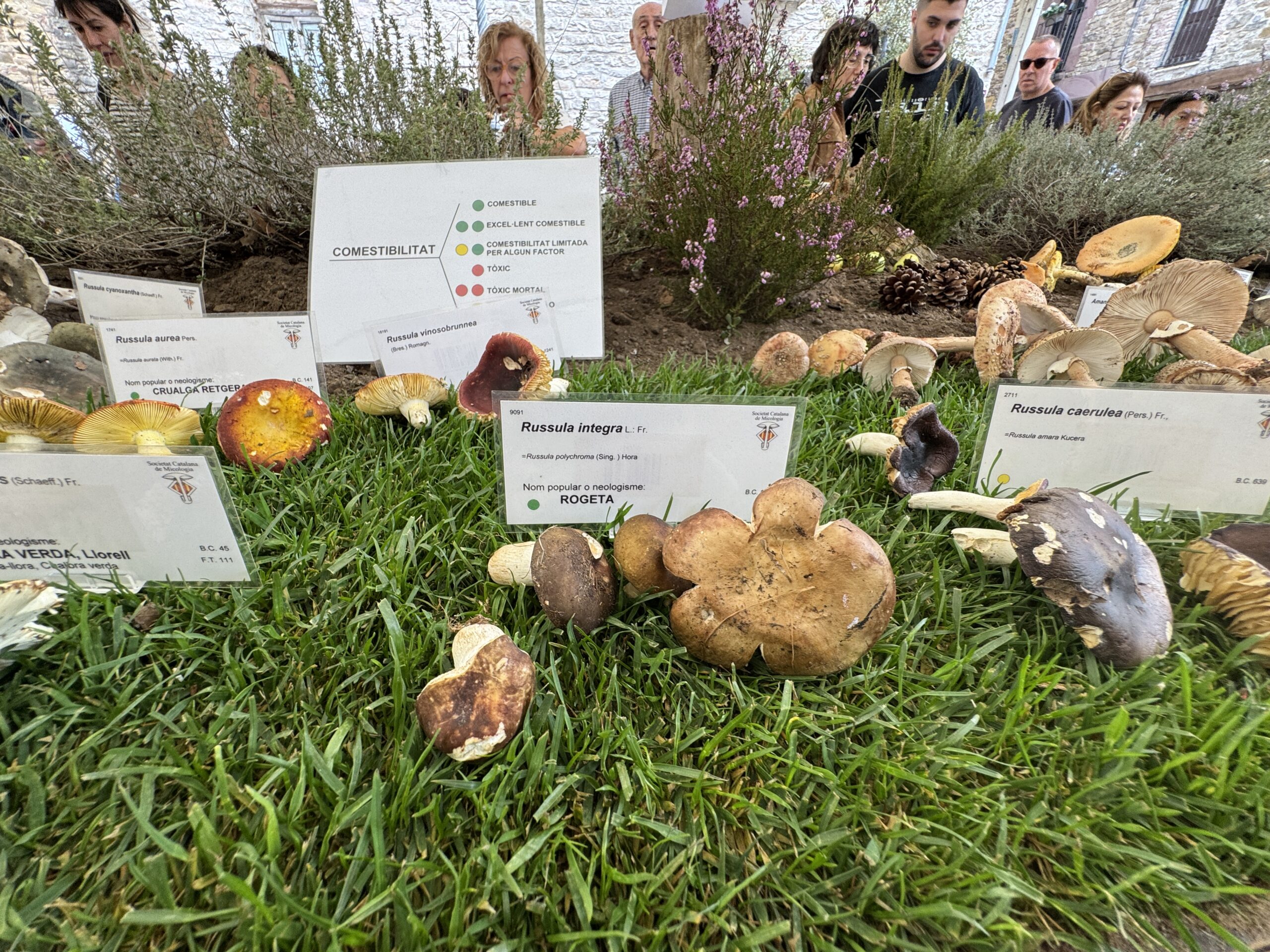 Когда мы добрались до Festa del Bolet de Seva 2025, там уже закончились основные массовые мероприятия. Гигантская грибная сковорода кормила последних жедающих. Но мы не претендовали на это блюдо — в сковороду грибы насыпают из ящиков, особо не перебирая — там и щепки, и всякий мусор. Из лесных грибов в этих ящиках только лисички. Плюс к ним продается в комплекте хлеб и вино, которые мы не едим. Мы прошли до хорошей грибной выставки и купили шиитаке с грибной фермы и варенье.