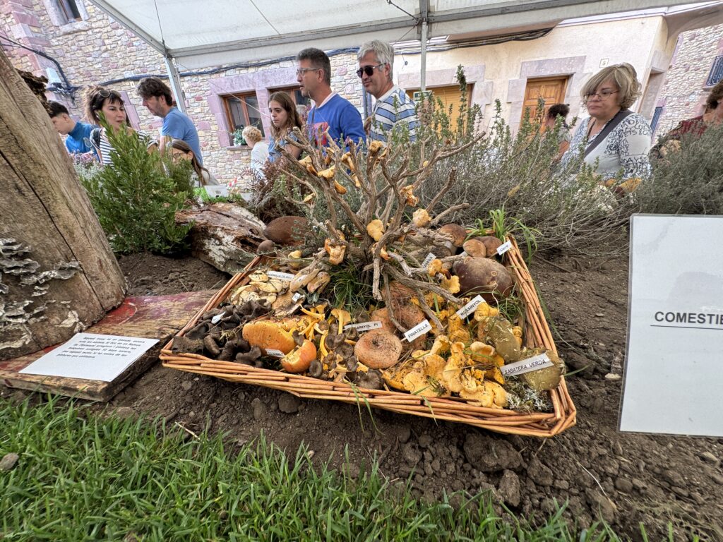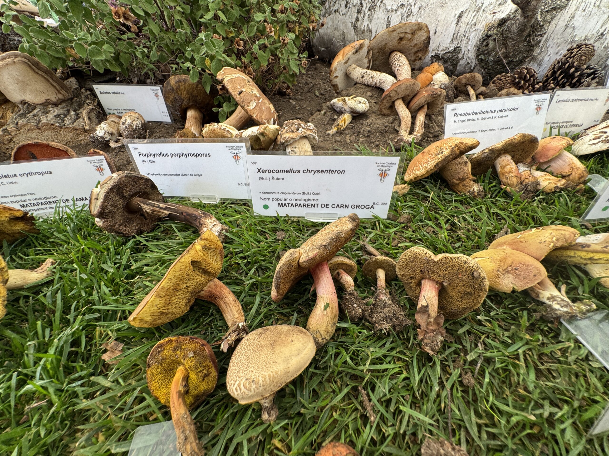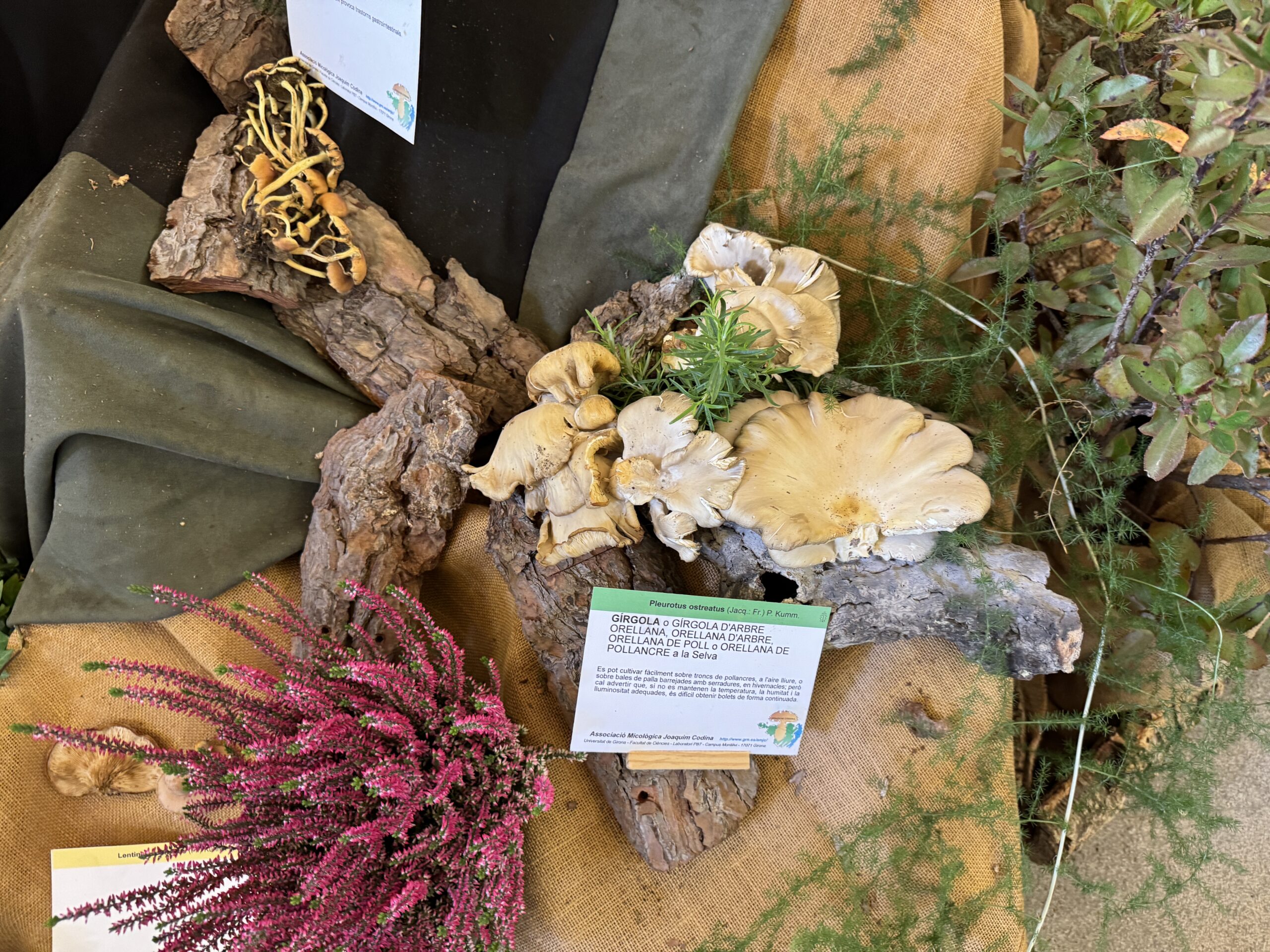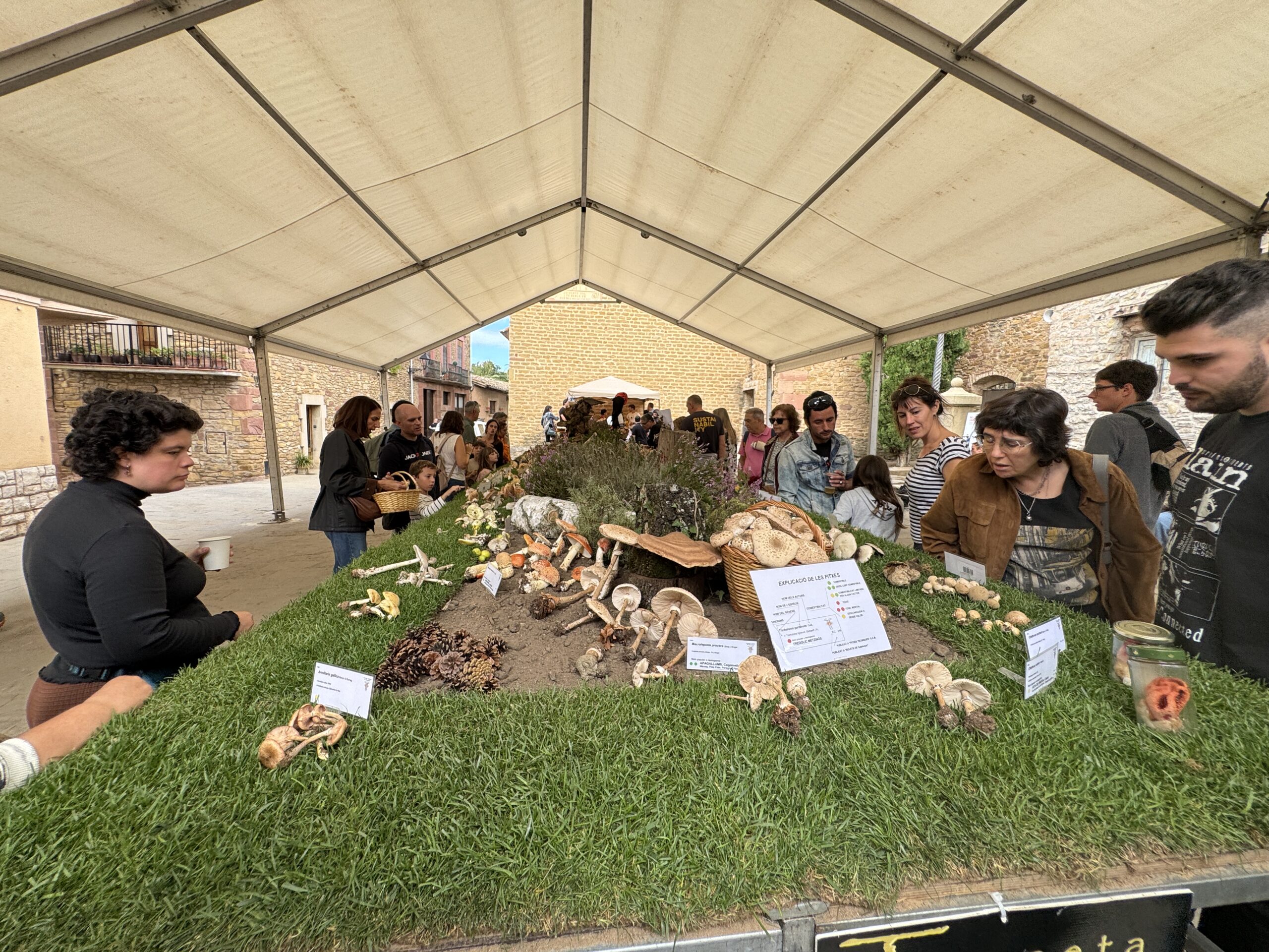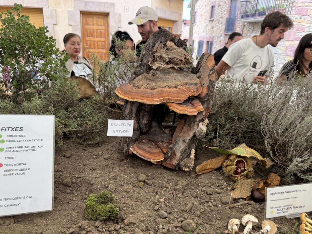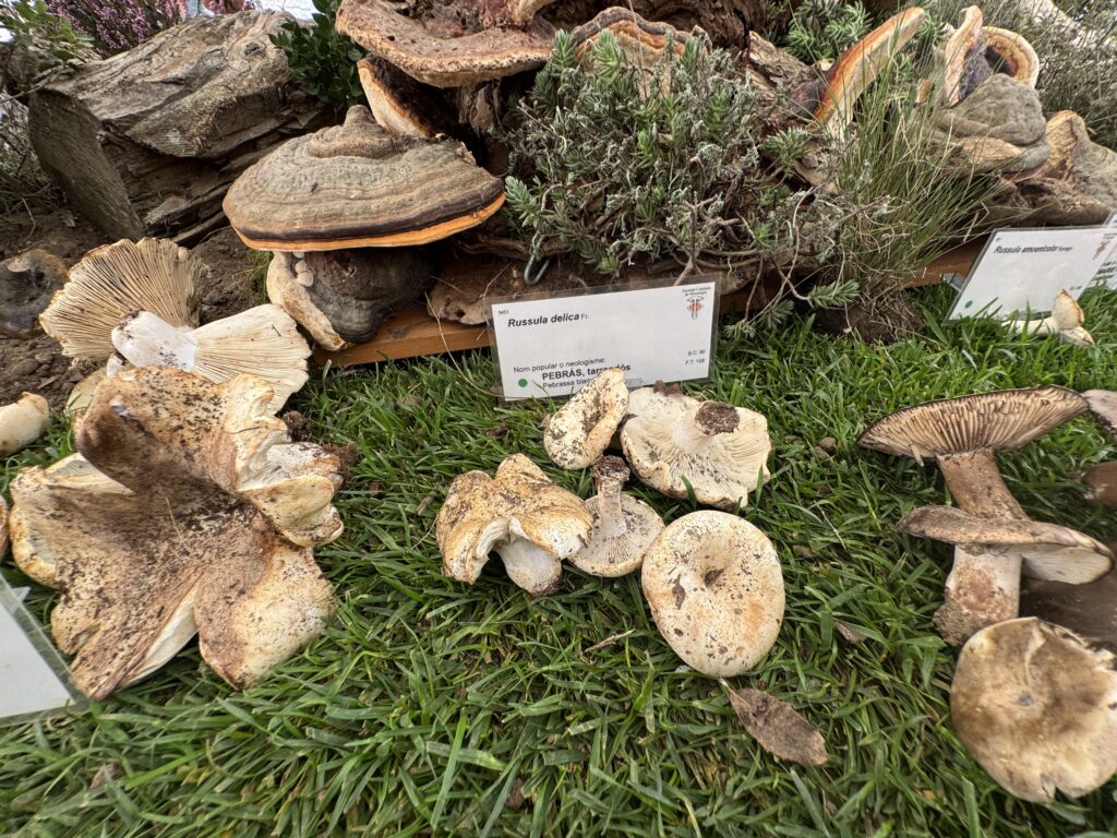 Когда мы добрались до Festa del Bolet de Seva 2025, там уже закончились основные массовые мероприятия. Гигантская грибная сковорода кормила последних жедающих. Но мы не претендовали на это блюдо — в сковороду грибы насыпают из ящиков, особо не перебирая — там и щепки, и всякий мусор. Из лесных грибов в этих ящиках только лисички. Плюс к ним продается в комплекте хлеб и вино, которые мы не едим. Мы прошли до хорошей грибной выставки и купили шиитаке с грибной фермы и варенье.