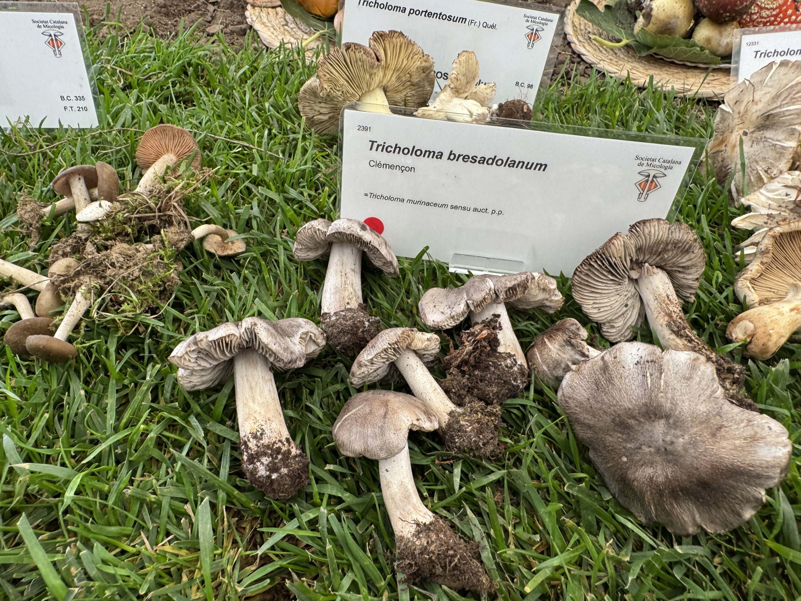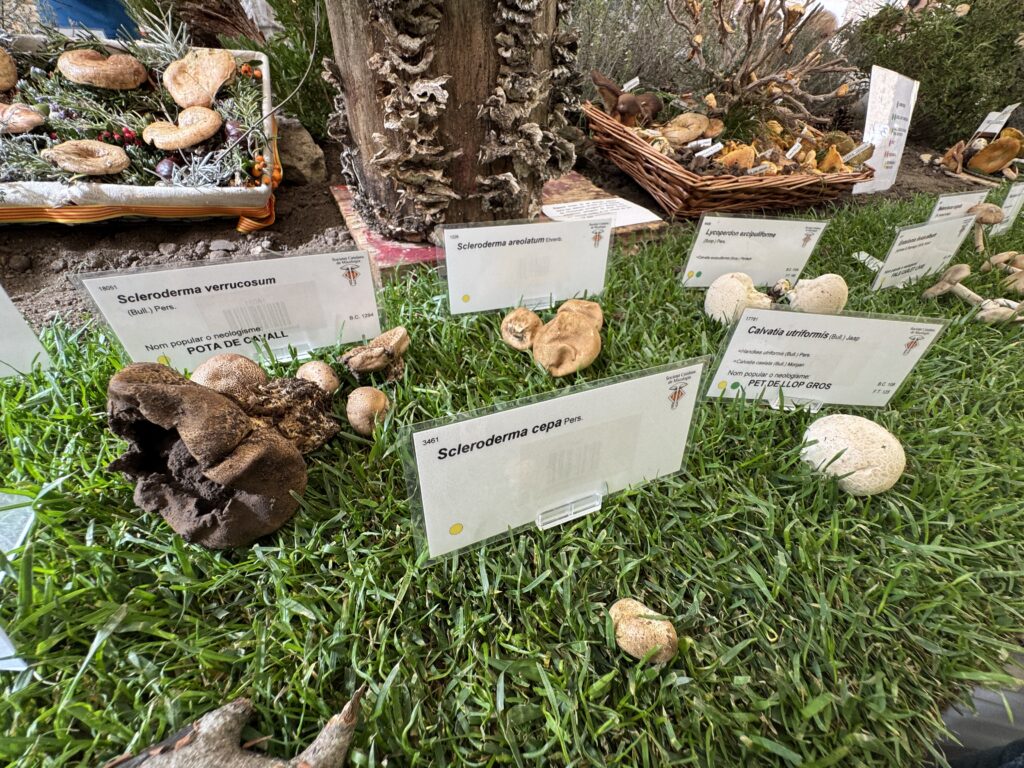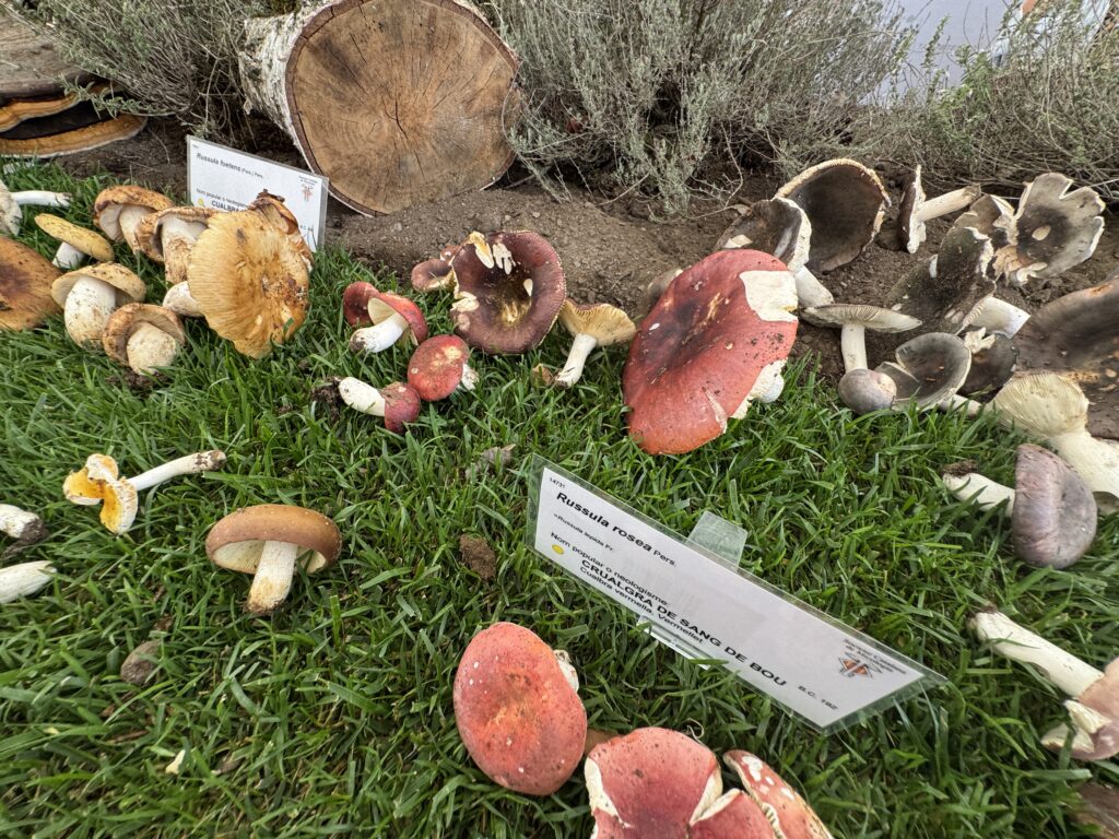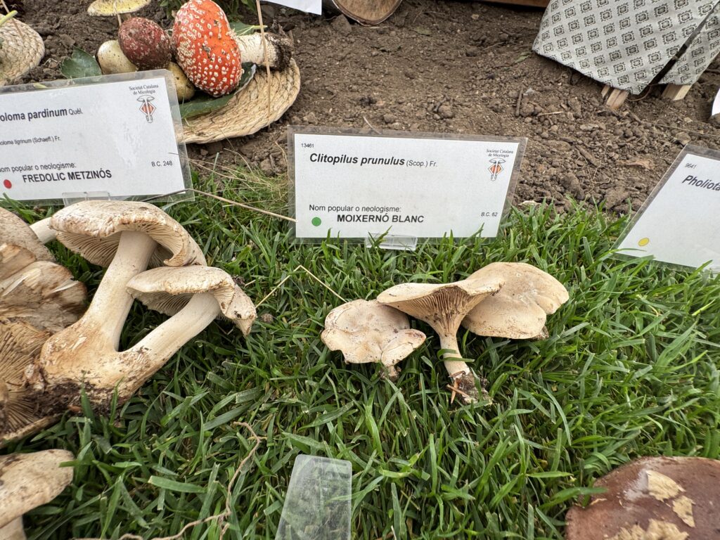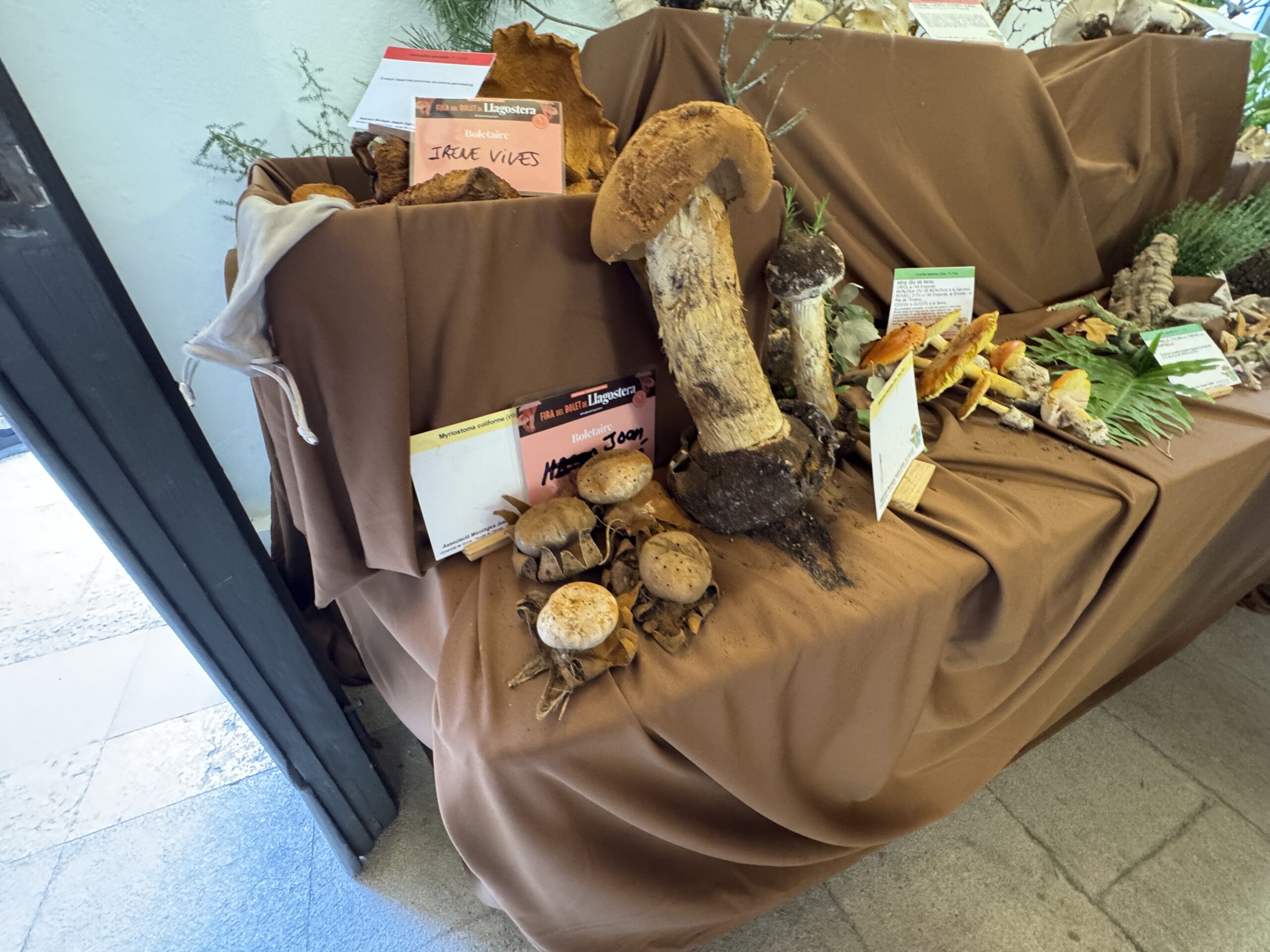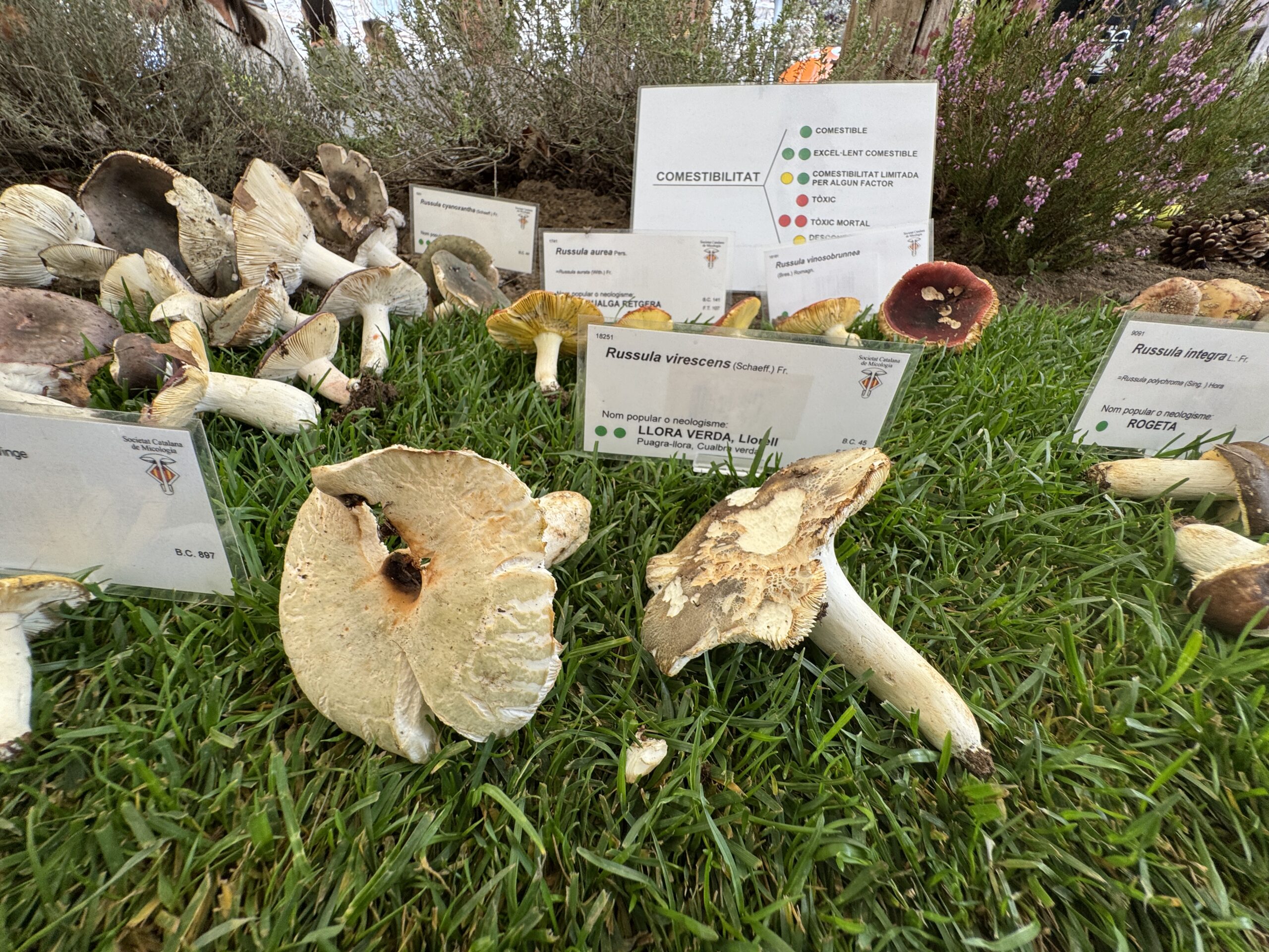 Когда мы добрались до Festa del Bolet de Seva 2025, там уже закончились основные массовые мероприятия. Гигантская грибная сковорода кормила последних жедающих. Но мы не претендовали на это блюдо — в сковороду грибы насыпают из ящиков, особо не перебирая — там и щепки, и всякий мусор. Из лесных грибов в этих ящиках только лисички. Плюс к ним продается в комплекте хлеб и вино, которые мы не едим. Мы прошли до хорошей грибной выставки и купили шиитаке с грибной фермы и варенье.