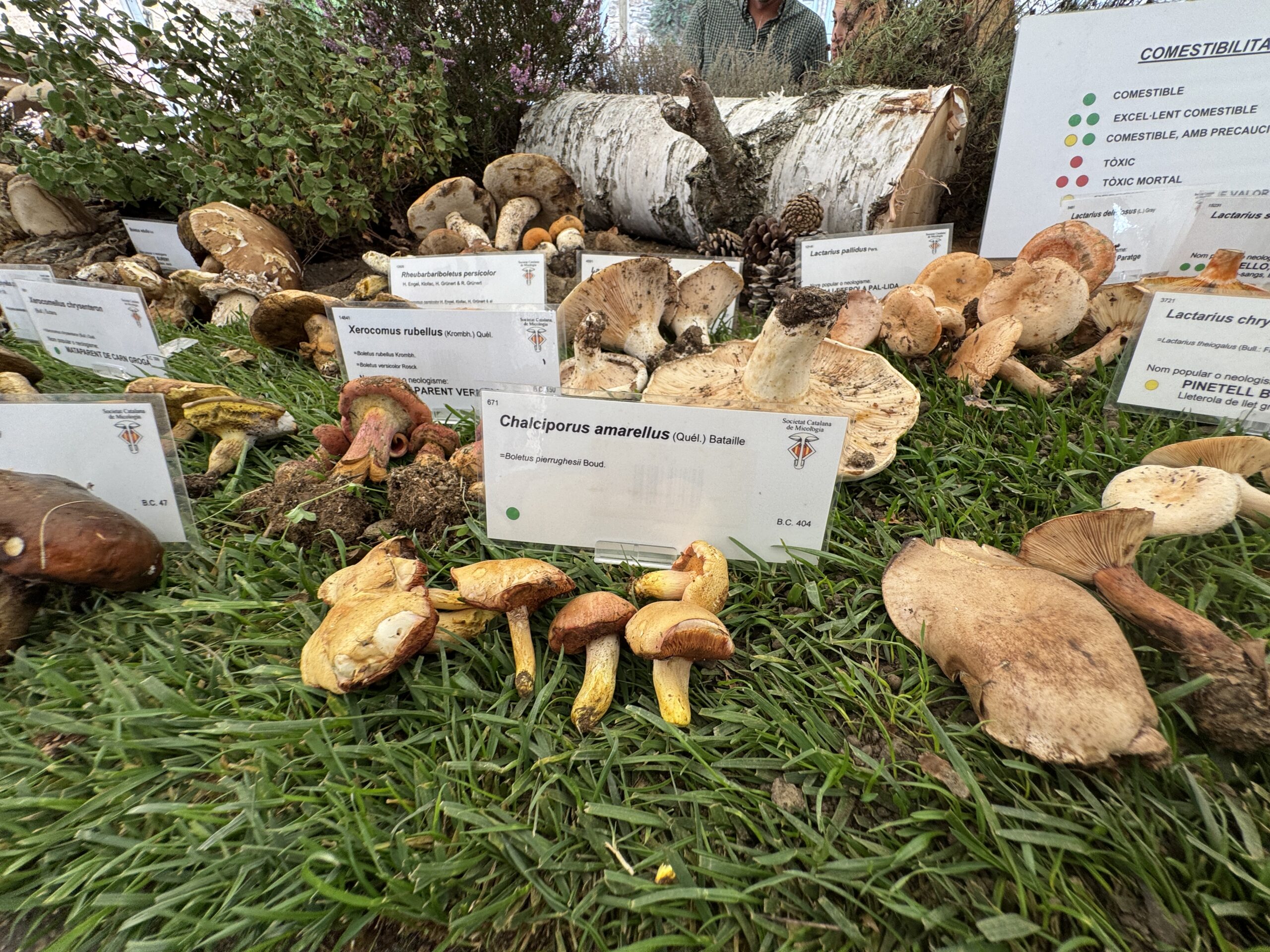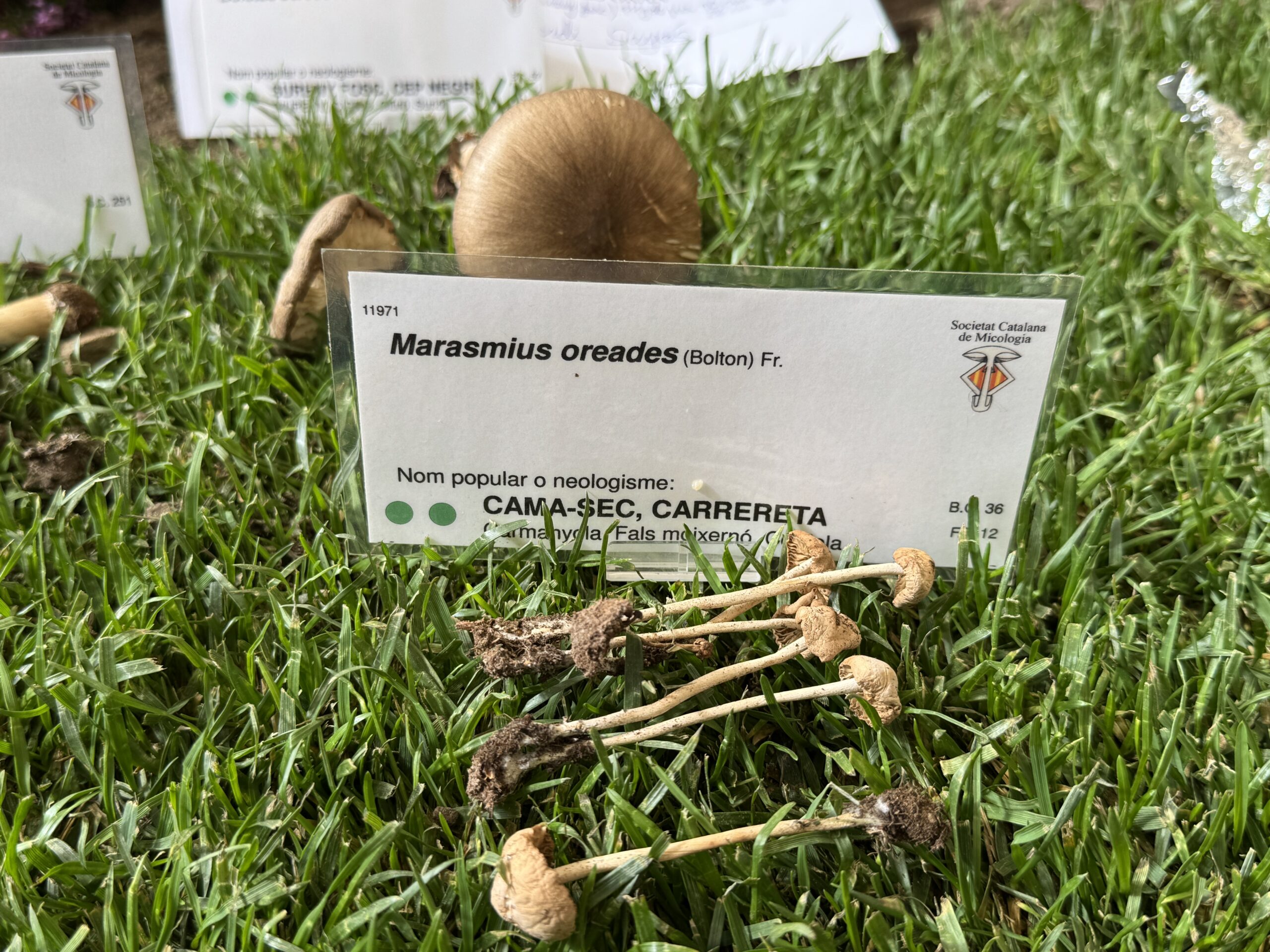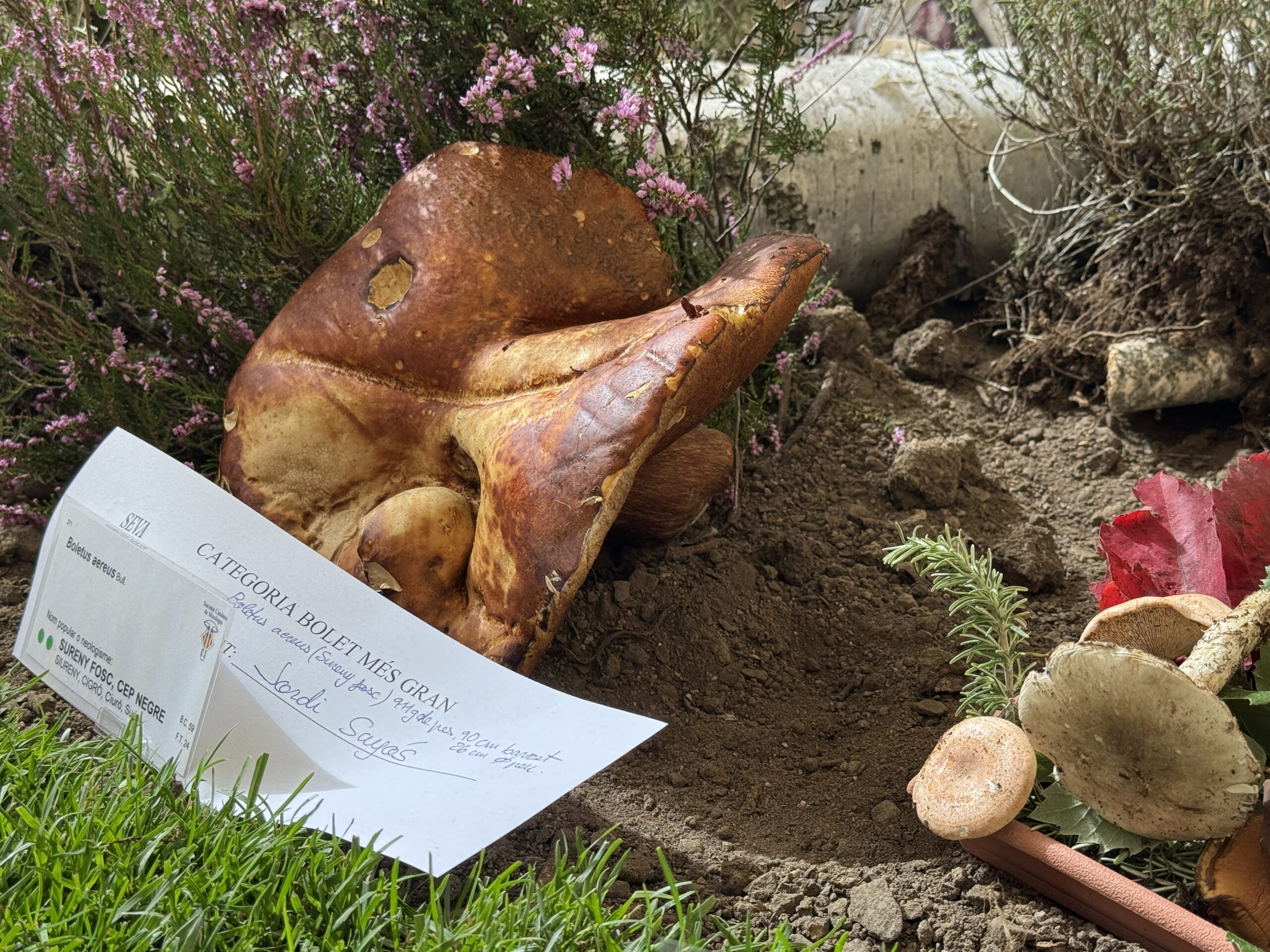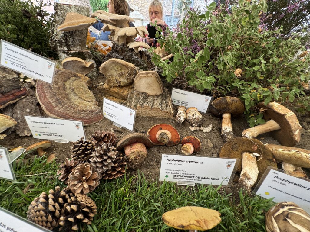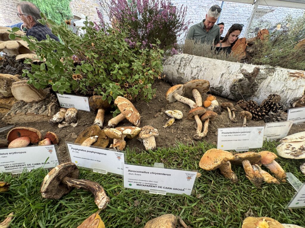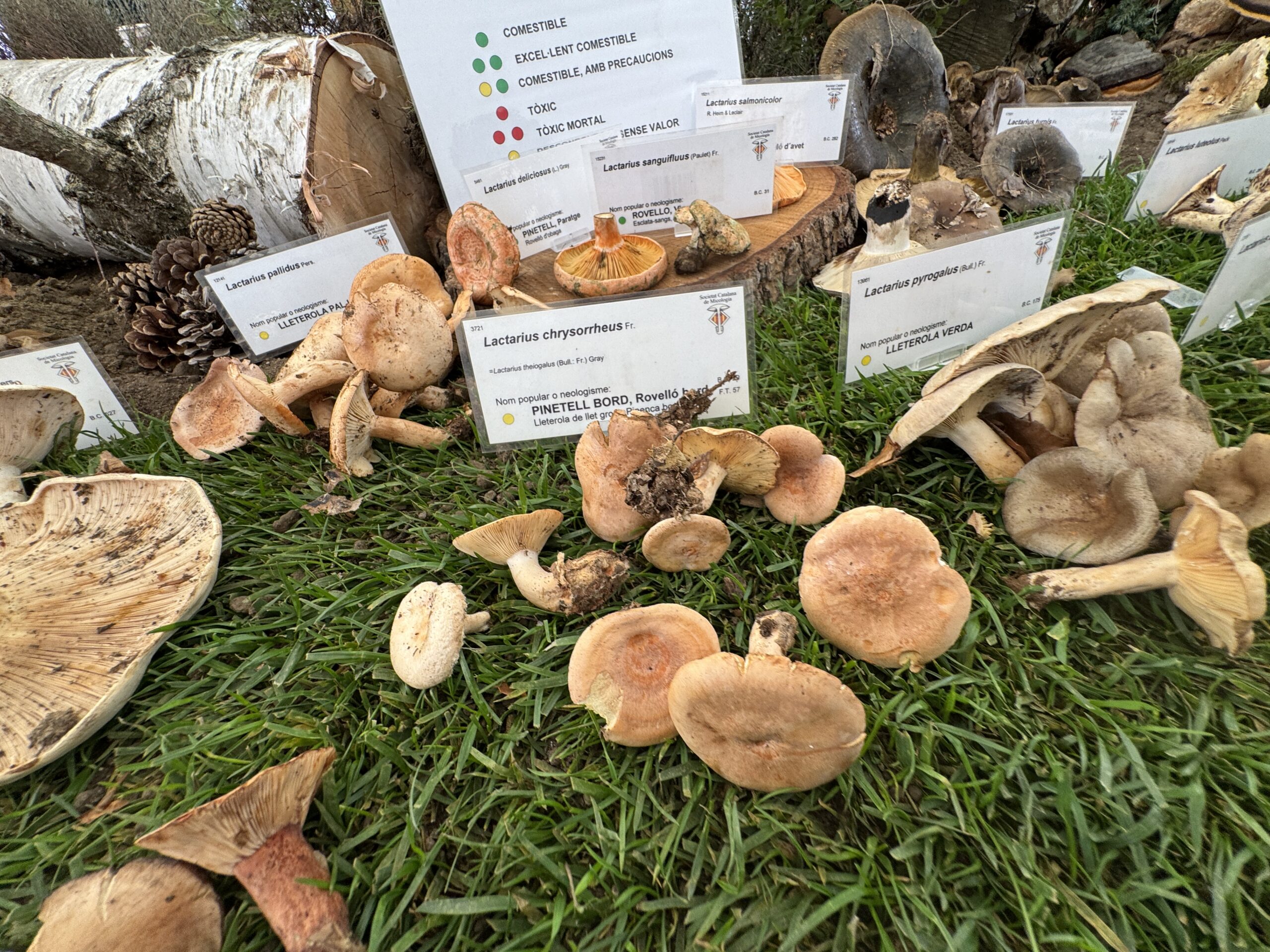 Когда мы добрались до Festa del Bolet de Seva 2025, там уже закончились основные массовые мероприятия. Гигантская грибная сковорода кормила последних жедающих. Но мы не претендовали на это блюдо — в сковороду грибы насыпают из ящиков, особо не перебирая — там и щепки, и всякий мусор. Из лесных грибов в этих ящиках только лисички. Плюс к ним продается в комплекте хлеб и вино, которые мы не едим. Мы прошли до хорошей грибной выставки и купили шиитаке с грибной фермы и варенье.