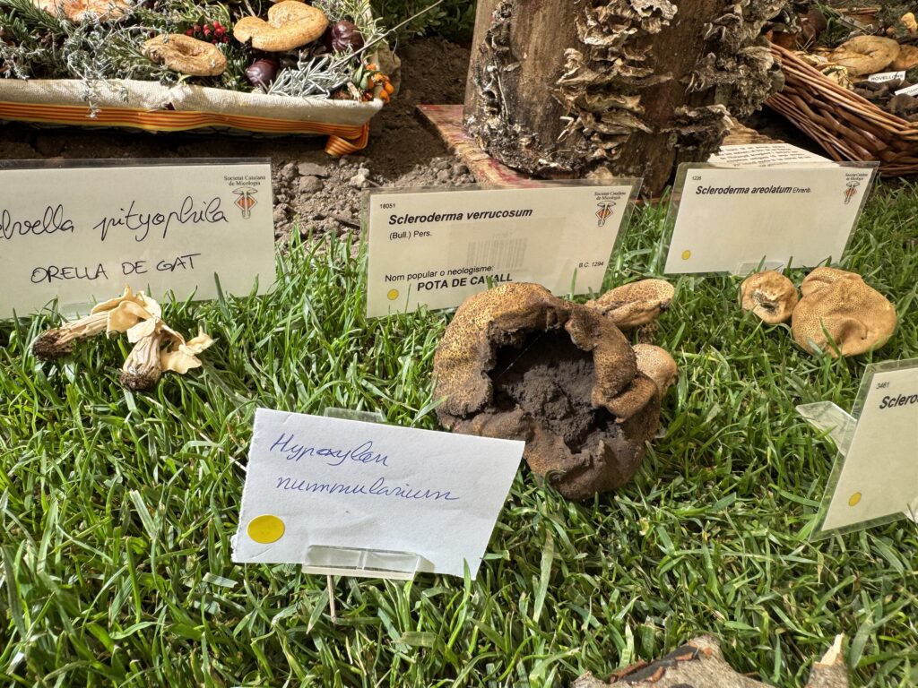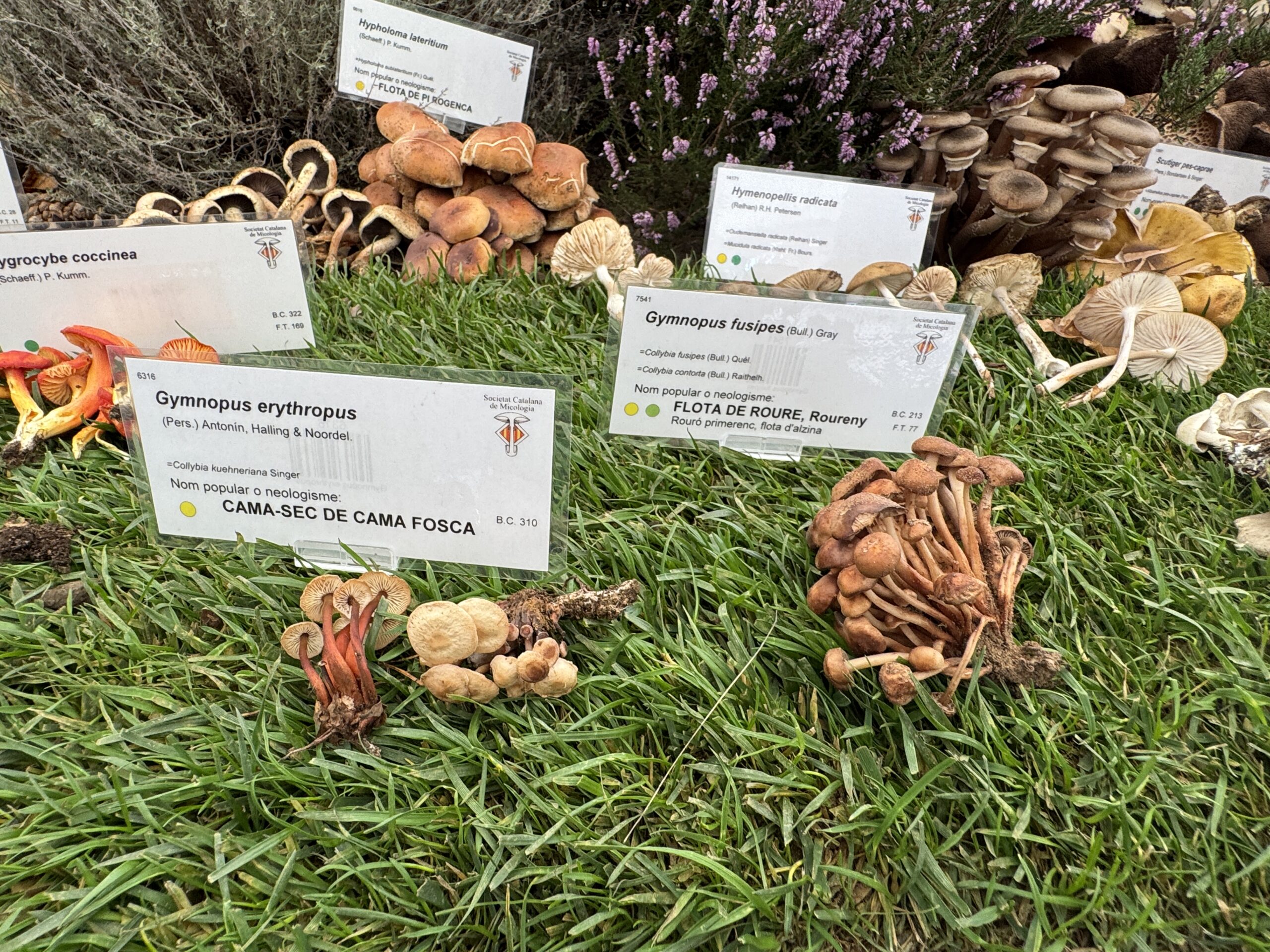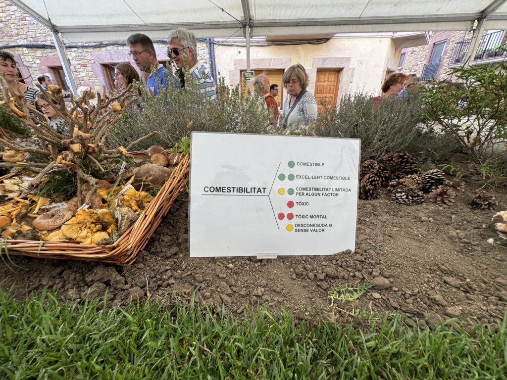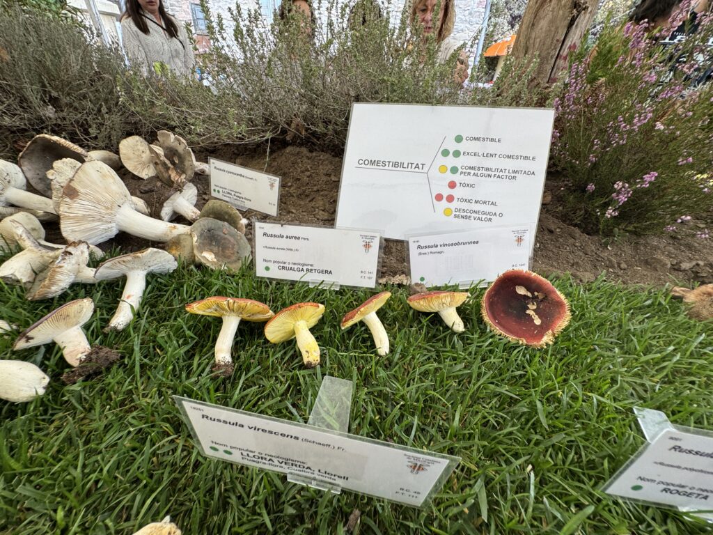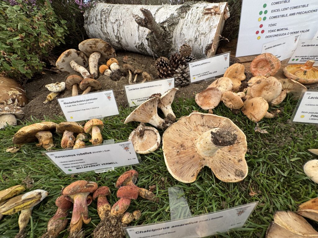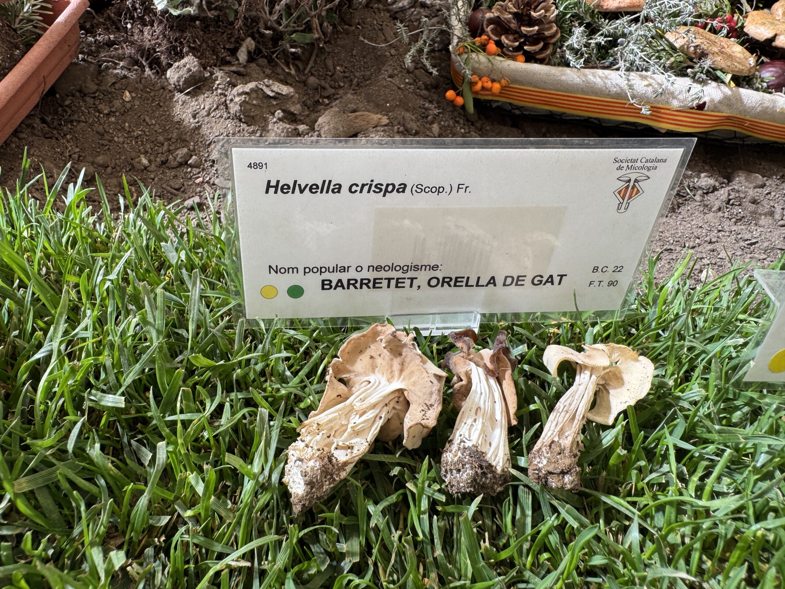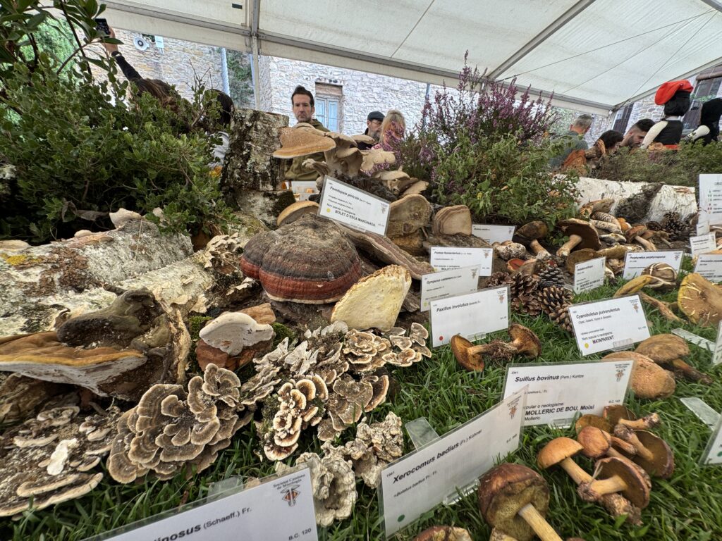 Когда мы добрались до Festa del Bolet de Seva 2025, там уже закончились основные массовые мероприятия. Гигантская грибная сковорода кормила последних жедающих. Но мы не претендовали на это блюдо — в сковороду грибы насыпают из ящиков, особо не перебирая — там и щепки, и всякий мусор. Из лесных грибов в этих ящиках только лисички. Плюс к ним продается в комплекте хлеб и вино, которые мы не едим. Мы прошли до хорошей грибной выставки и купили шиитаке с грибной фермы и варенье.