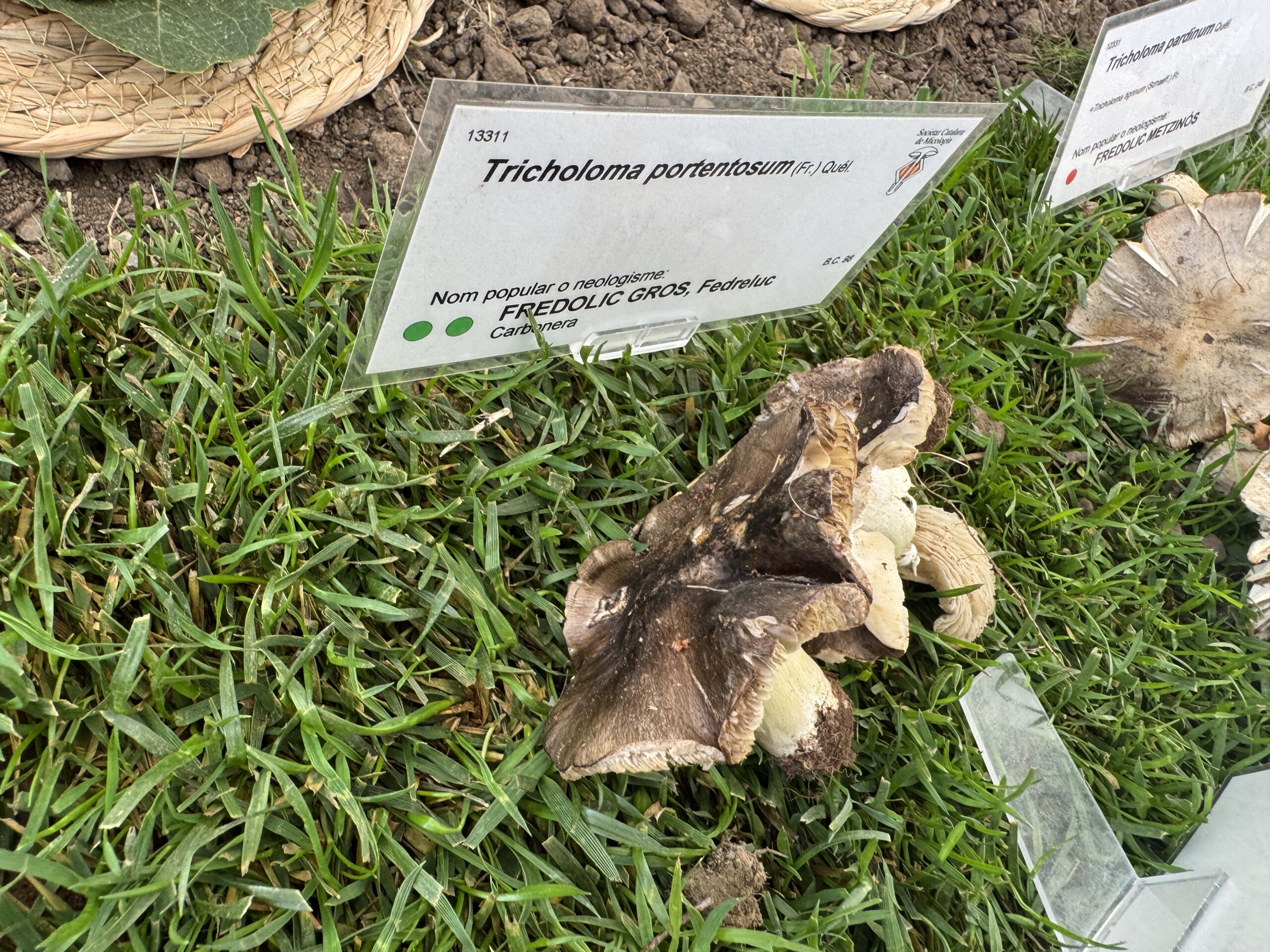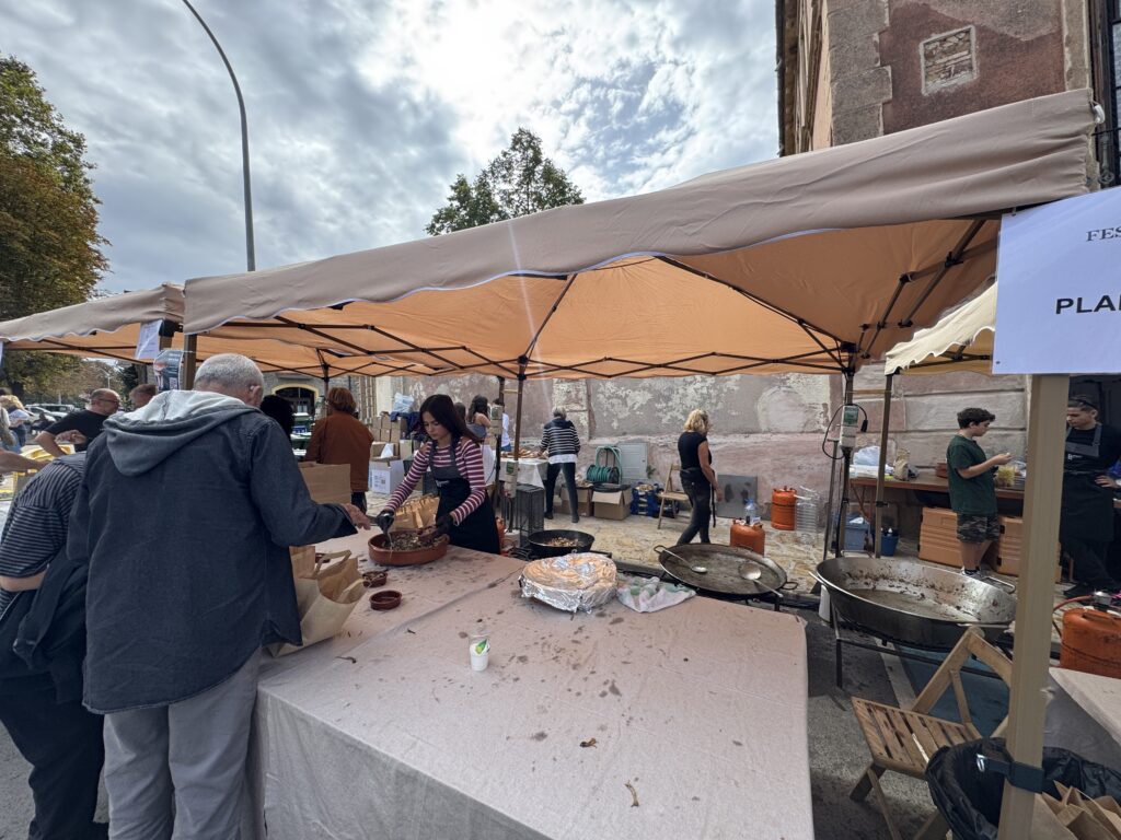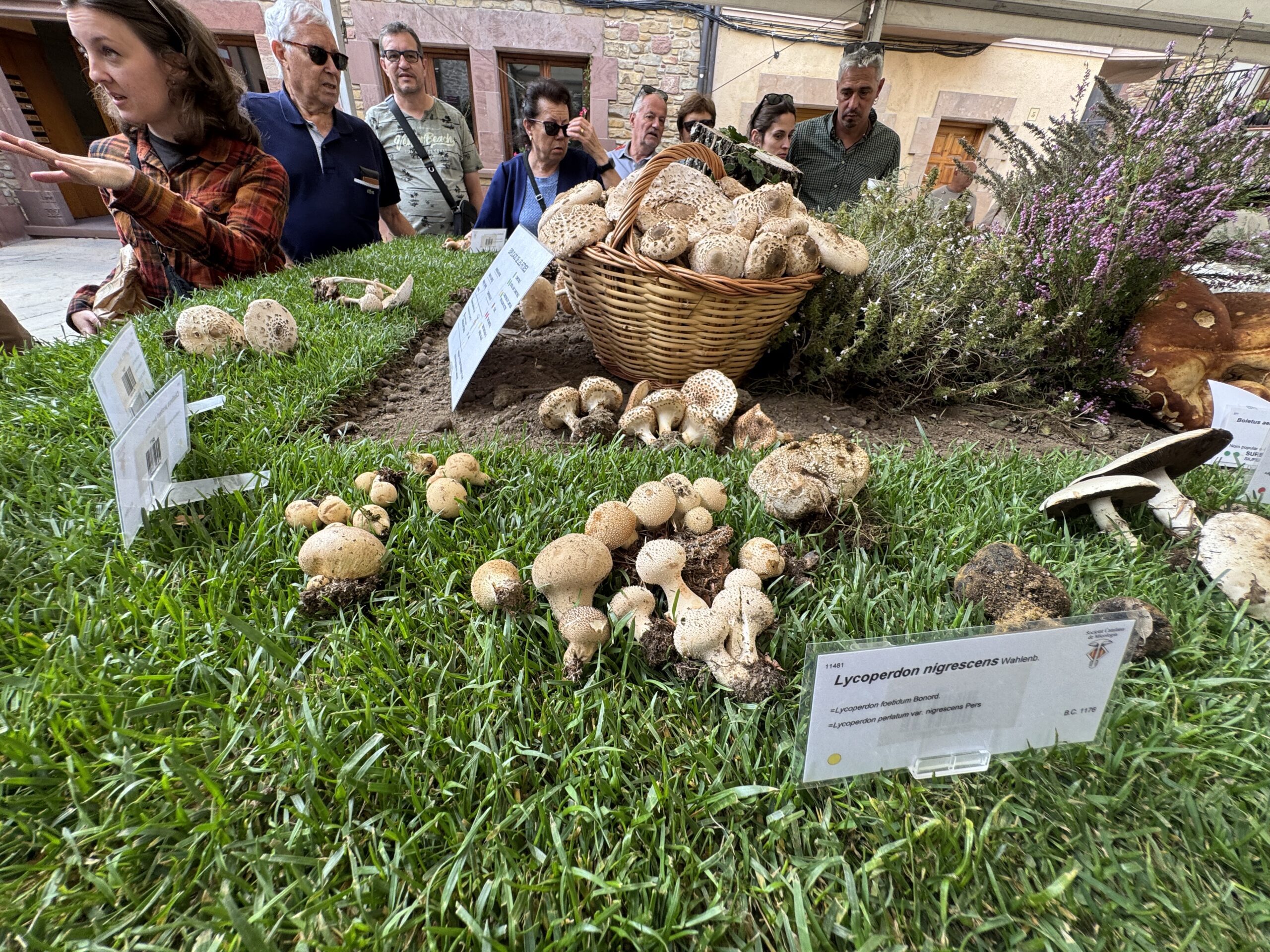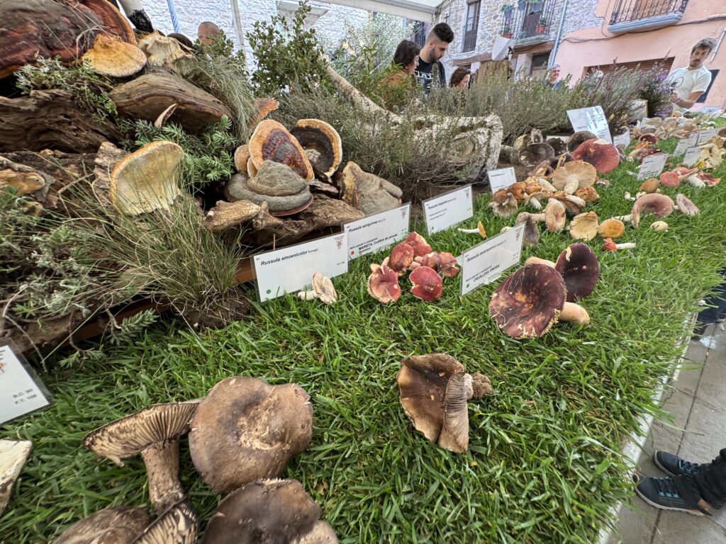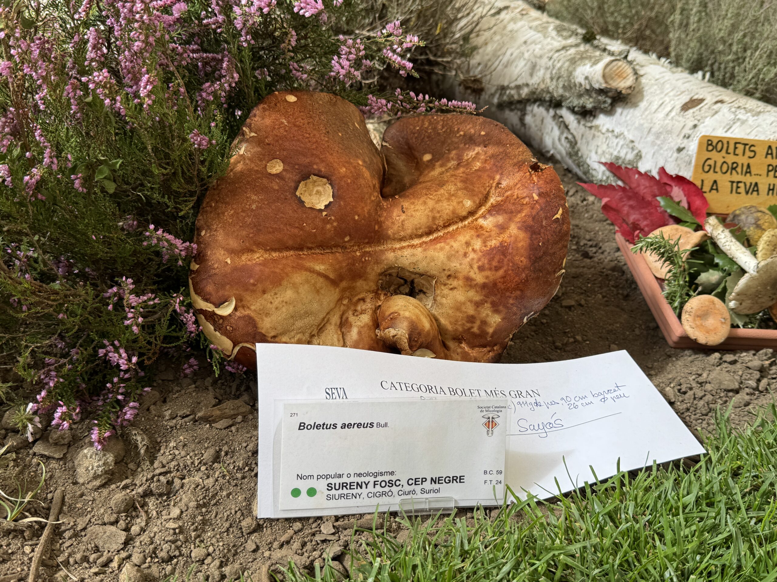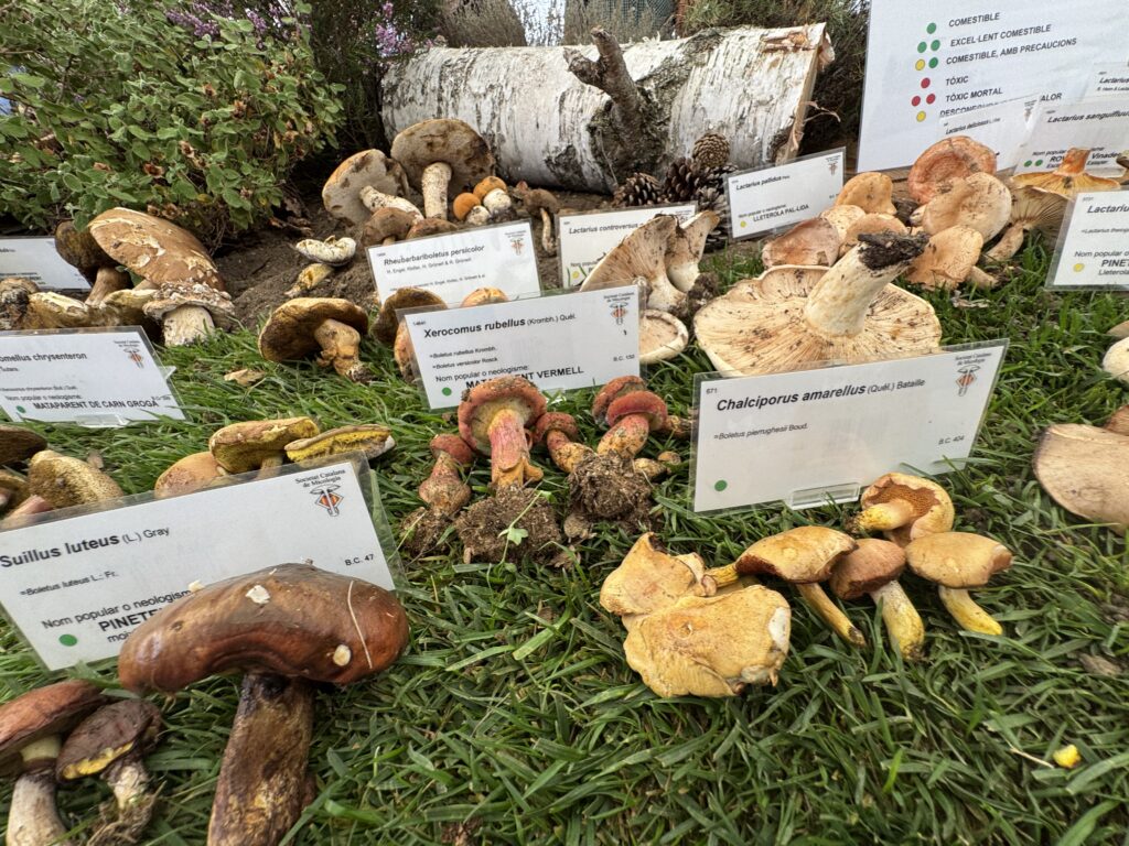 Когда мы добрались до Festa del Bolet de Seva 2025, там уже закончились основные массовые мероприятия. Гигантская грибная сковорода кормила последних жедающих. Но мы не претендовали на это блюдо — в сковороду грибы насыпают из ящиков, особо не перебирая — там и щепки, и всякий мусор. Из лесных грибов в этих ящиках только лисички. Плюс к ним продается в комплекте хлеб и вино, которые мы не едим. Мы прошли до хорошей грибной выставки и купили шиитаке с грибной фермы и варенье.