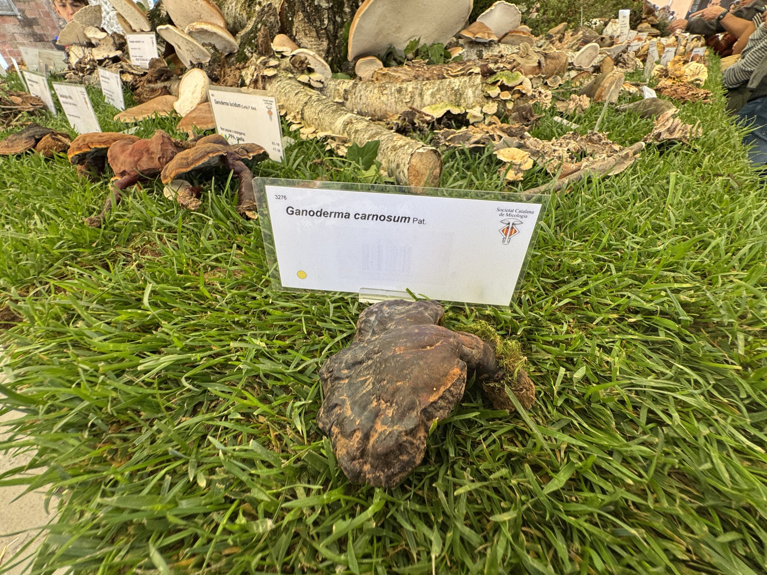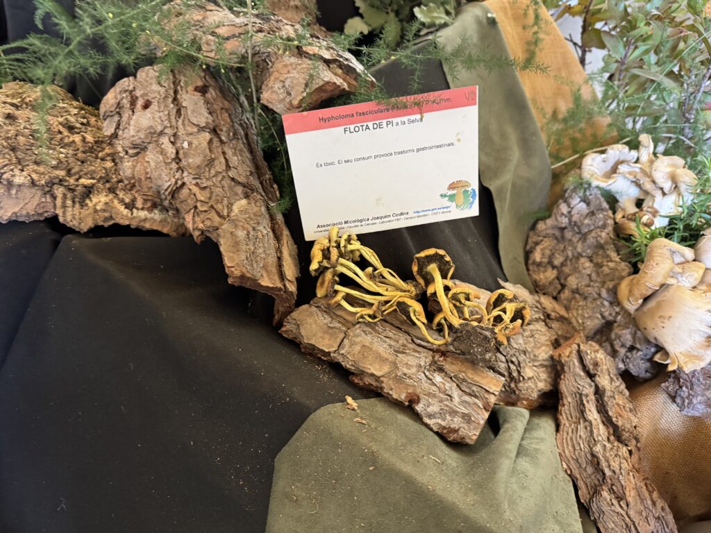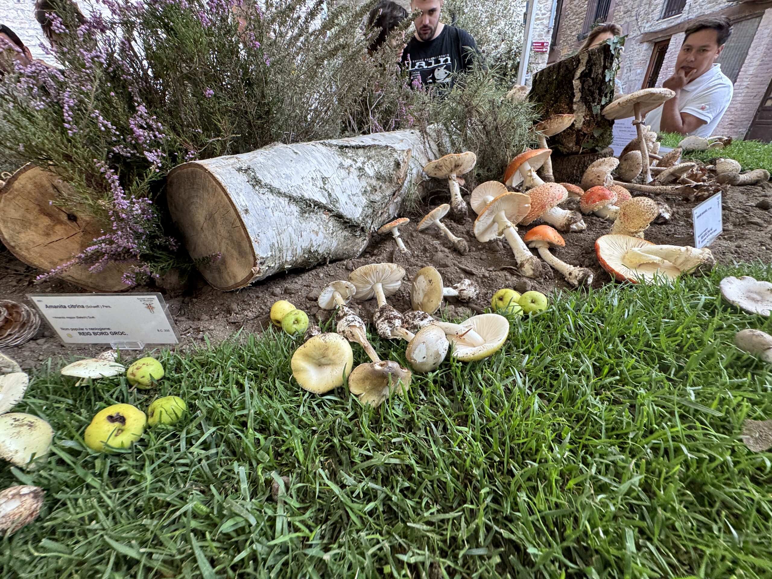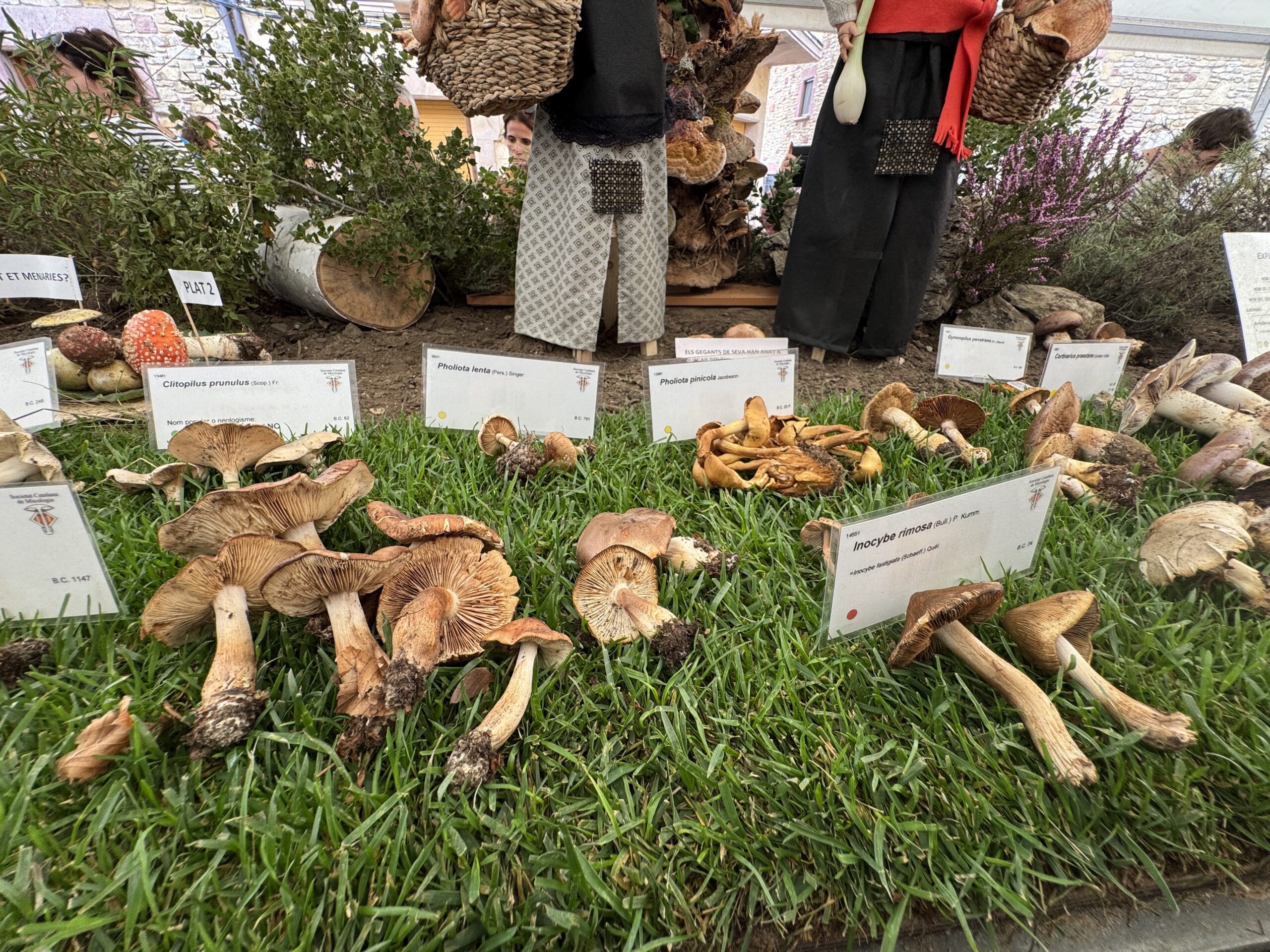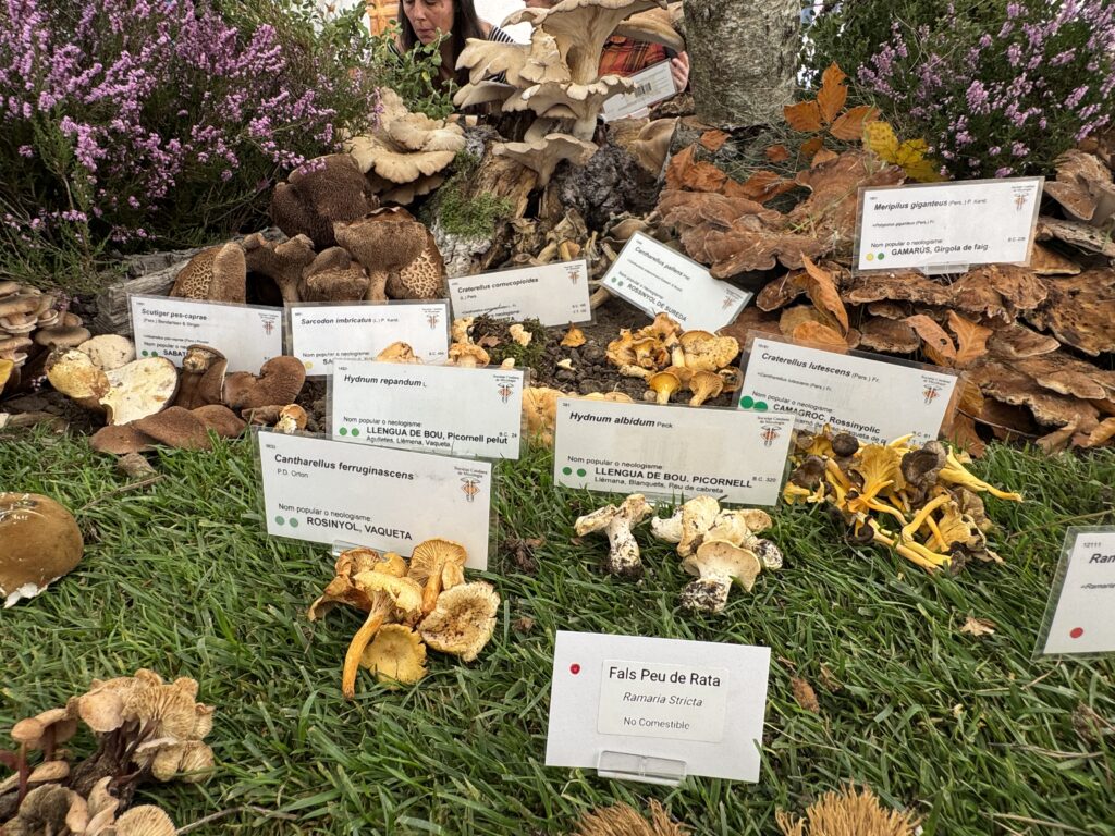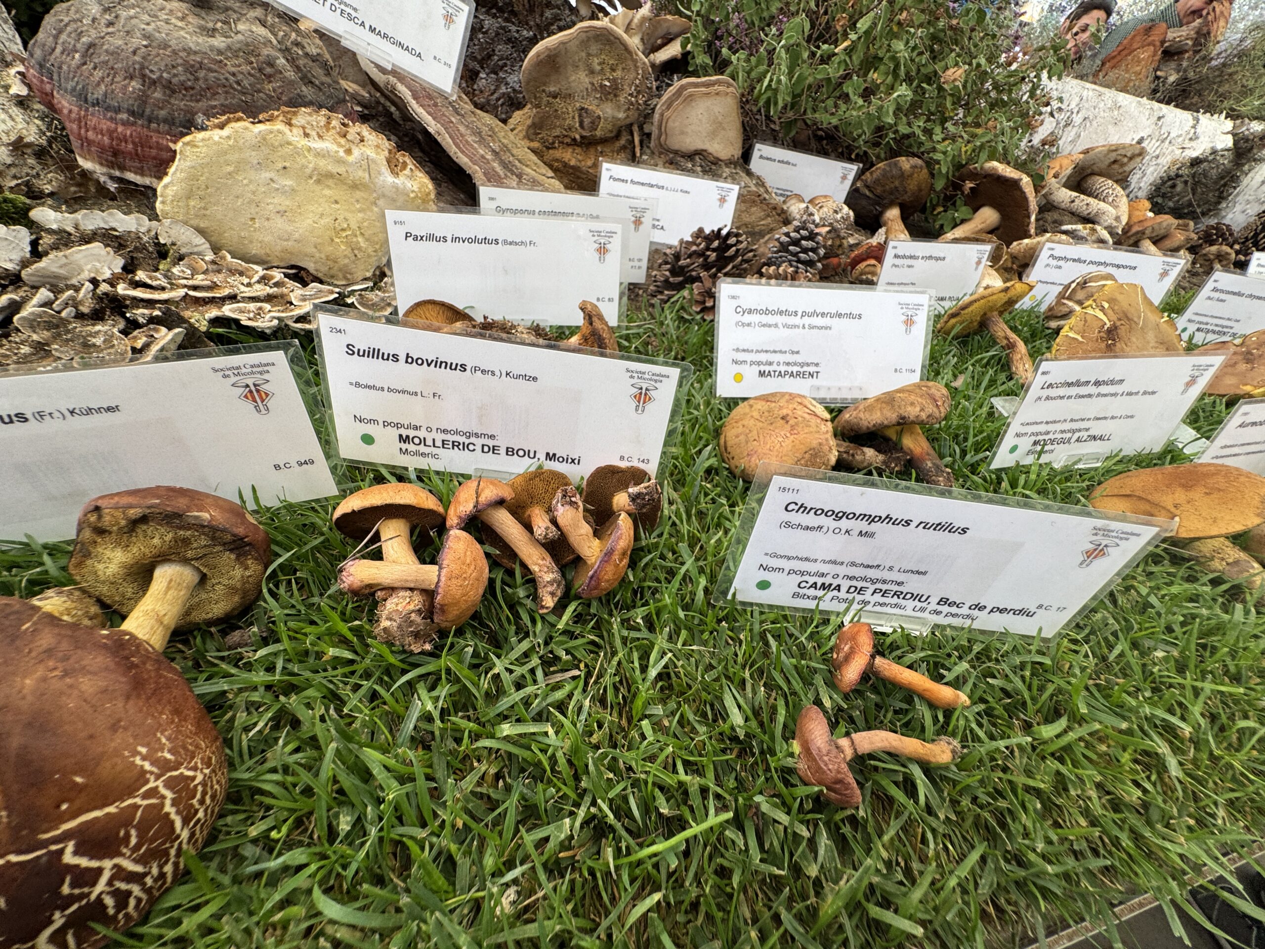 Когда мы добрались до Festa del Bolet de Seva 2025, там уже закончились основные массовые мероприятия. Гигантская грибная сковорода кормила последних жедающих. Но мы не претендовали на это блюдо — в сковороду грибы насыпают из ящиков, особо не перебирая — там и щепки, и всякий мусор. Из лесных грибов в этих ящиках только лисички. Плюс к ним продается в комплекте хлеб и вино, которые мы не едим. Мы прошли до хорошей грибной выставки и купили шиитаке с грибной фермы и варенье.