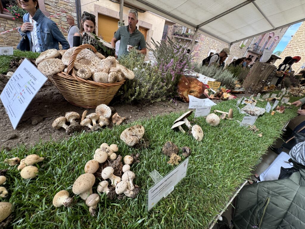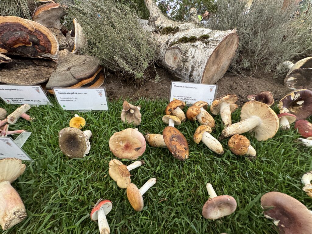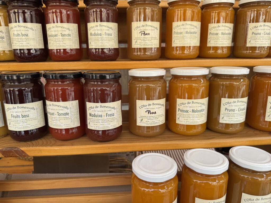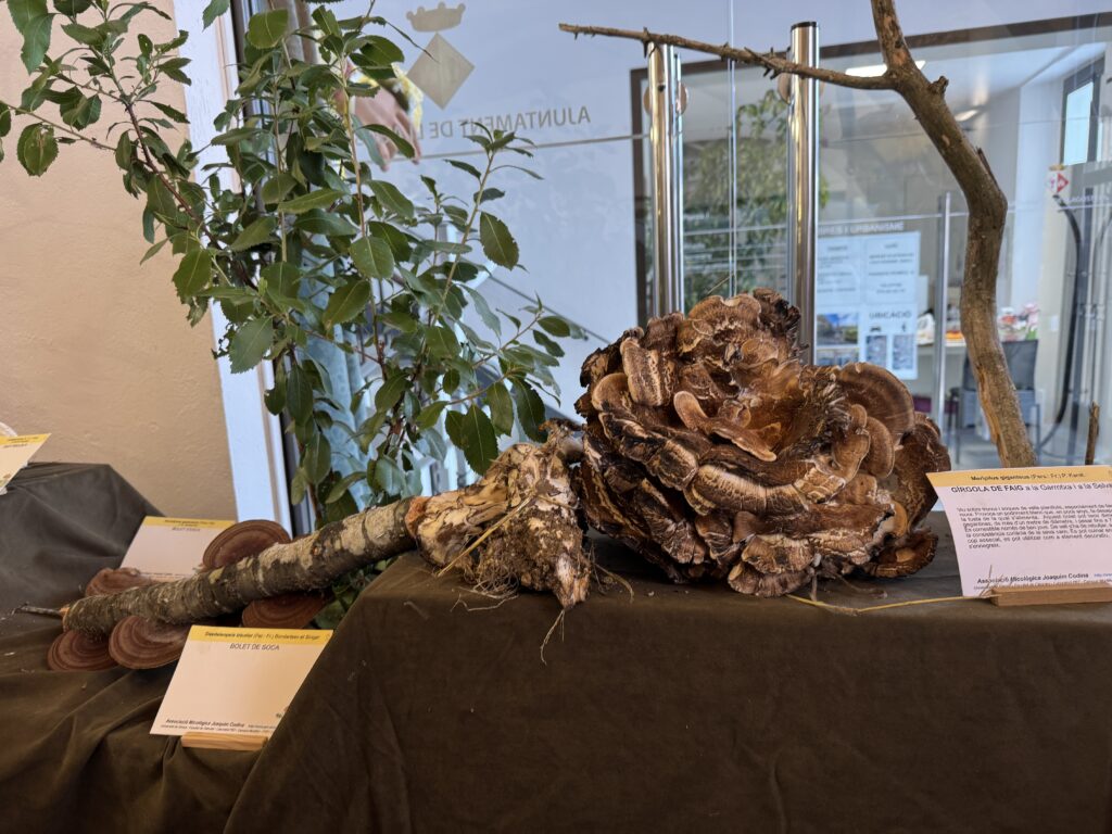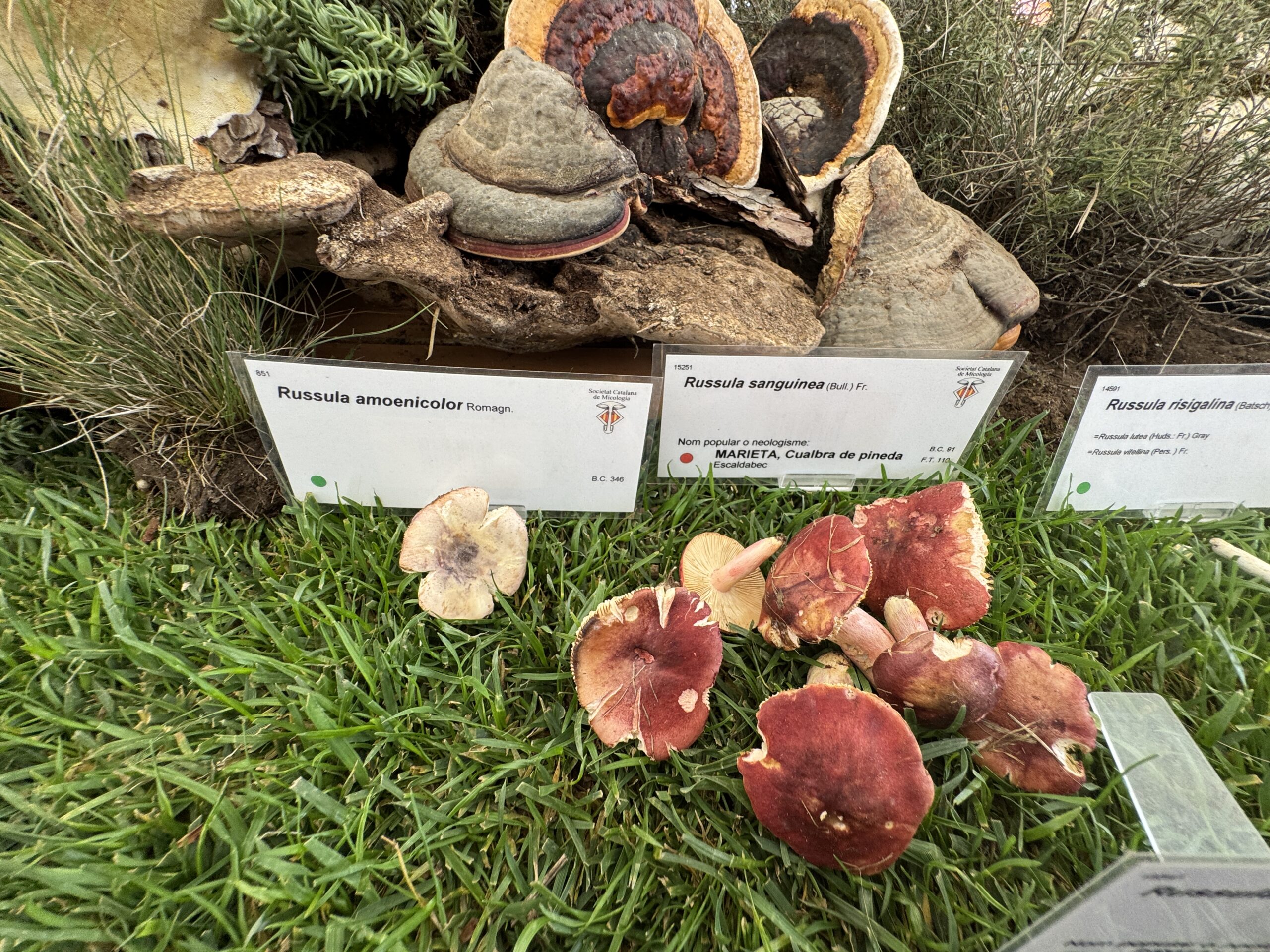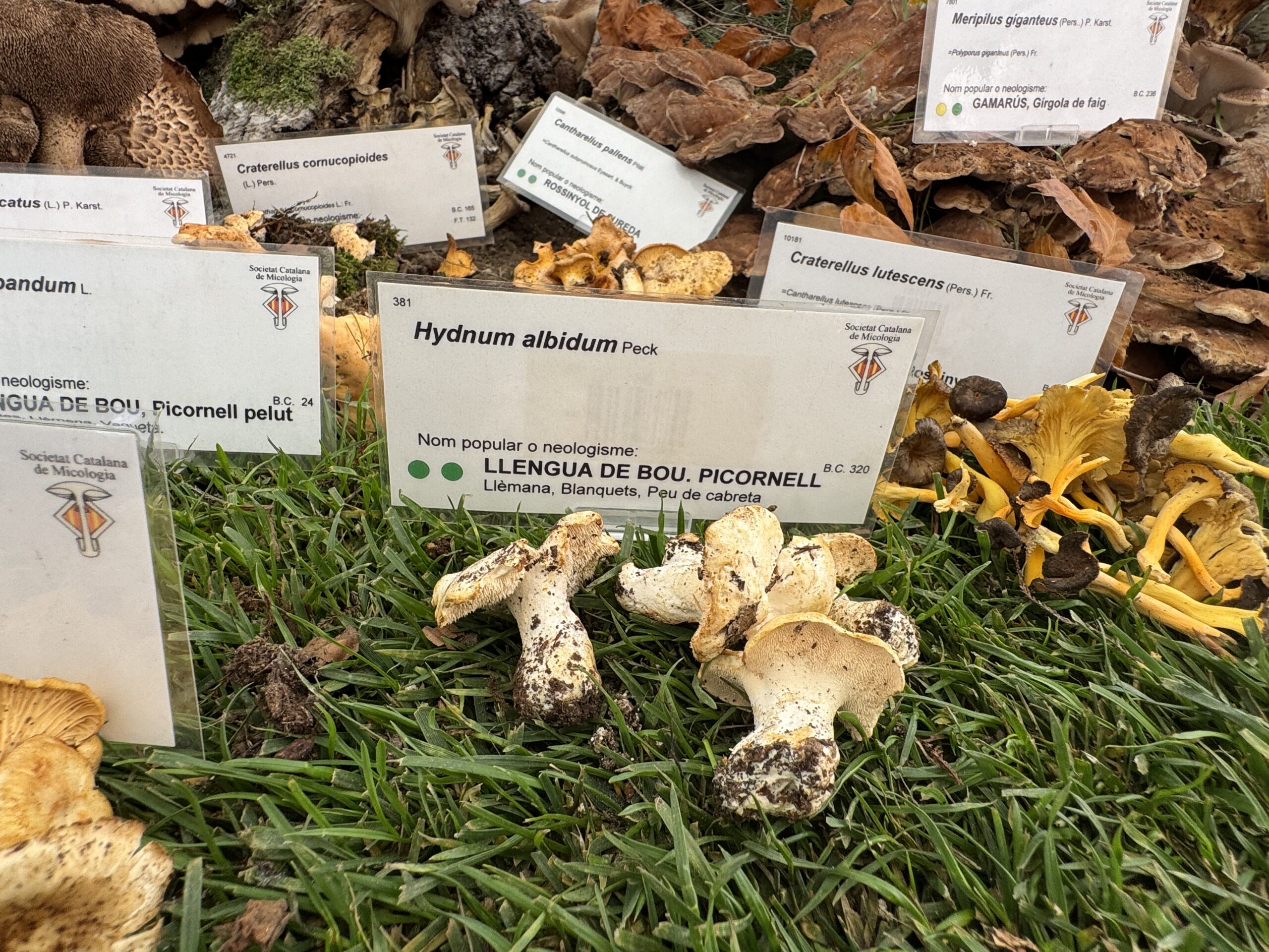 Когда мы добрались до Festa del Bolet de Seva 2025, там уже закончились основные массовые мероприятия. Гигантская грибная сковорода кормила последних жедающих. Но мы не претендовали на это блюдо — в сковороду грибы насыпают из ящиков, особо не перебирая — там и щепки, и всякий мусор. Из лесных грибов в этих ящиках только лисички. Плюс к ним продается в комплекте хлеб и вино, которые мы не едим. Мы прошли до хорошей грибной выставки и купили шиитаке с грибной фермы и варенье.