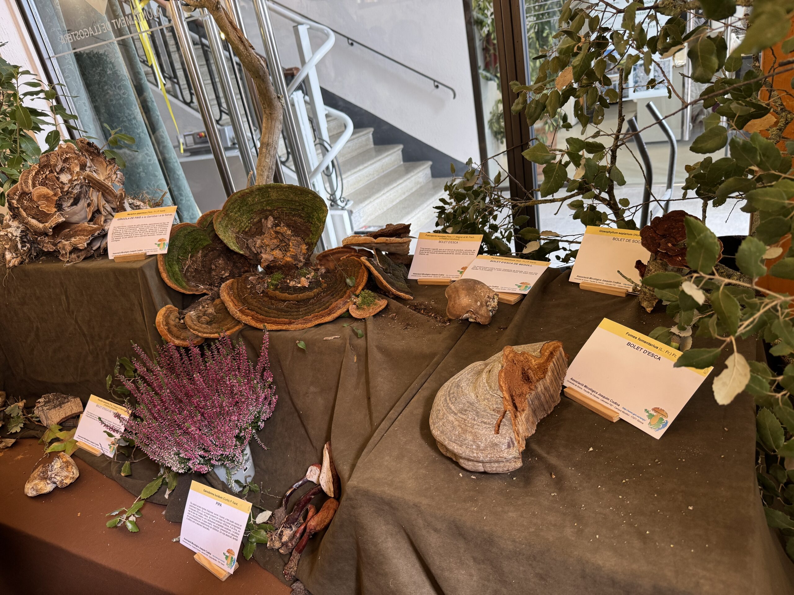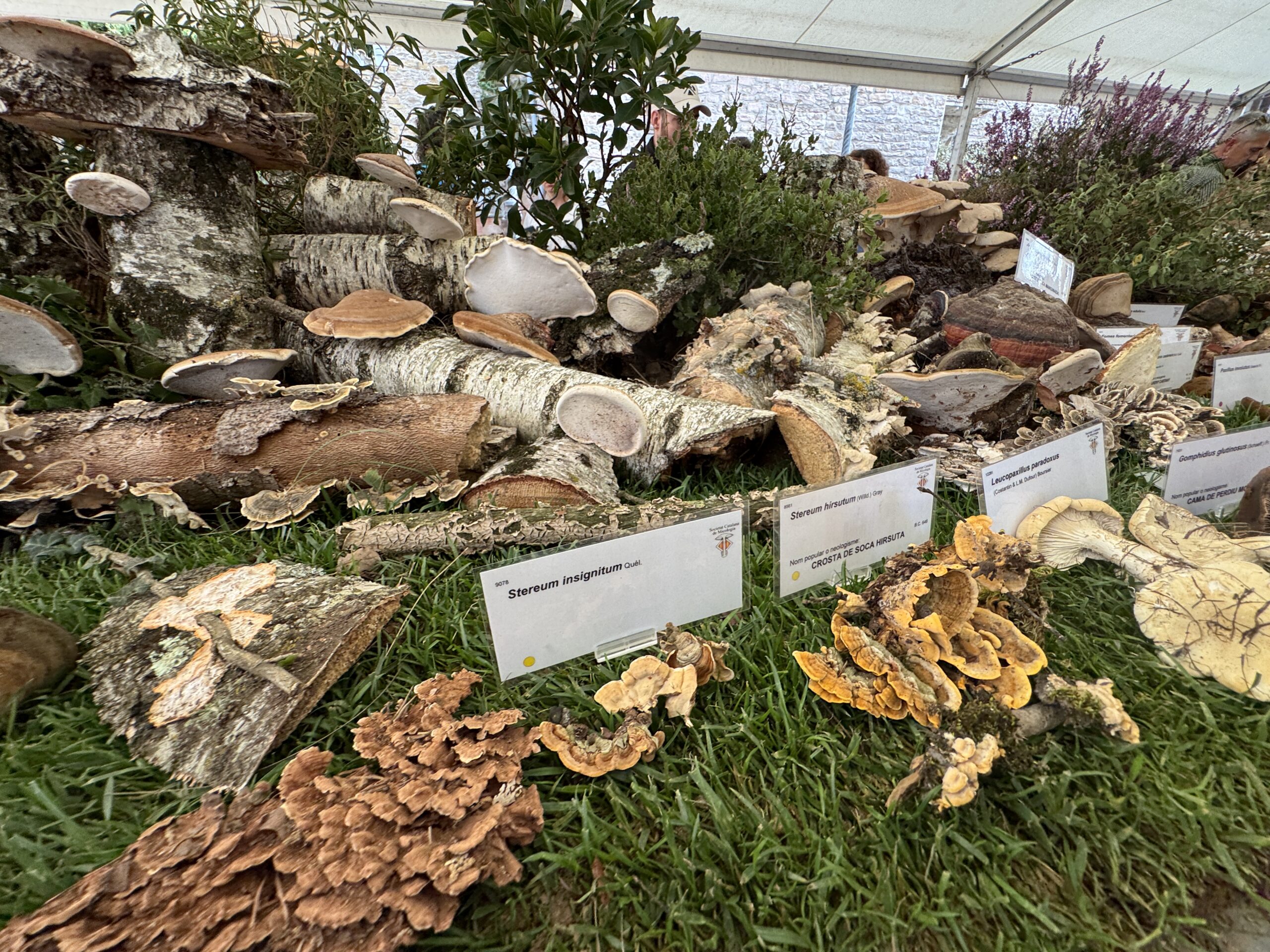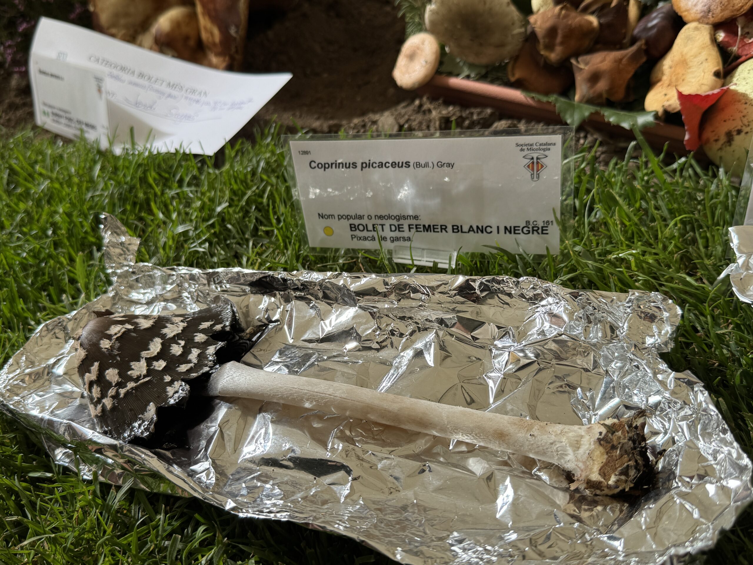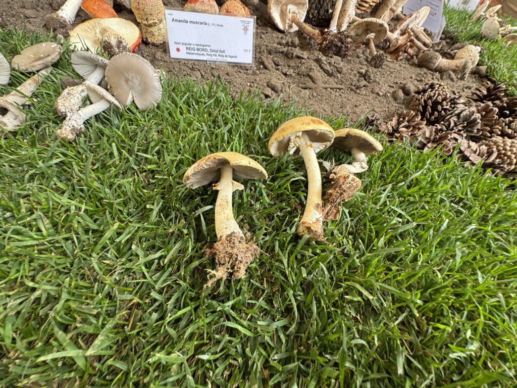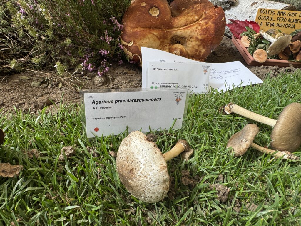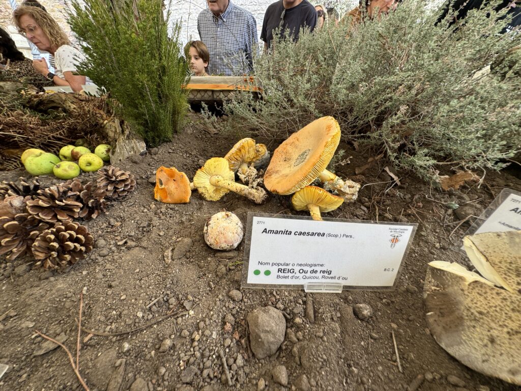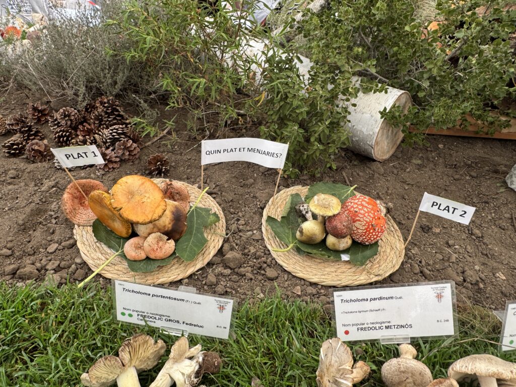 Когда мы добрались до Festa del Bolet de Seva 2025, там уже закончились основные массовые мероприятия. Гигантская грибная сковорода кормила последних жедающих. Но мы не претендовали на это блюдо — в сковороду грибы насыпают из ящиков, особо не перебирая — там и щепки, и всякий мусор. Из лесных грибов в этих ящиках только лисички. Плюс к ним продается в комплекте хлеб и вино, которые мы не едим. Мы прошли до хорошей грибной выставки и купили шиитаке с грибной фермы и варенье.