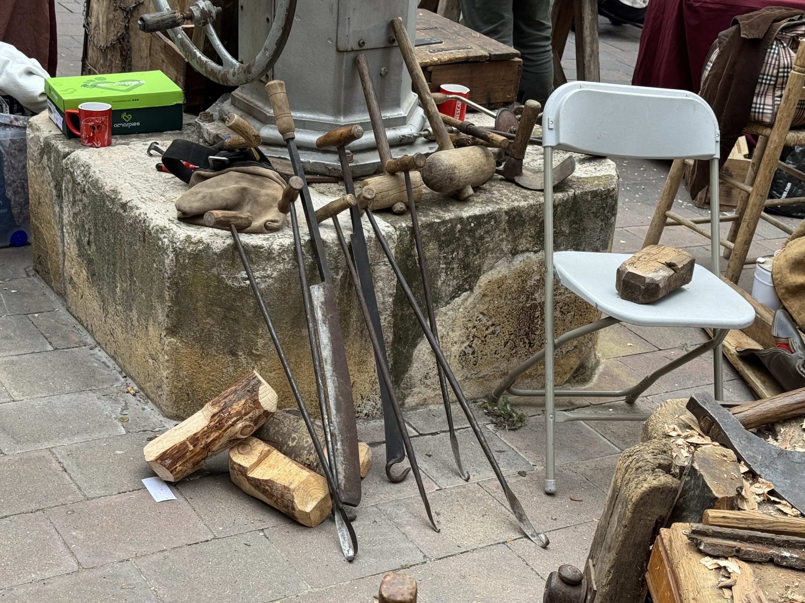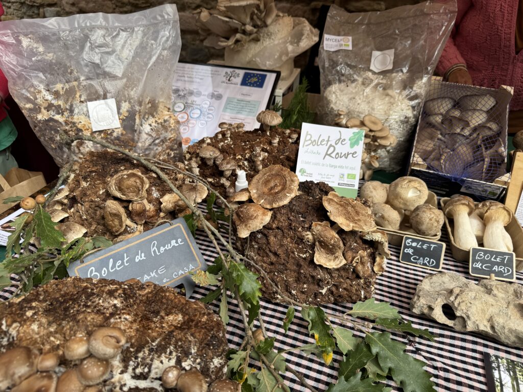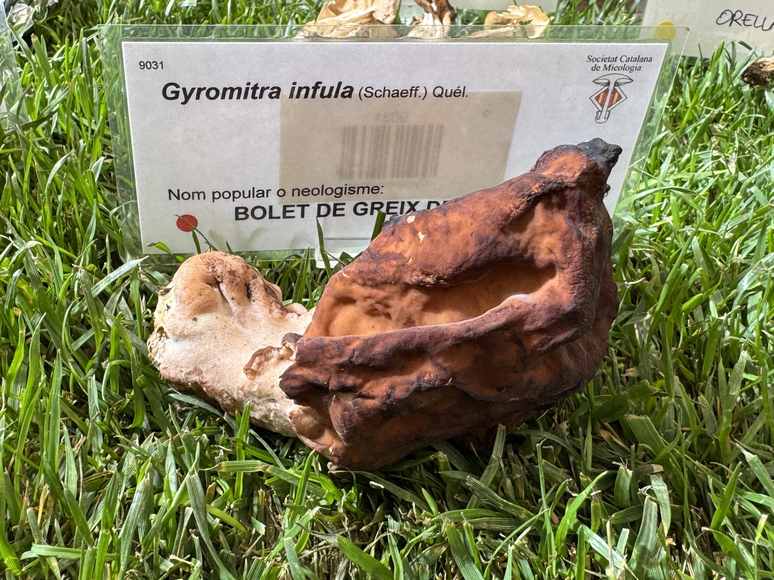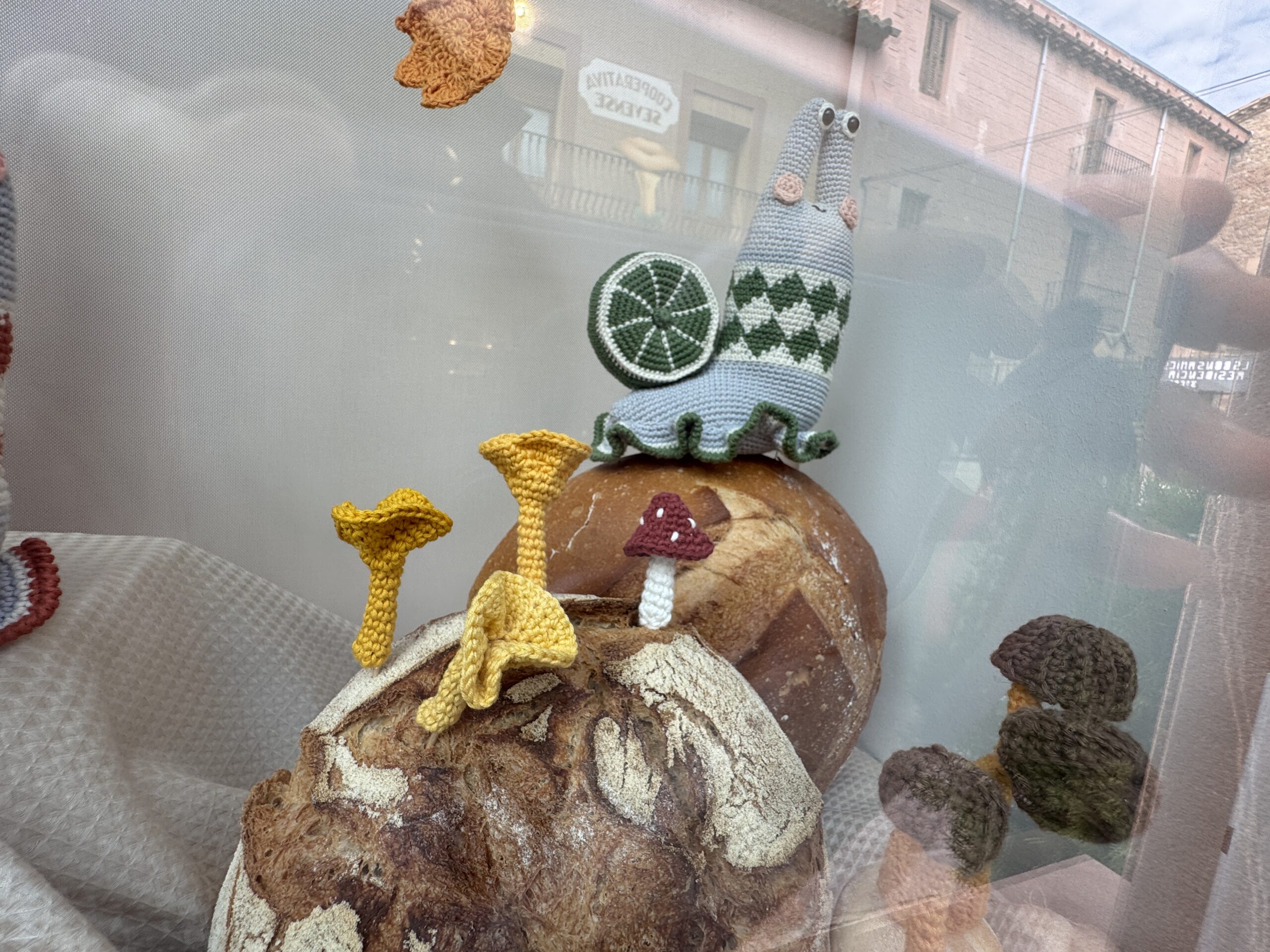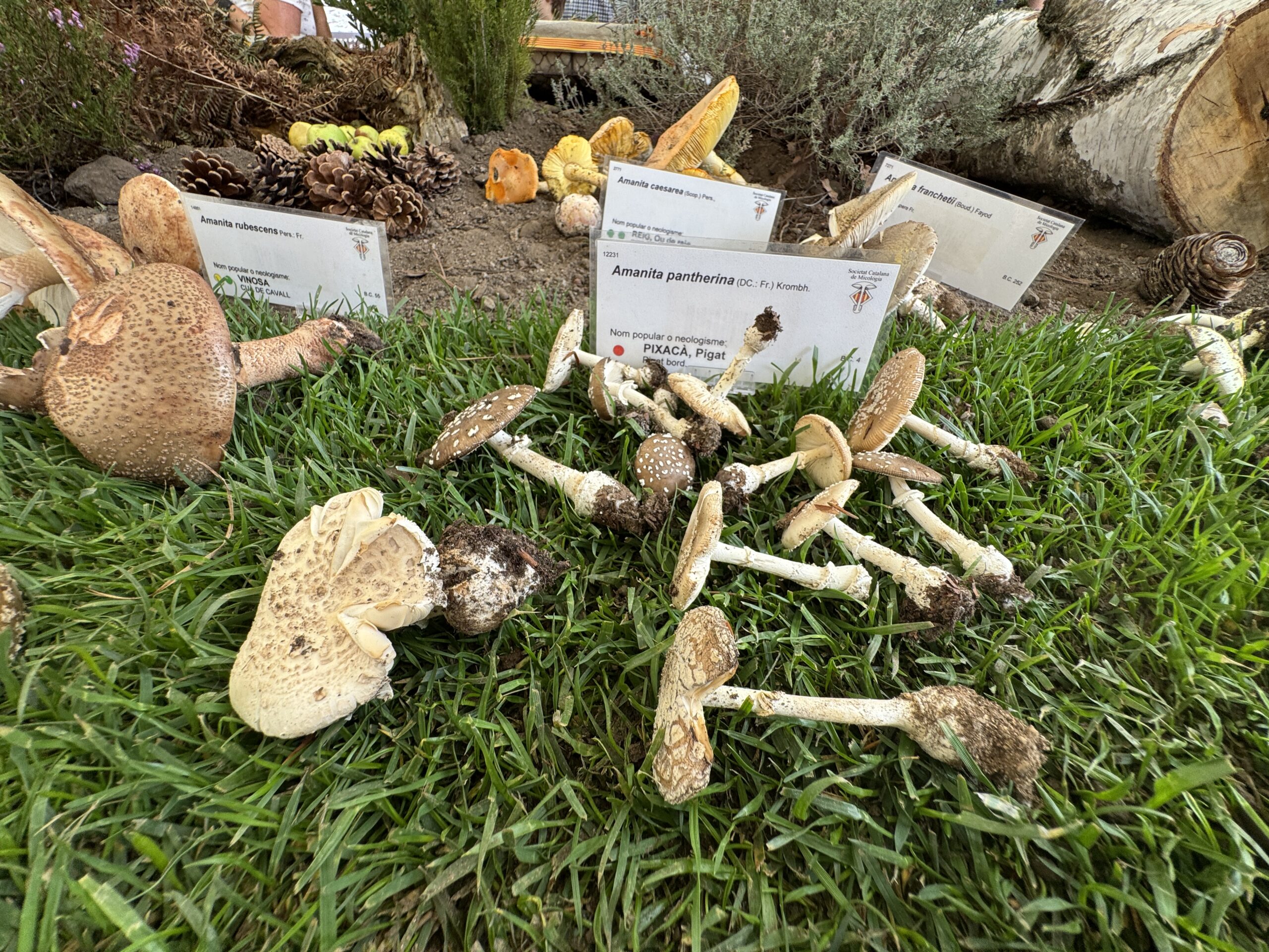 Когда мы добрались до Festa del Bolet de Seva 2025, там уже закончились основные массовые мероприятия. Гигантская грибная сковорода кормила последних жедающих. Но мы не претендовали на это блюдо — в сковороду грибы насыпают из ящиков, особо не перебирая — там и щепки, и всякий мусор. Из лесных грибов в этих ящиках только лисички. Плюс к ним продается в комплекте хлеб и вино, которые мы не едим. Мы прошли до хорошей грибной выставки и купили шиитаке с грибной фермы и варенье.