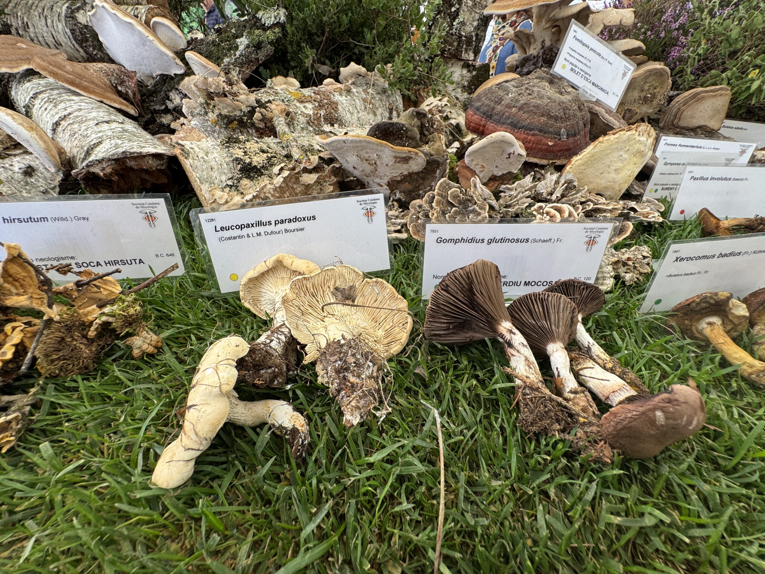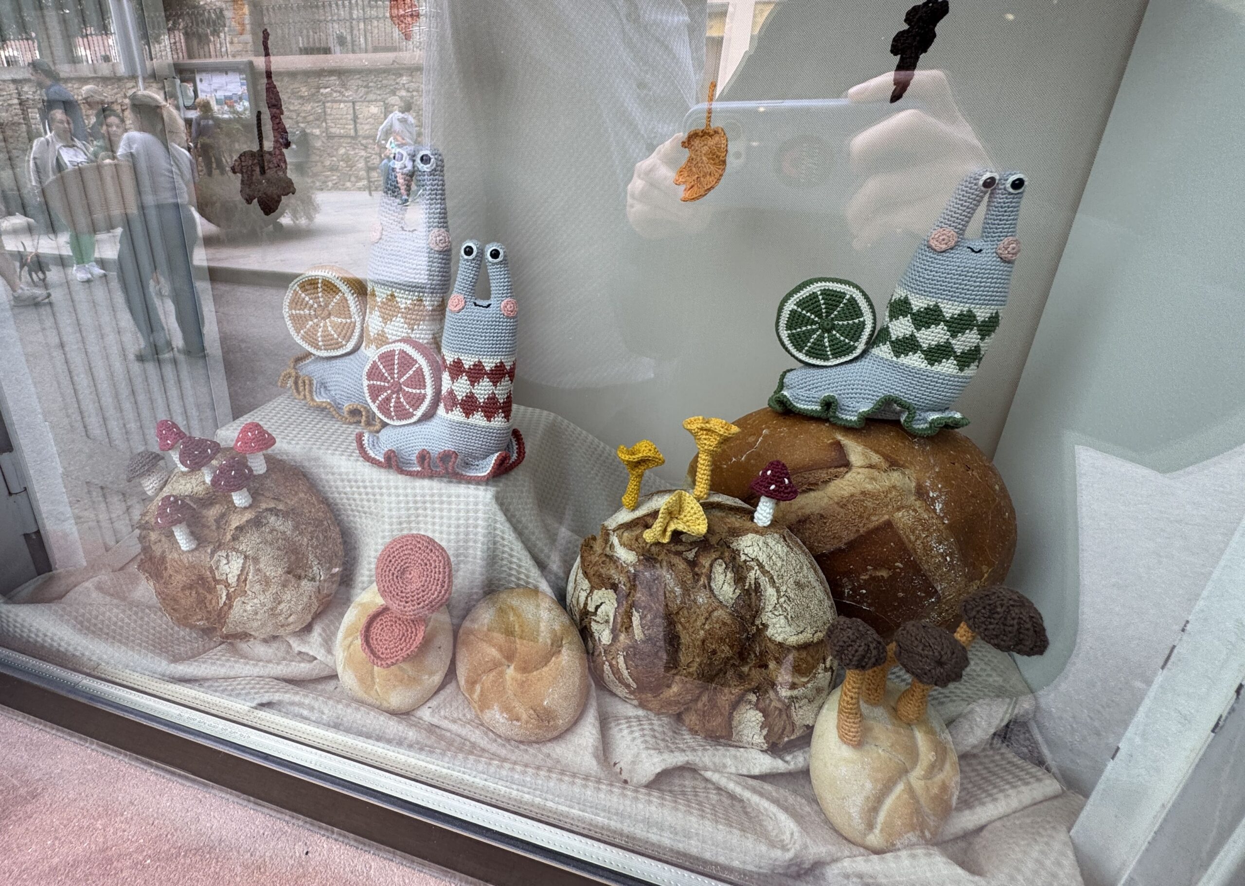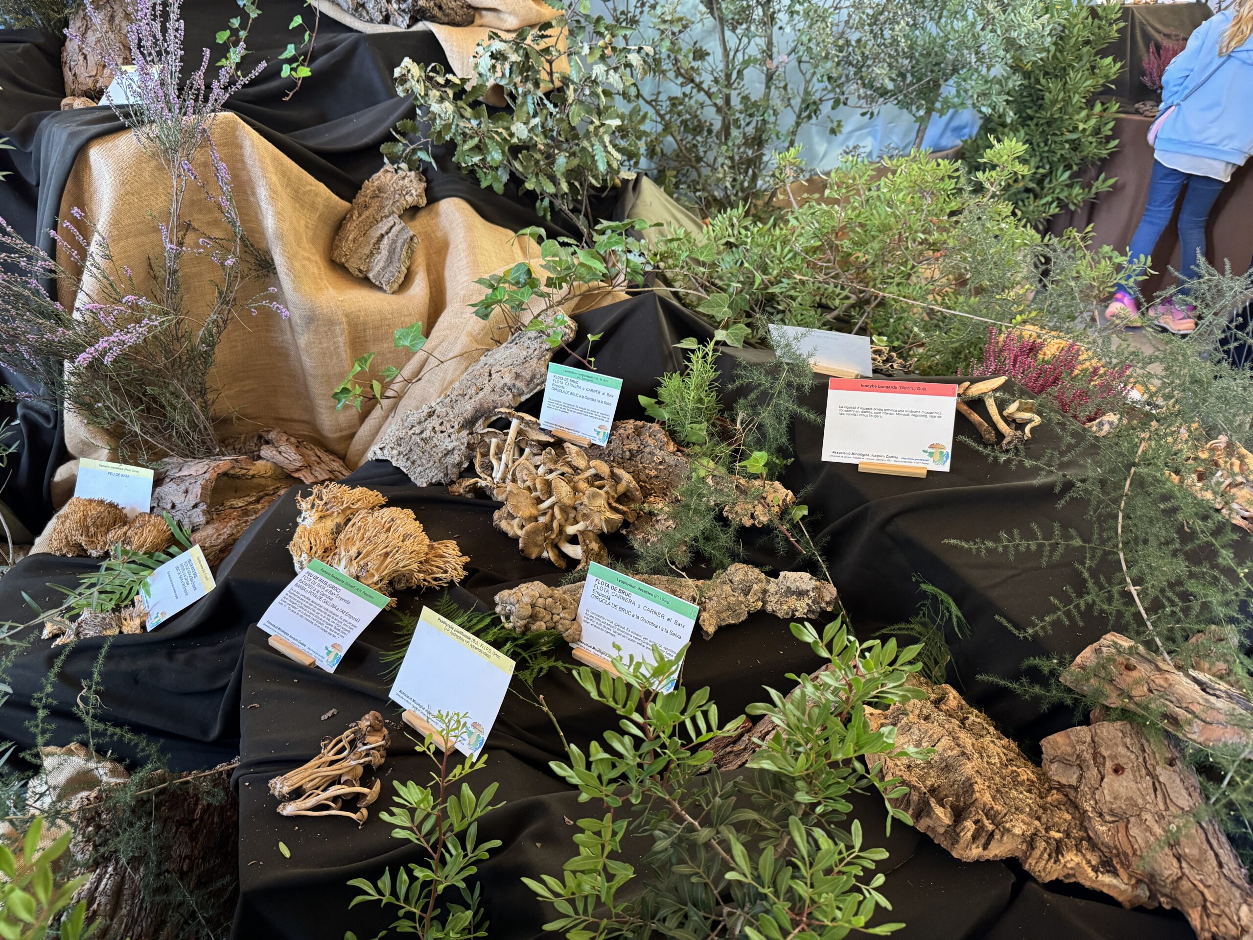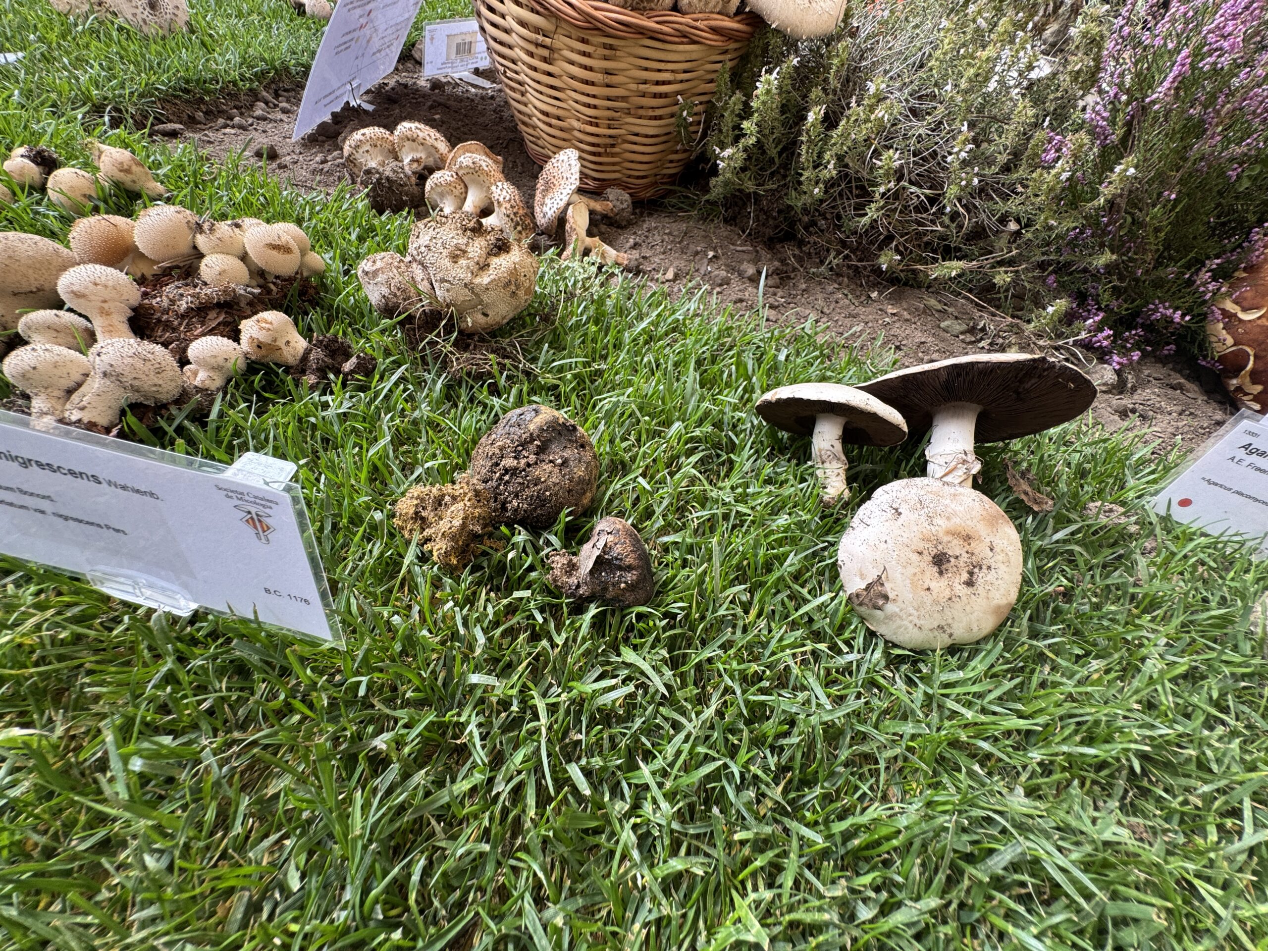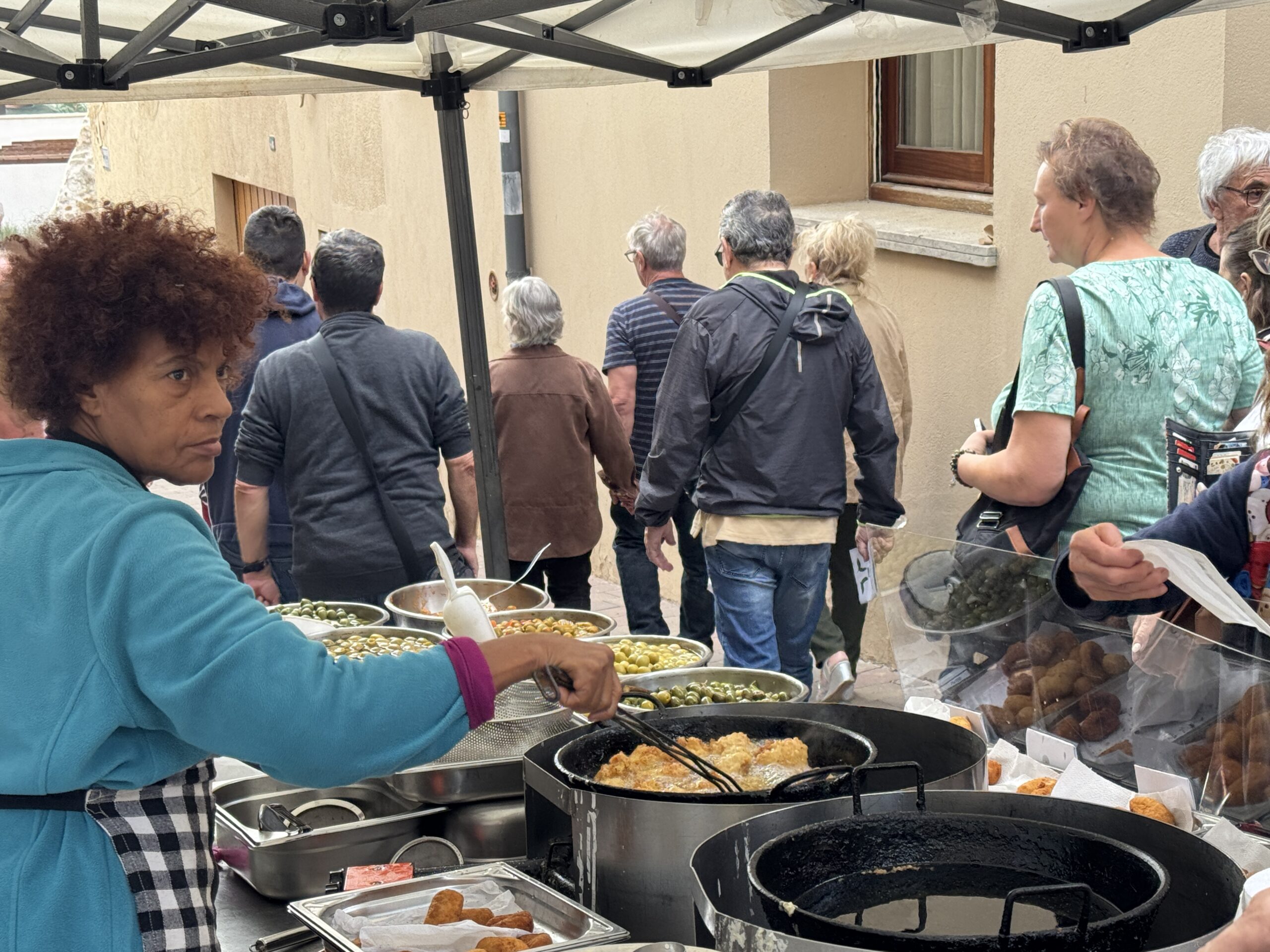 Когда мы добрались до Festa del Bolet de Seva 2025, там уже закончились основные массовые мероприятия. Гигантская грибная сковорода кормила последних жедающих. Но мы не претендовали на это блюдо — в сковороду грибы насыпают из ящиков, особо не перебирая — там и щепки, и всякий мусор. Из лесных грибов в этих ящиках только лисички. Плюс к ним продается в комплекте хлеб и вино, которые мы не едим. Мы прошли до хорошей грибной выставки и купили шиитаке с грибной фермы и варенье.