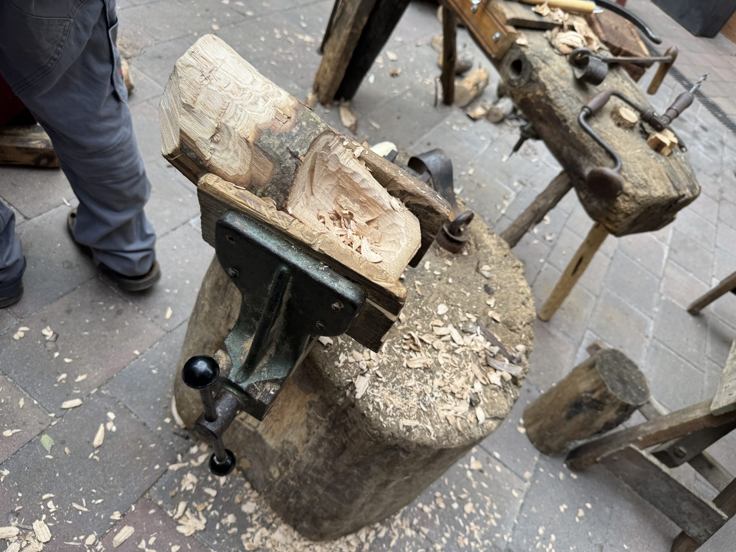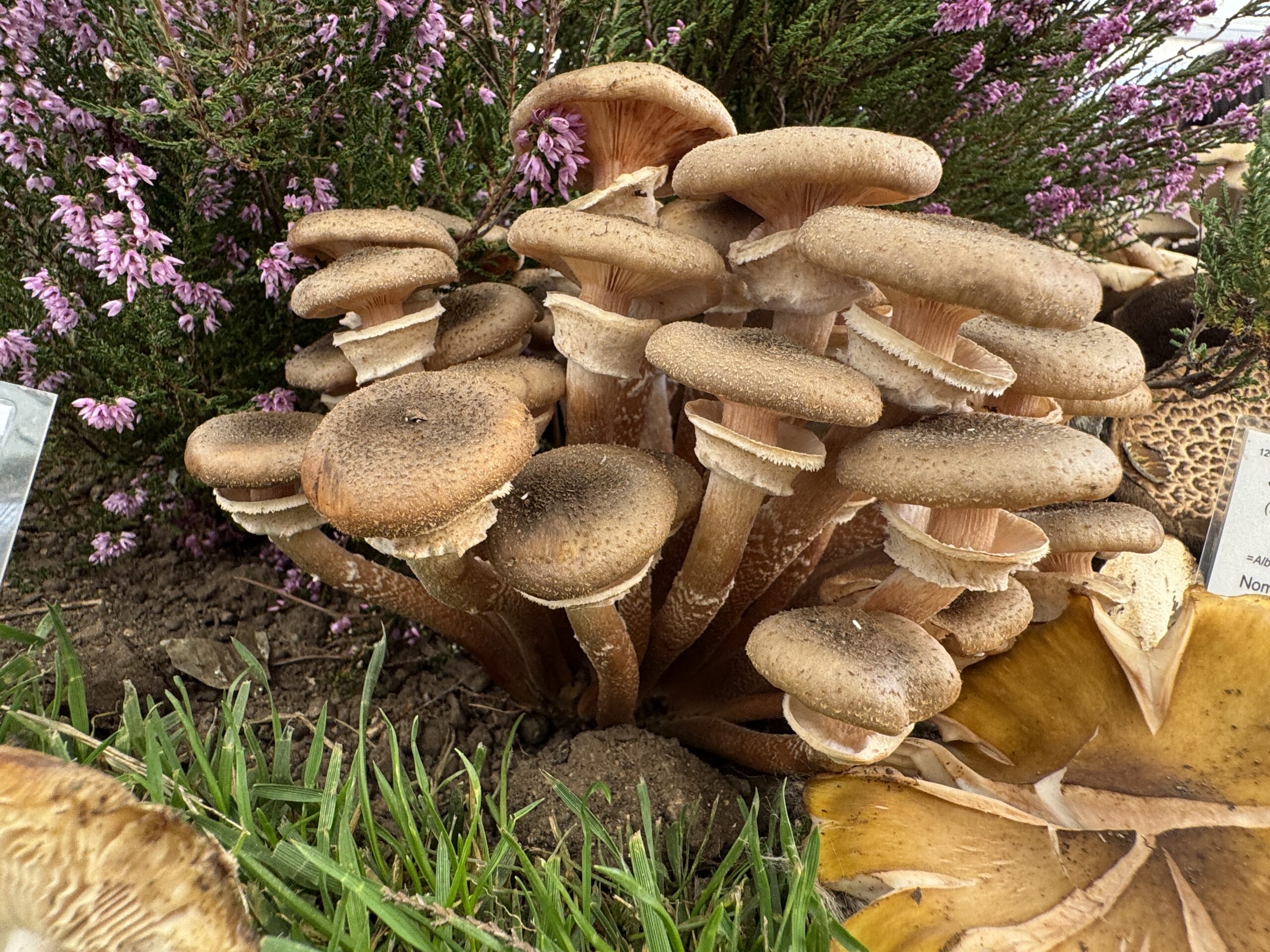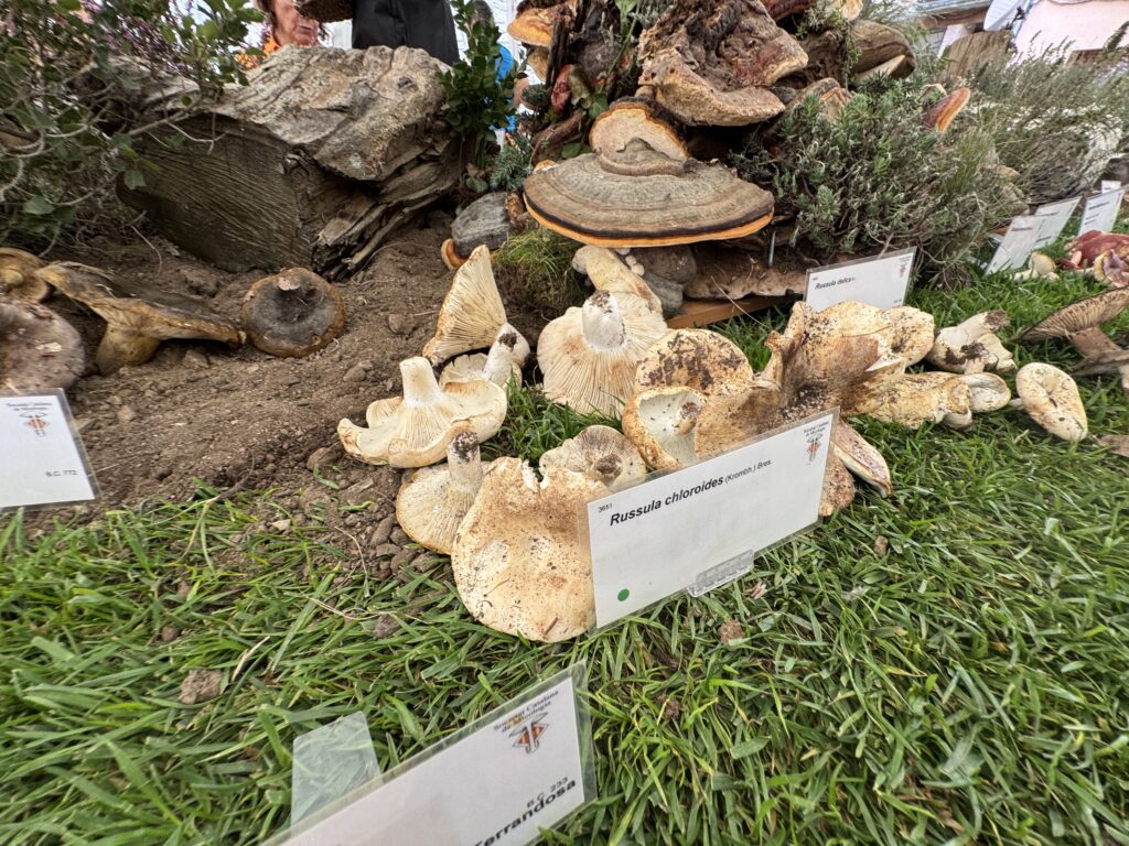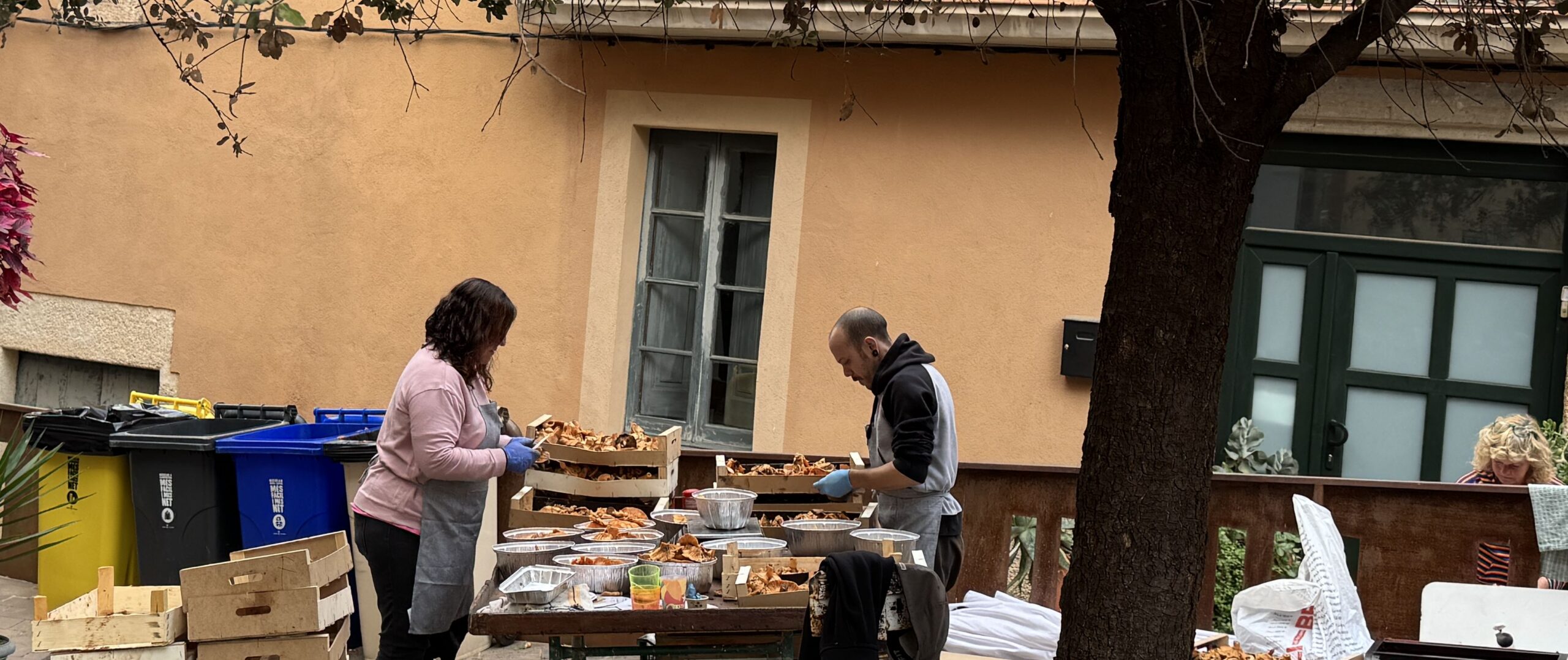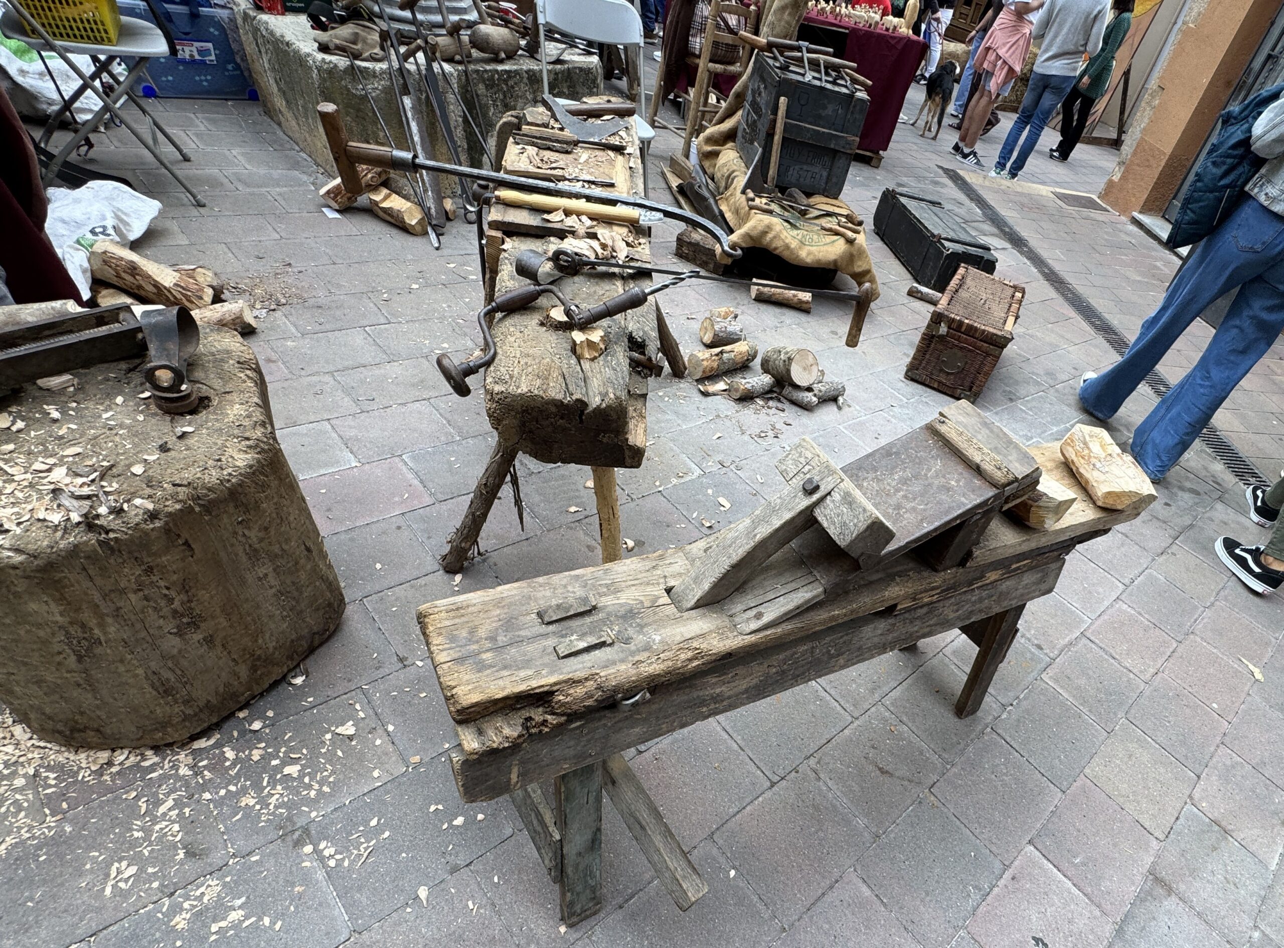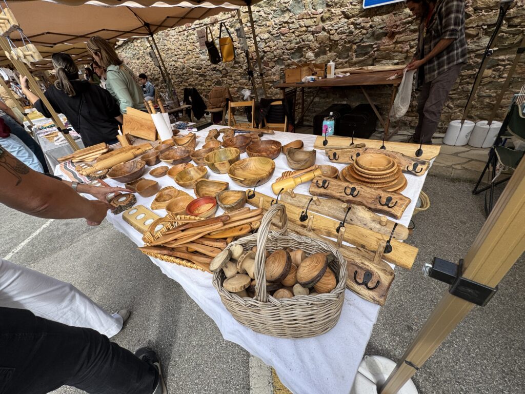 Когда мы добрались до Festa del Bolet de Seva 2025, там уже закончились основные массовые мероприятия. Гигантская грибная сковорода кормила последних жедающих. Но мы не претендовали на это блюдо — в сковороду грибы насыпают из ящиков, особо не перебирая — там и щепки, и всякий мусор. Из лесных грибов в этих ящиках только лисички. Плюс к ним продается в комплекте хлеб и вино, которые мы не едим. Мы прошли до хорошей грибной выставки и купили шиитаке с грибной фермы и варенье.