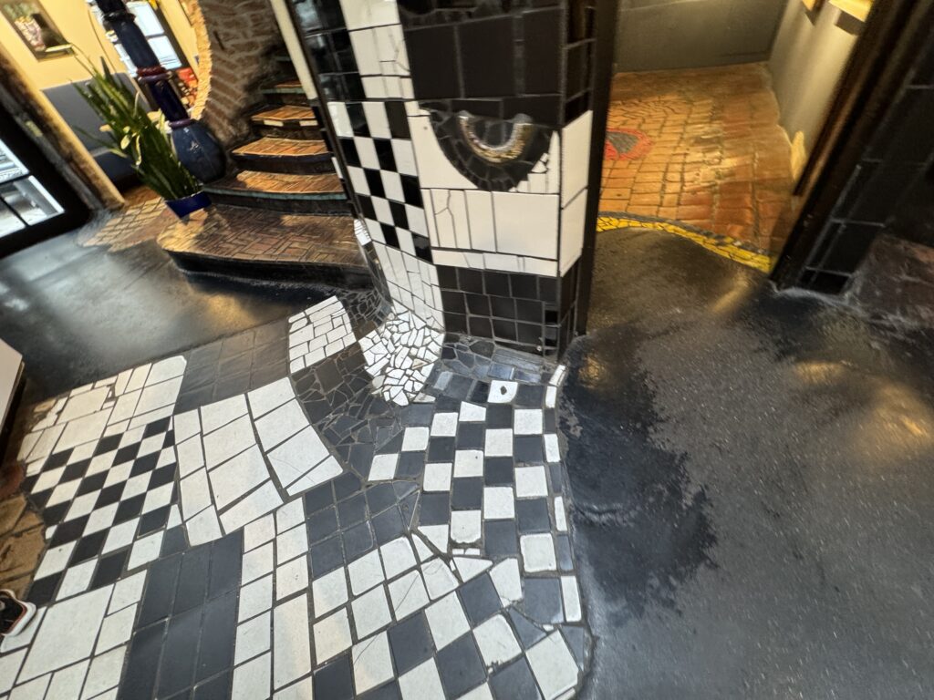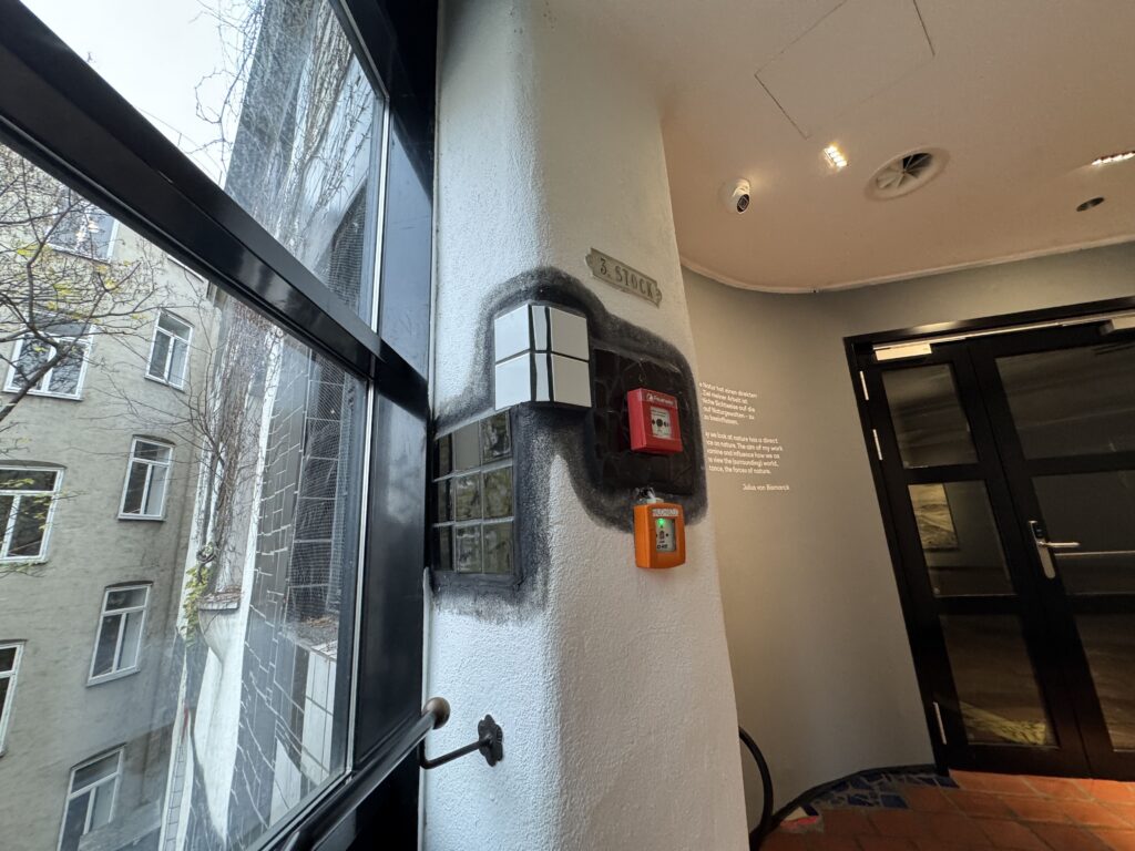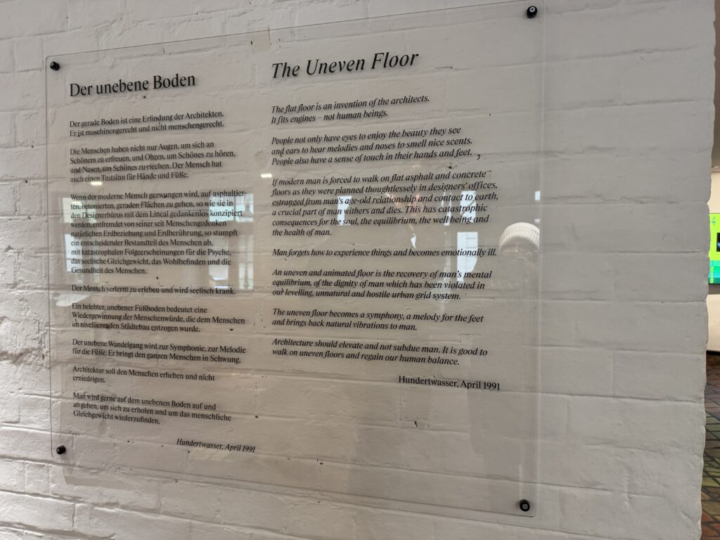 Хундертвассер считал себя «архитектурным доктором», использующим нерегулируемые нарушения и «барьеры красоты» для «лечения» уродливых, «боковых» зданий.
