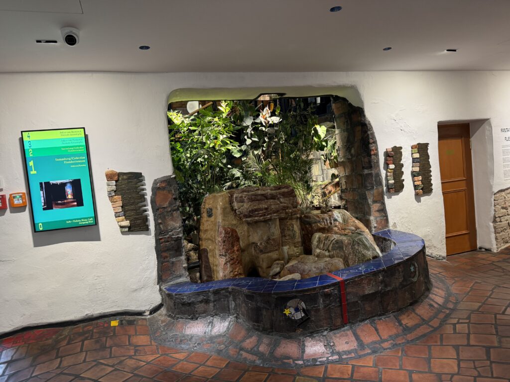 Картины Хундертвассера находятся в коллекциях крупнейших музеев мира, таких как Музей современного искусства (MoMA) и Музей Соломона Р. Гуггенхайма в Нью-Йорке, Музей Стеделийк в Амстердаме, Музей Гуггенхайма в Венеции и Центр Помпиду в Париже. В 2002 году в Вангареи, Новая Зеландия, открылся Центр искусств Хундертвассера с галереей маори Вайрау, где проходит постоянная музейная выставка «Хундертвассер в Новой Зеландии 1973–2000».»