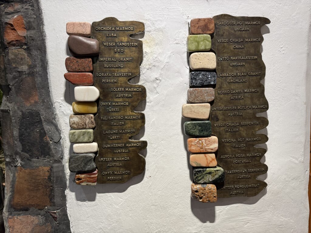 Все гобелены Хундертвассера, созданные впоследствии ткачами по выбору художника, были изготовлены без картонных шаблонов. При переносе своих работ на гобелен Хундертвассер стремился к свободному преобразованию одной из своих картин в другой вид искусства, а также к художественной интерпретации спелеологами.»
