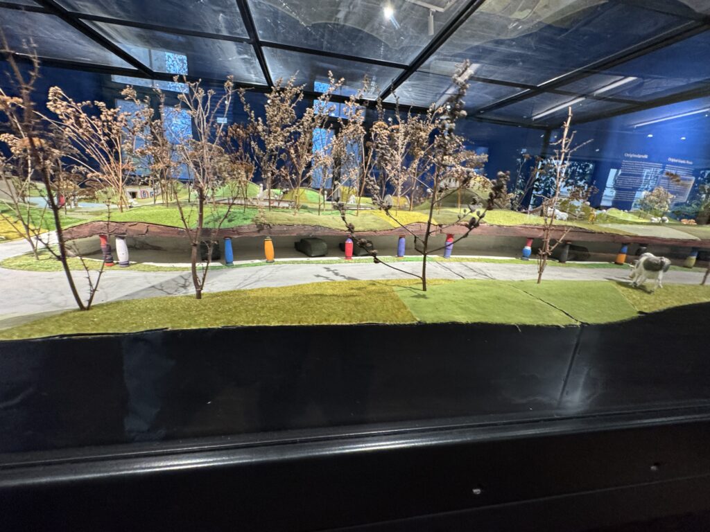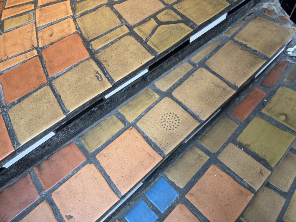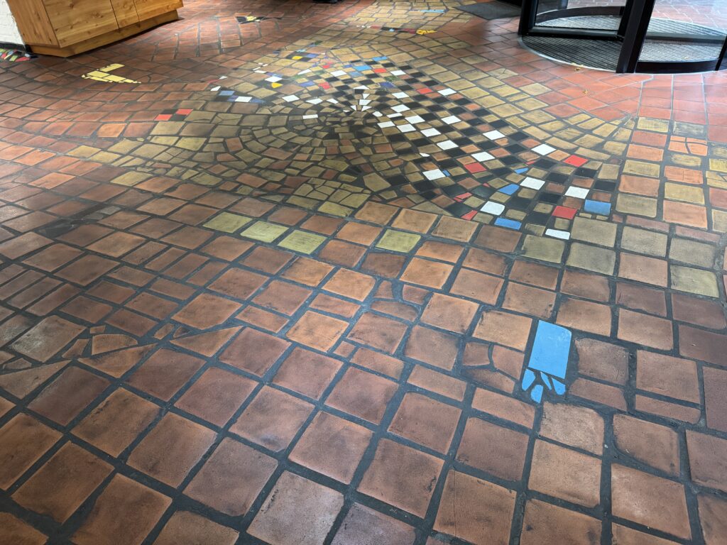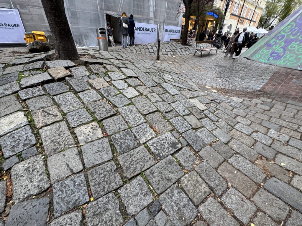 Неровный, шероховатый пол символизирует восстановление человеческого достоинства, которое было украдено у людей в результате выравнивания городской застройки.