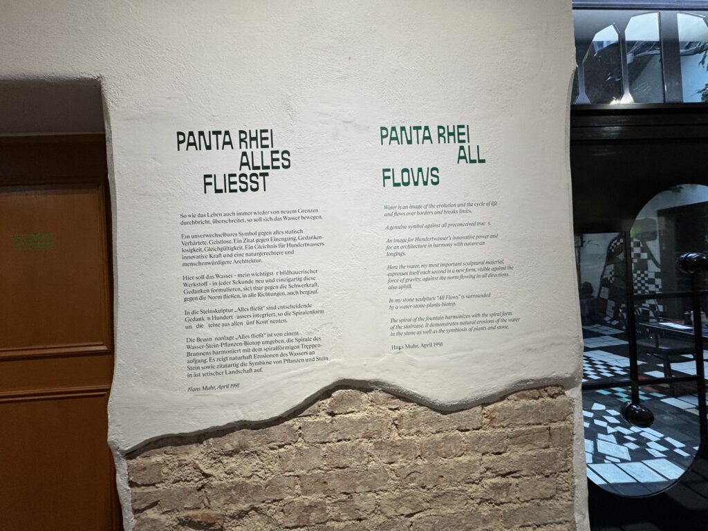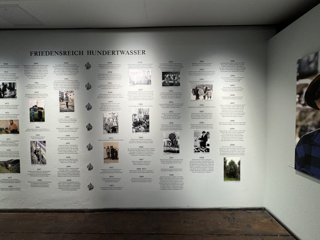 Начав с Дома Хундертвассера в Вене, завершенного в 1965 году, он в конечном итоге реализовал более тридцати архитектурных проектов по всему миру, в гармонии с природой и мечтами отдельных людей, включая право жильцов на использование окон, неровные полы, деревья, растущие на крышах, и засаживание крыш деревьями.»