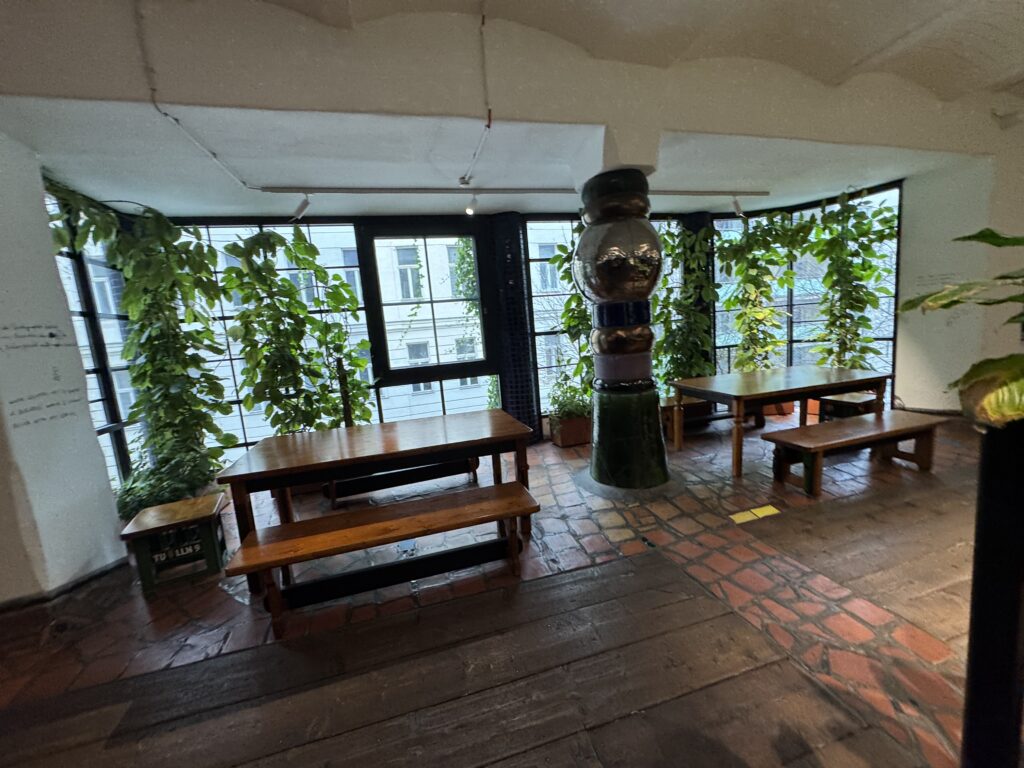 Из окон Венского художественного дома на улице Унтере Вайсгерберштрассе в Вене вырастают десять деревьев-жильцов. Эти деревья видны издалека и приносят пользу многим людям, особенно тем, кто гуляет вокруг дома и живет поблизости.