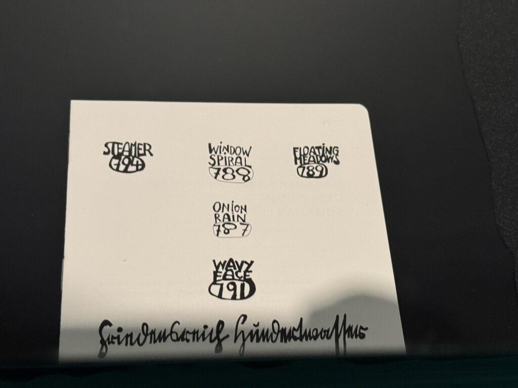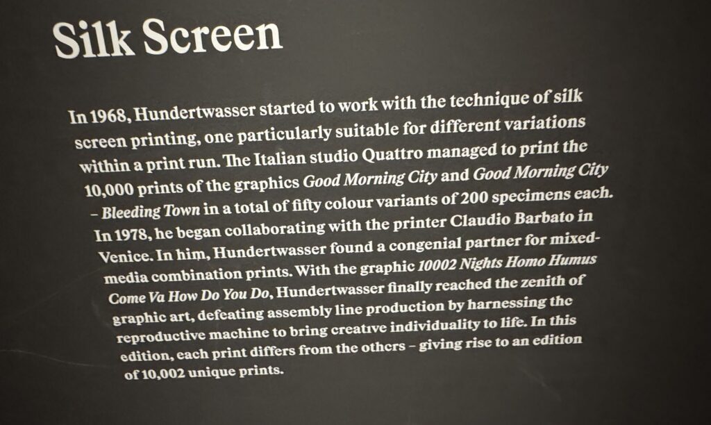 Хундертвассер стремился к полной прозрачности в отношении даты создания и тиража. Помимо почерка и номера экземпляра, на листе тиснями или отпечатками были указаны многочисленные графические цветовые варианты, технологии печати и такие особенности, как Мого Хата.»