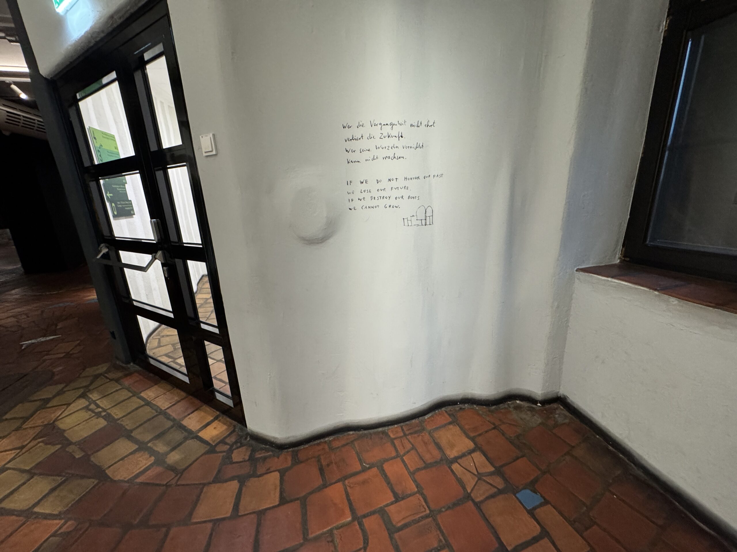Хундертвассер считал себя «архитектурным доктором», использующим нерегулируемые нарушения и «барьеры красоты» для «лечения» уродливых, «боковых» зданий.