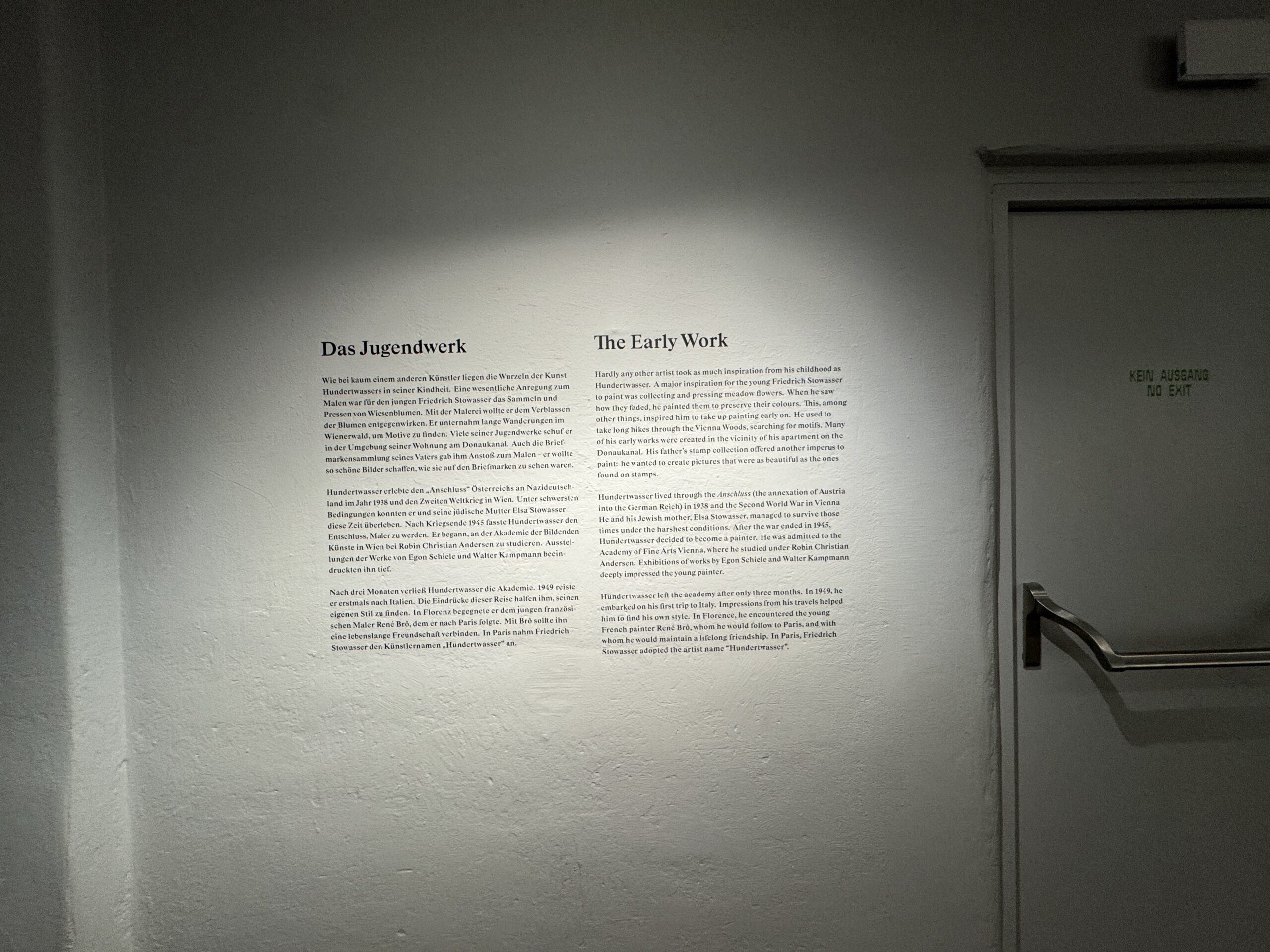 Хундертвассер пережил аншлюс (аннексию Австрии Германским рейхом) в 1938 году и Вторую мировую войну в Вене. Он и его мать, еврейка Эльза Штовассер, сумели выжить в самые суровые времена. После окончания войны в 1945 году Хундертвассер решил стать художником. Он поступил в Венскую академию изящных искусств, где учился у Робина Кристиана Андерсена. Выставки работ Эгона Шиле и Вальтера Кампмана произвели на молодого художника глубокое впечатление.
