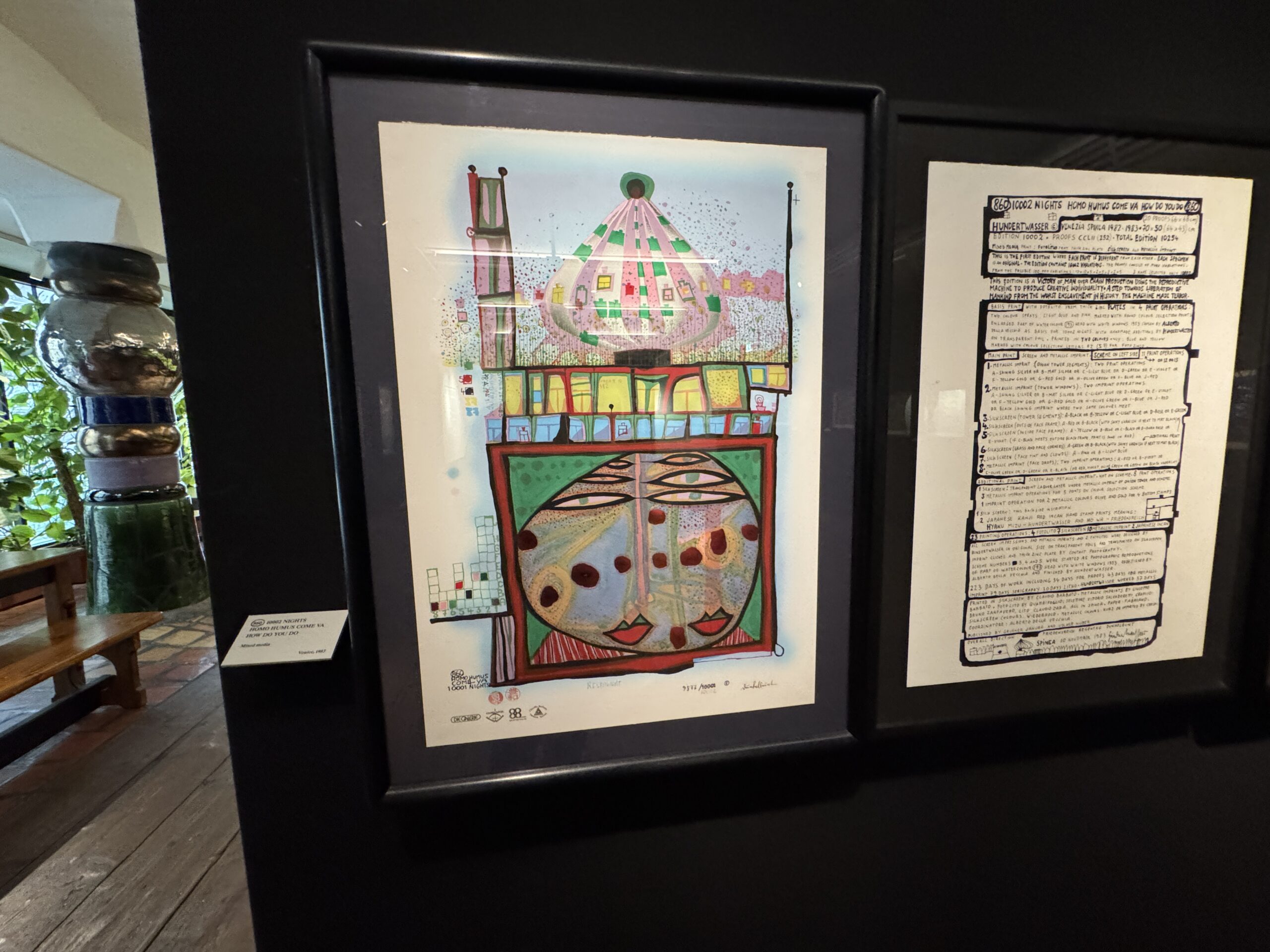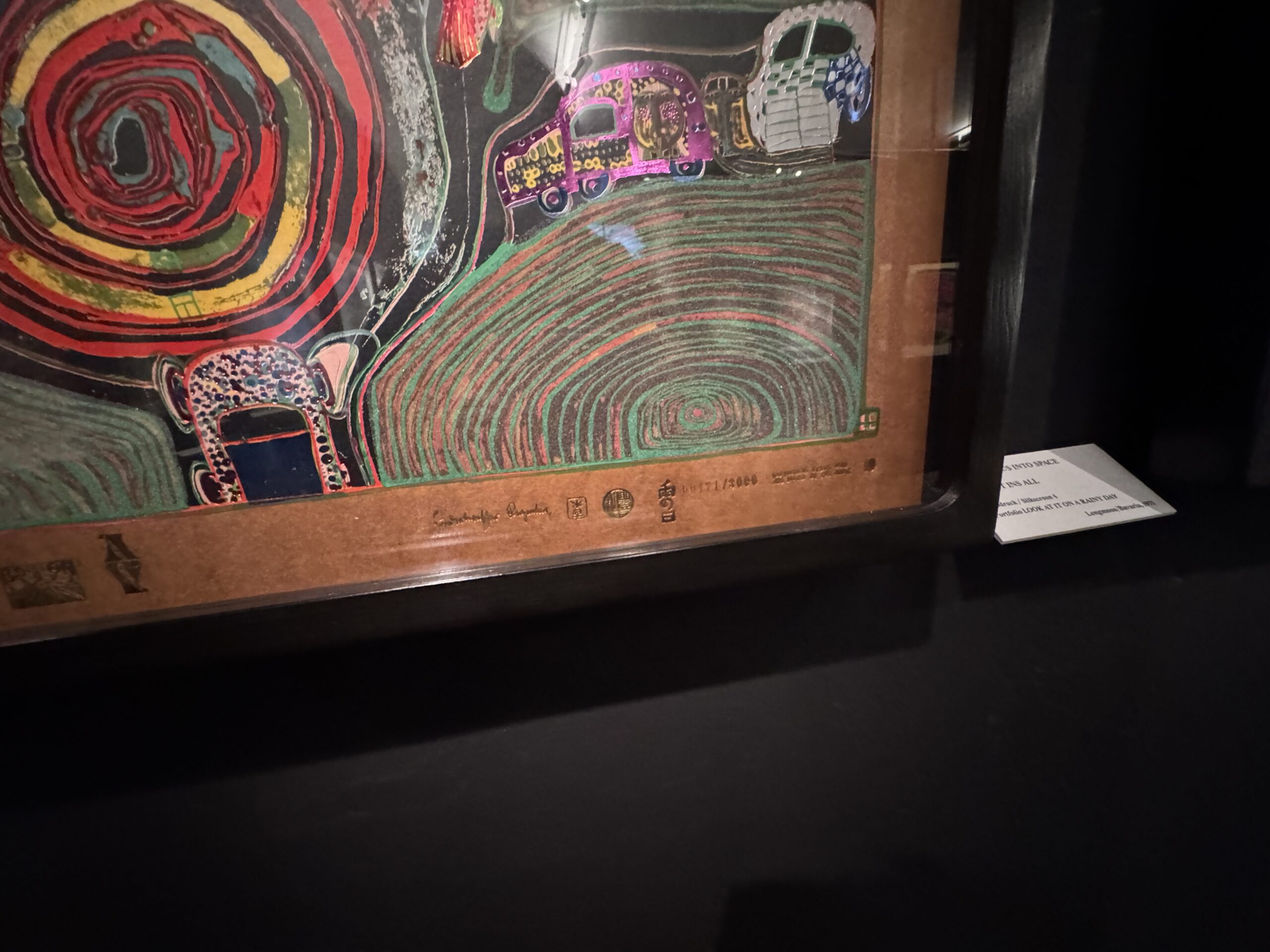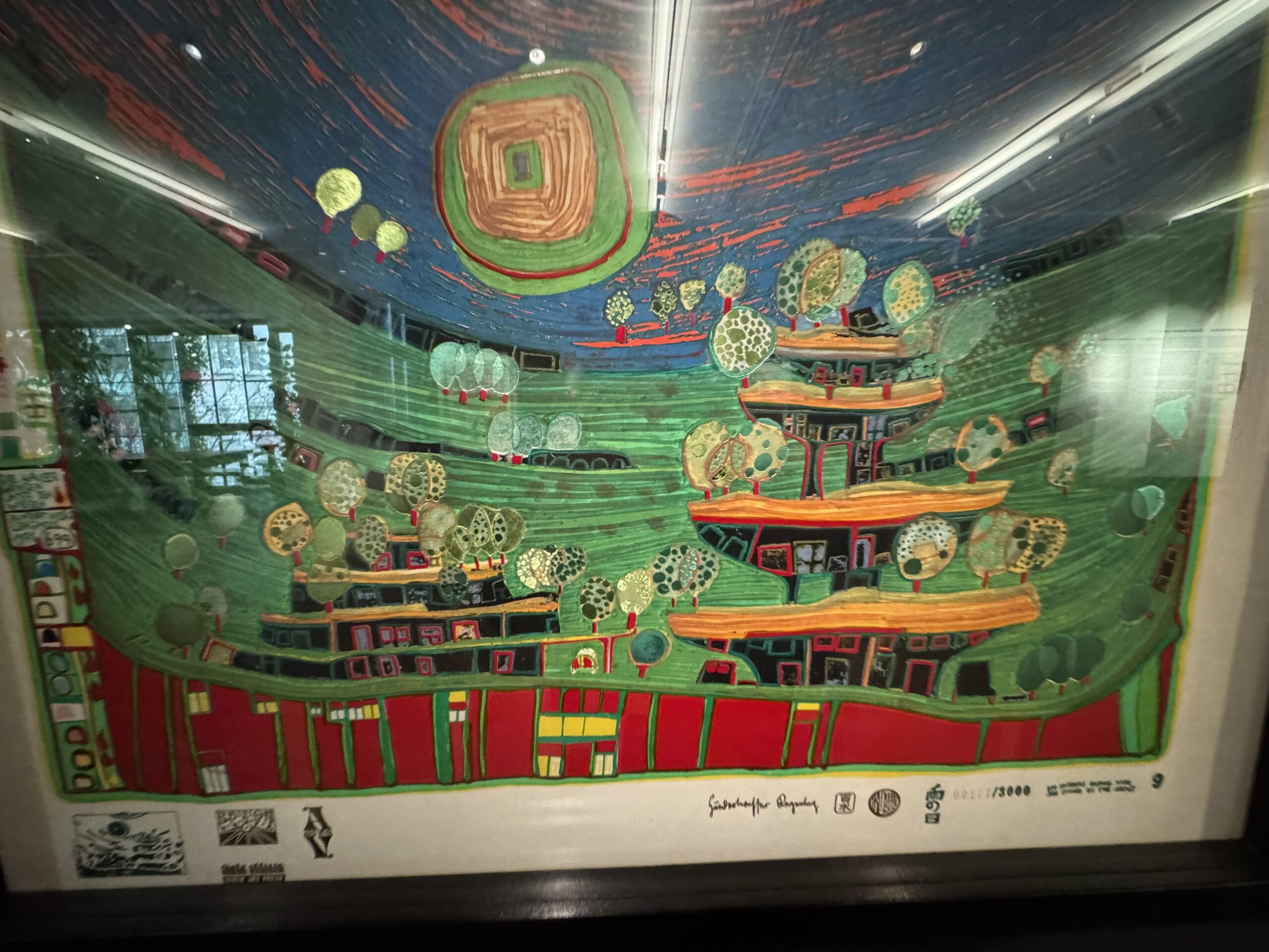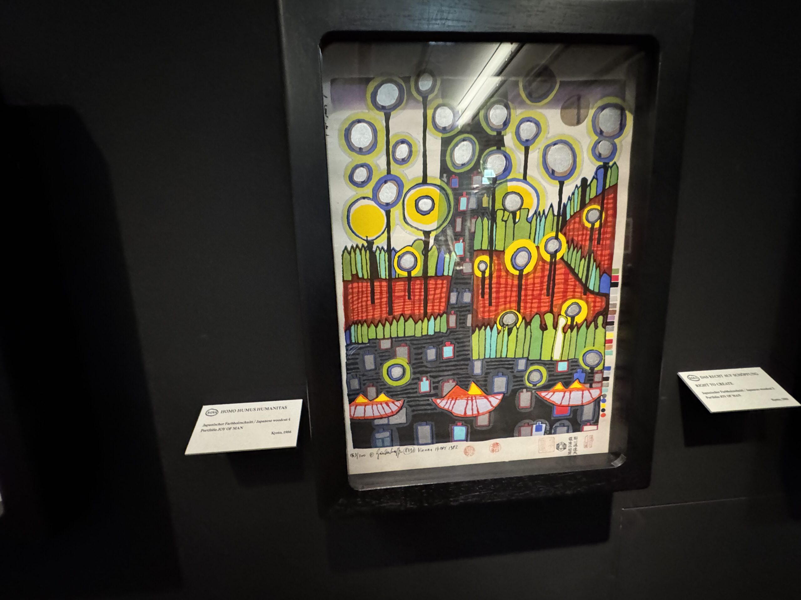 Хундертвассер стремился к полной прозрачности в отношении даты создания и тиража. Помимо почерка и номера экземпляра, на листе тиснями или отпечатками были указаны многочисленные графические цветовые варианты, технологии печати и такие особенности, как Мого Хата.»