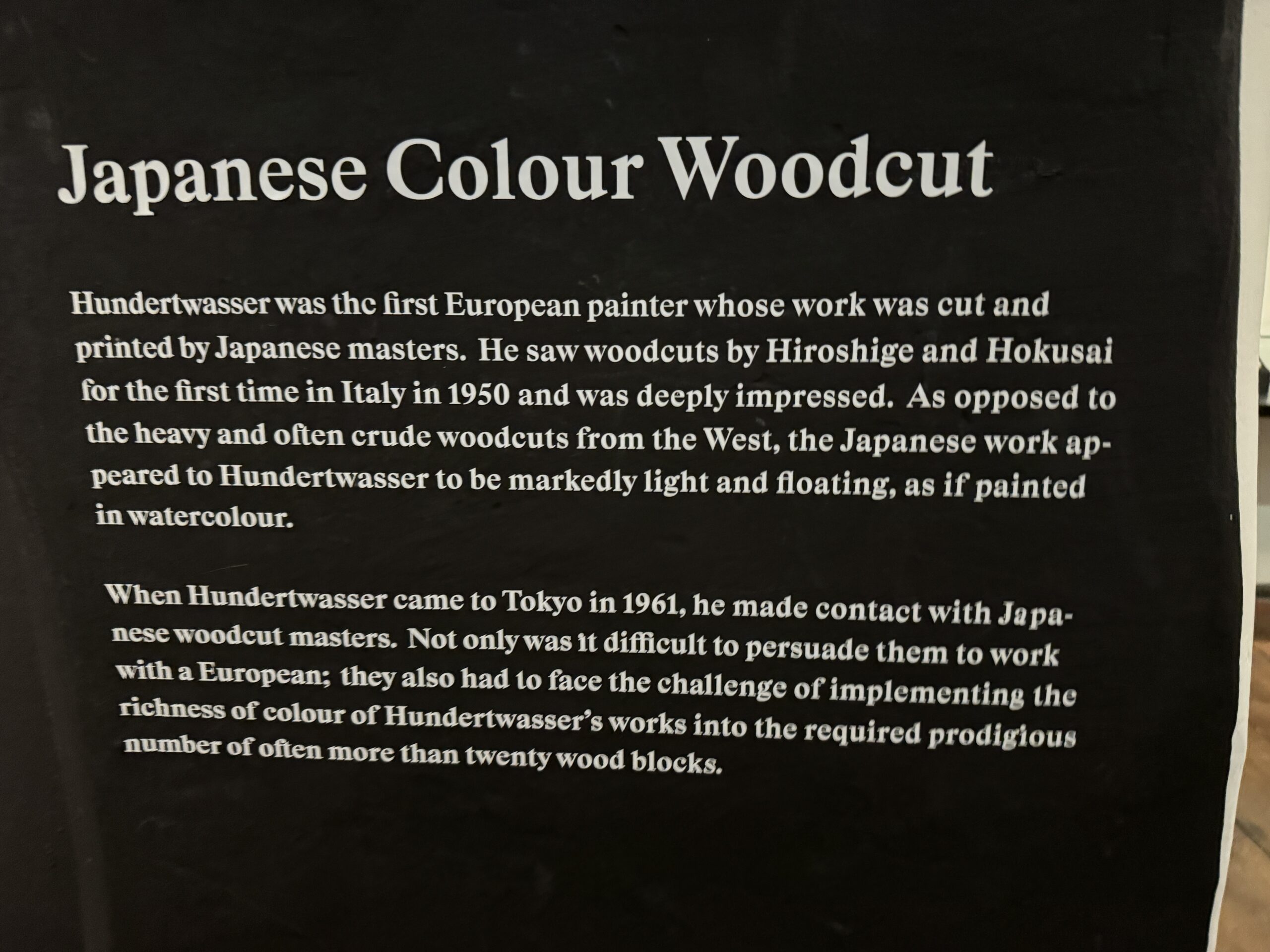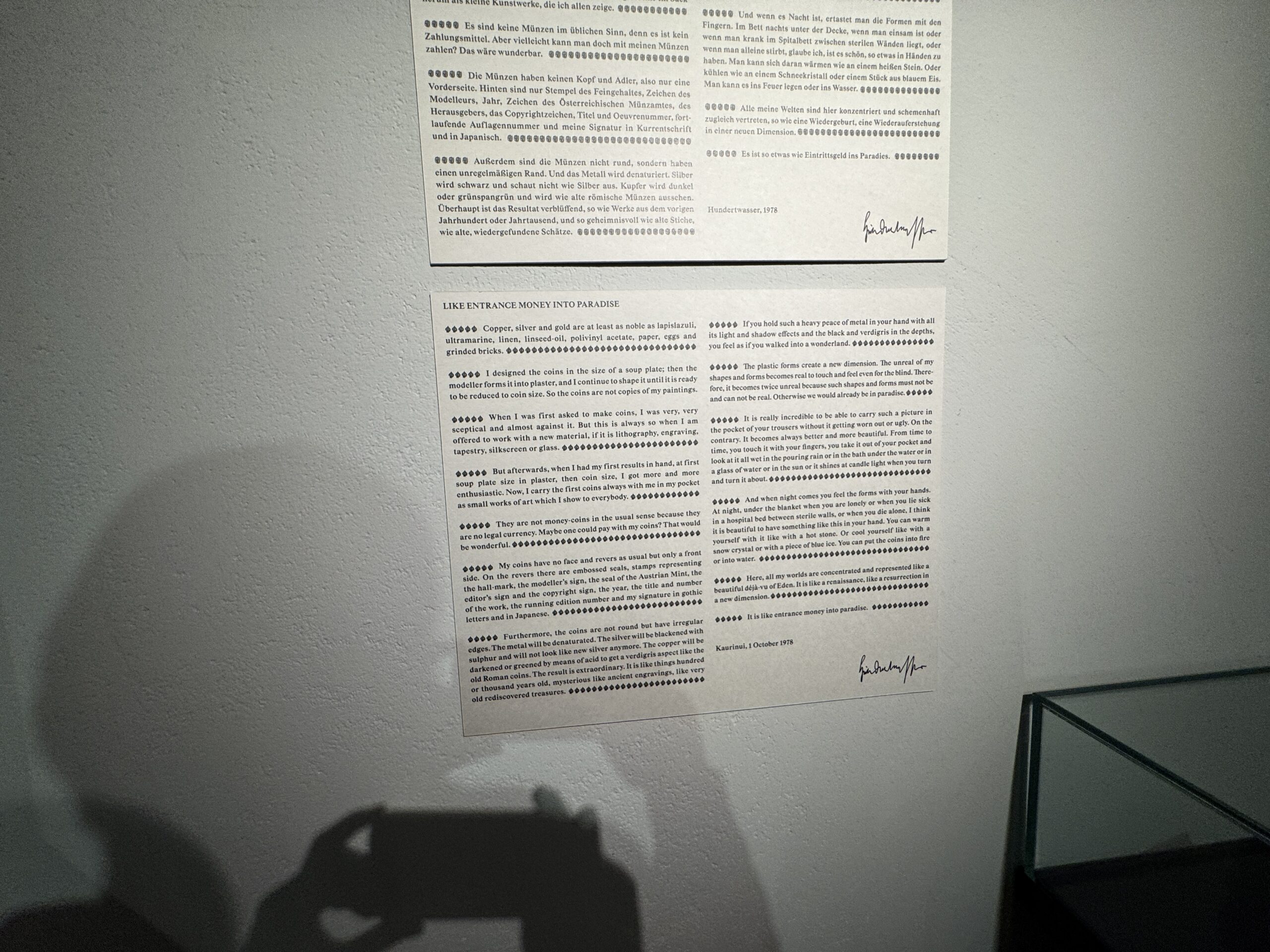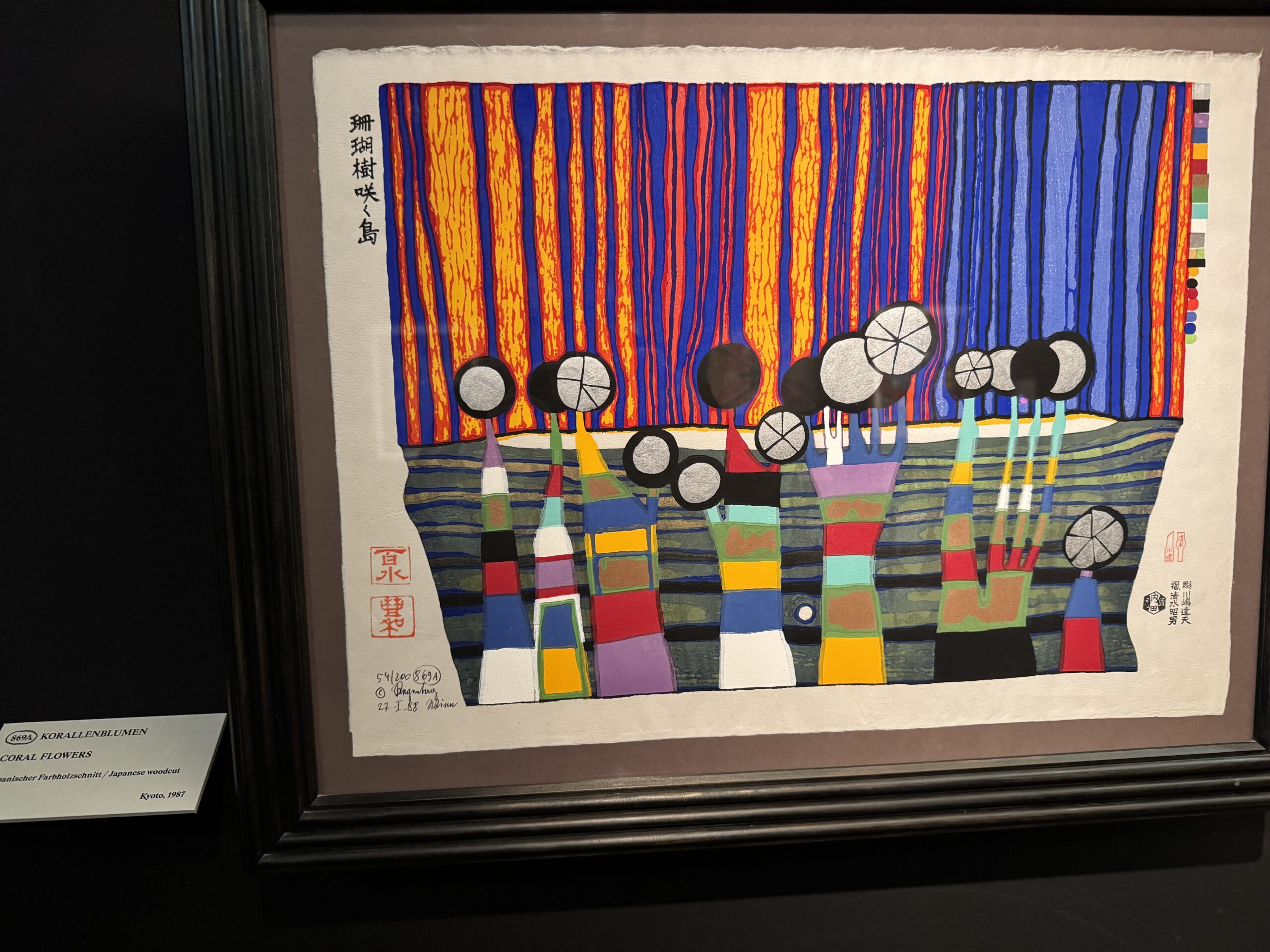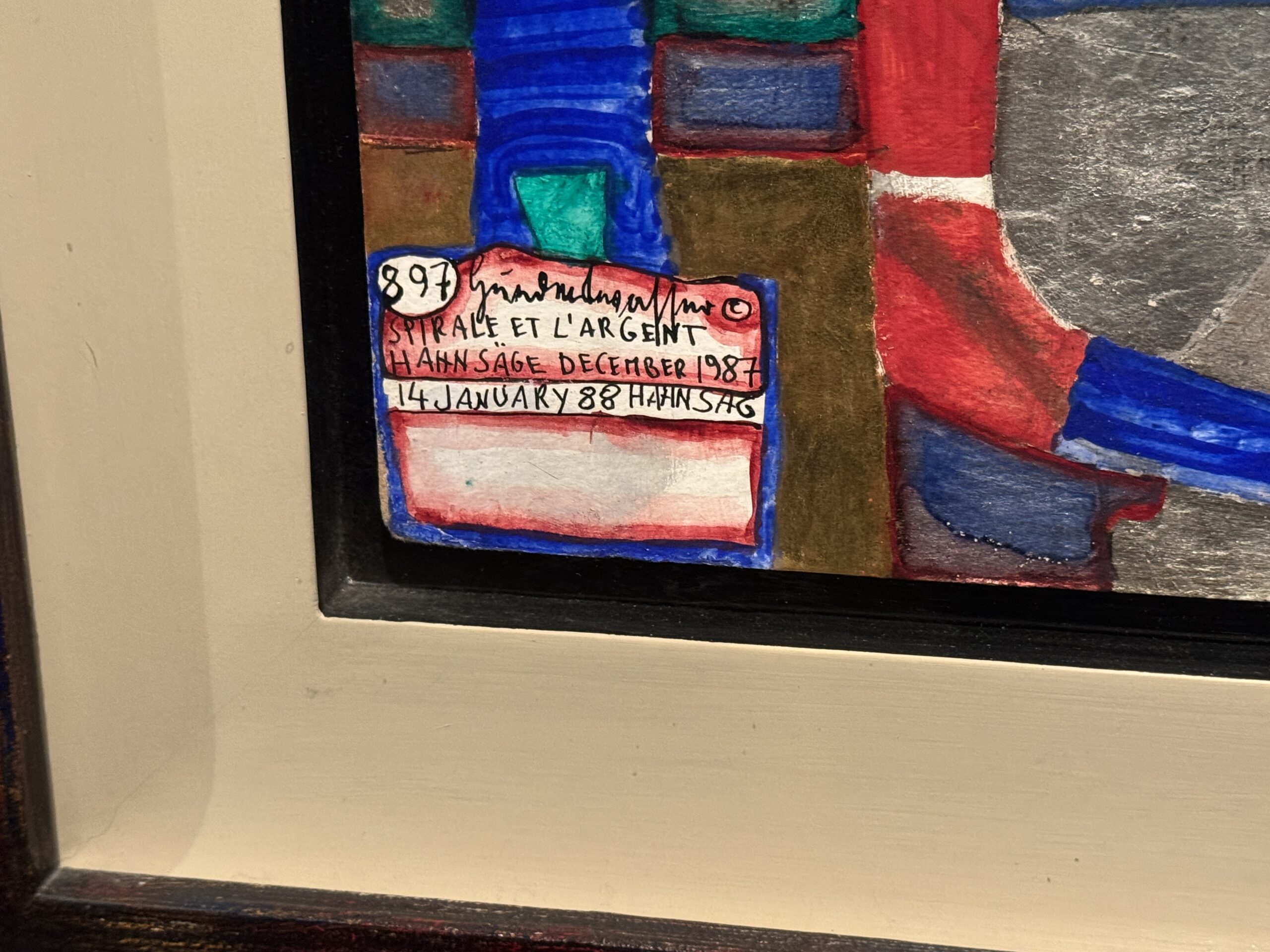 Хундертвассер стремился к полной прозрачности в отношении даты создания и тиража. Помимо почерка и номера экземпляра, на листе тиснями или отпечатками были указаны многочисленные графические цветовые варианты, технологии печати и такие особенности, как Мого Хата.»