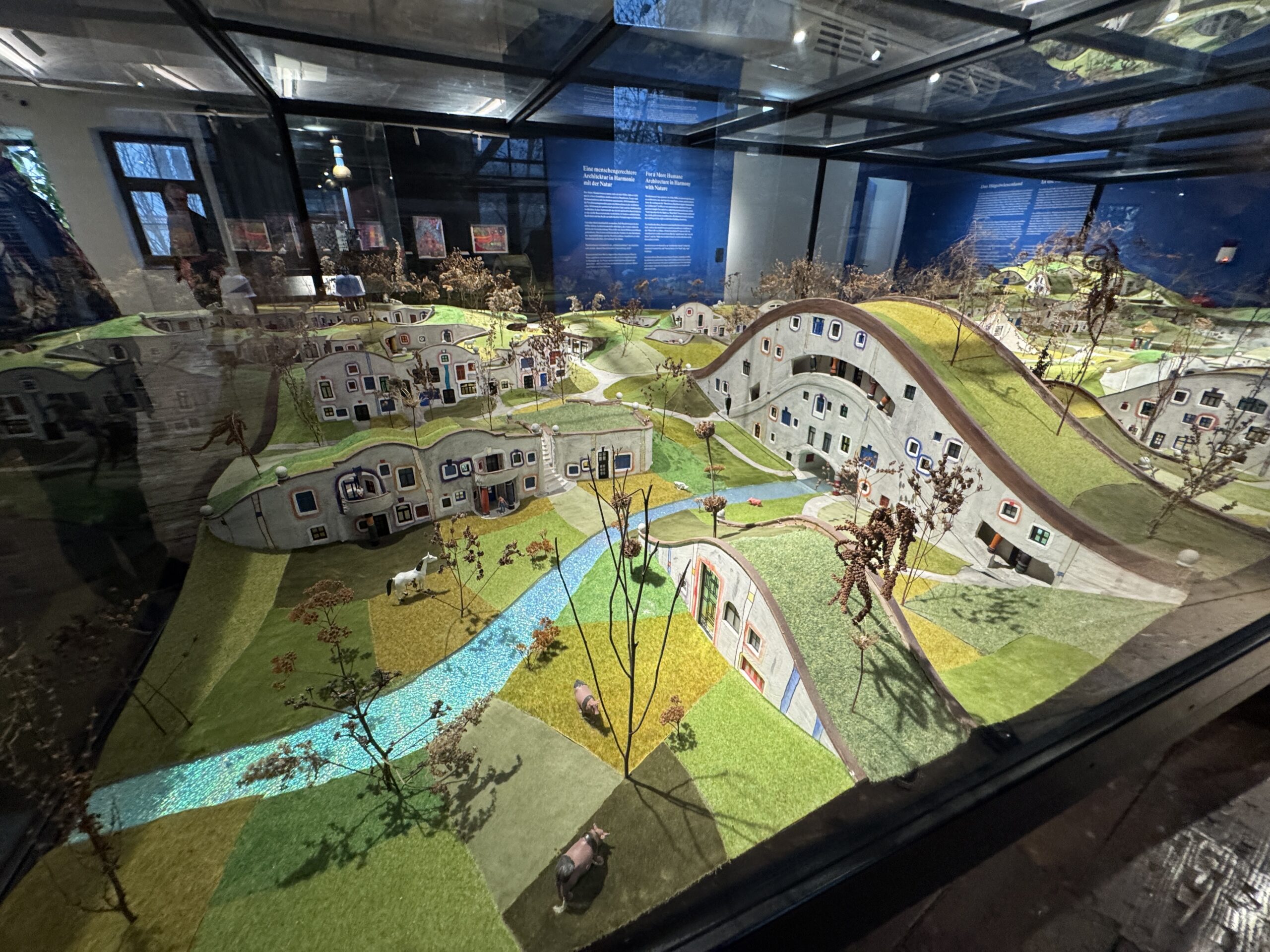 В качестве альтернативы чрезмерной застройке Хундертвассер в 1980-х годах спланировал жилой комплекс «Луговые холмы» в северной Вене. Этот поселок из энергоэффективных домов, органично вписанных в ландшафт, был спроектирован таким образом, чтобы расти вместе с семьями, которые в нем живут. Все здания должны были иметь зеленые крыши, которые можно было бы использовать как луга, леса и огороды. Проект так и не был реализован в Вене из-за сопротивления местной гражданской инициативы, которая опасалась, что туризм нарушит архитектурное чудо Хундертвассера.