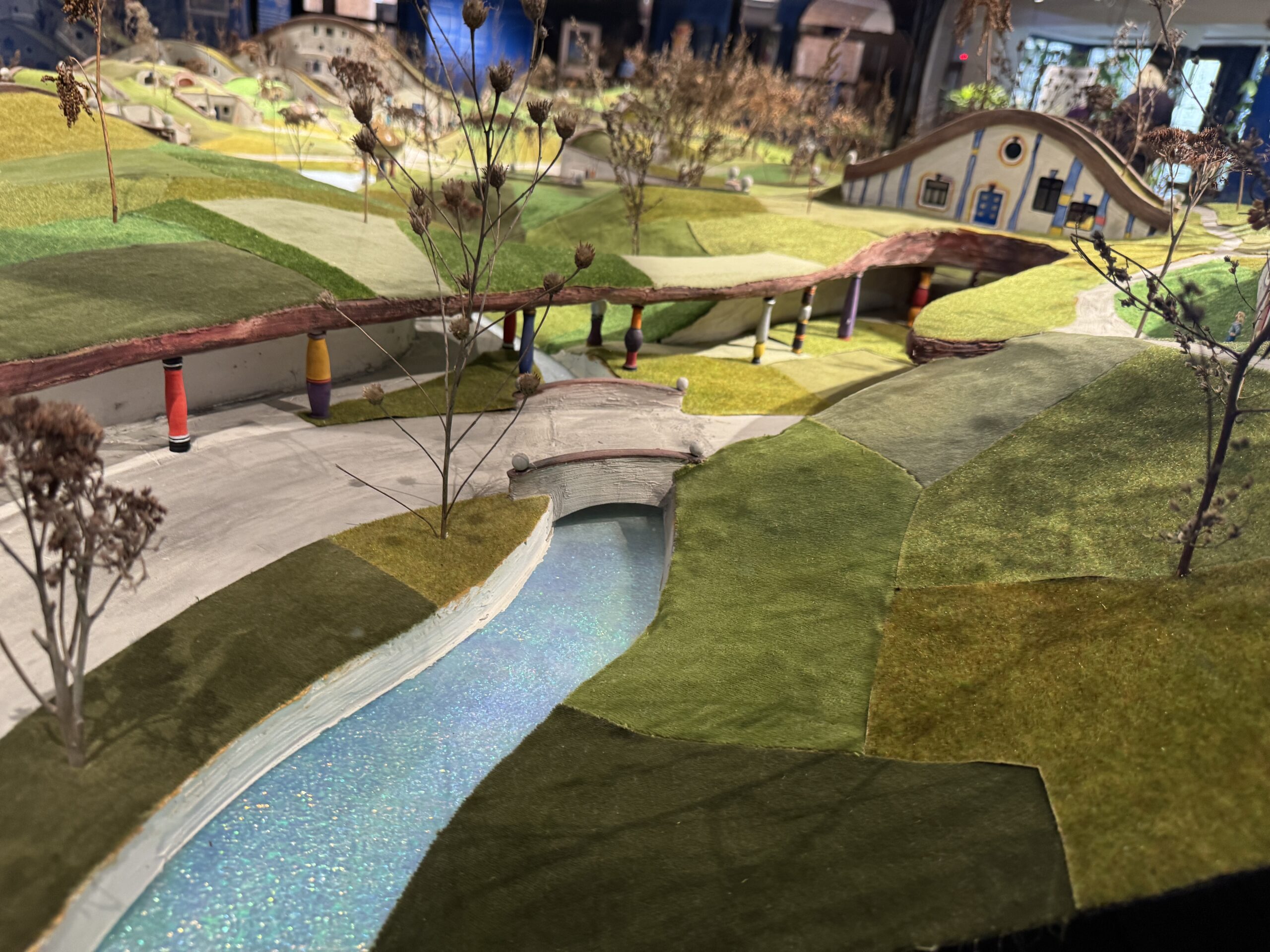 Другой проект, концепция «Холмы» Хундертвассера, в конечном итоге была реализована в 1990-х годах, но не в виде городского жилого комплекса. Вместо этого она была доработана как развлекательный комплекс для термального курорта Рогнер-Бад-Блюмау в восточной Штирии. Там Хундертвассер смог построить здания, органично вписанные в луговой ландшафт, подобные тем, которые он проектировал в 1970-х годах как прототипы своего видения жизни в гармонии с природой, такие как «Дом-прорезьба» (Augenschlitzhaus) и «Дом-лесной двор» (Waldhofhaus).