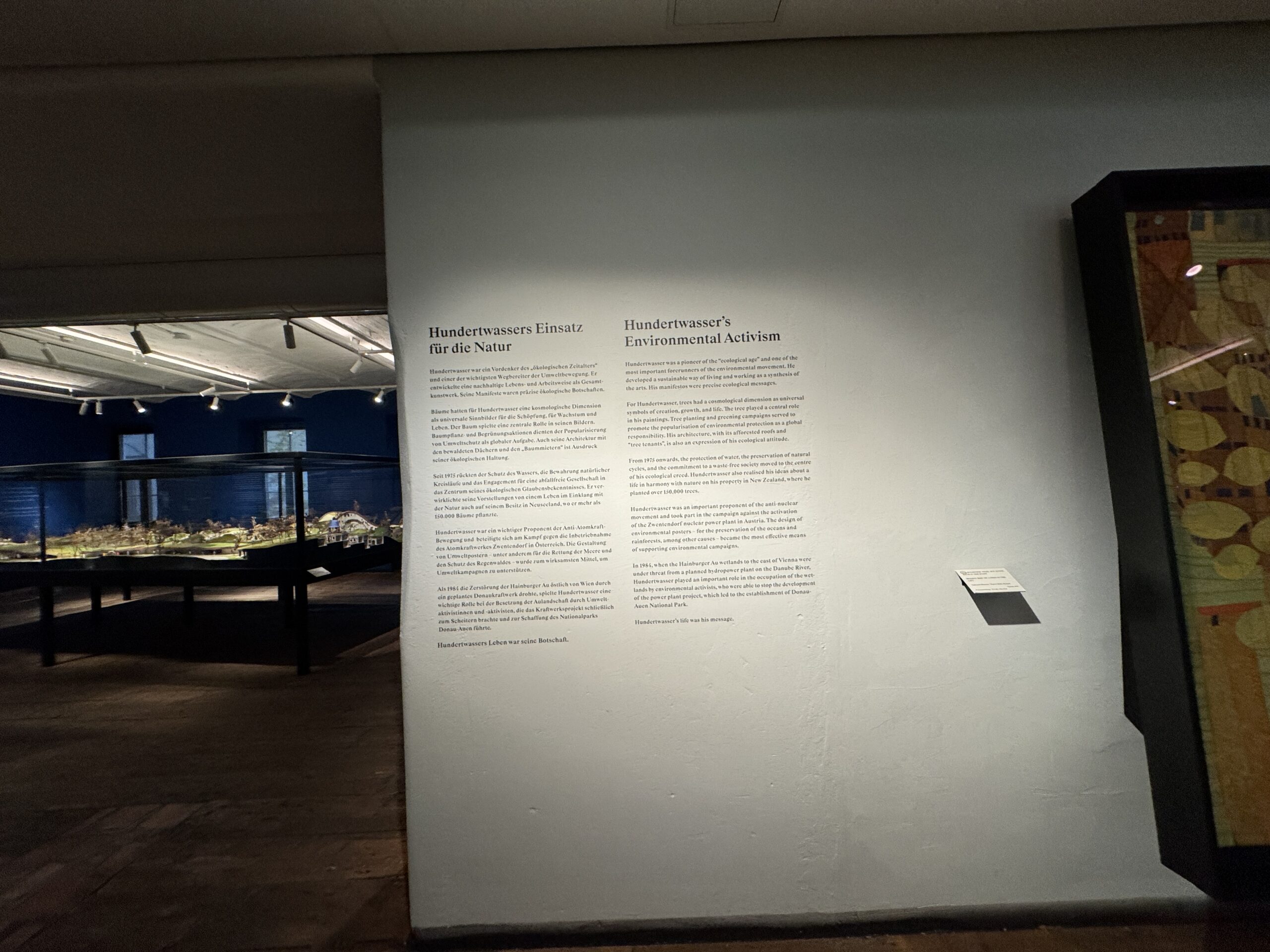 В 1984 году, когда водно-болотные угодья Хайнбургер-Ау оказались под угрозой из-за планируемой гидроэлектростанции на реке Дунай, Хундертвассер сыграл важную роль, сумев остановить освоение этих земель экологическими активистами в рамках проекта строительства электростанции, что привело к созданию Национального парка Дунай-Ауэн.