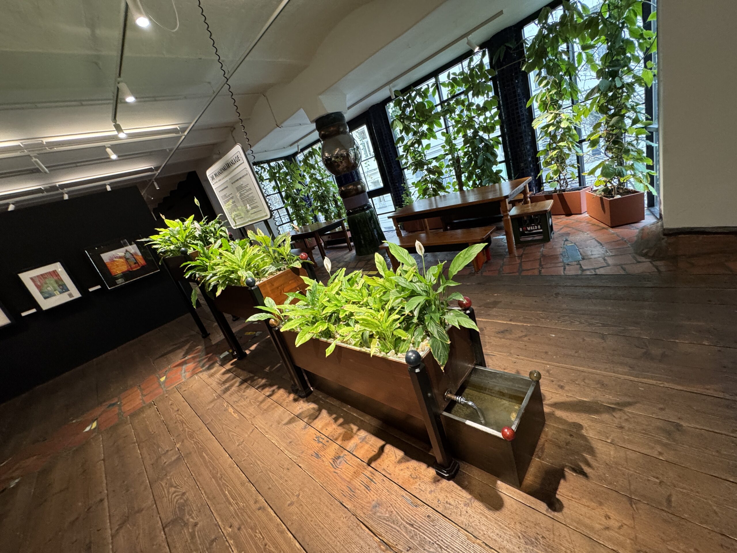 Для Хундертвассера дерево имело космологическое измерение как универсальный символ созидания, роста и жизни. Дерево играло центральную роль в его картинах. Кампании по посадке деревьев и озеленению способствовали глобальному распространению ответственности за защиту окружающей среды. Его архитектура с ее облесенными крышами и «деревьями-жителями» является выражением его экологического подхода.