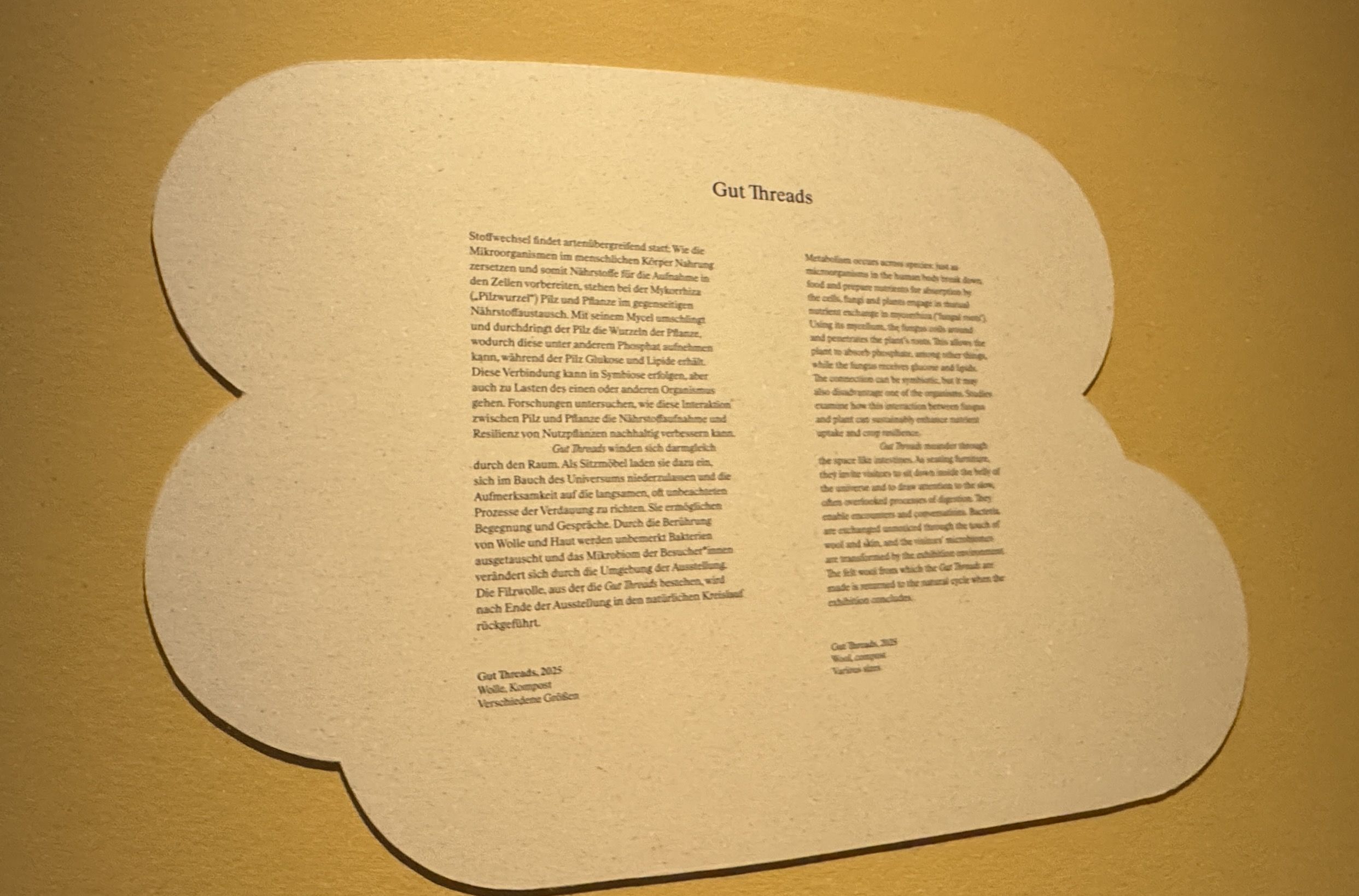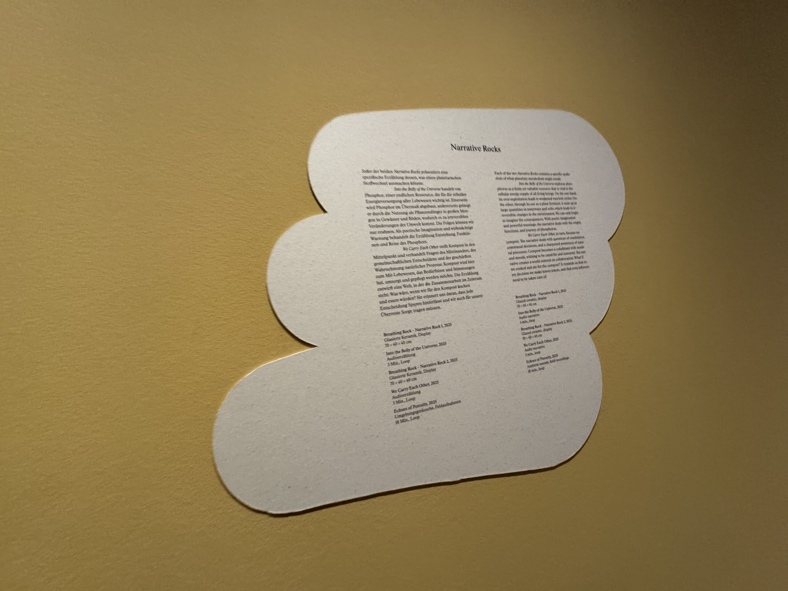 Все гобелены Хундертвассера, созданные впоследствии ткачами по выбору художника, были изготовлены без картонных шаблонов. При переносе своих работ на гобелен Хундертвассер стремился к свободному преобразованию одной из своих картин в другой вид искусства, а также к художественной интерпретации спелеологами.»