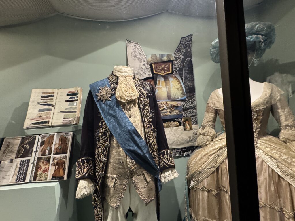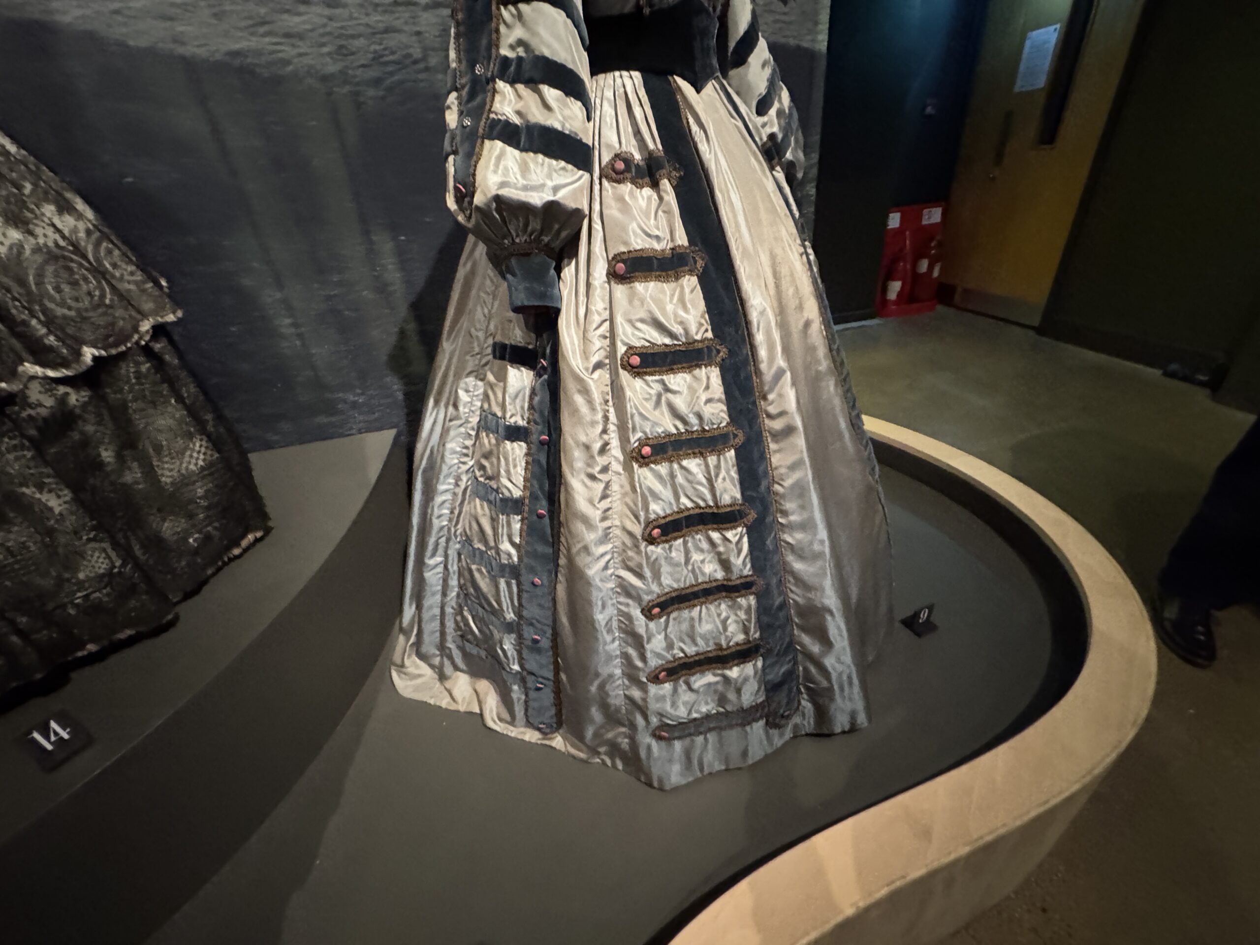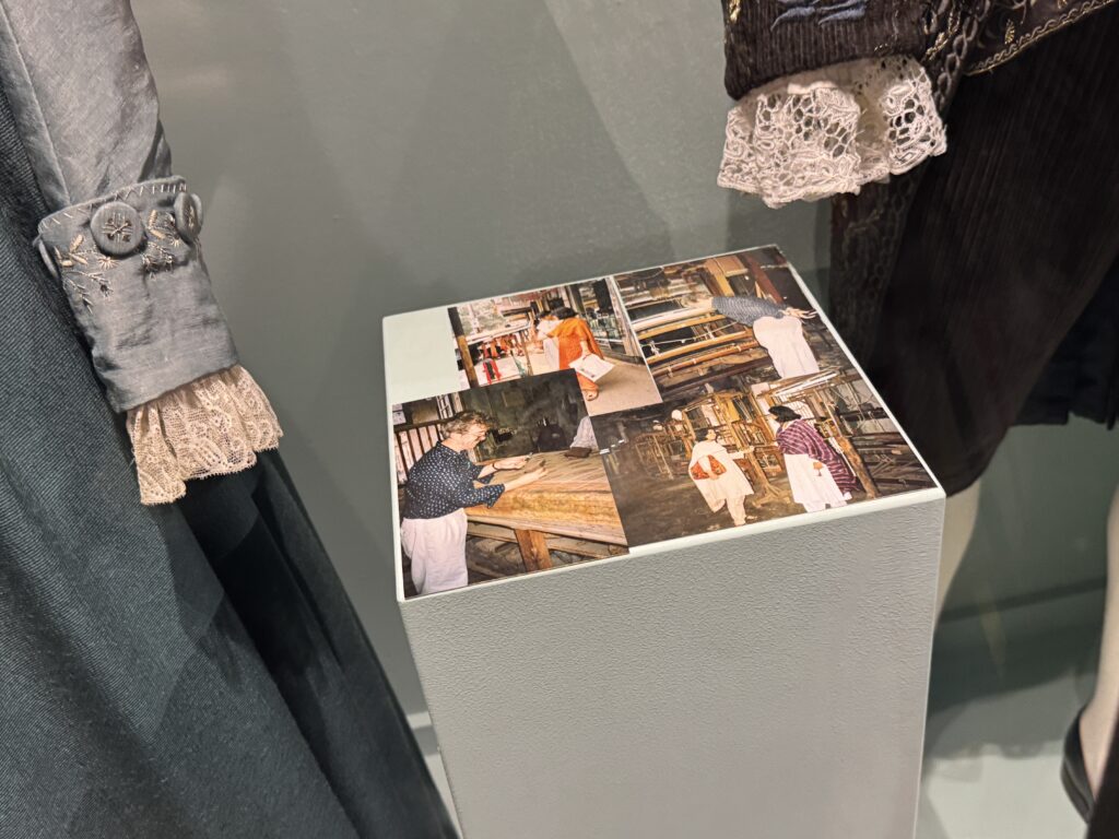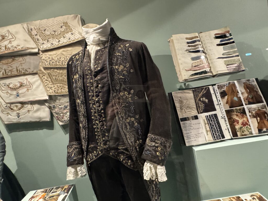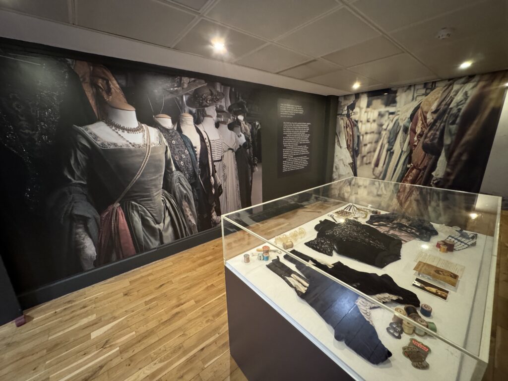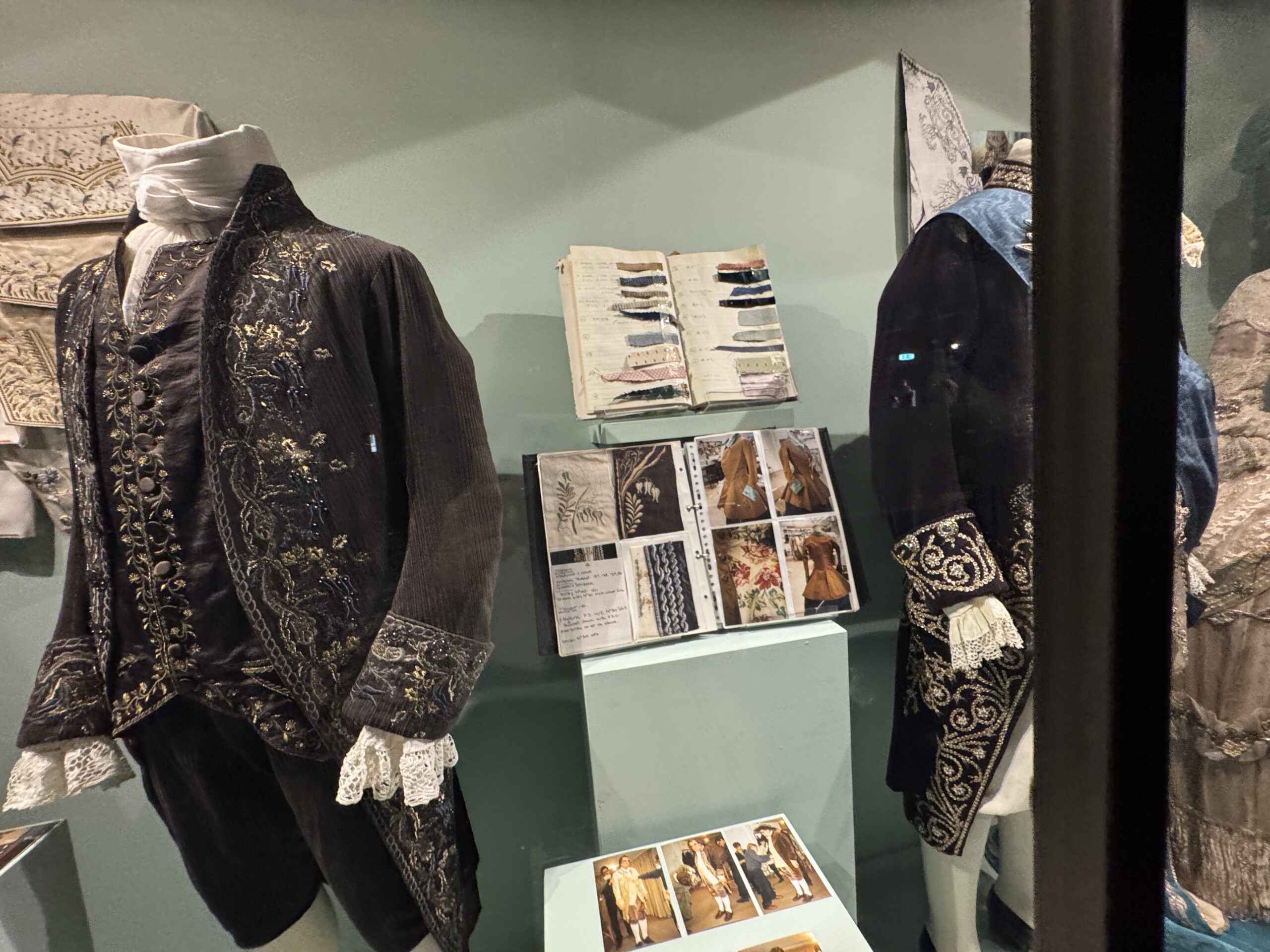 В маленьком зале на первом этаже был стенд с рабочими инструментами костюмеров и историческая линия.
