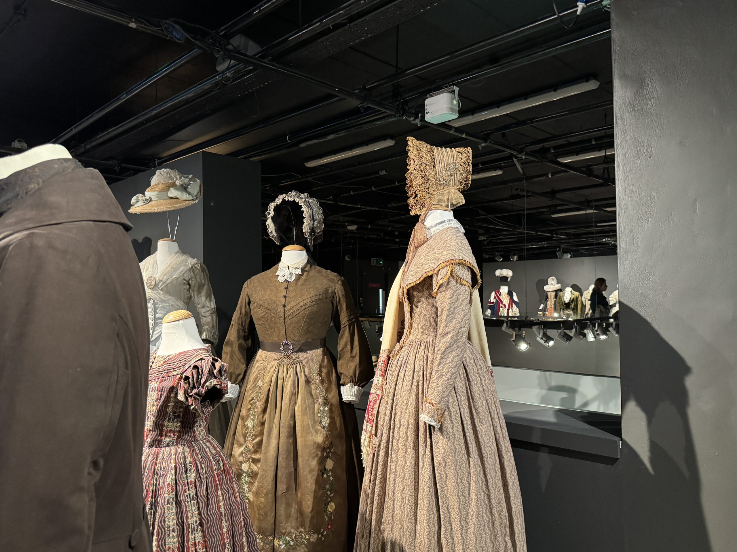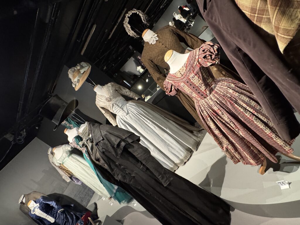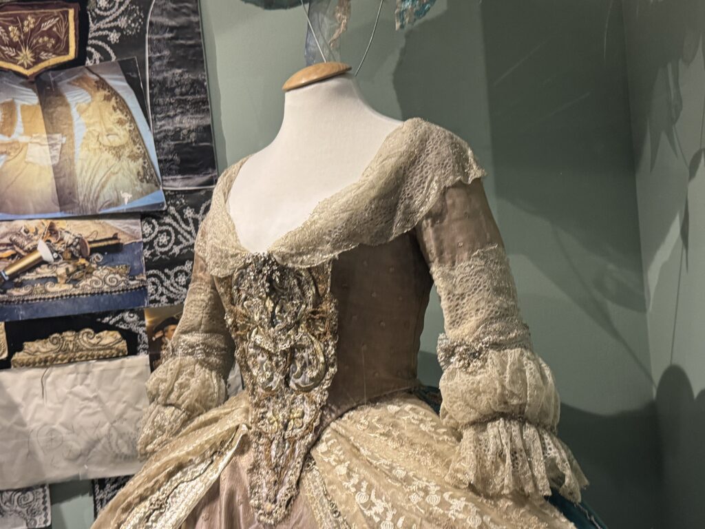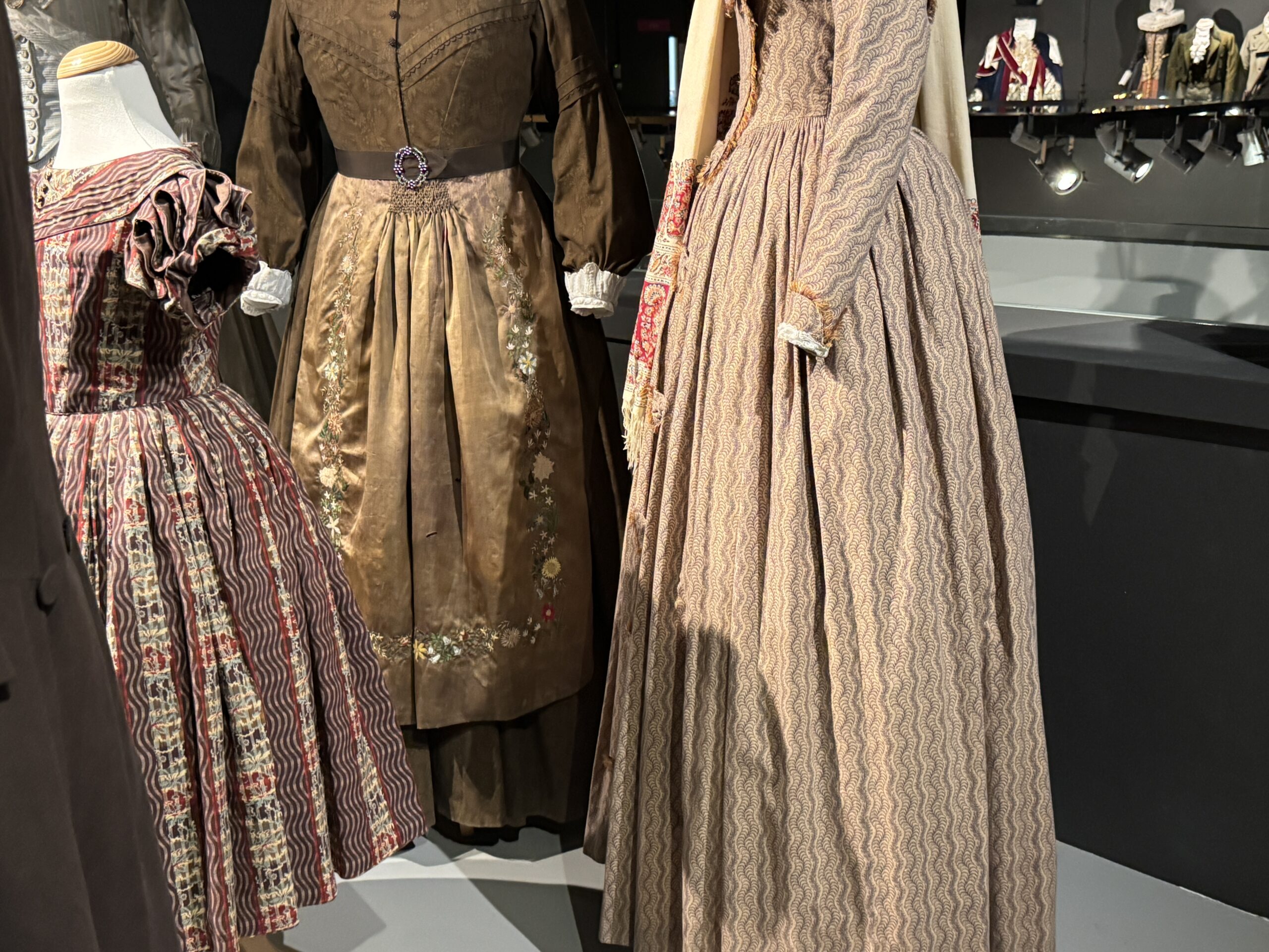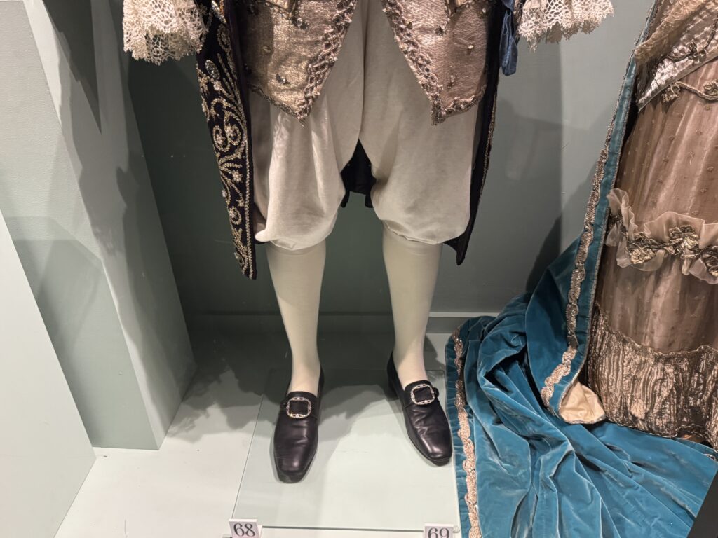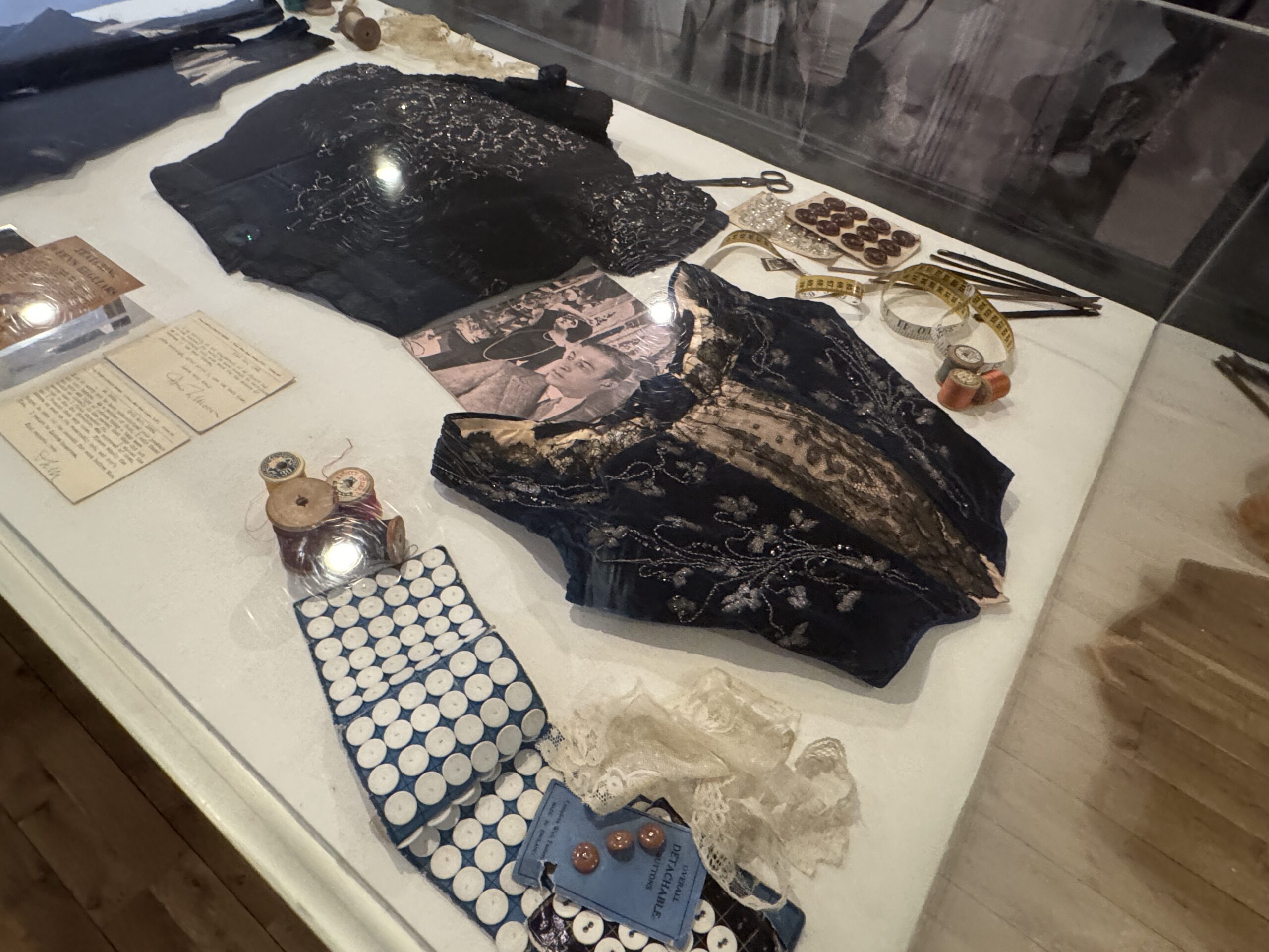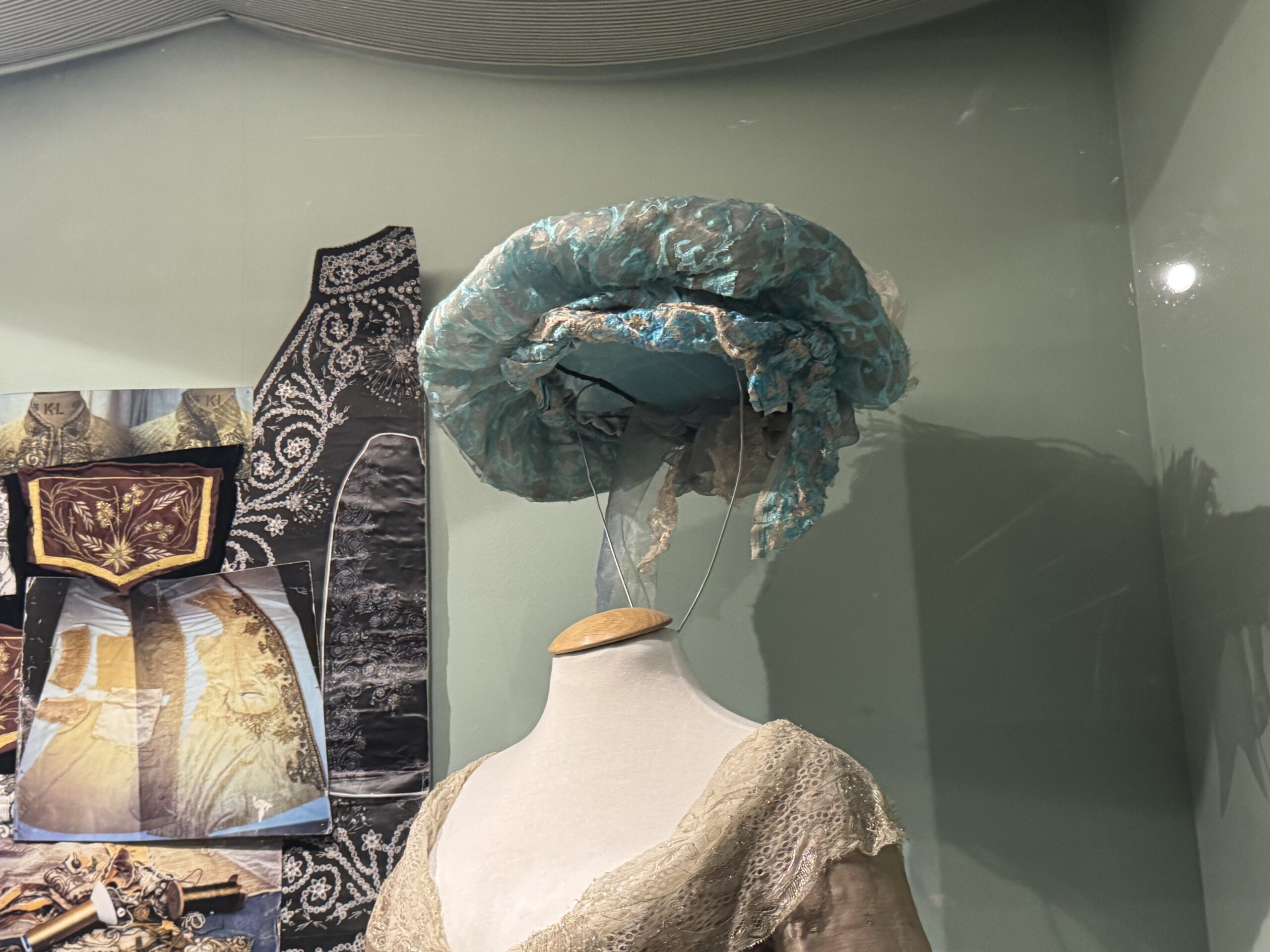 В маленьком зале на первом этаже был стенд с рабочими инструментами костюмеров и историческая линия.