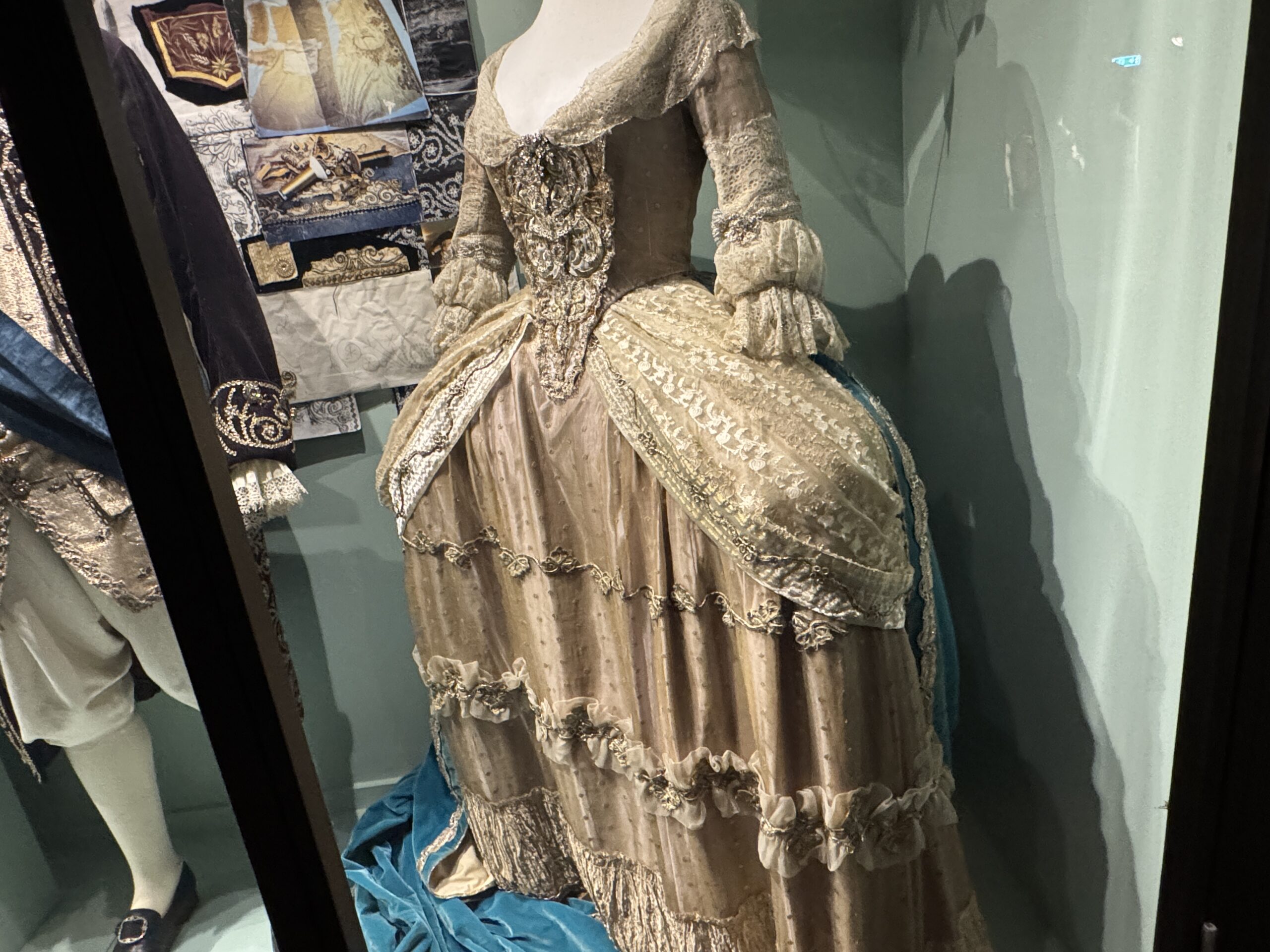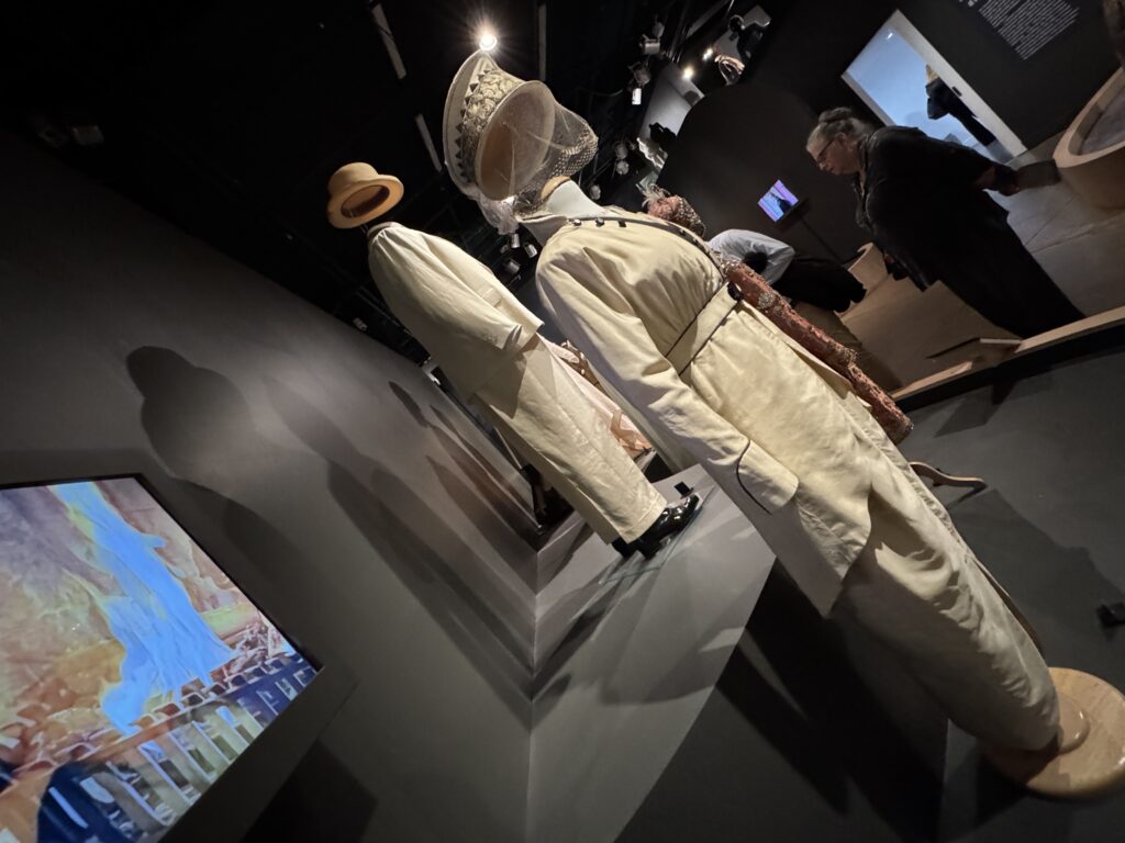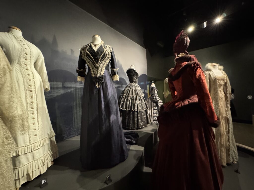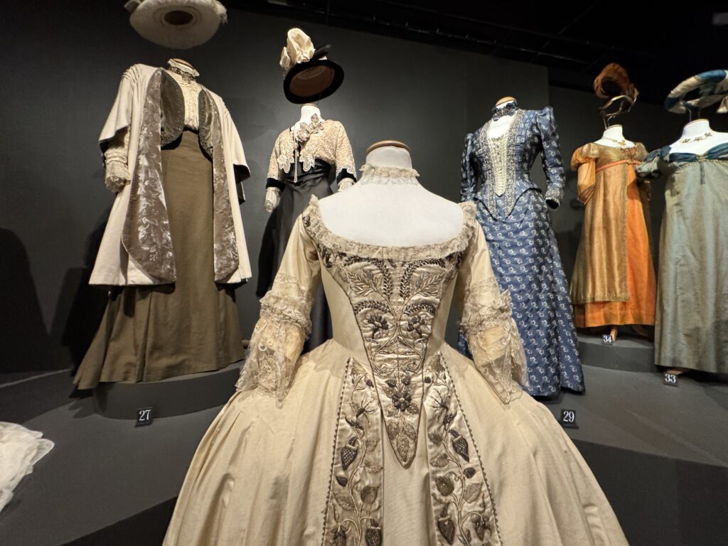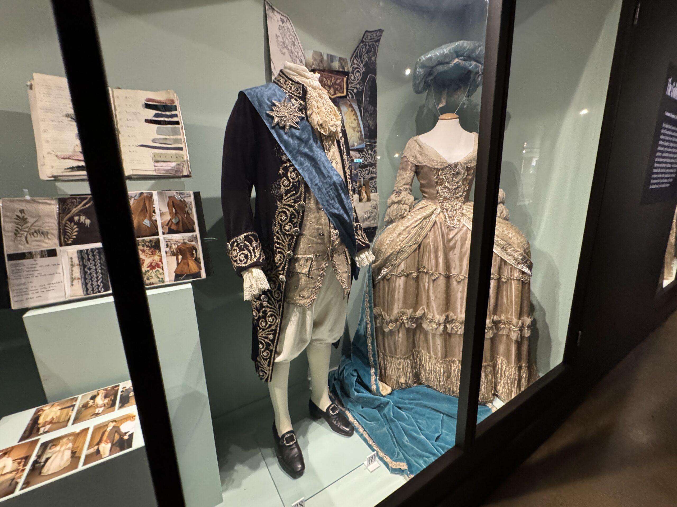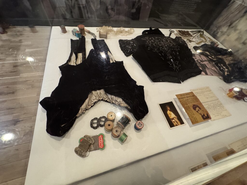 В маленьком зале на первом этаже был стенд с рабочими инструментами костюмеров и историческая линия.