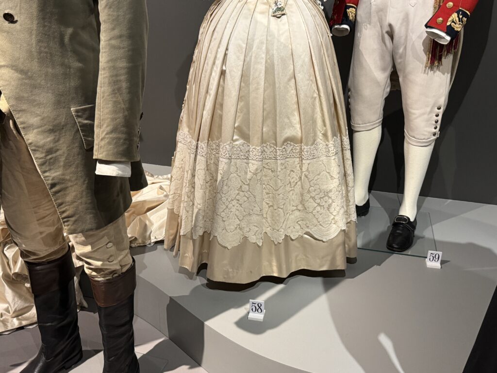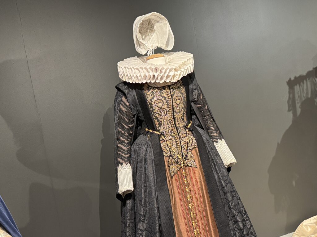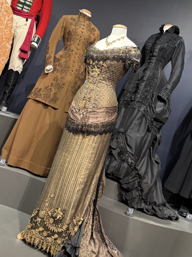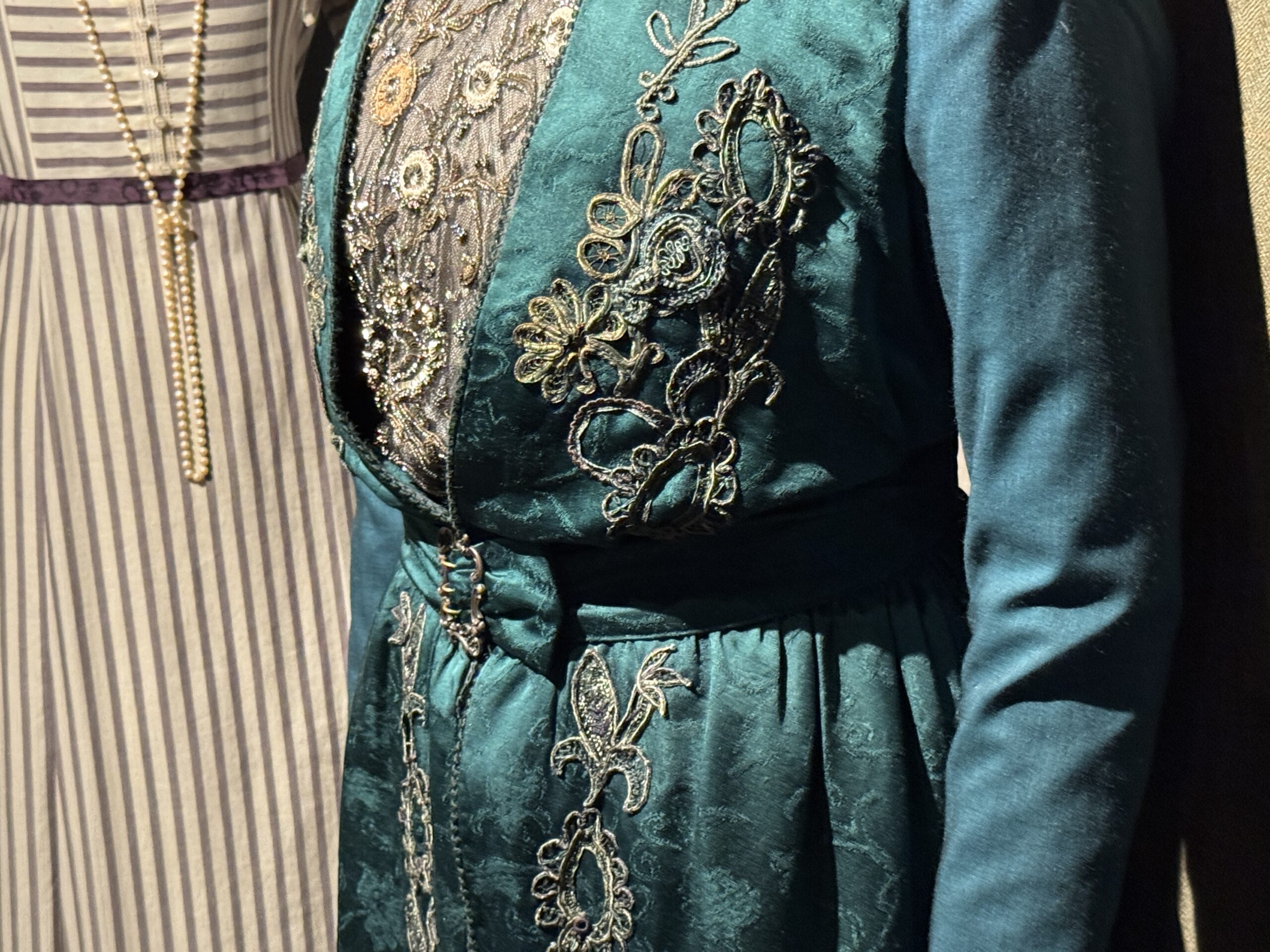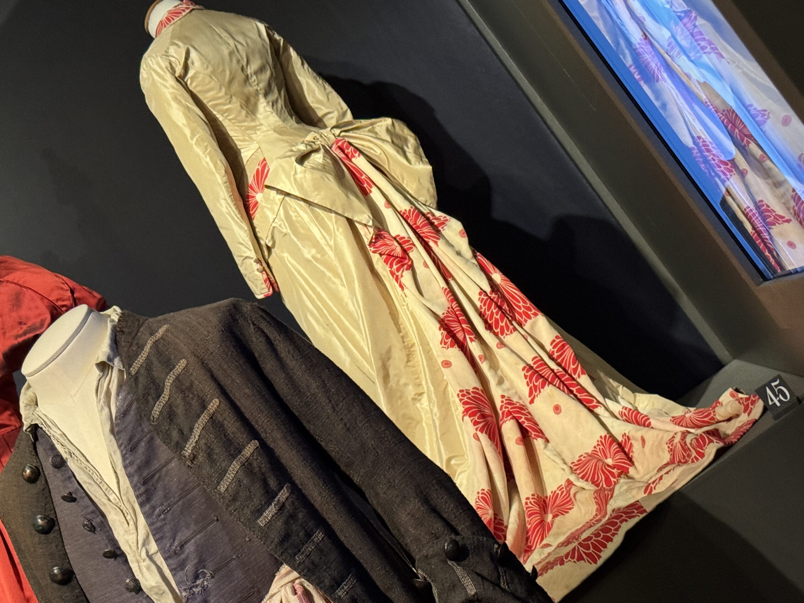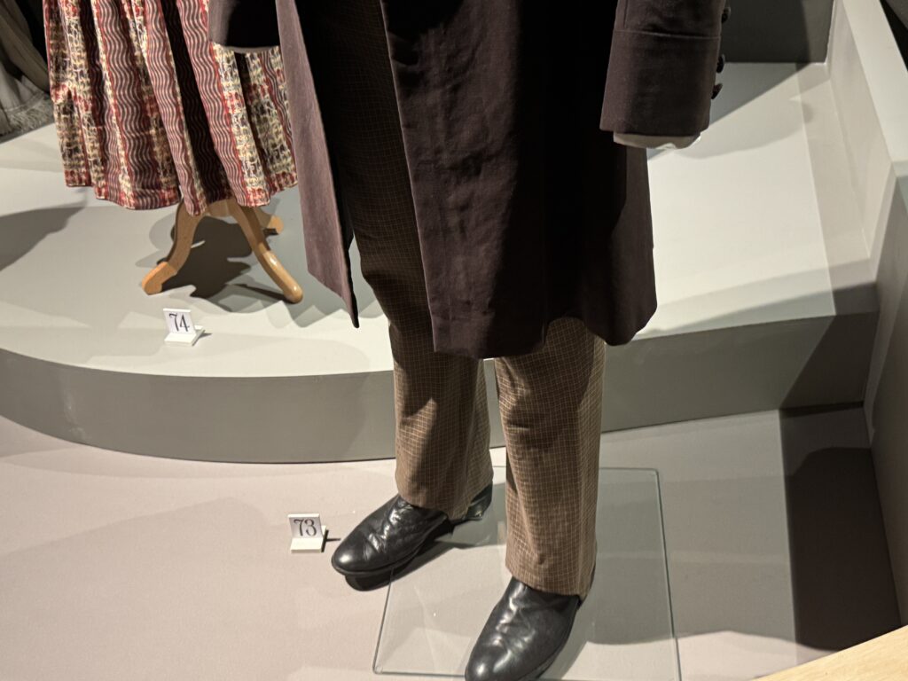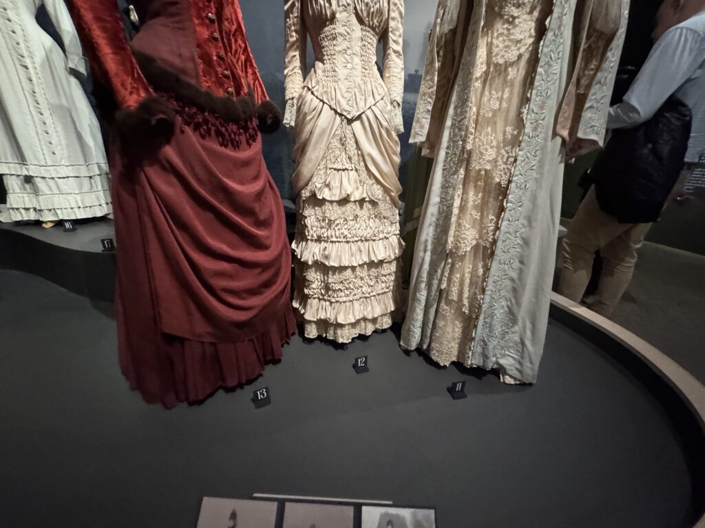 В маленьком зале на первом этаже был стенд с рабочими инструментами костюмеров и историческая линия.