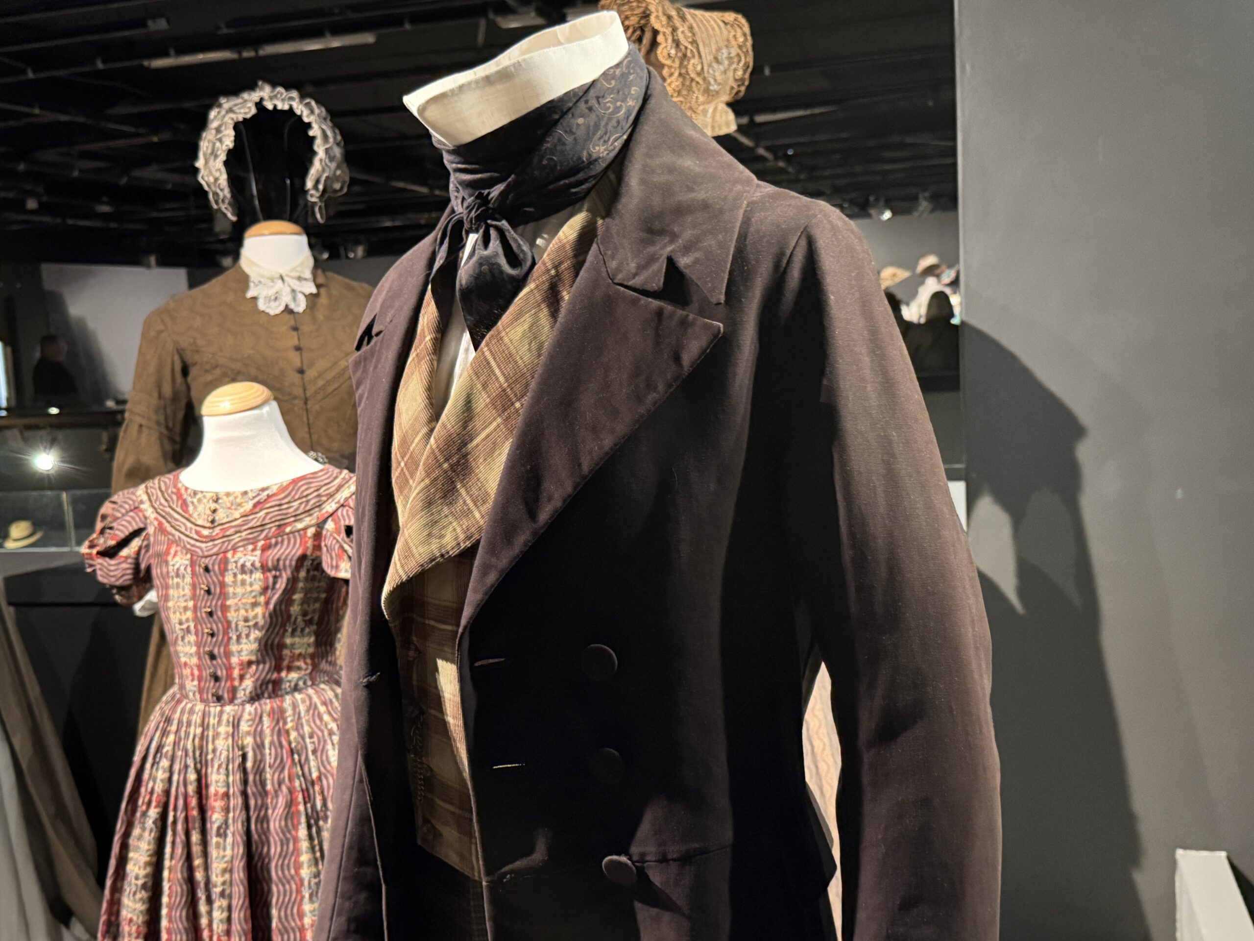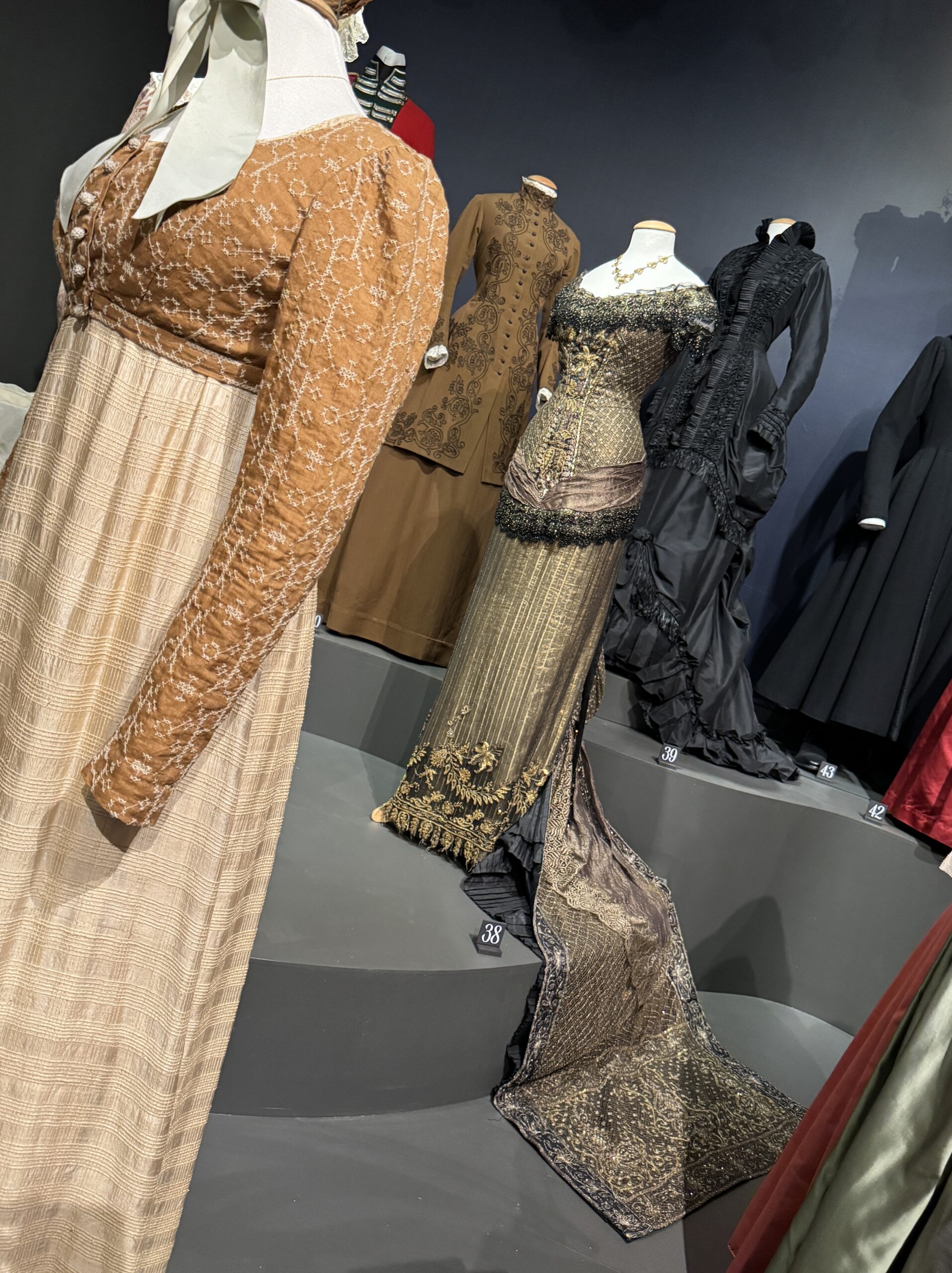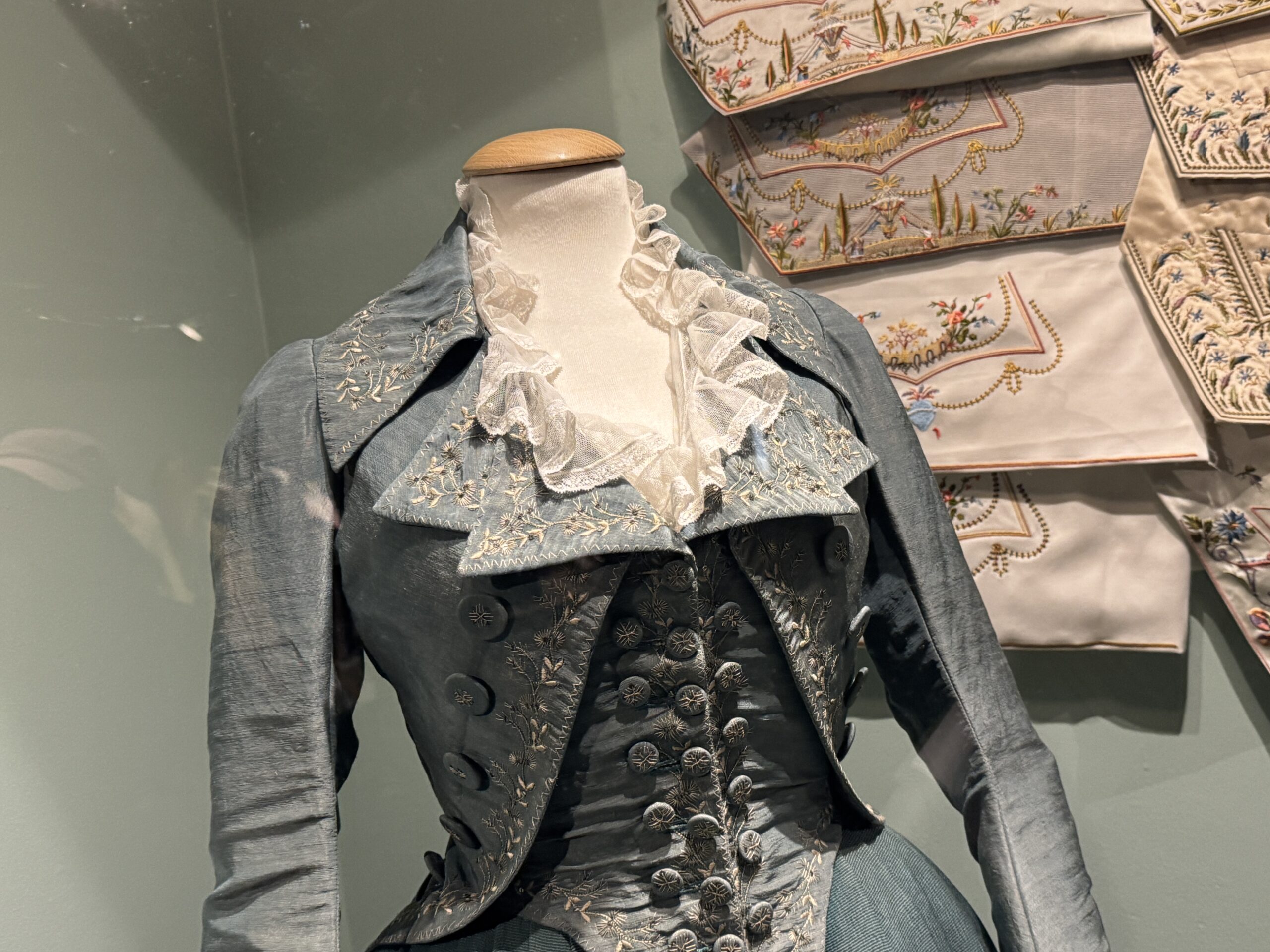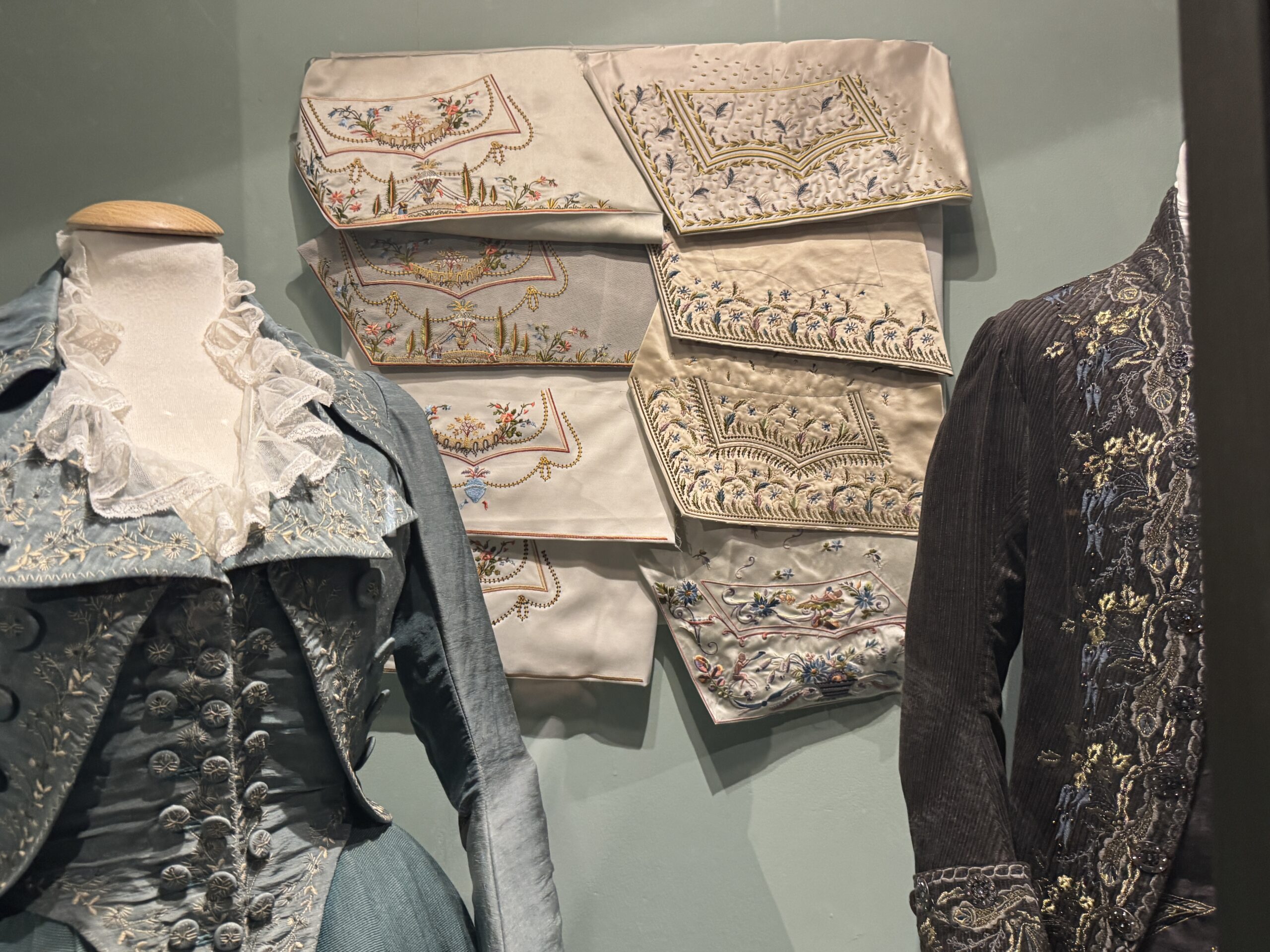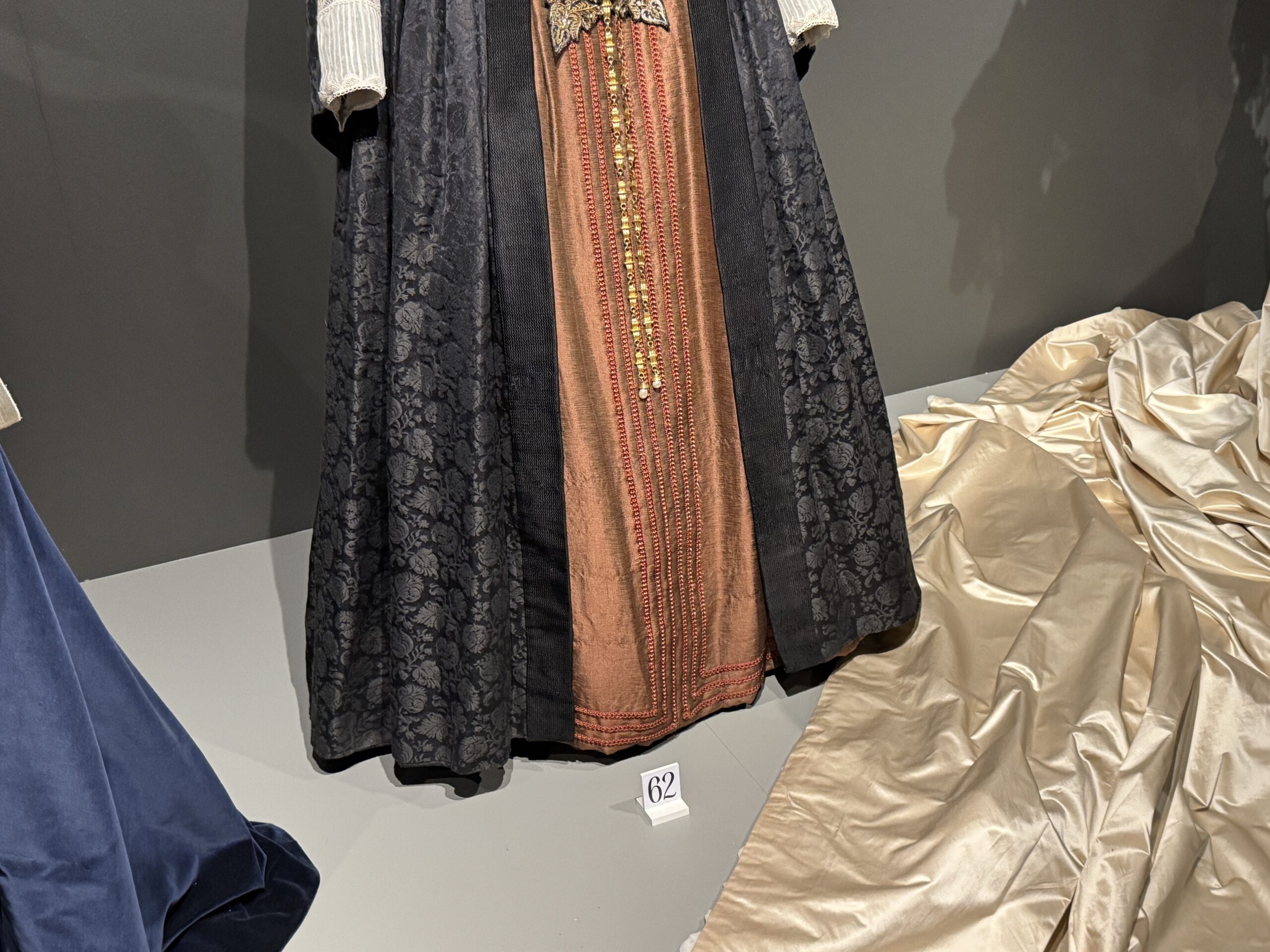 В маленьком зале на первом этаже был стенд с рабочими инструментами костюмеров и историческая линия.