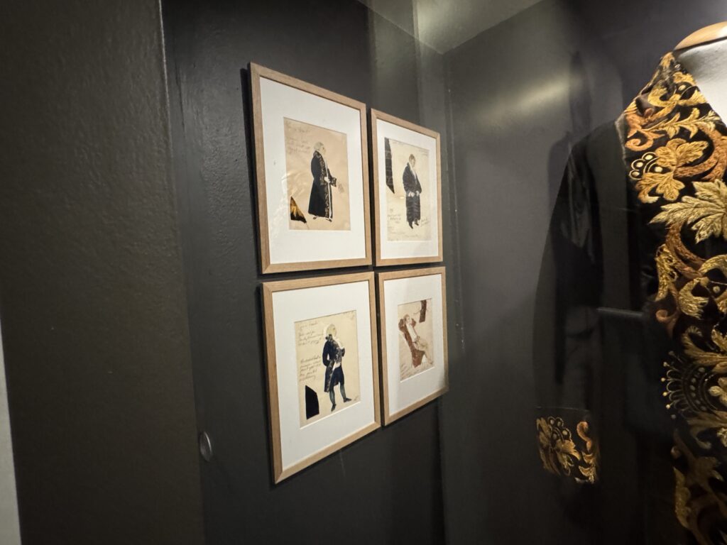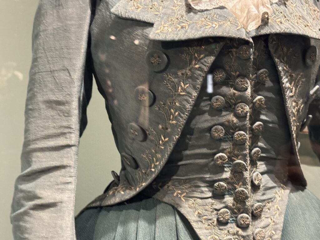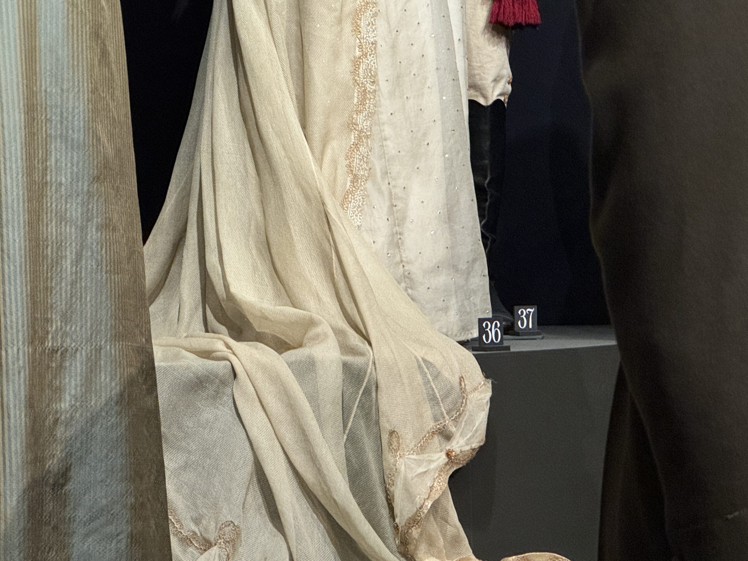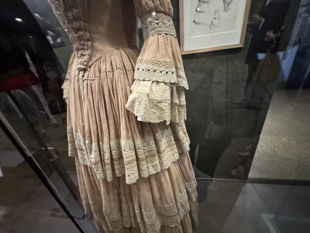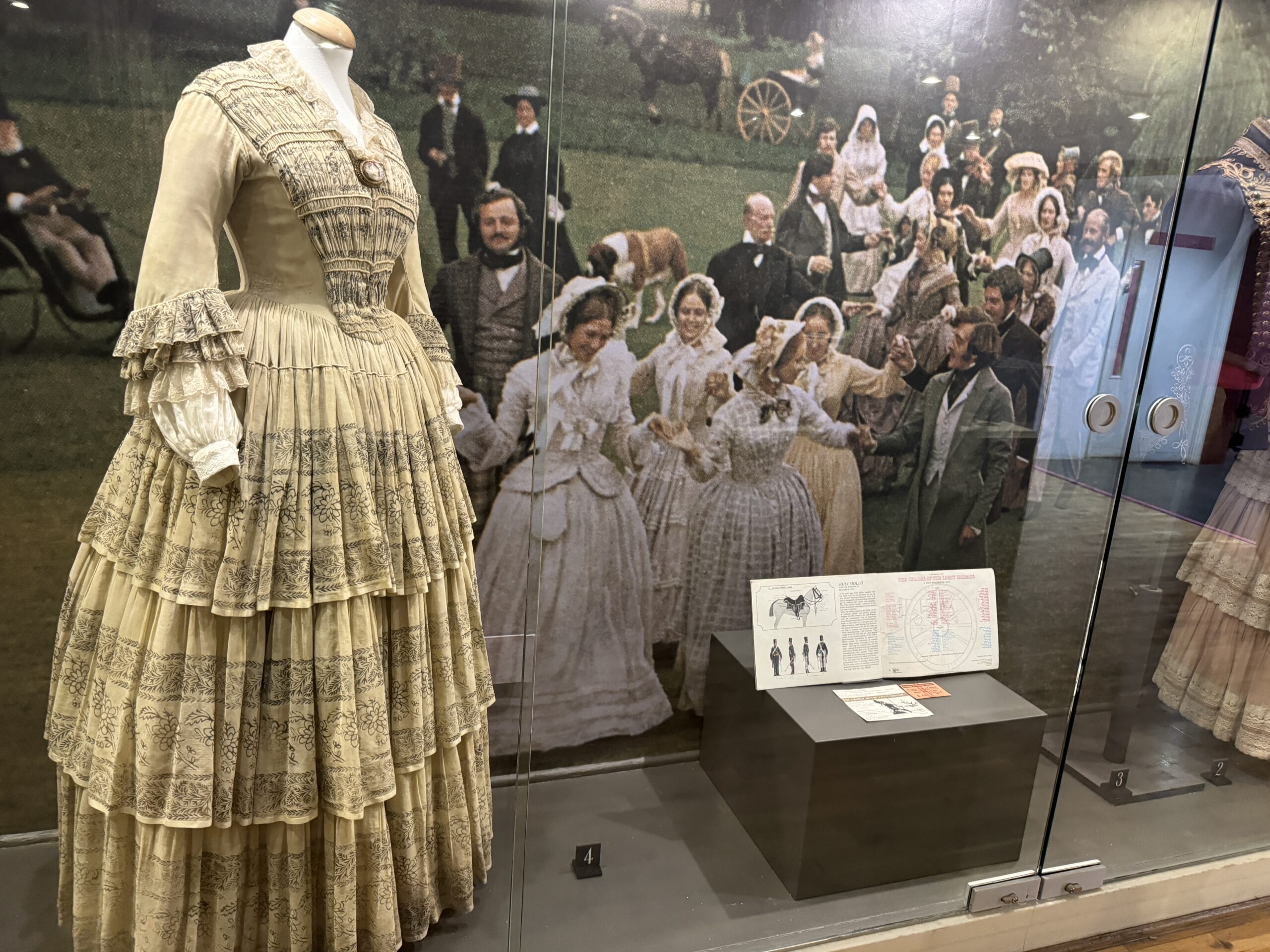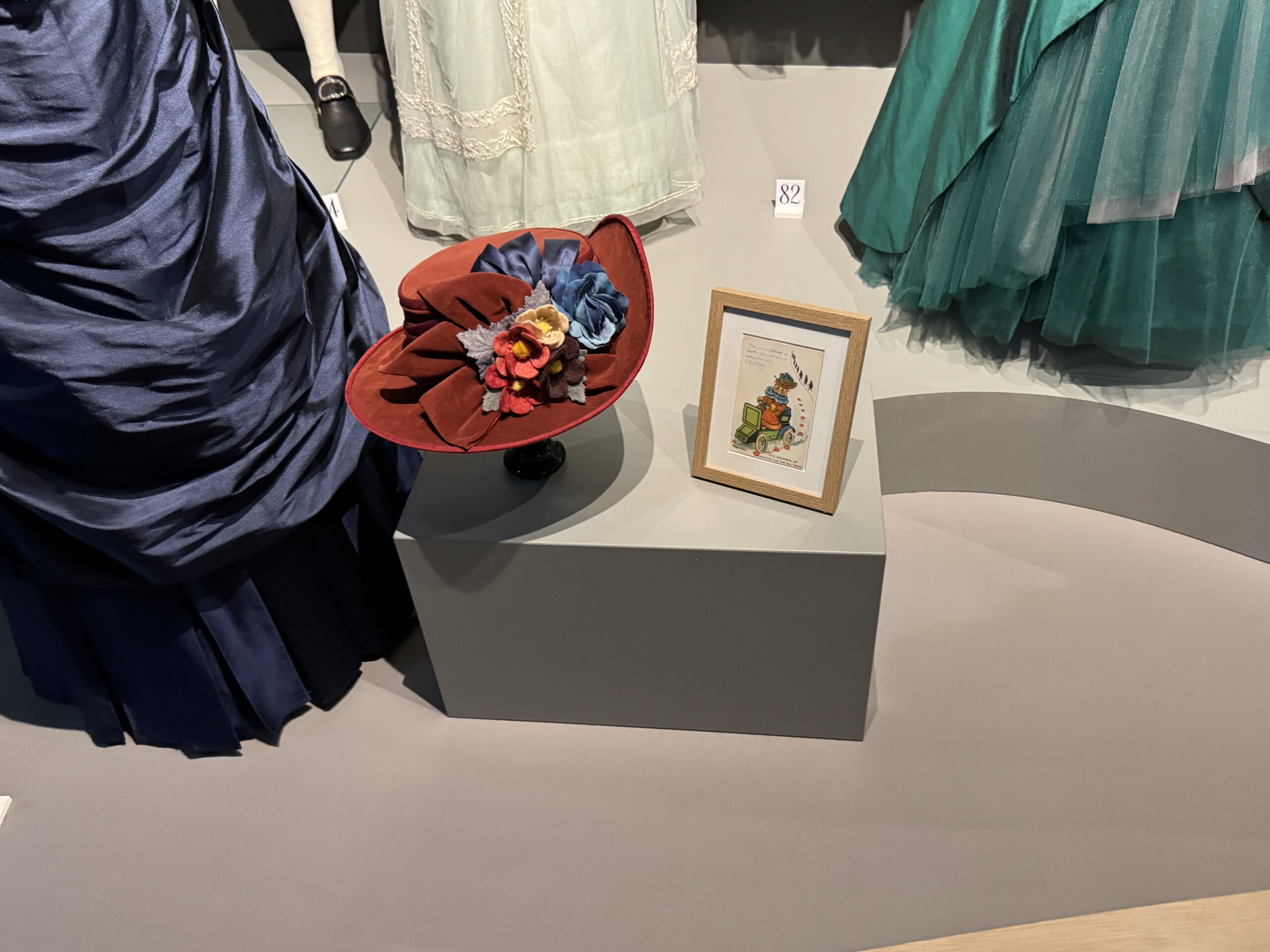 В маленьком зале на первом этаже был стенд с рабочими инструментами костюмеров и историческая линия.