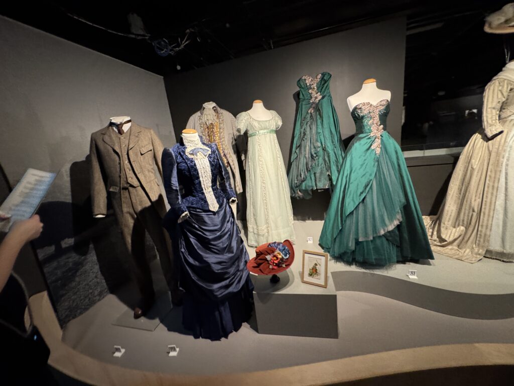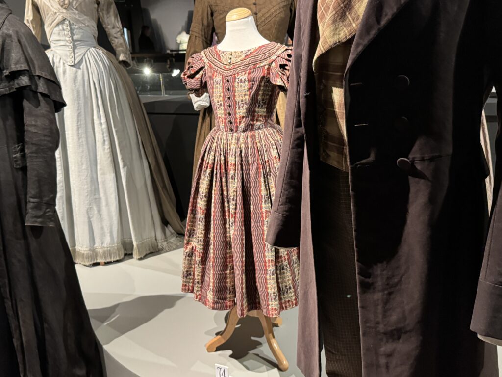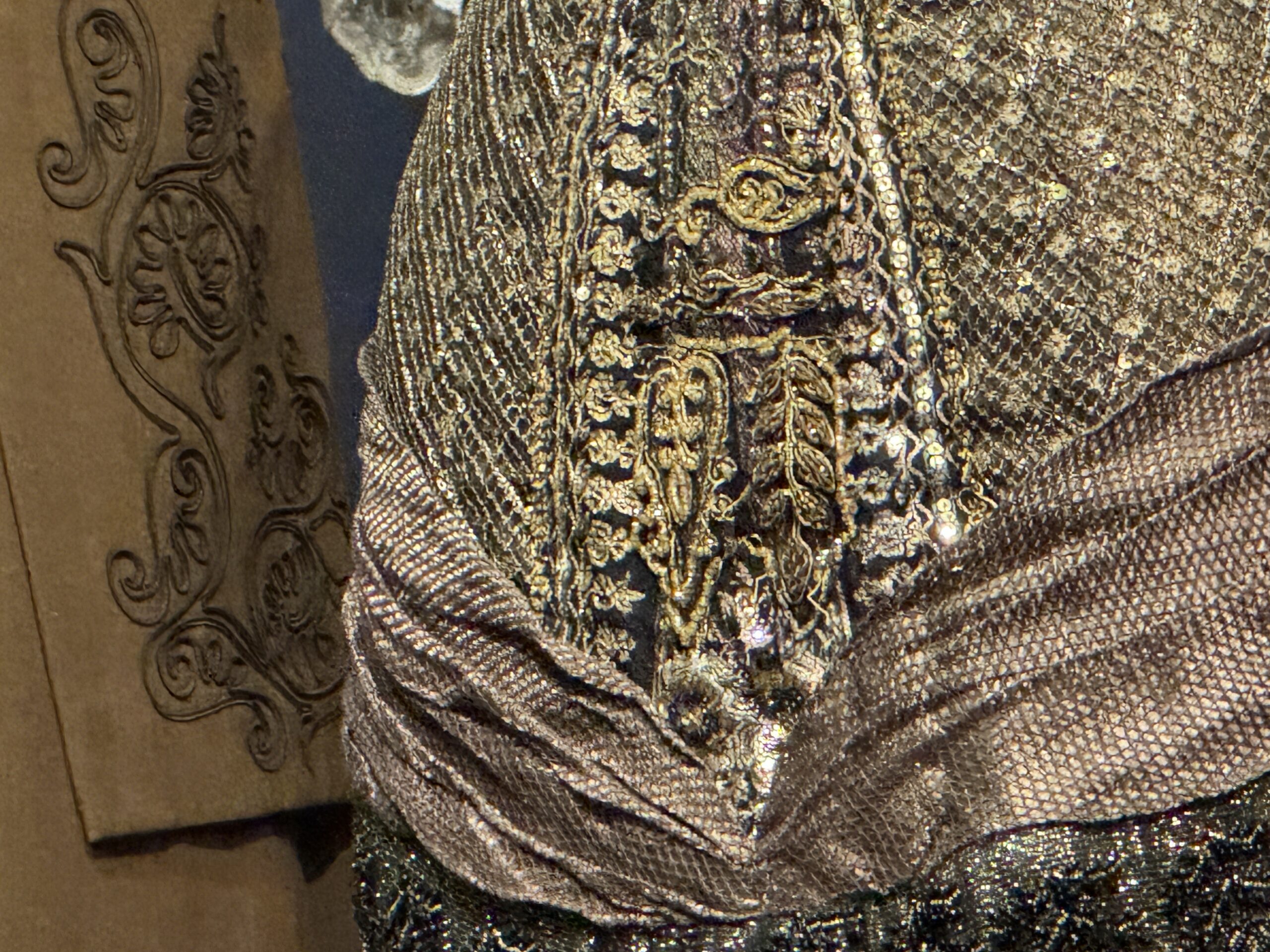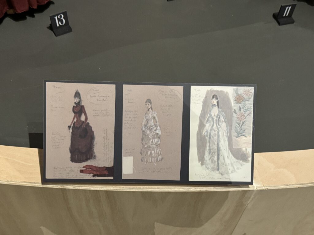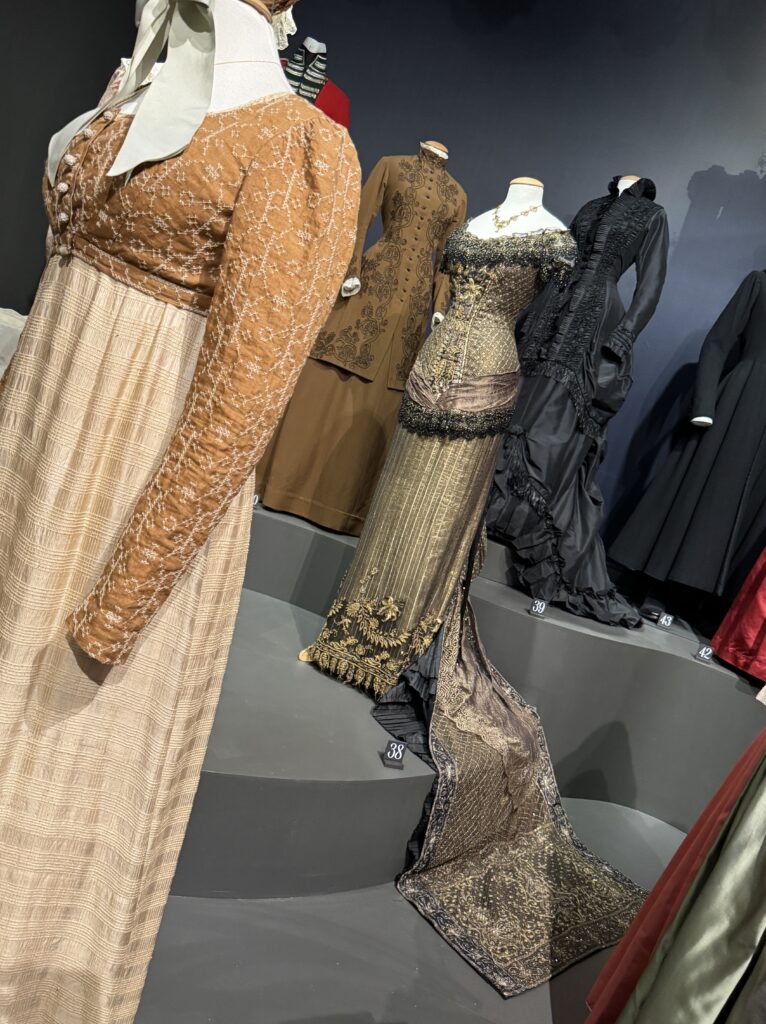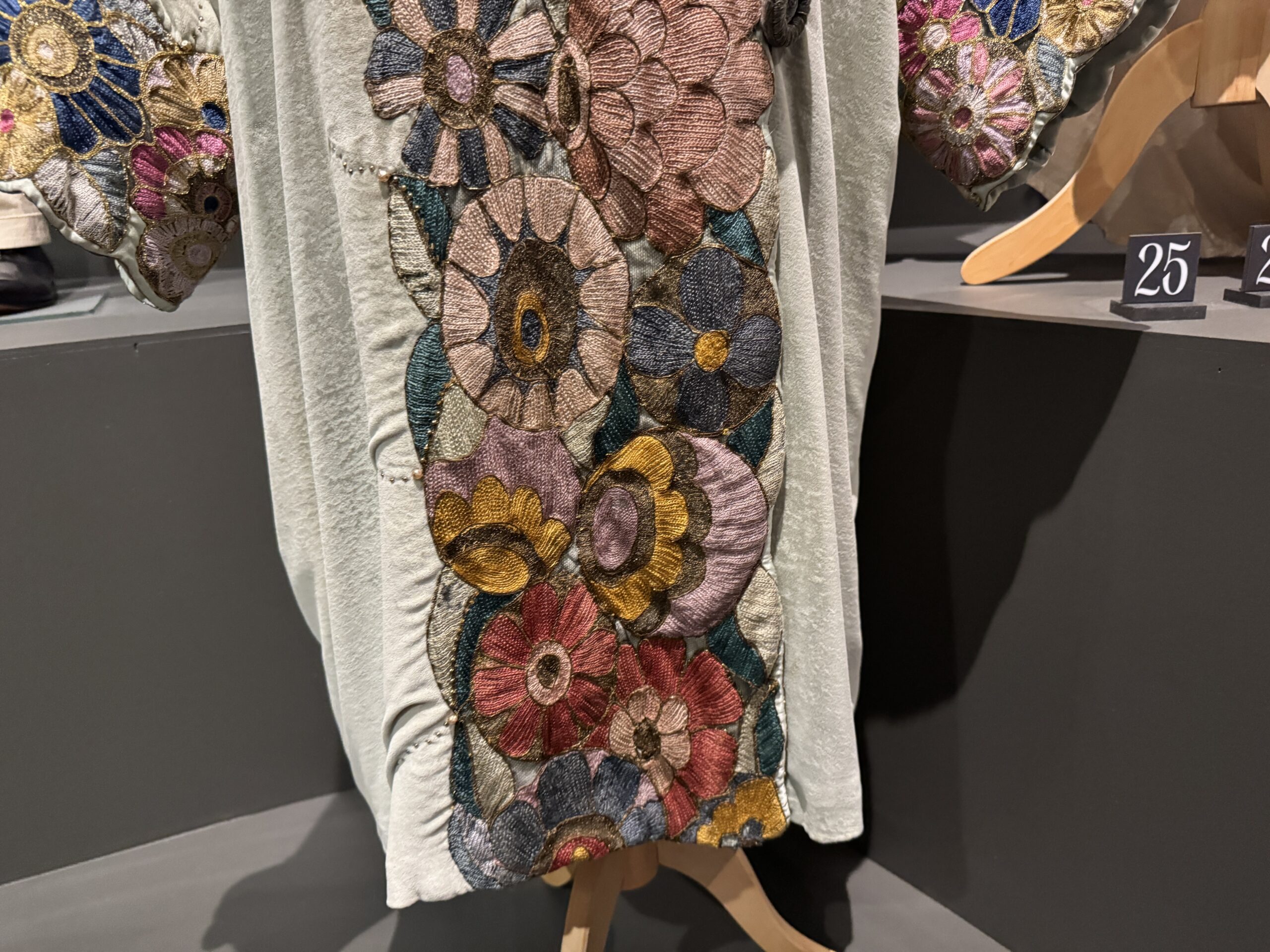 В маленьком зале на первом этаже был стенд с рабочими инструментами костюмеров и историческая линия.