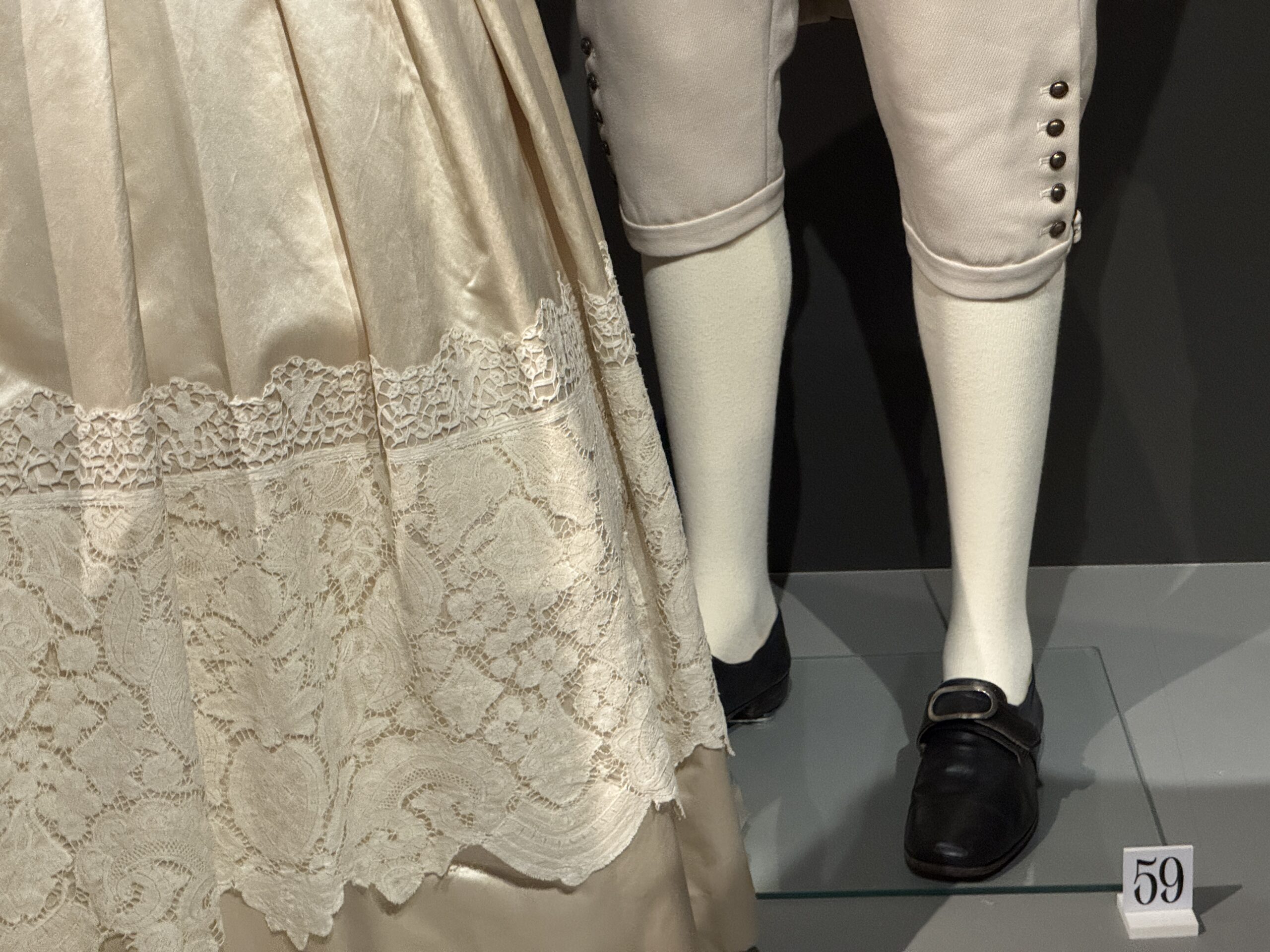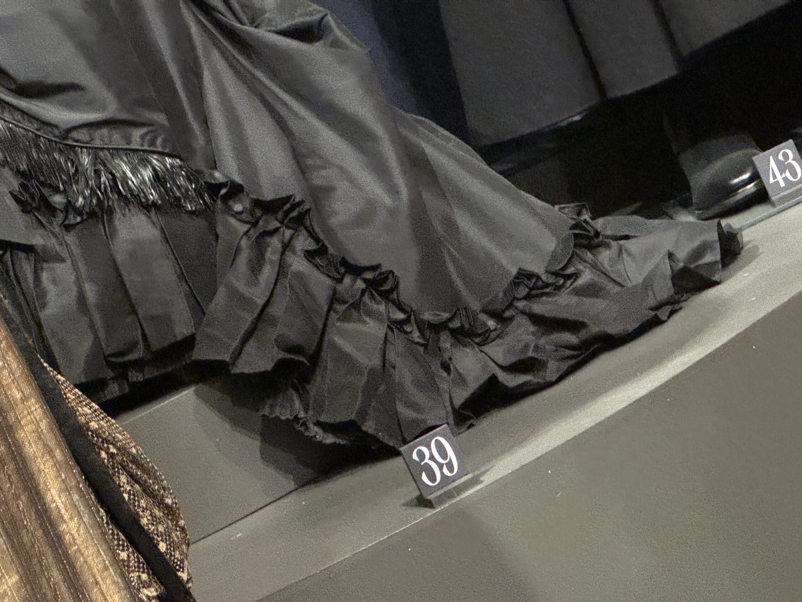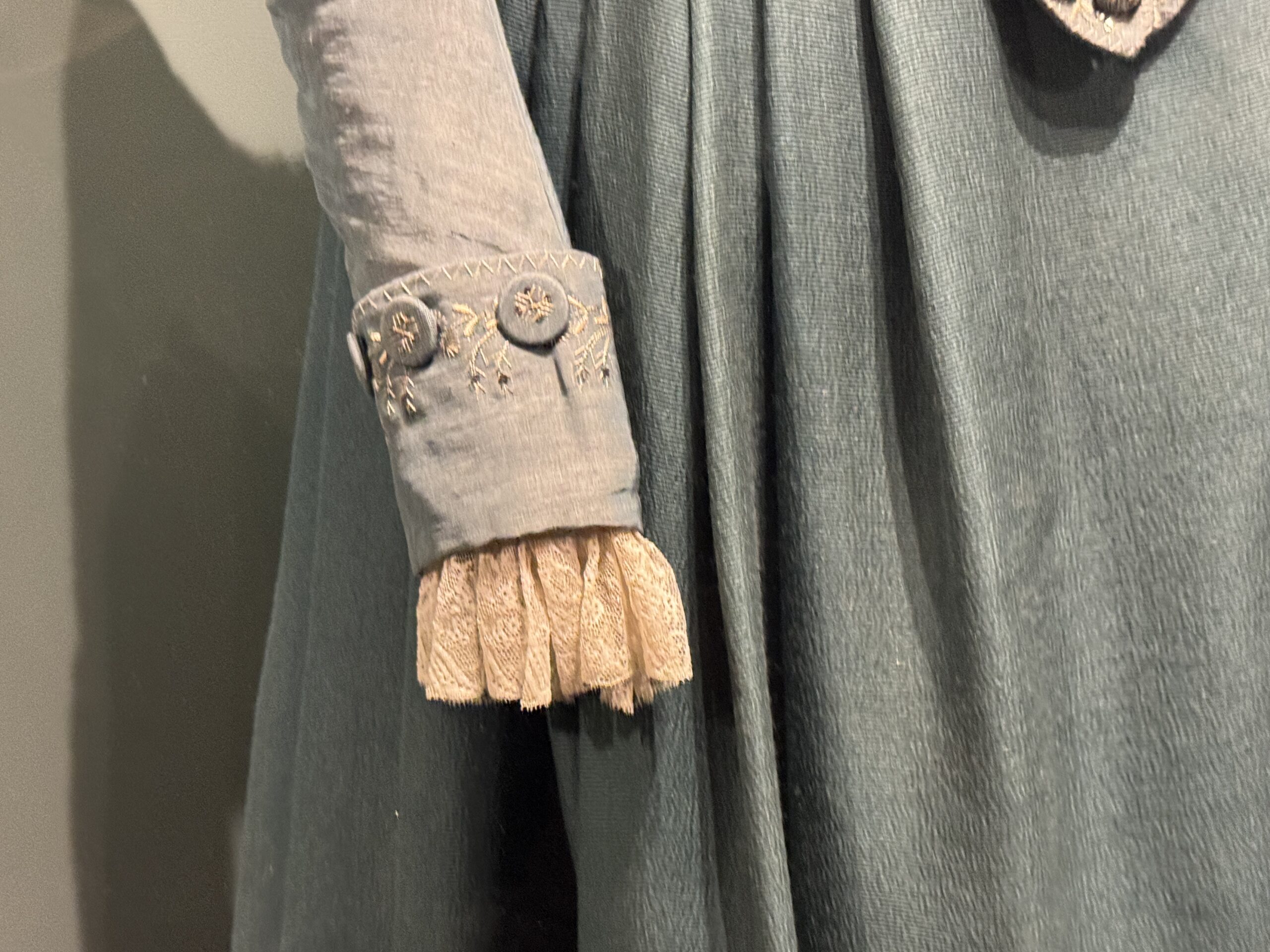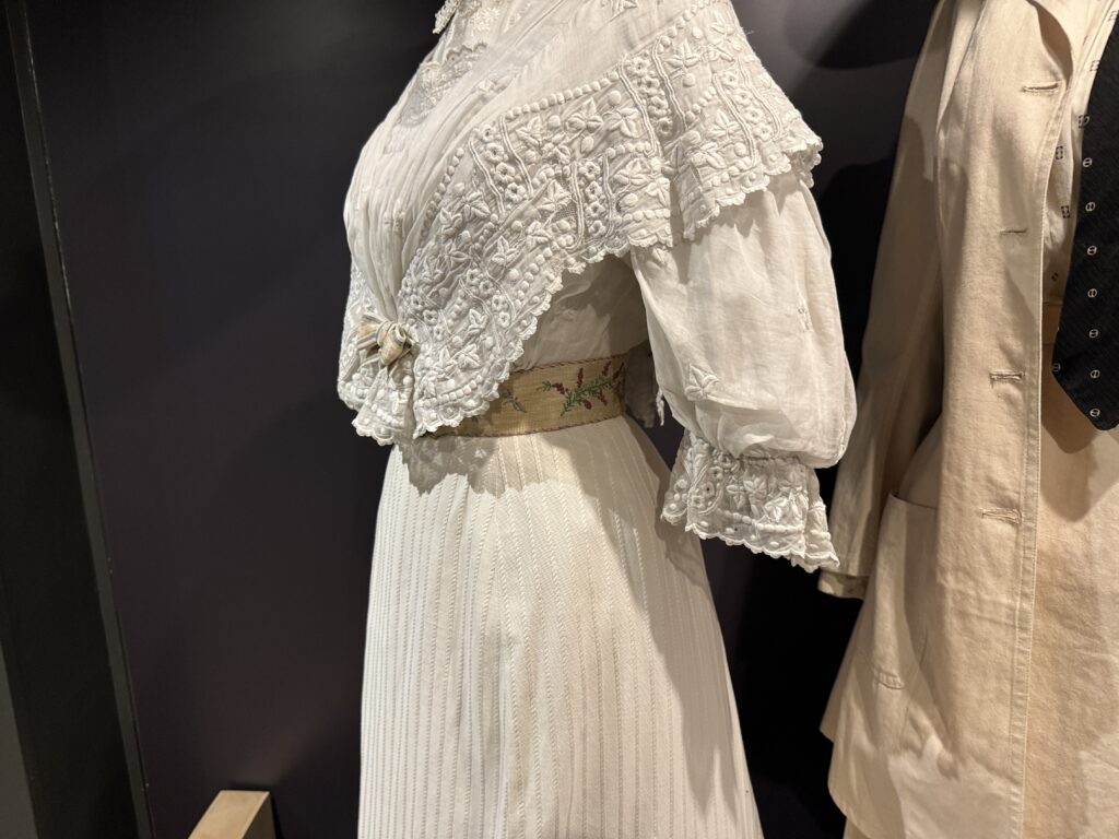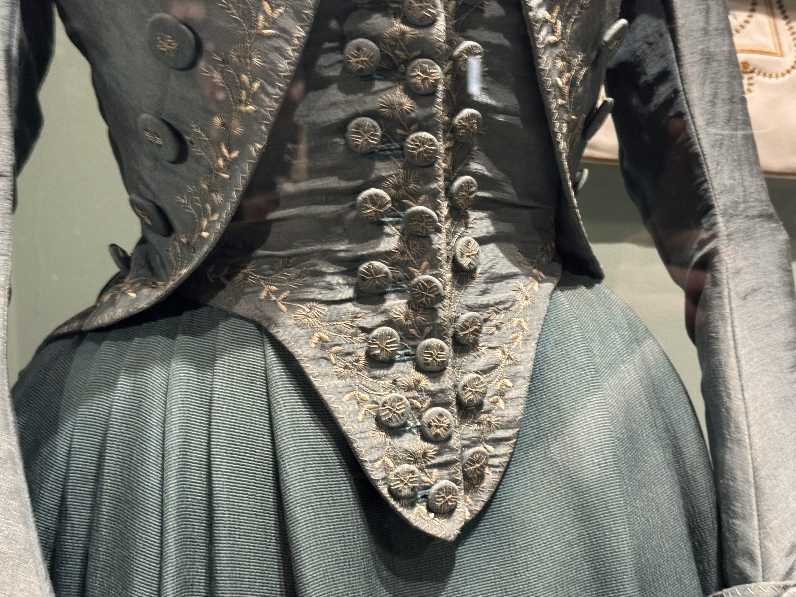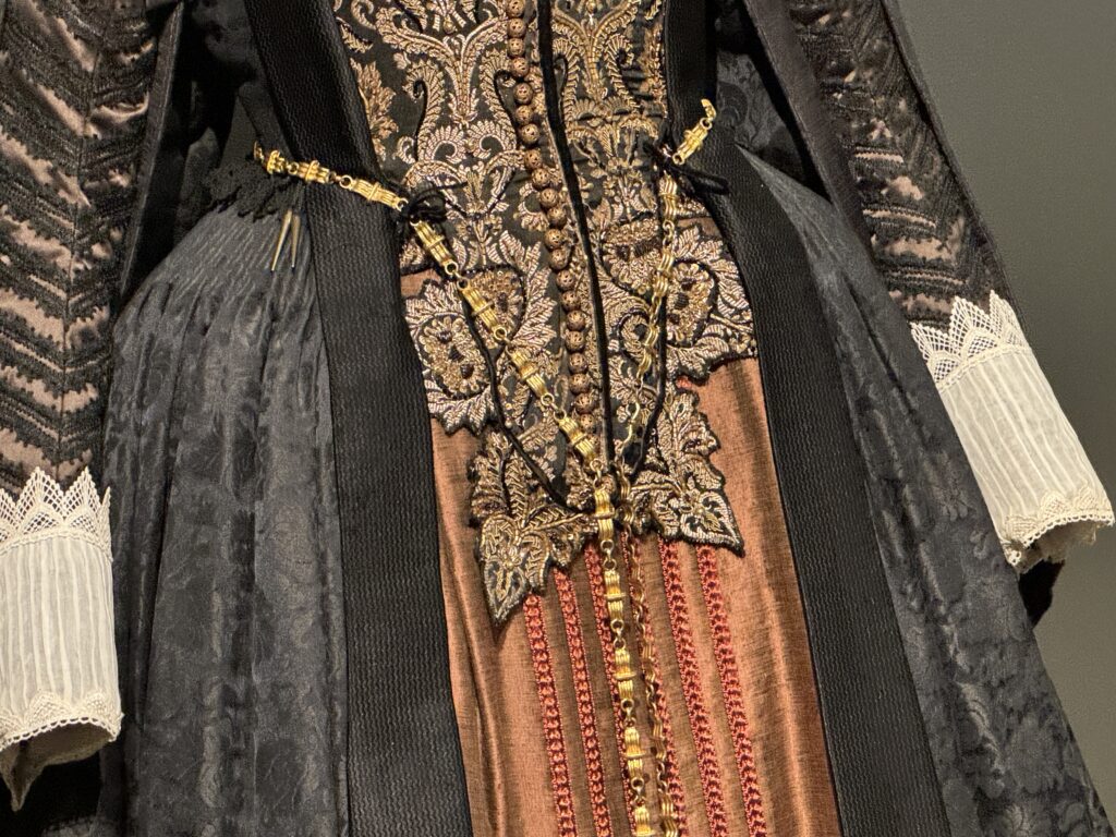 В маленьком зале на первом этаже был стенд с рабочими инструментами костюмеров и историческая линия.