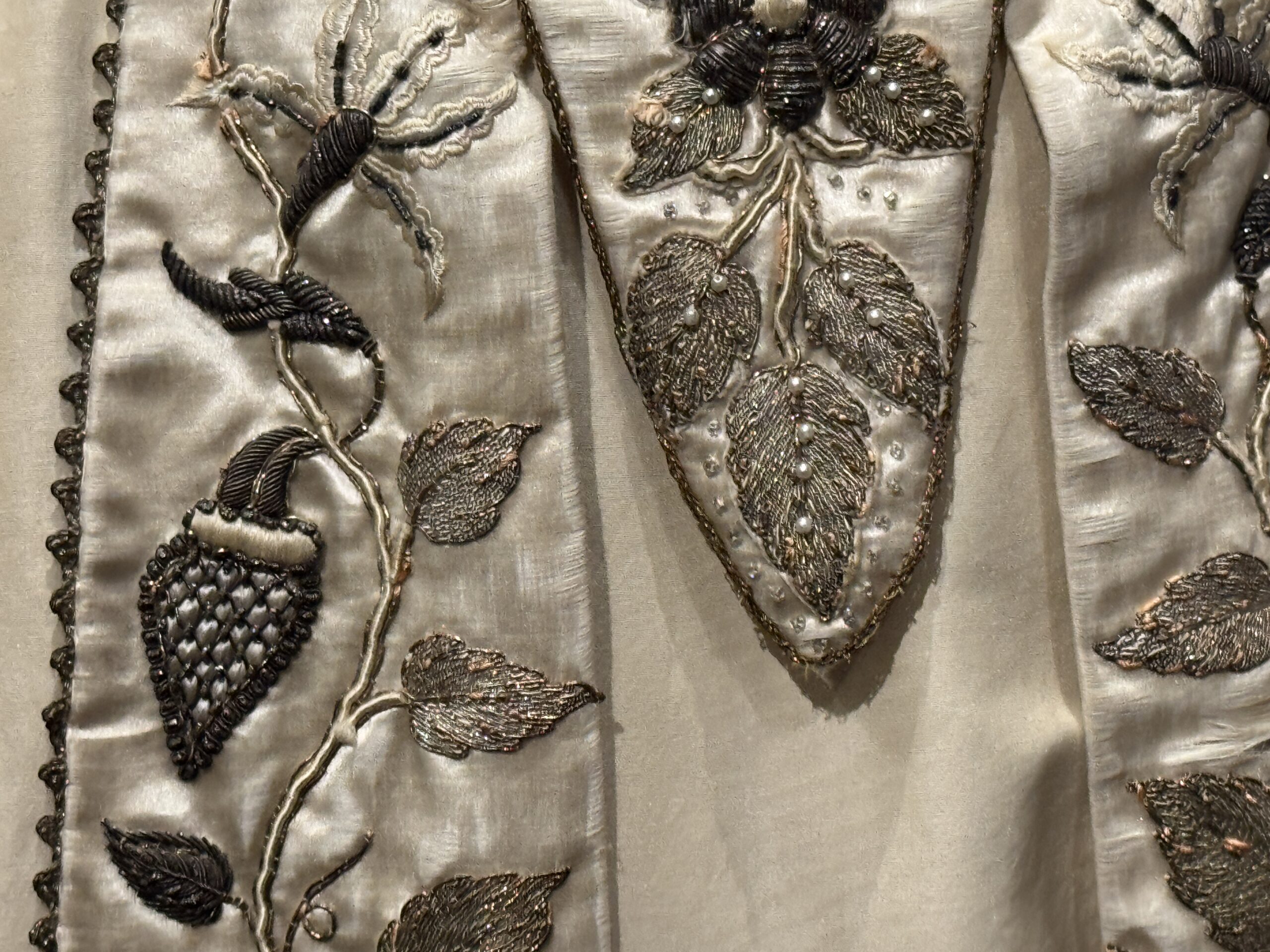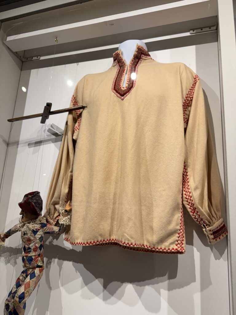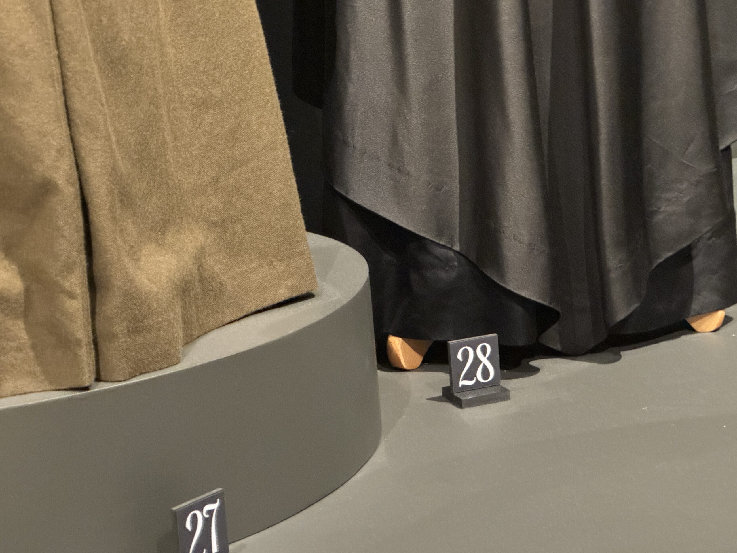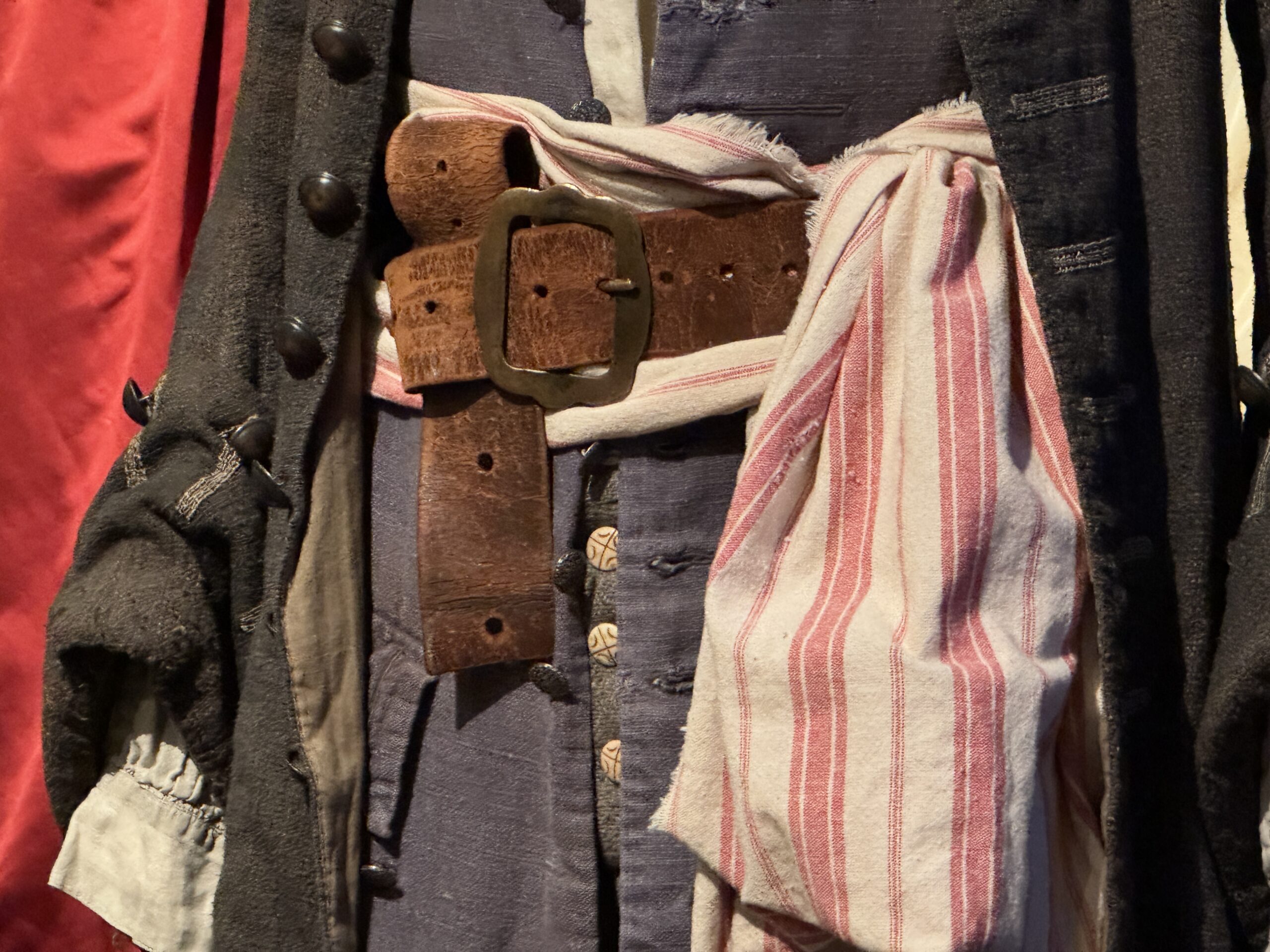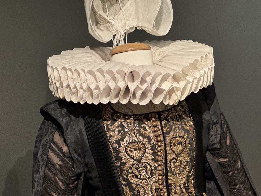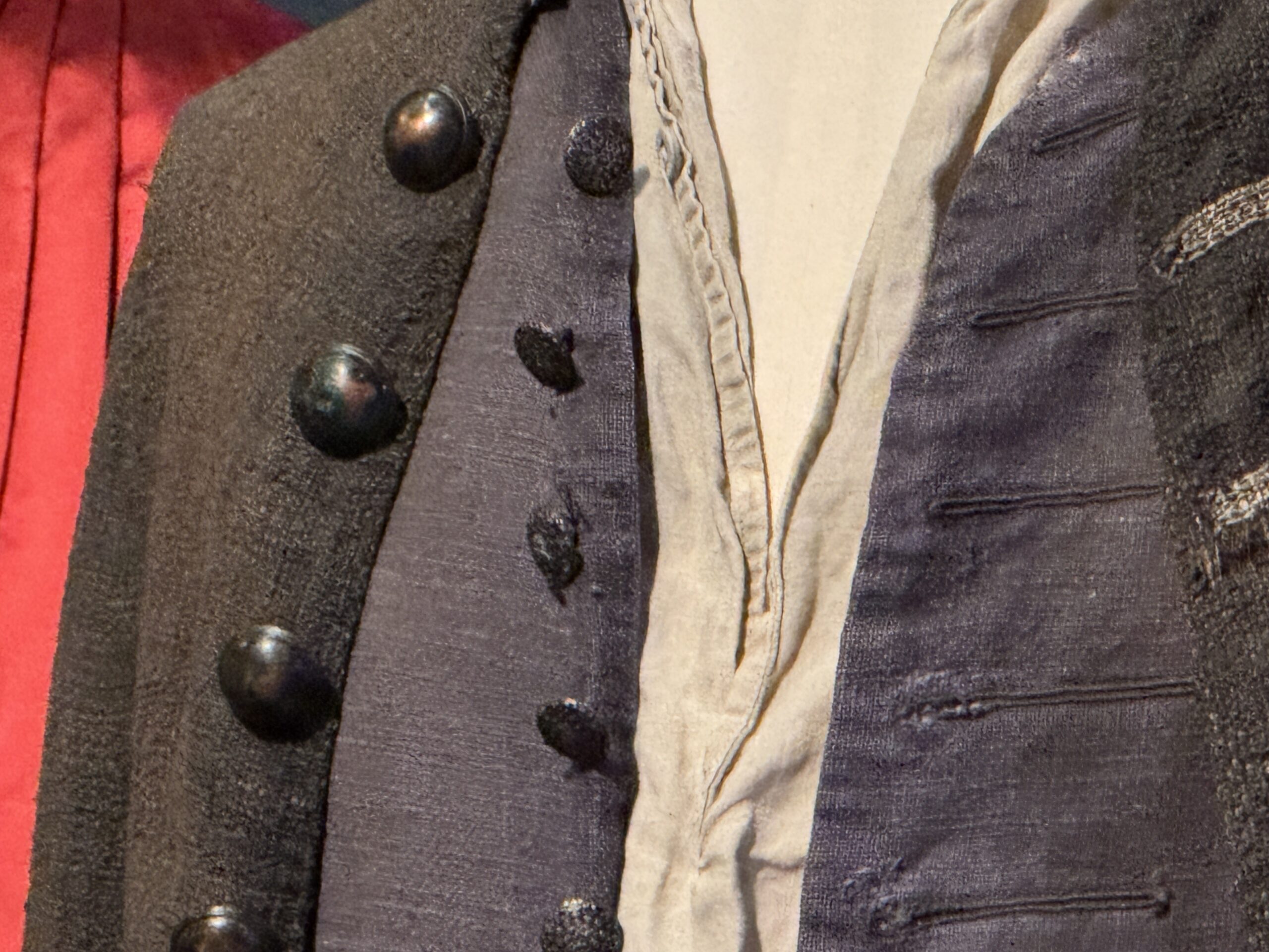В маленьком зале на первом этаже был стенд с рабочими инструментами костюмеров и историческая линия.