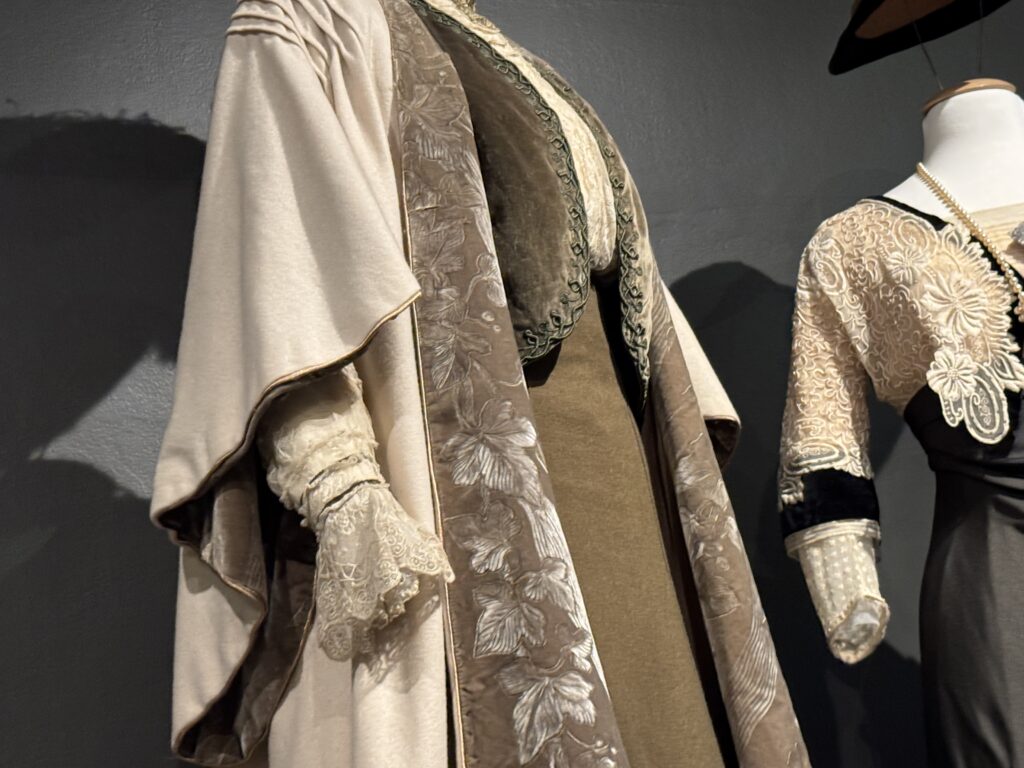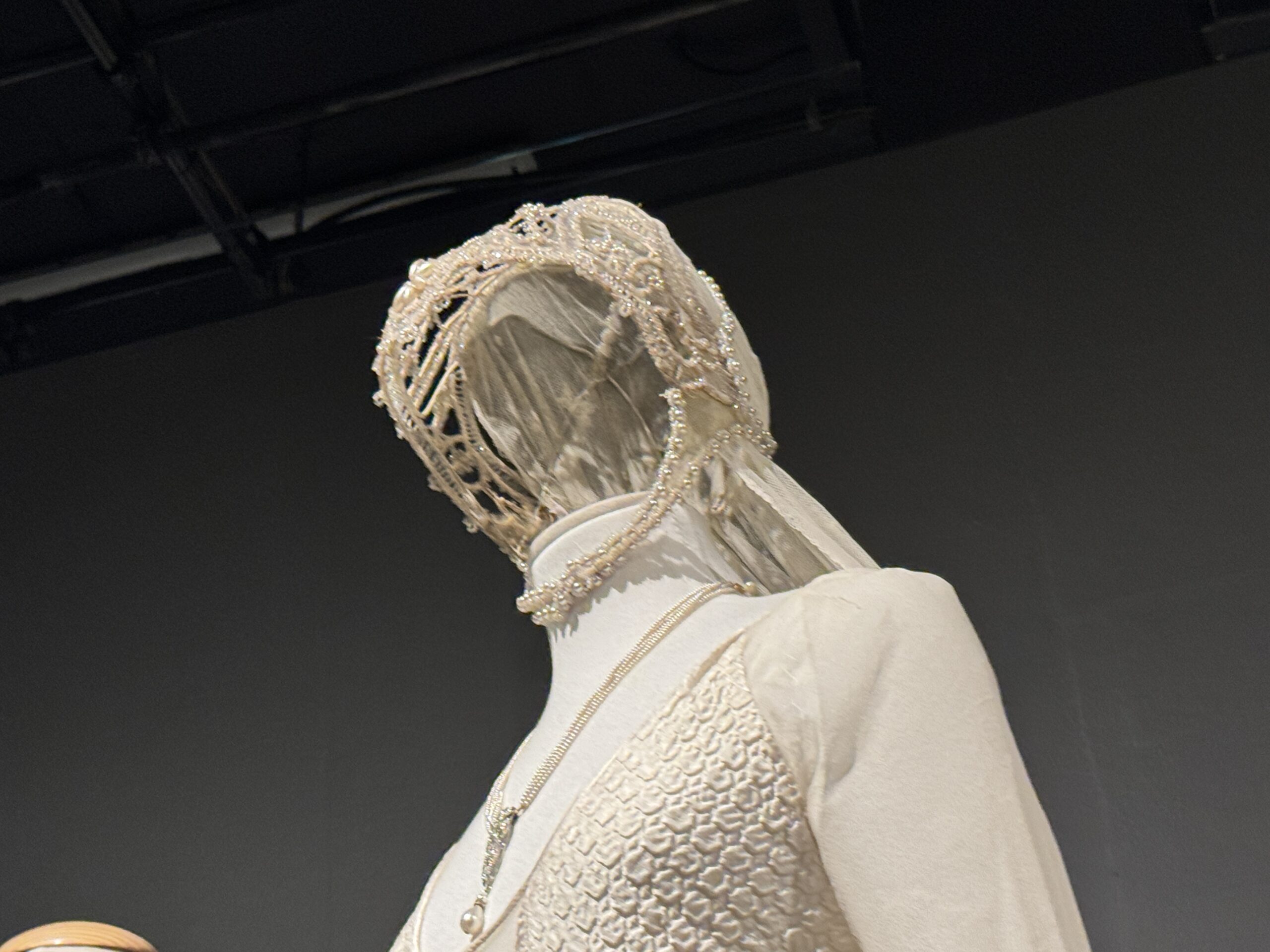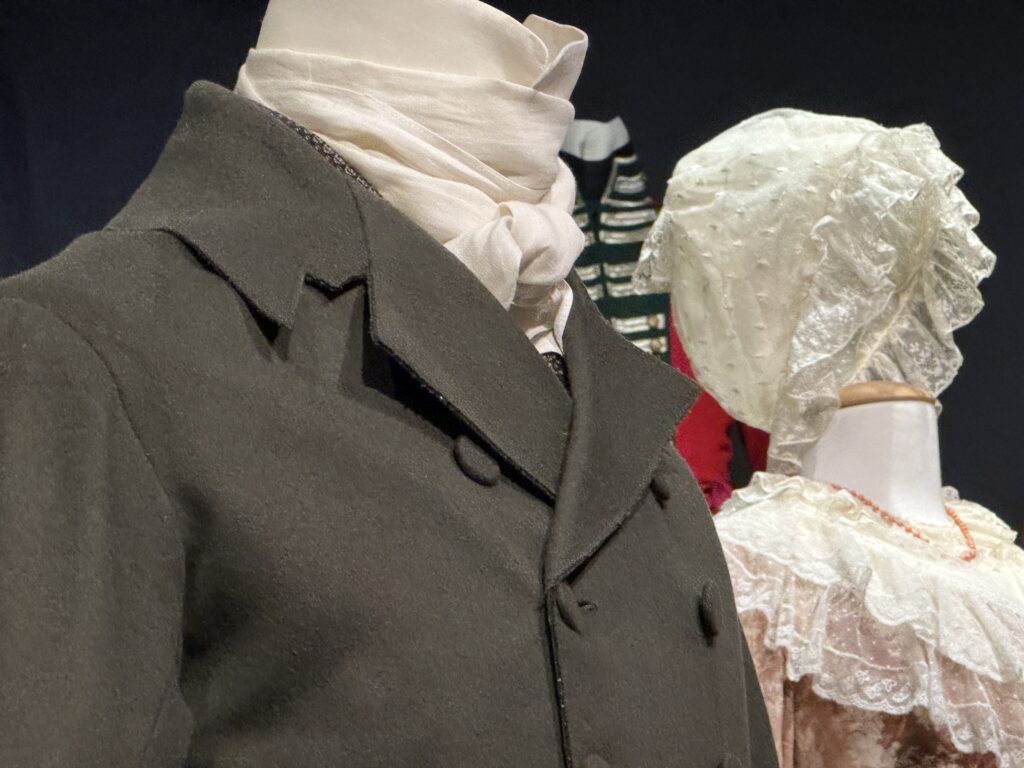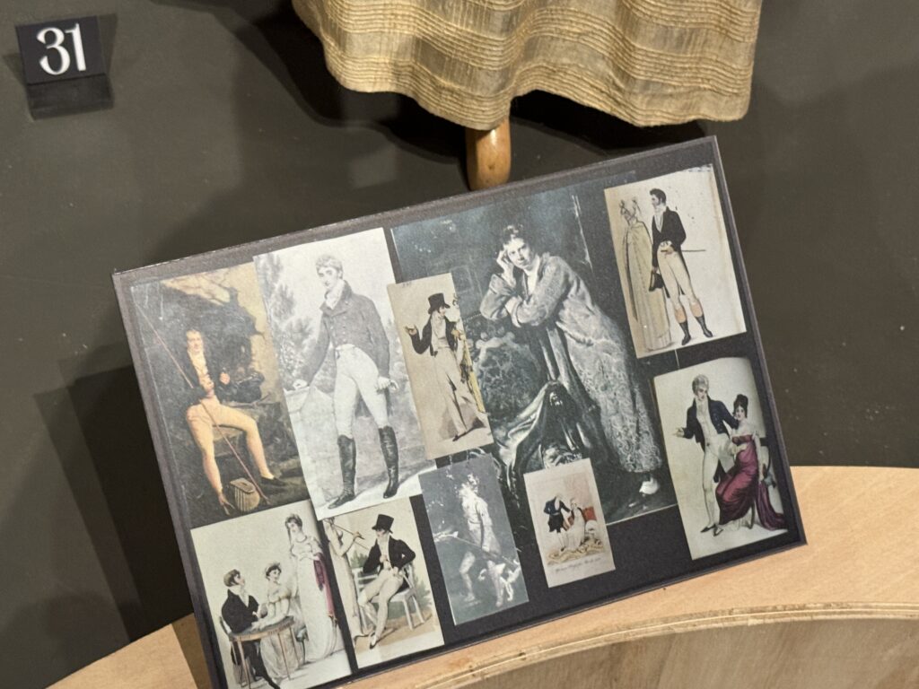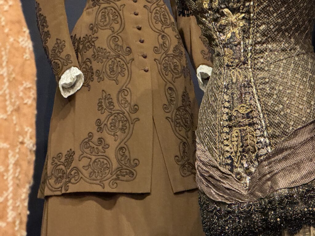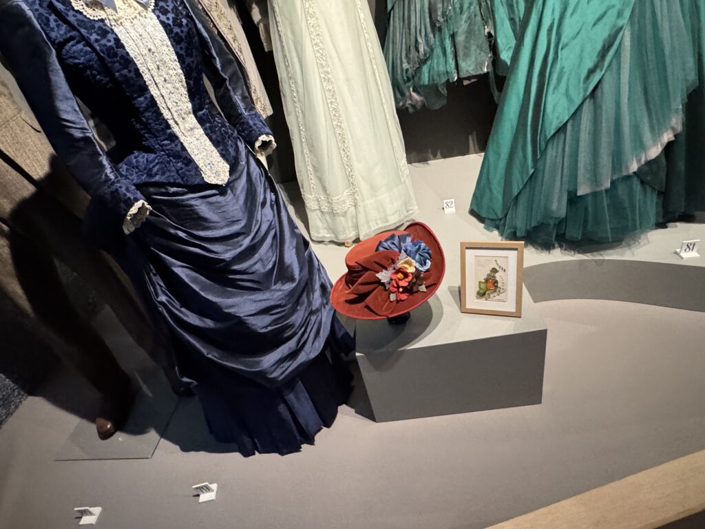 В маленьком зале на первом этаже был стенд с рабочими инструментами костюмеров и историческая линия.