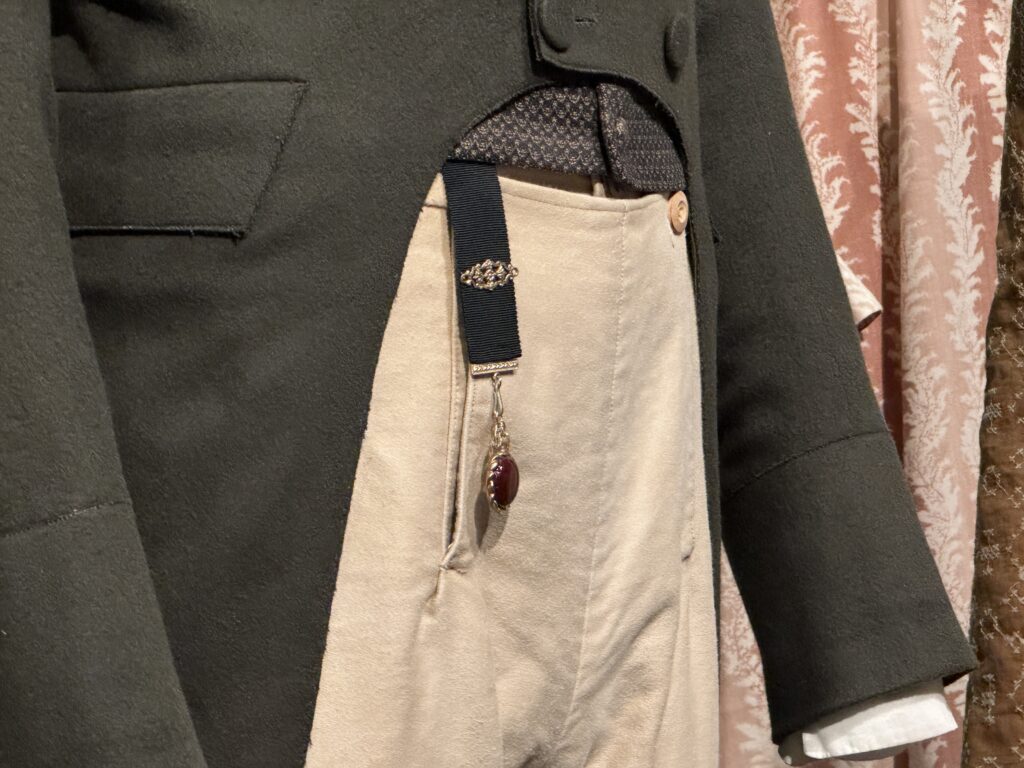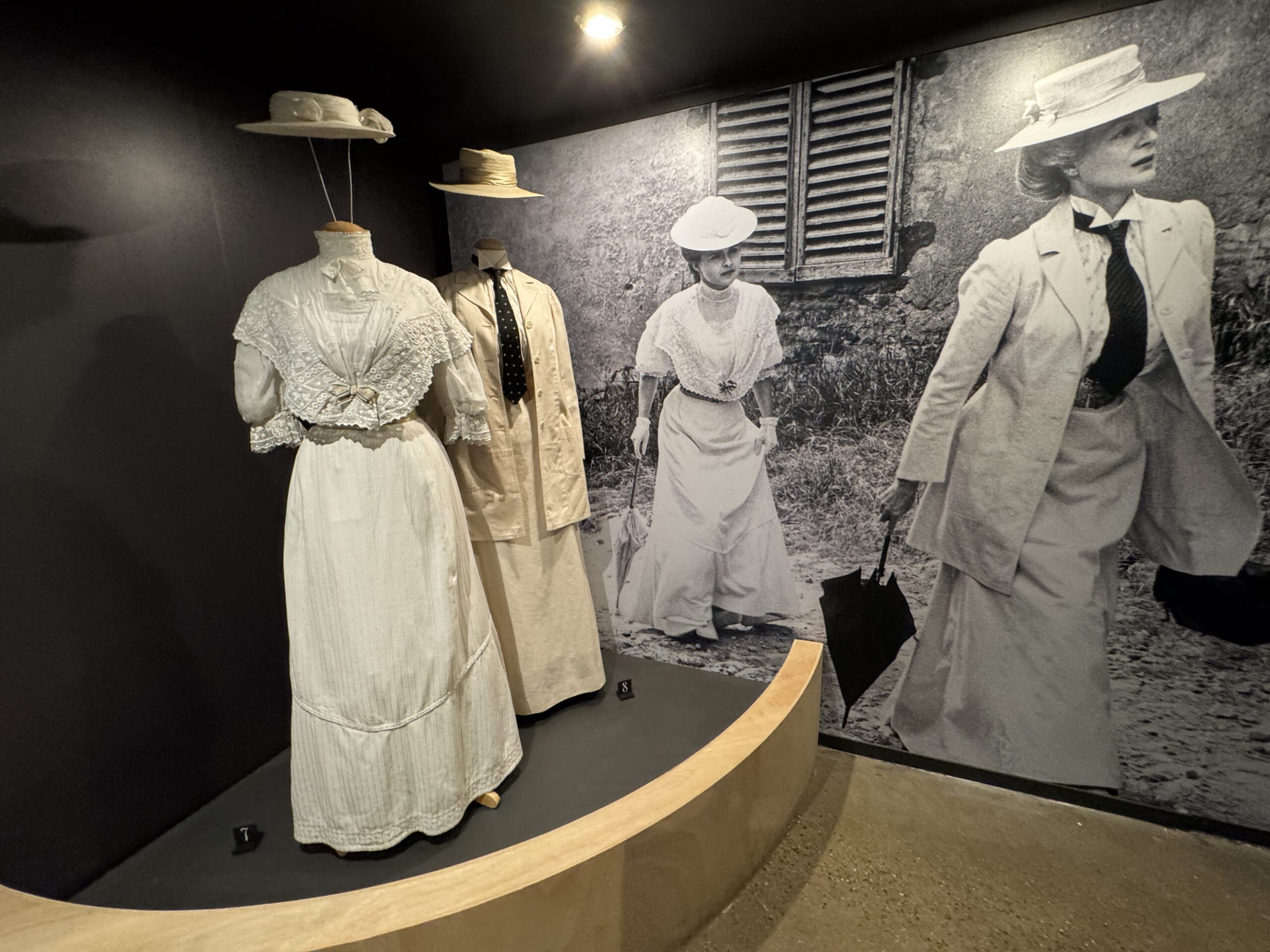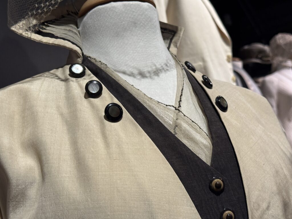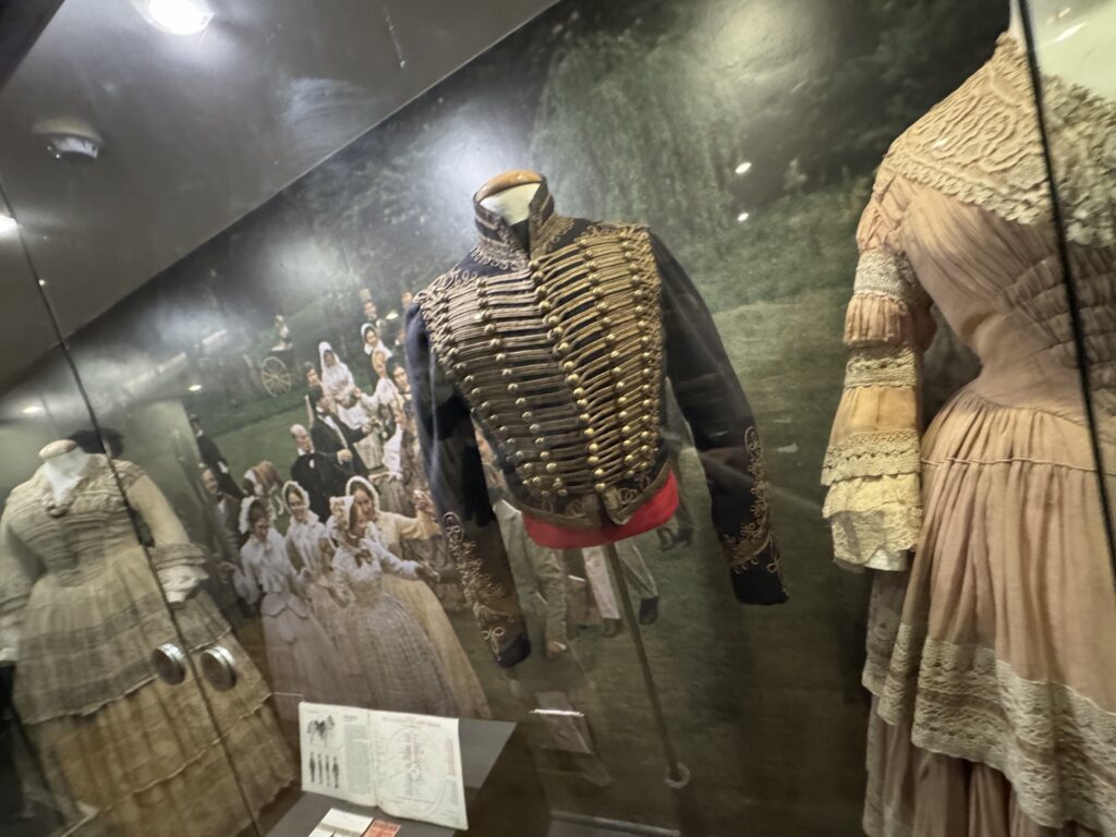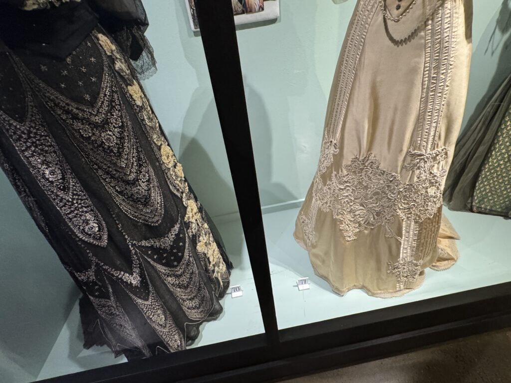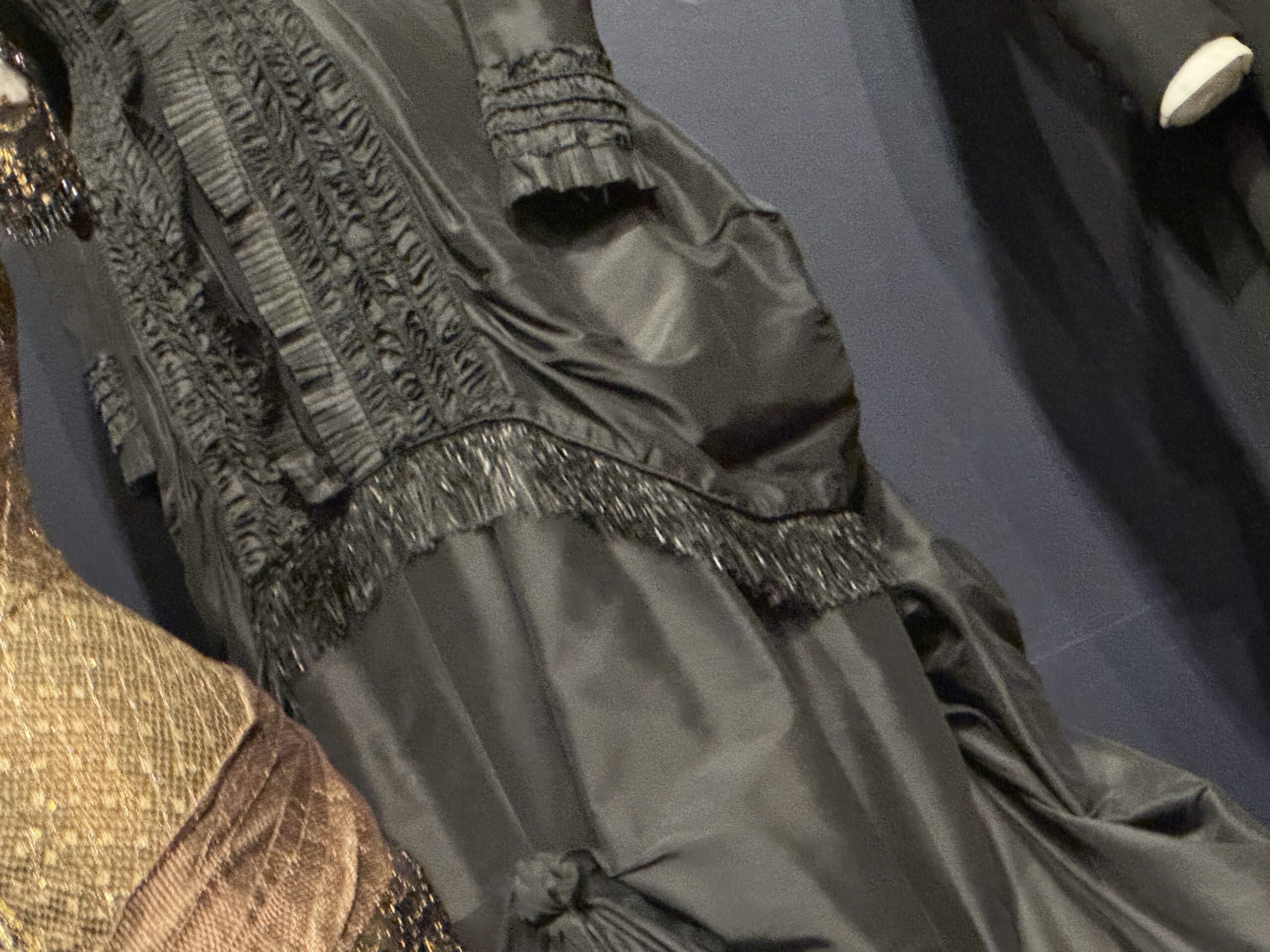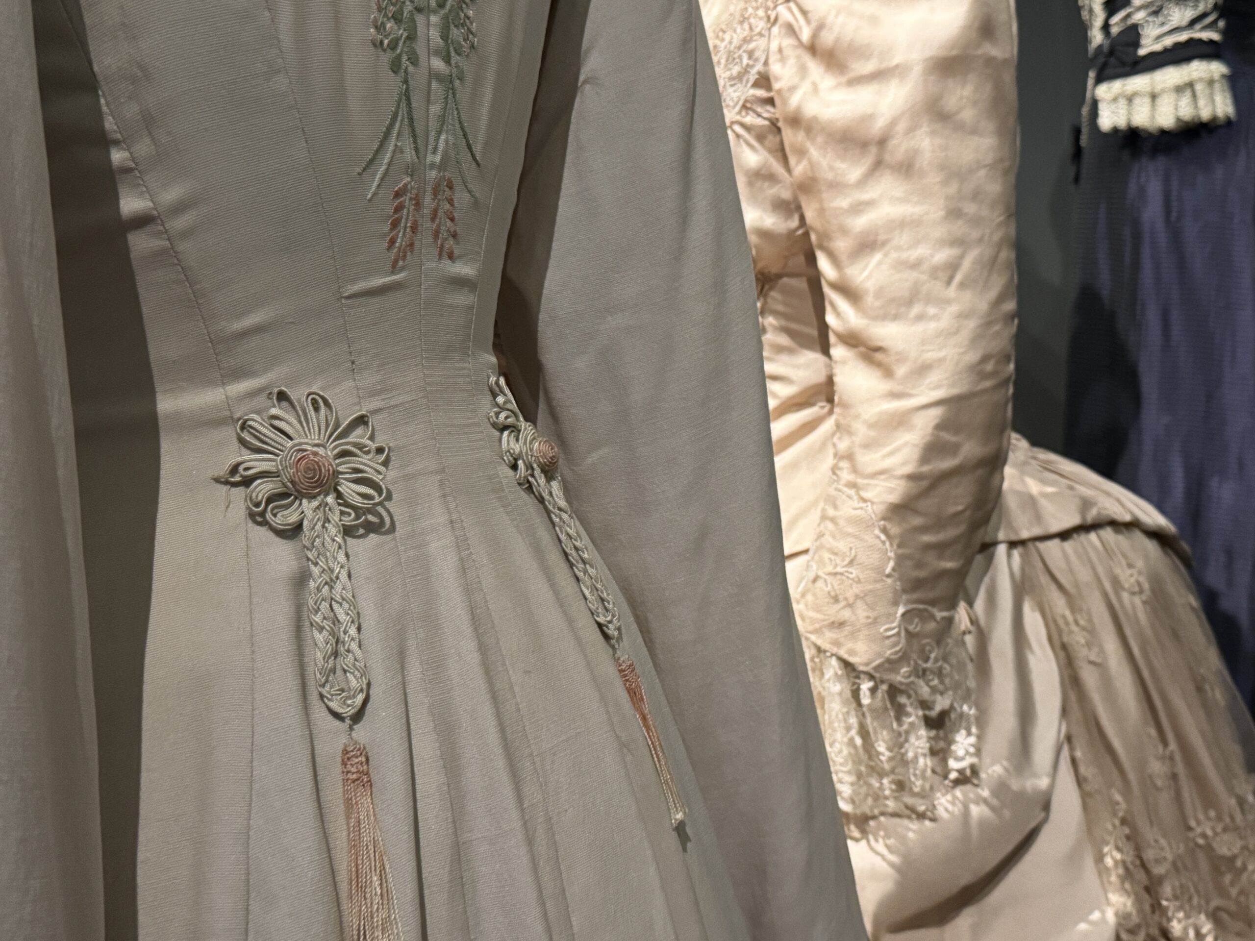 В маленьком зале на первом этаже был стенд с рабочими инструментами костюмеров и историческая линия.