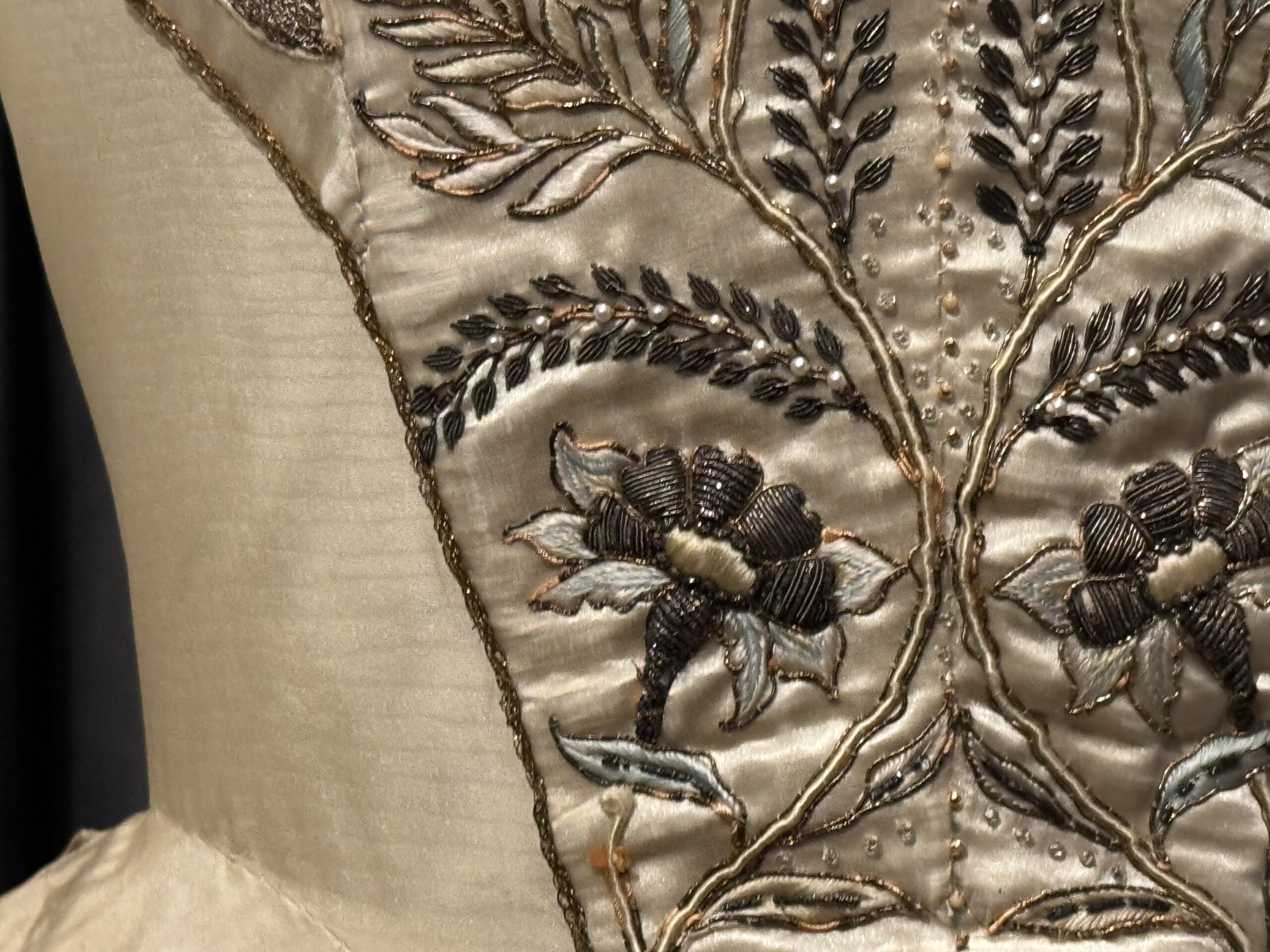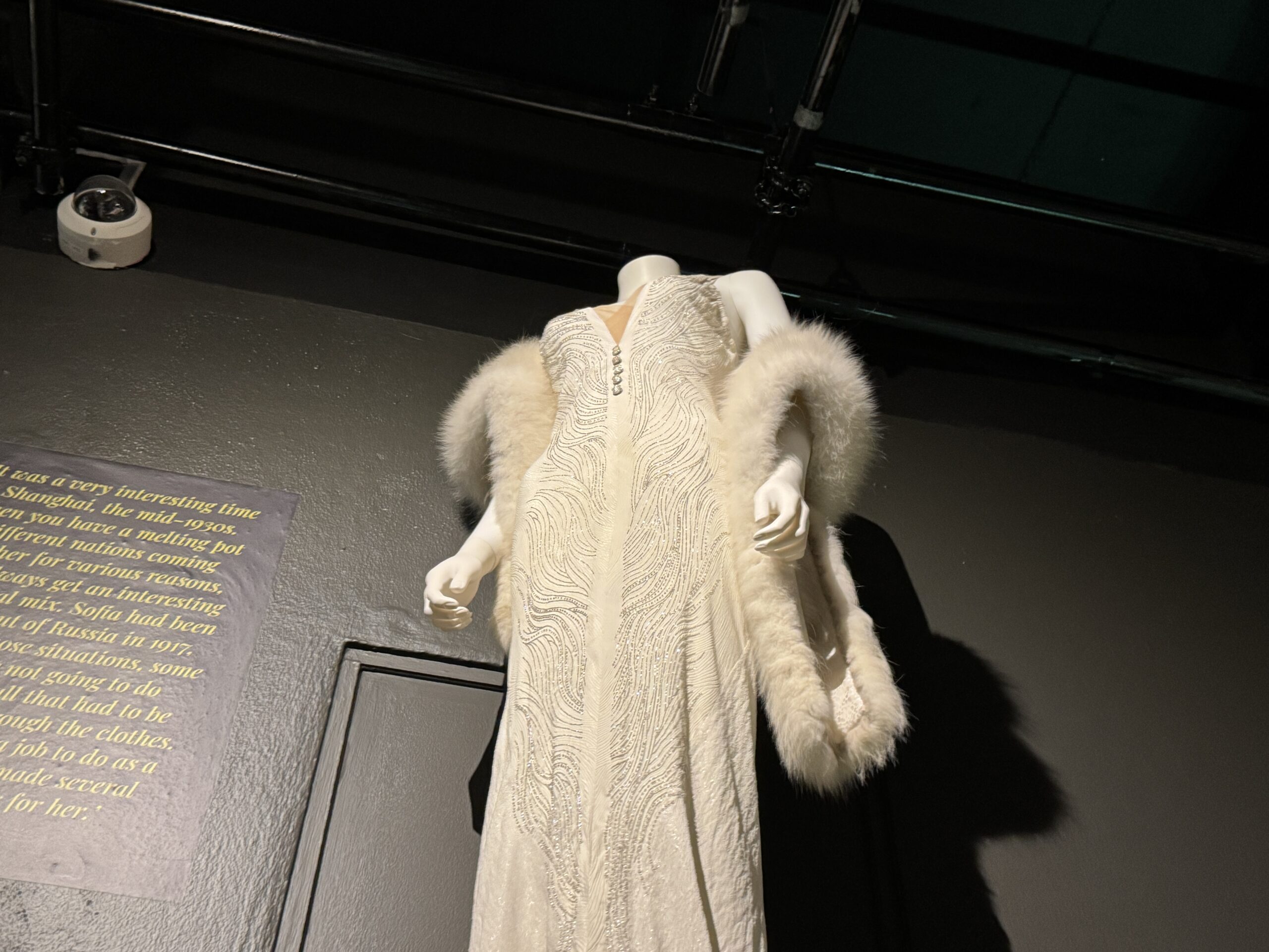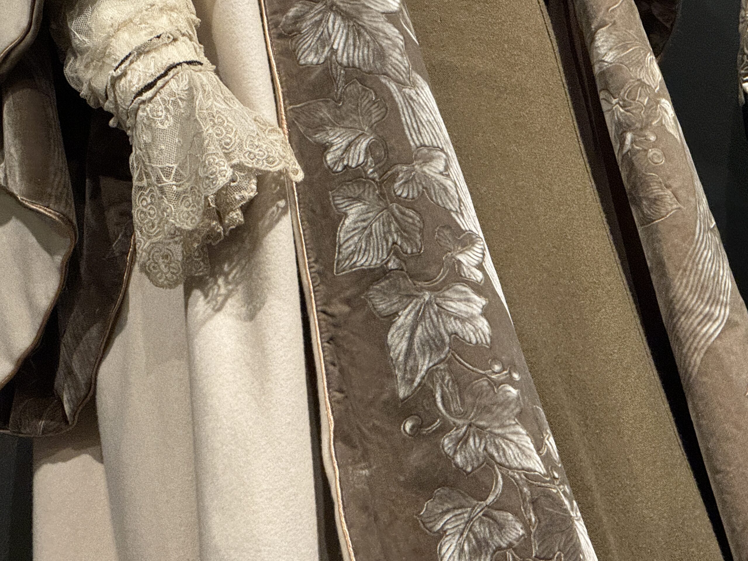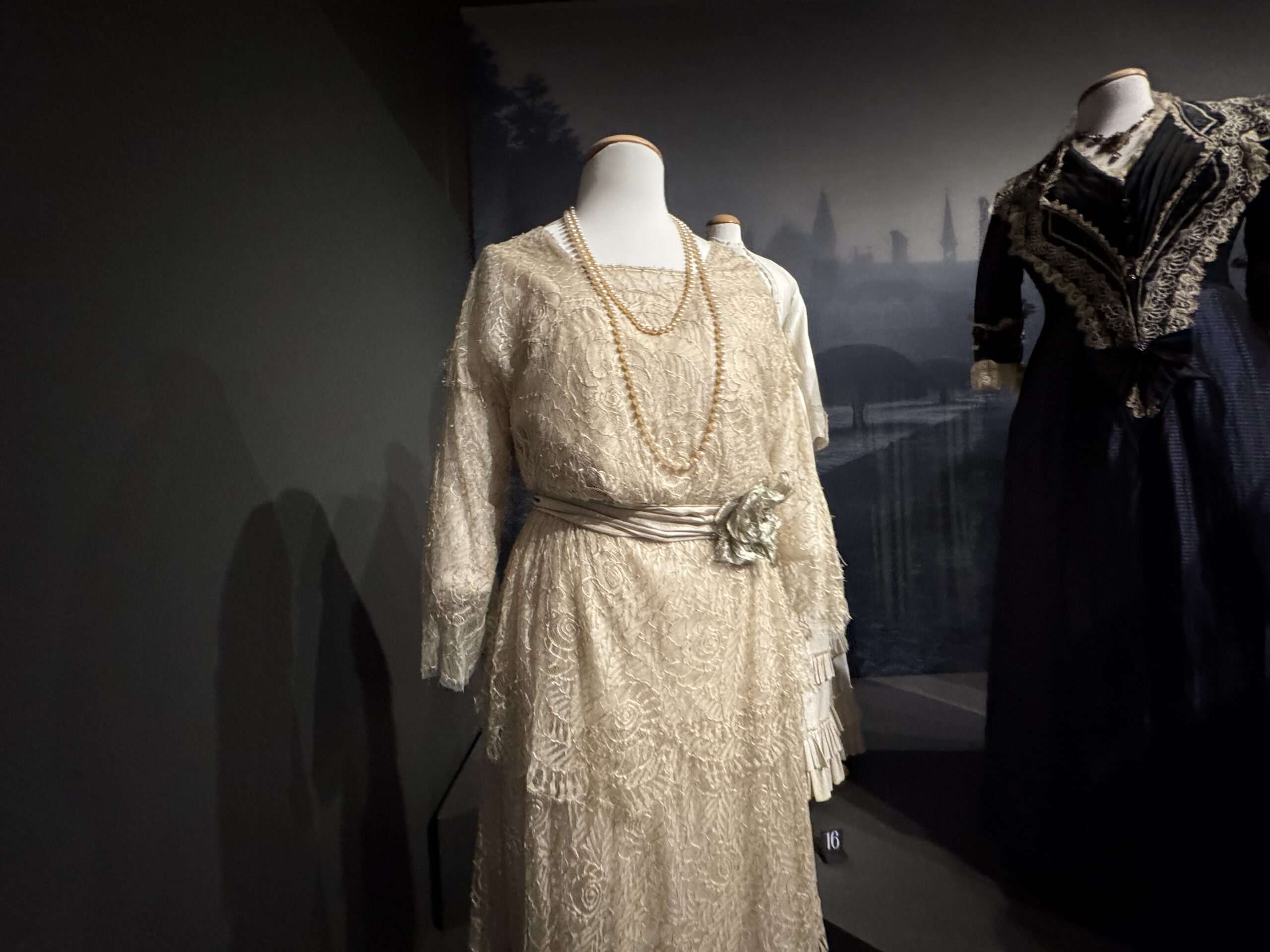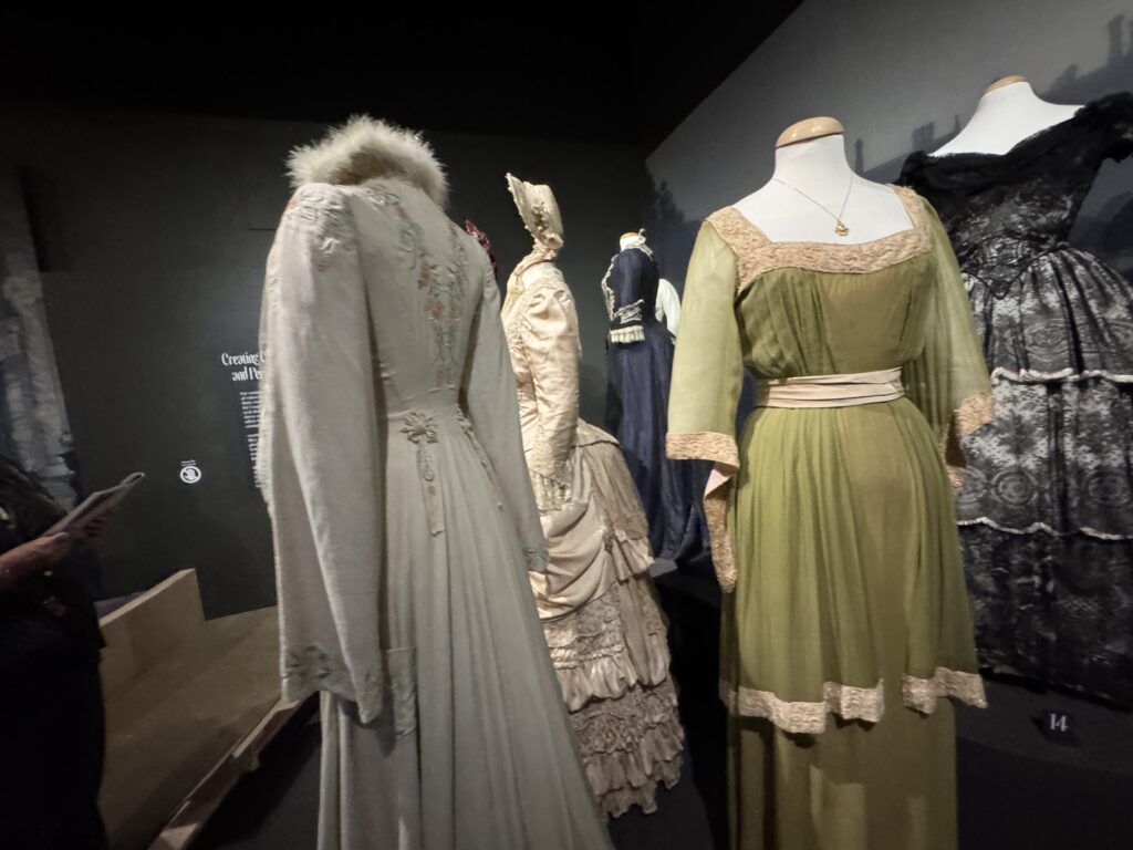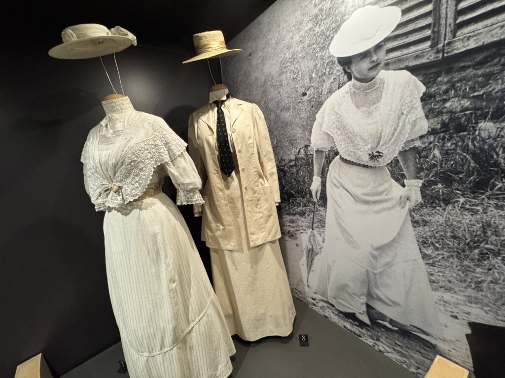 В маленьком зале на первом этаже был стенд с рабочими инструментами костюмеров и историческая линия.