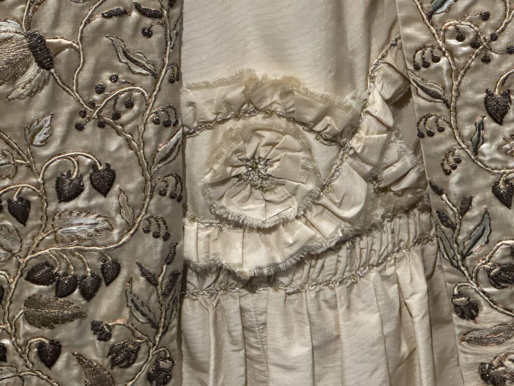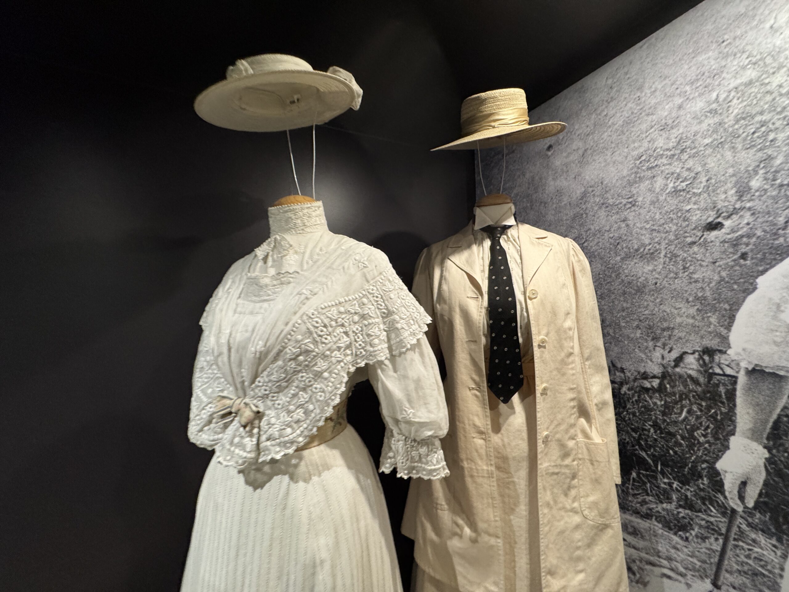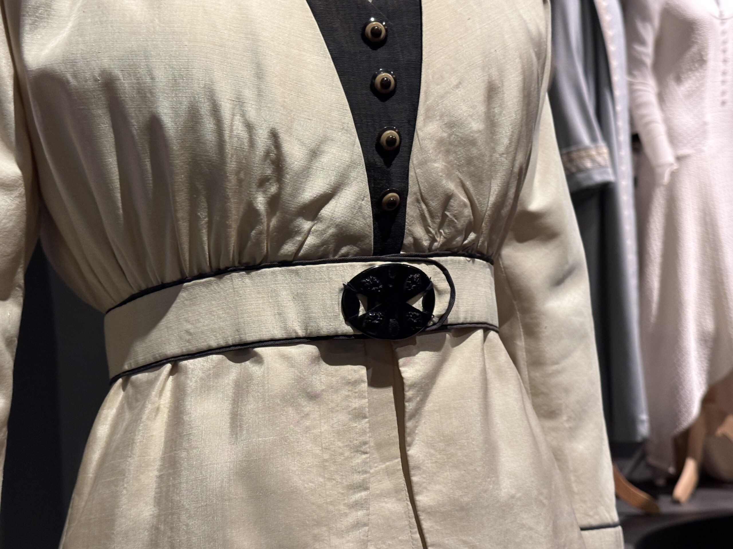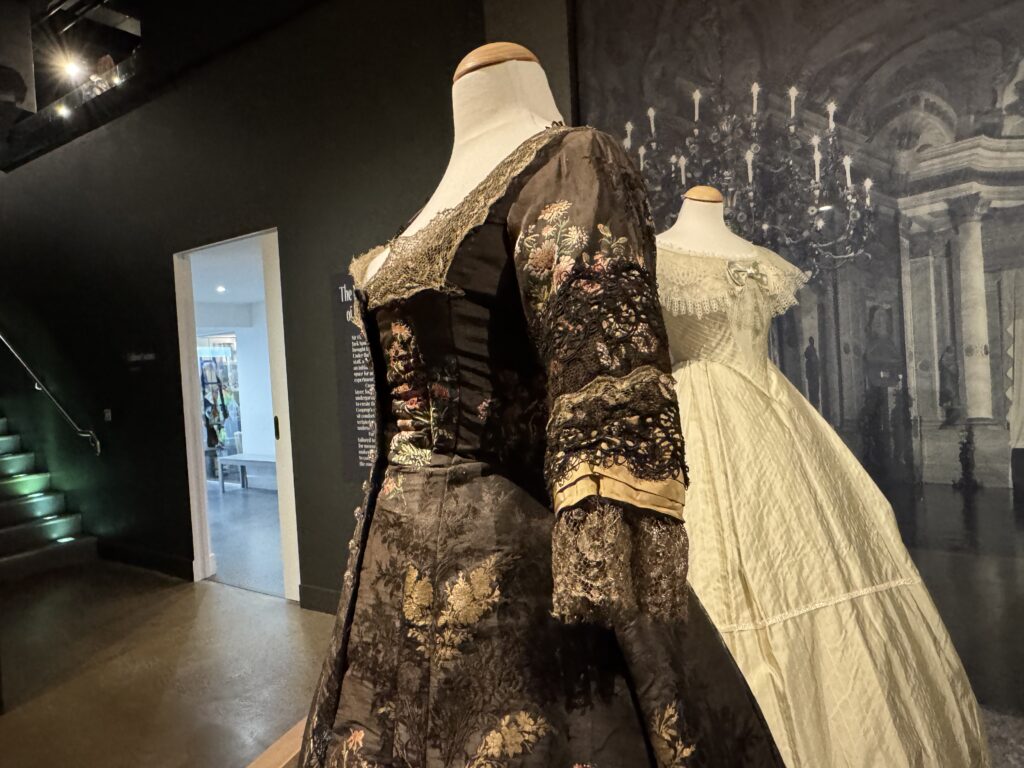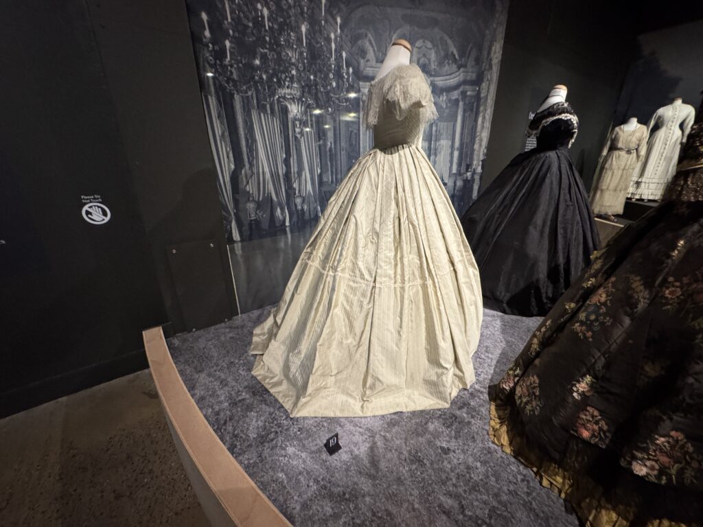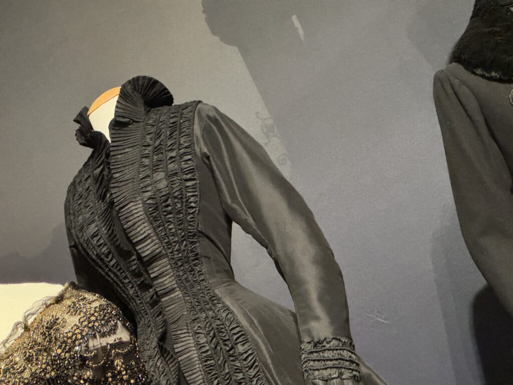В маленьком зале на первом этаже был стенд с рабочими инструментами костюмеров и историческая линия.