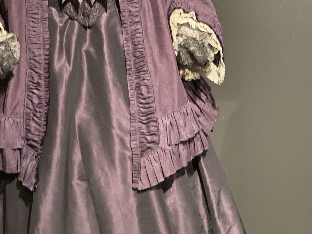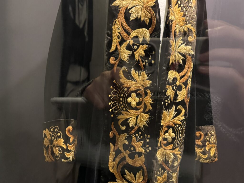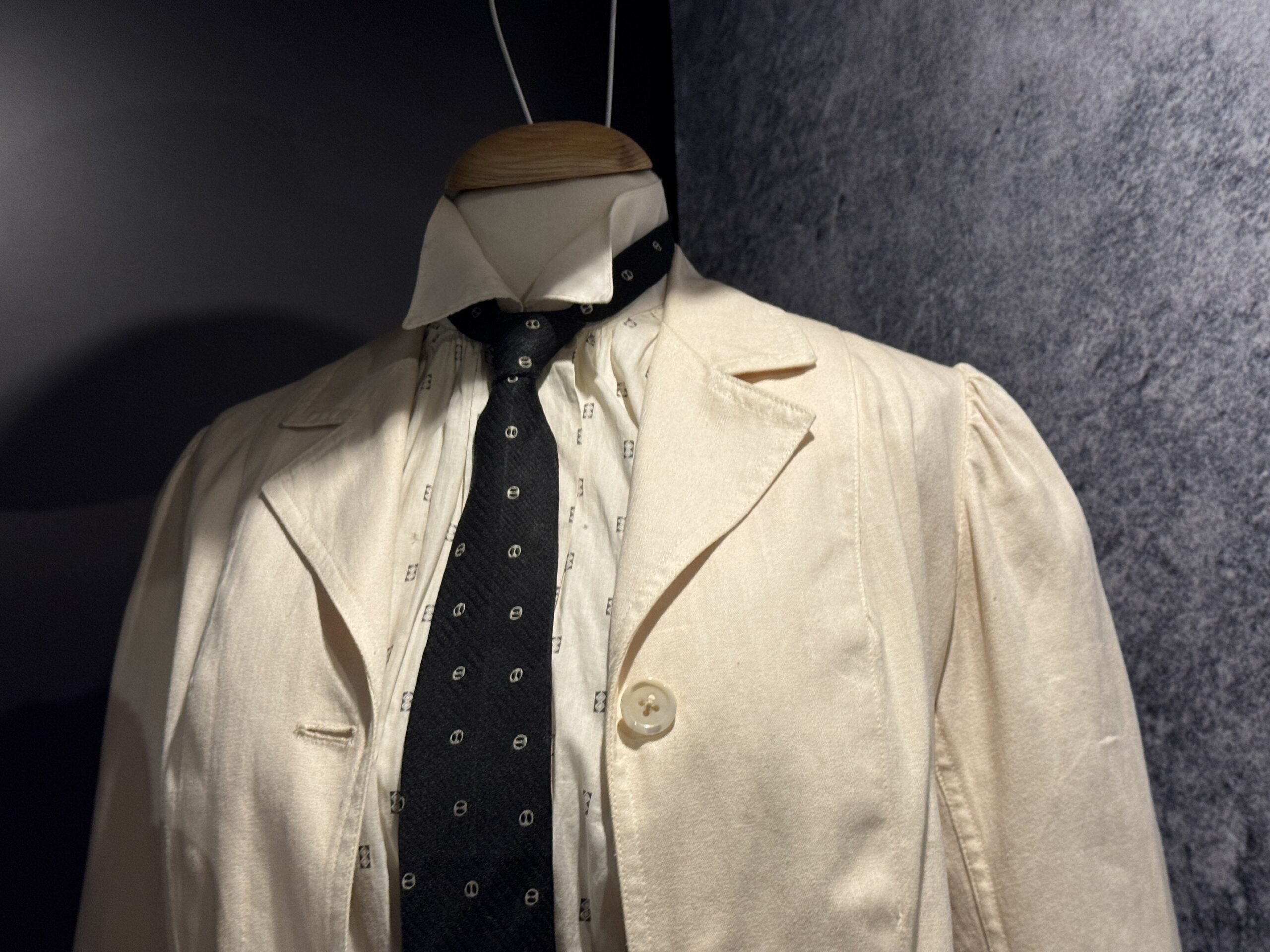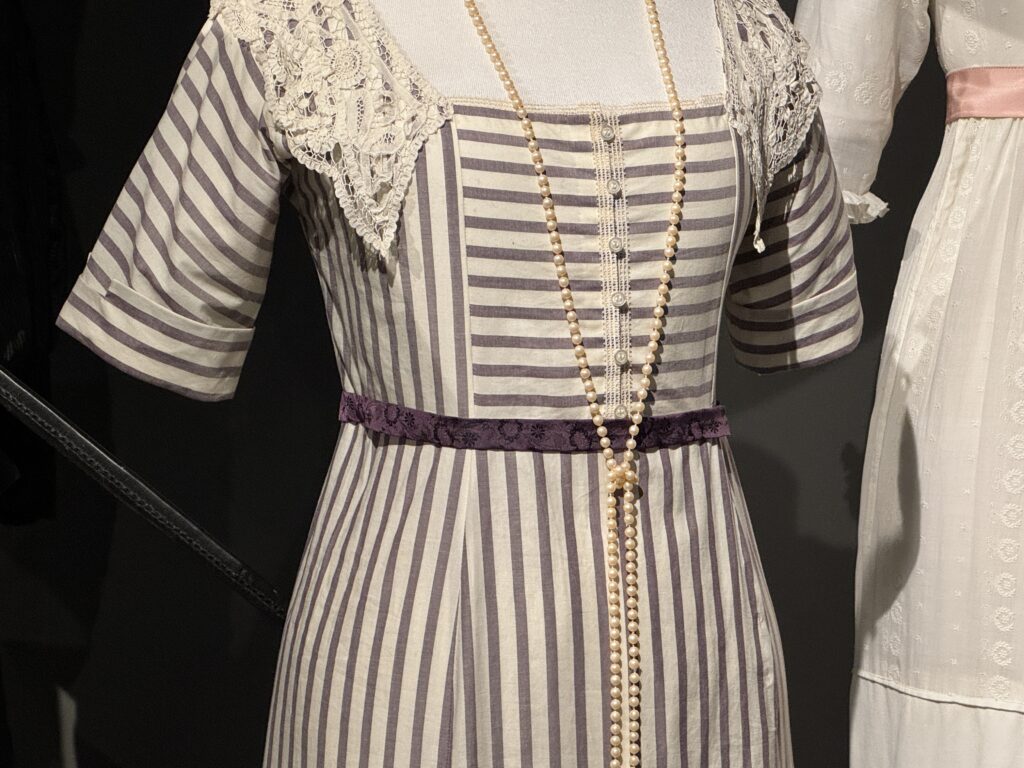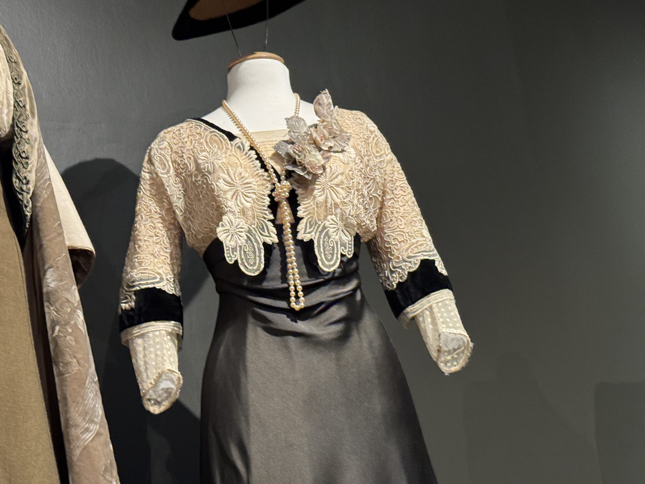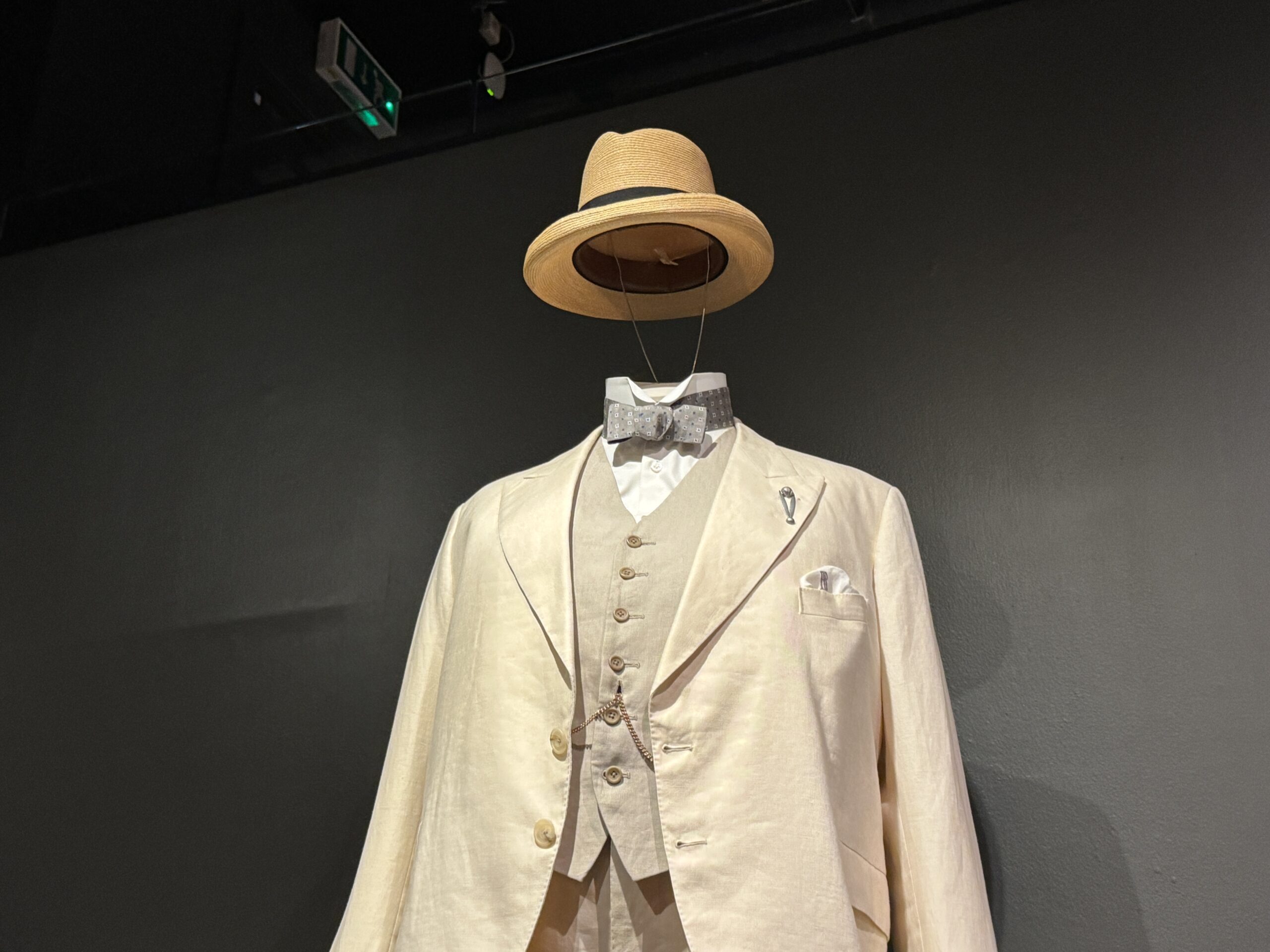 В маленьком зале на первом этаже был стенд с рабочими инструментами костюмеров и историческая линия.