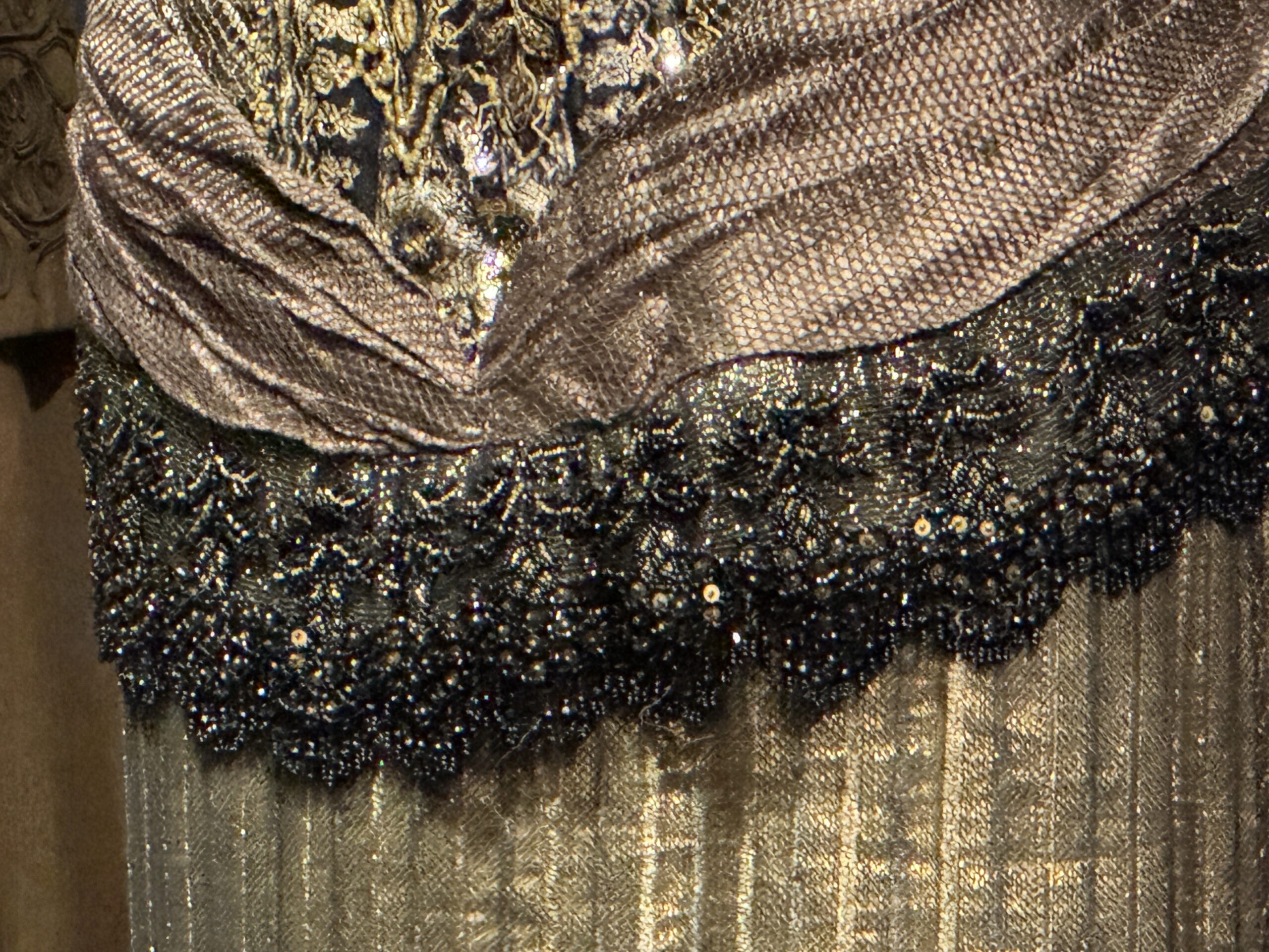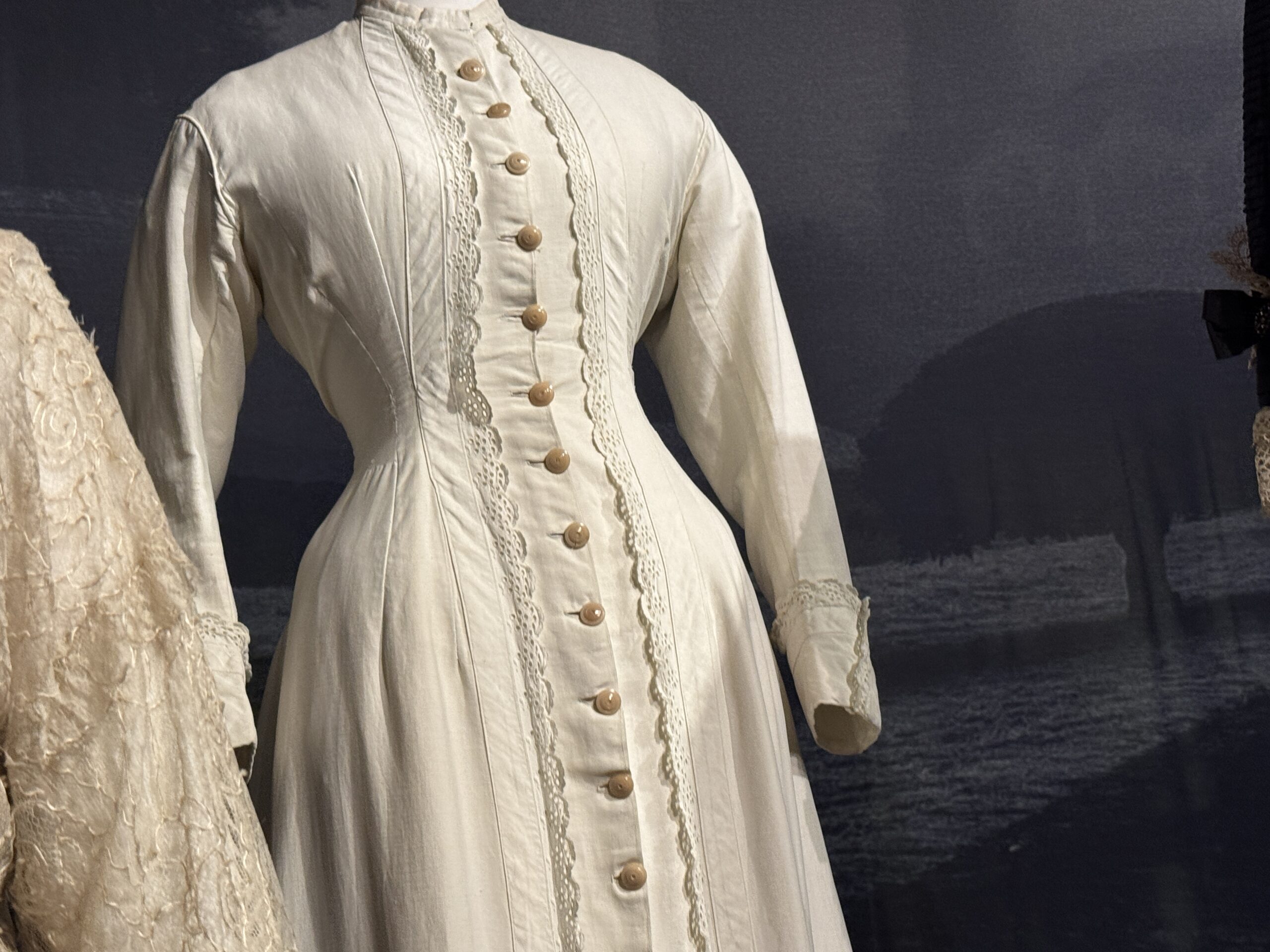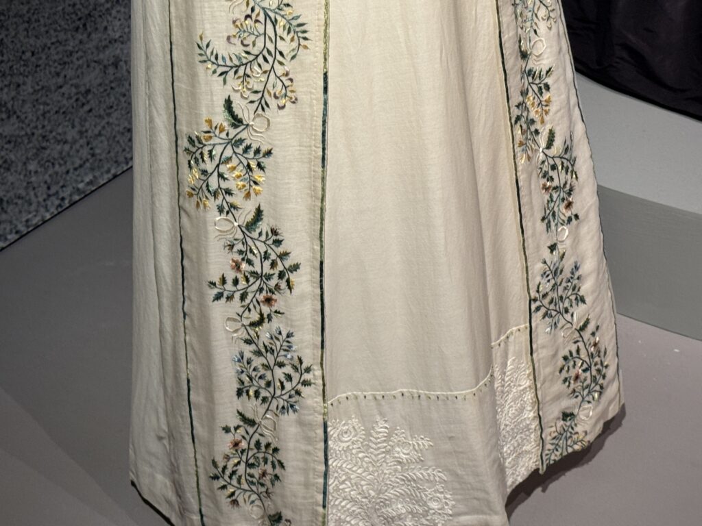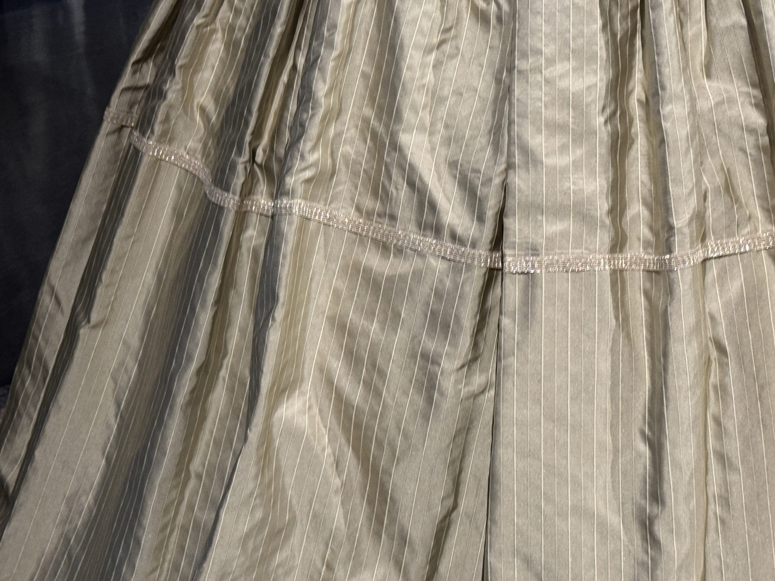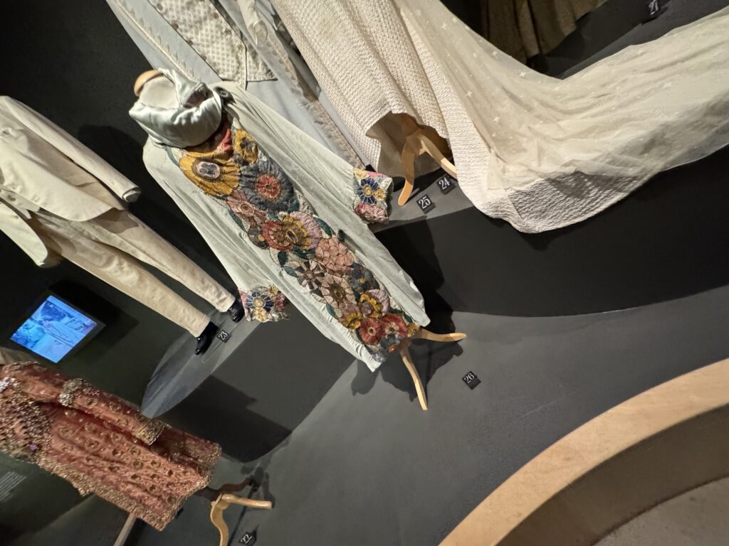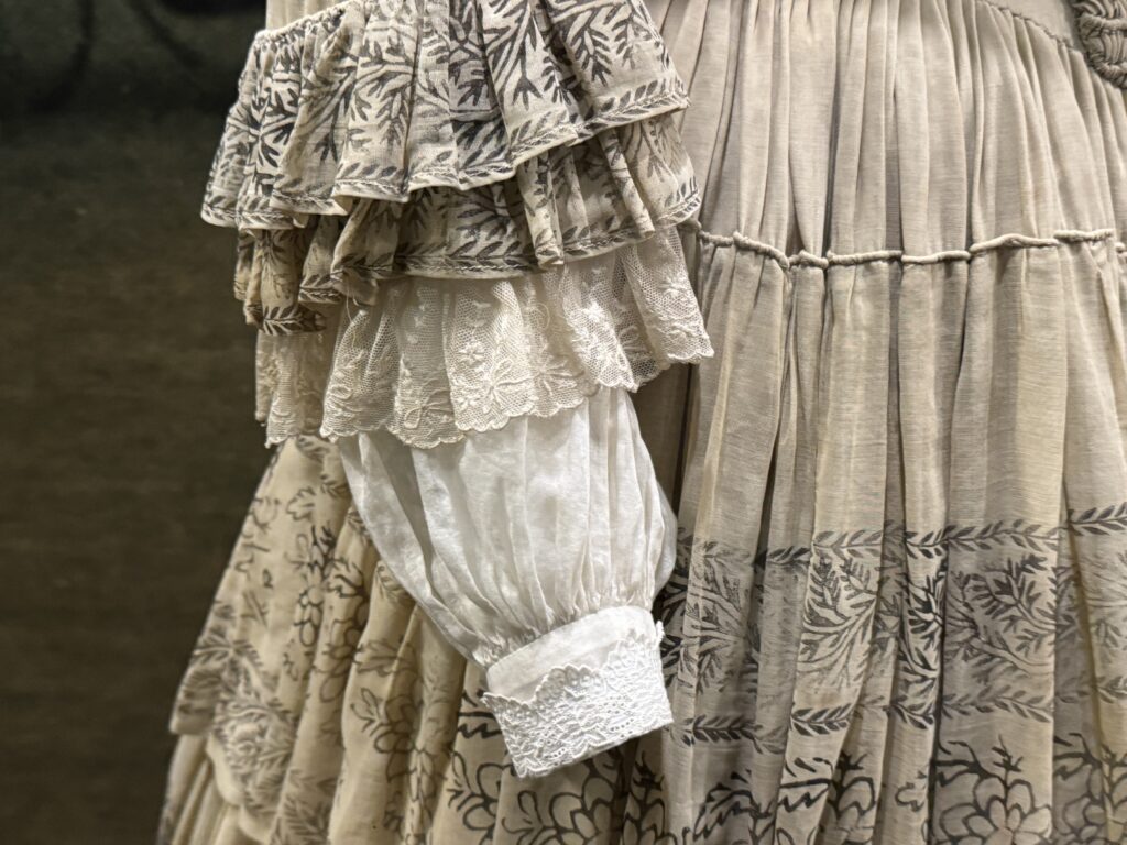 В маленьком зале на первом этаже был стенд с рабочими инструментами костюмеров и историческая линия.