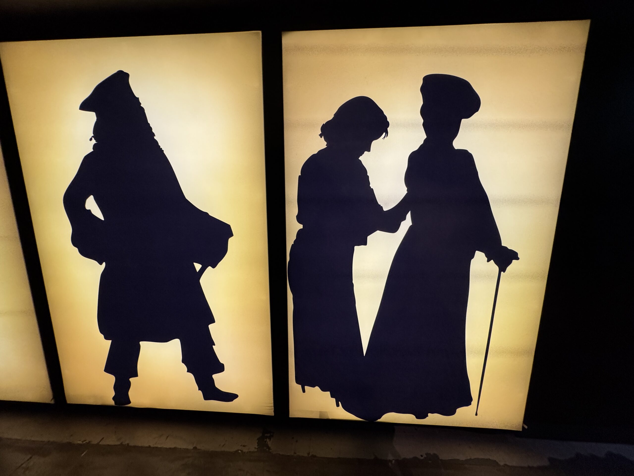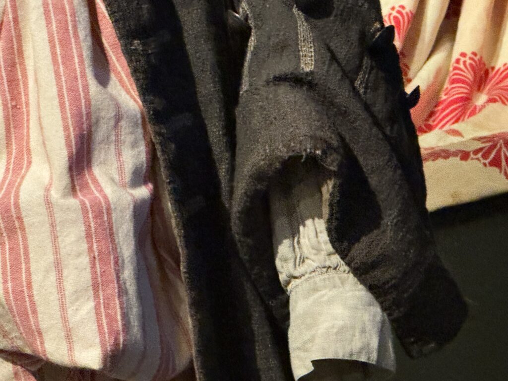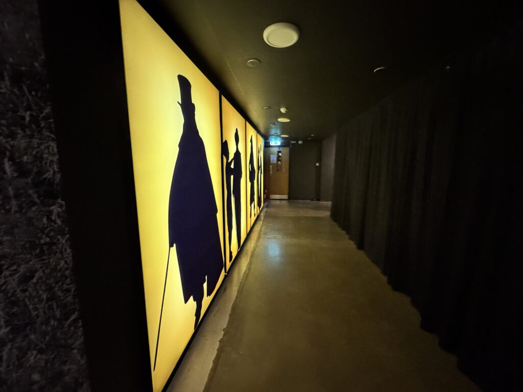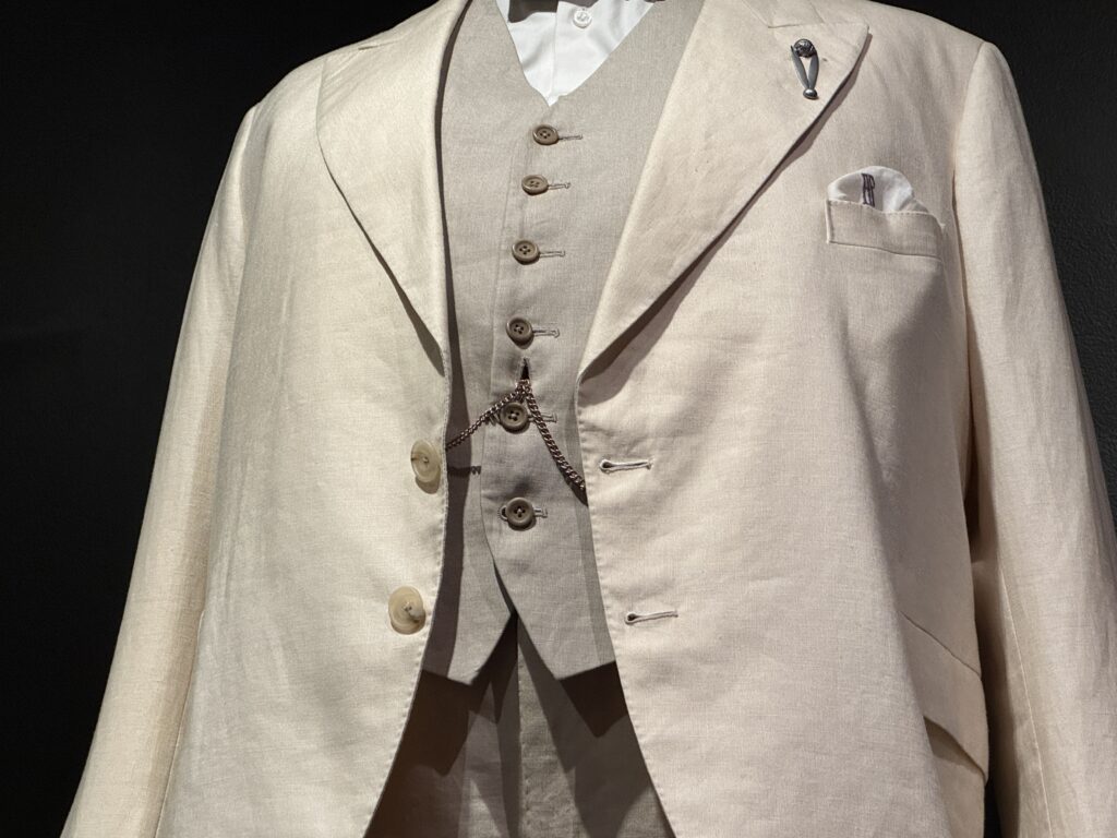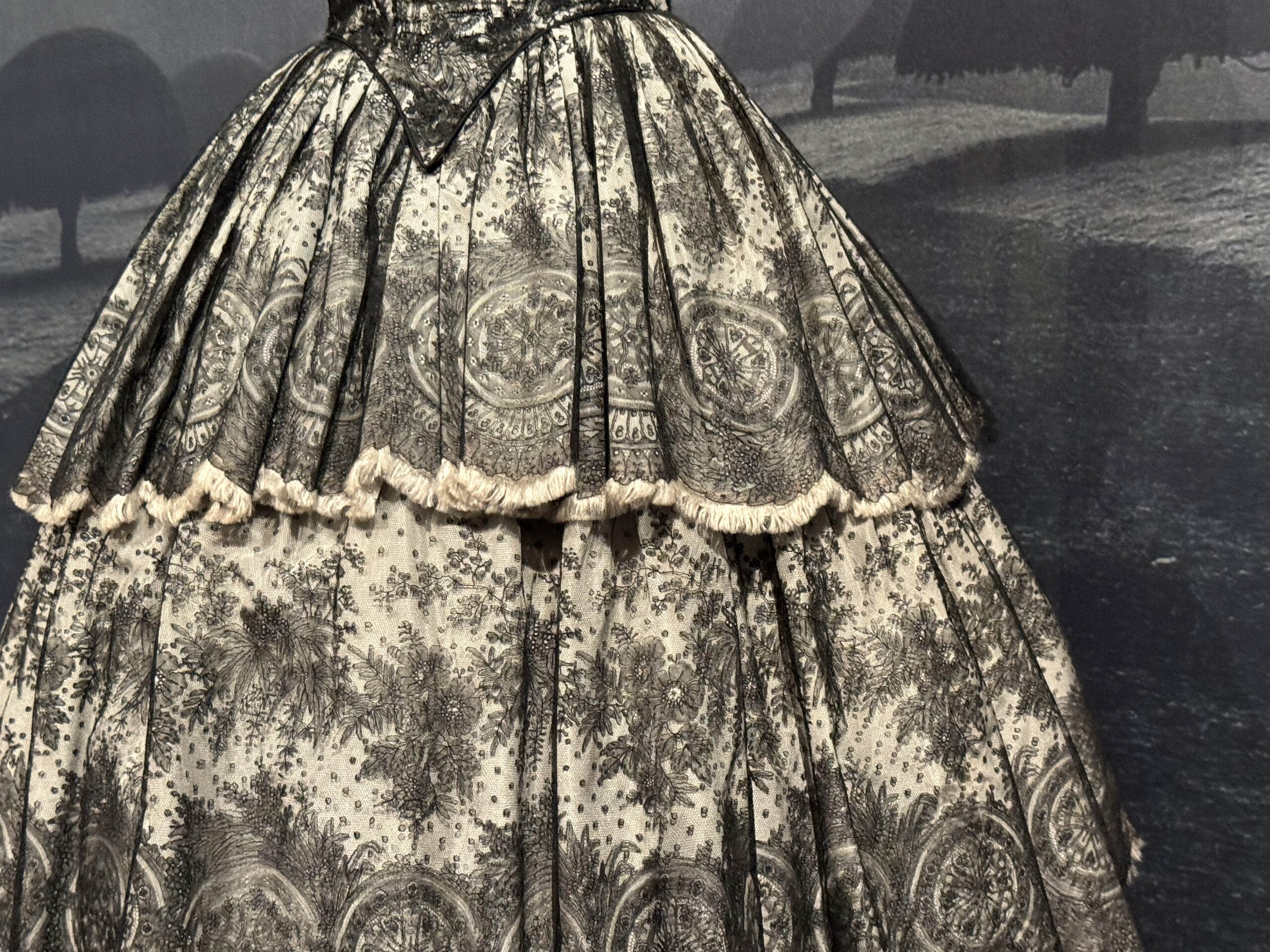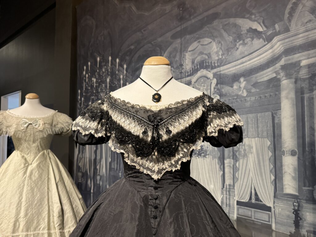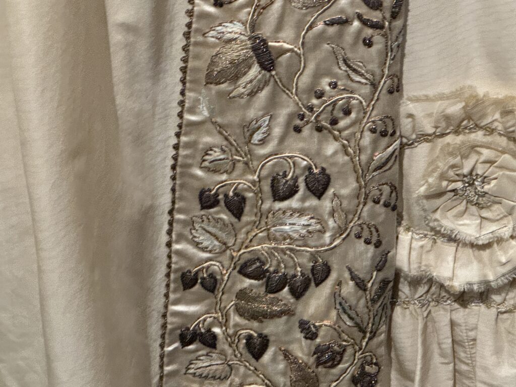 В маленьком зале на первом этаже был стенд с рабочими инструментами костюмеров и историческая линия.