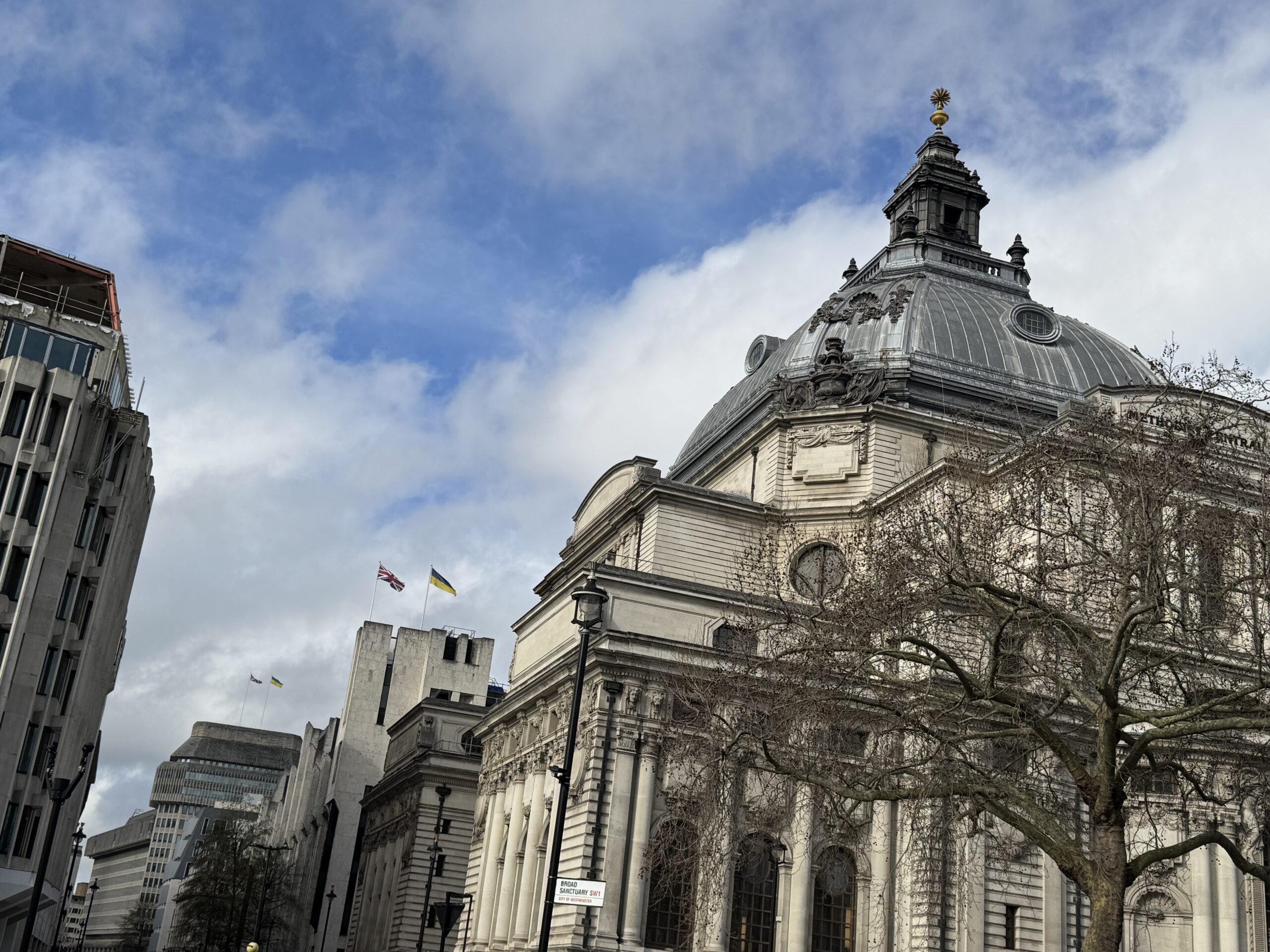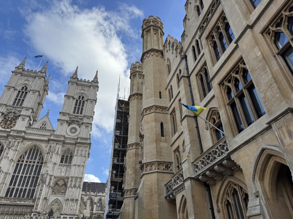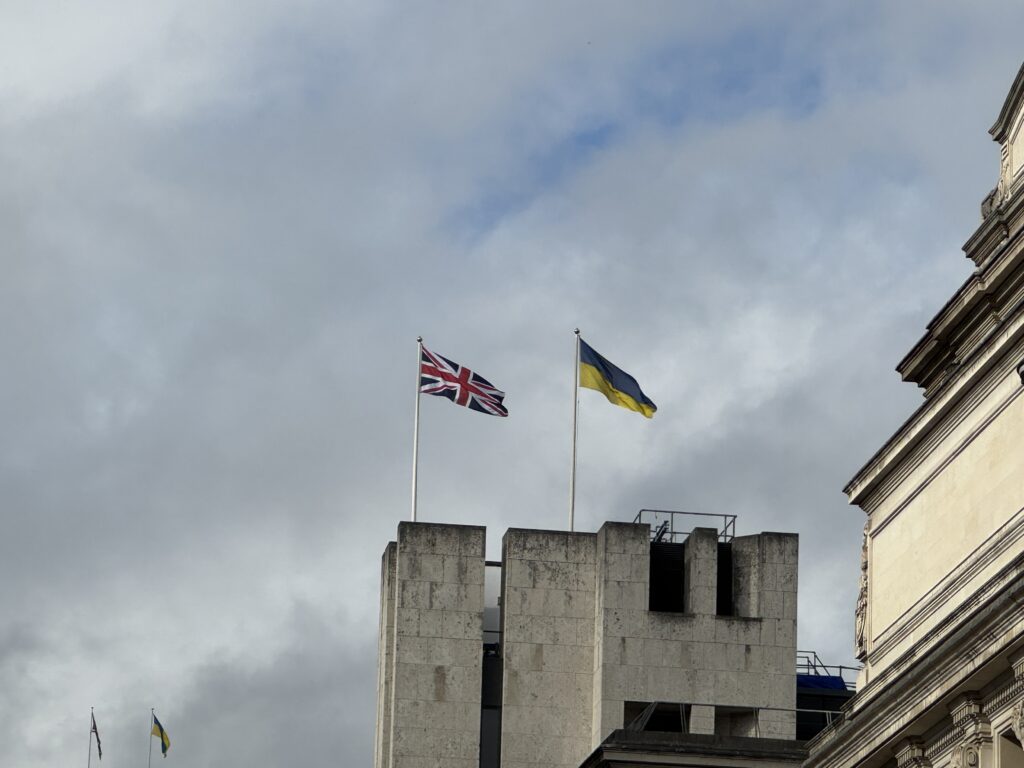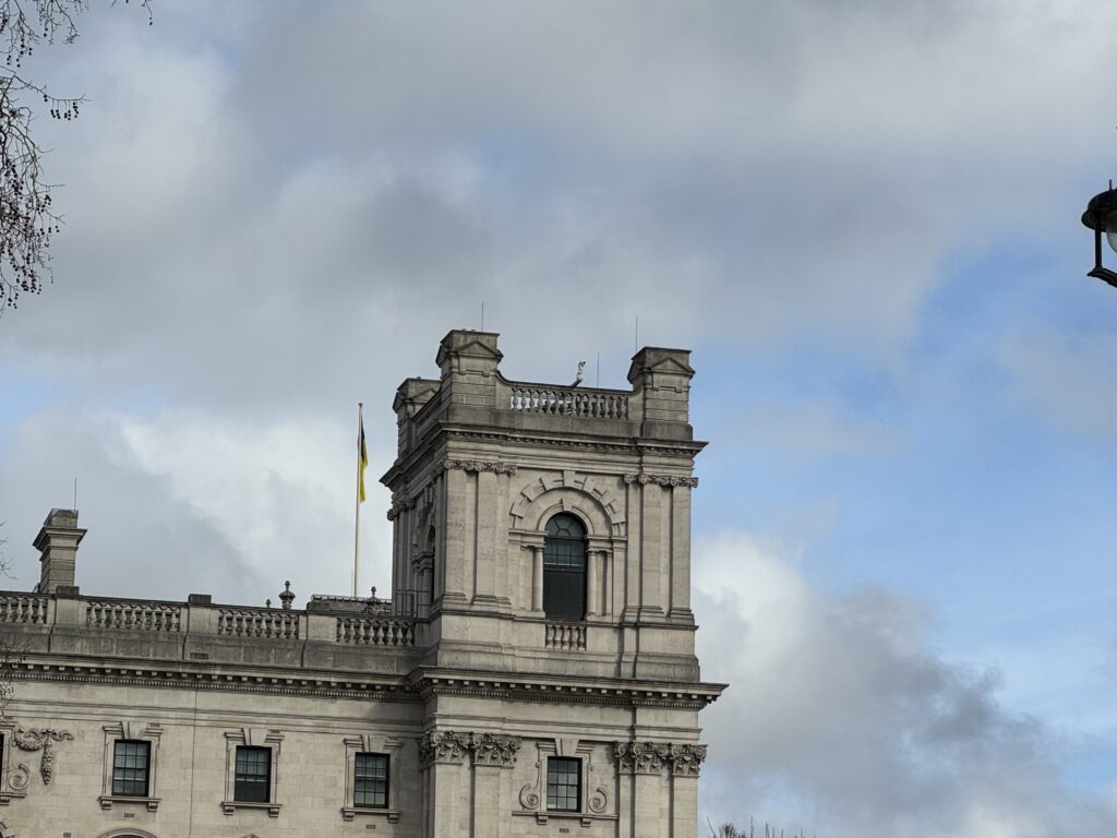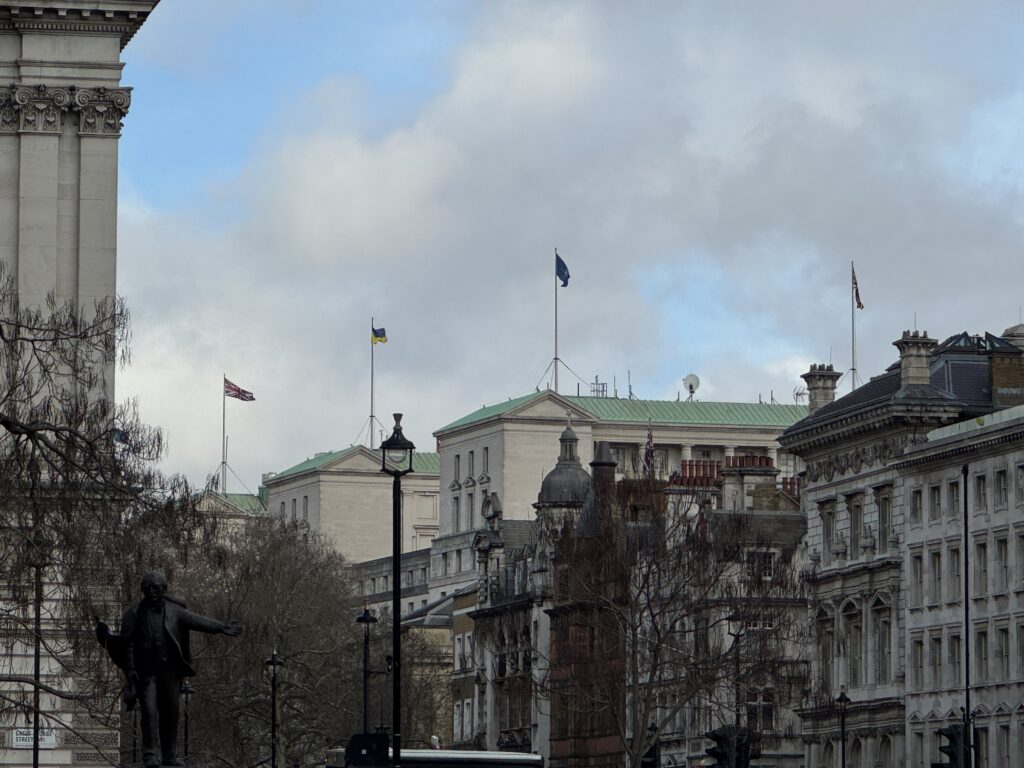 Насамперед у Лондоні мене вразила постійність українських прапорів на державних будівлях. Я багато разів бачила їх раніше та фотографувала зараз.