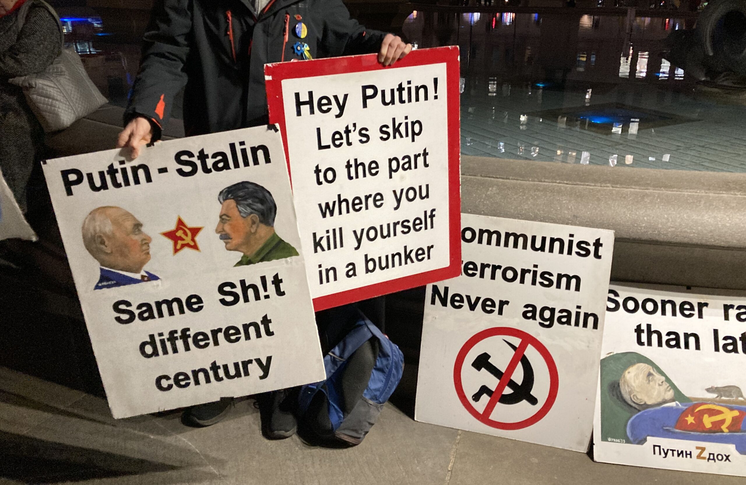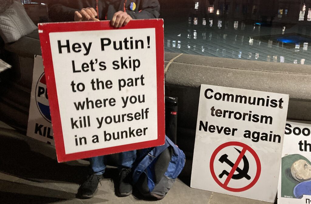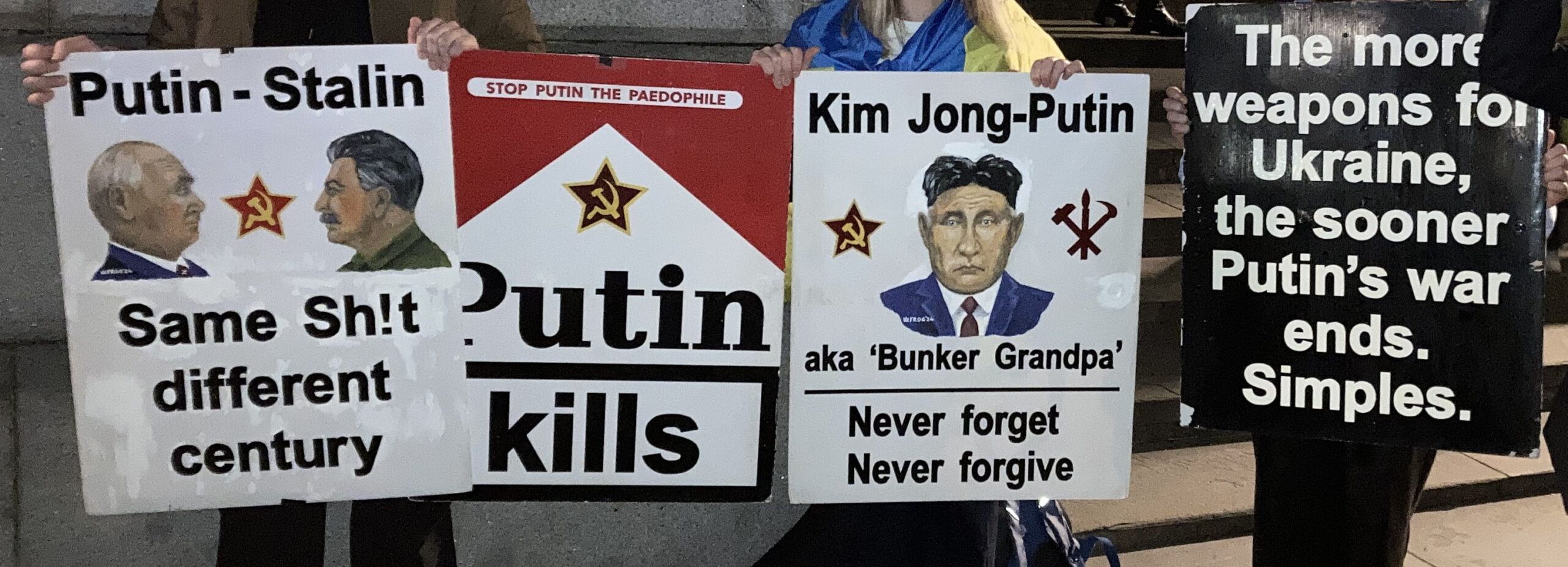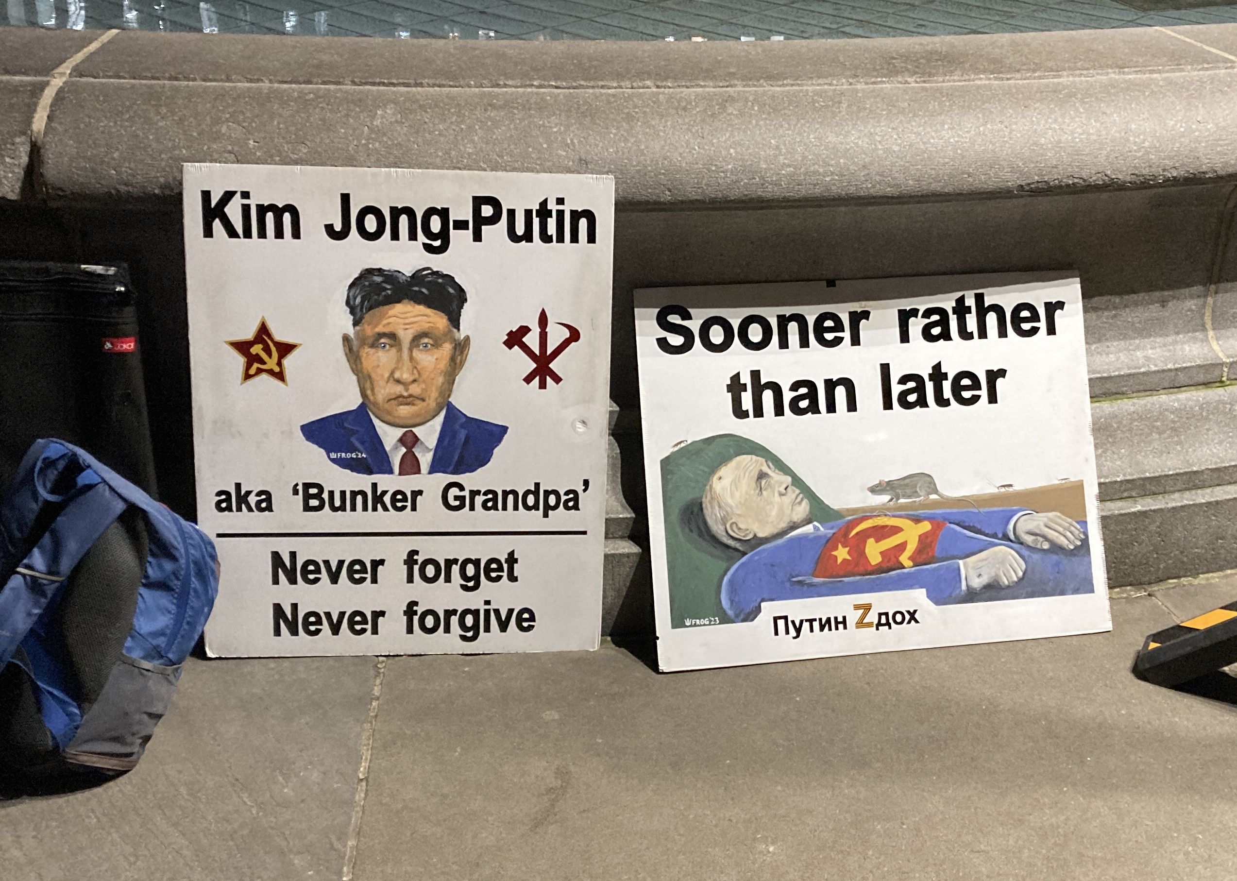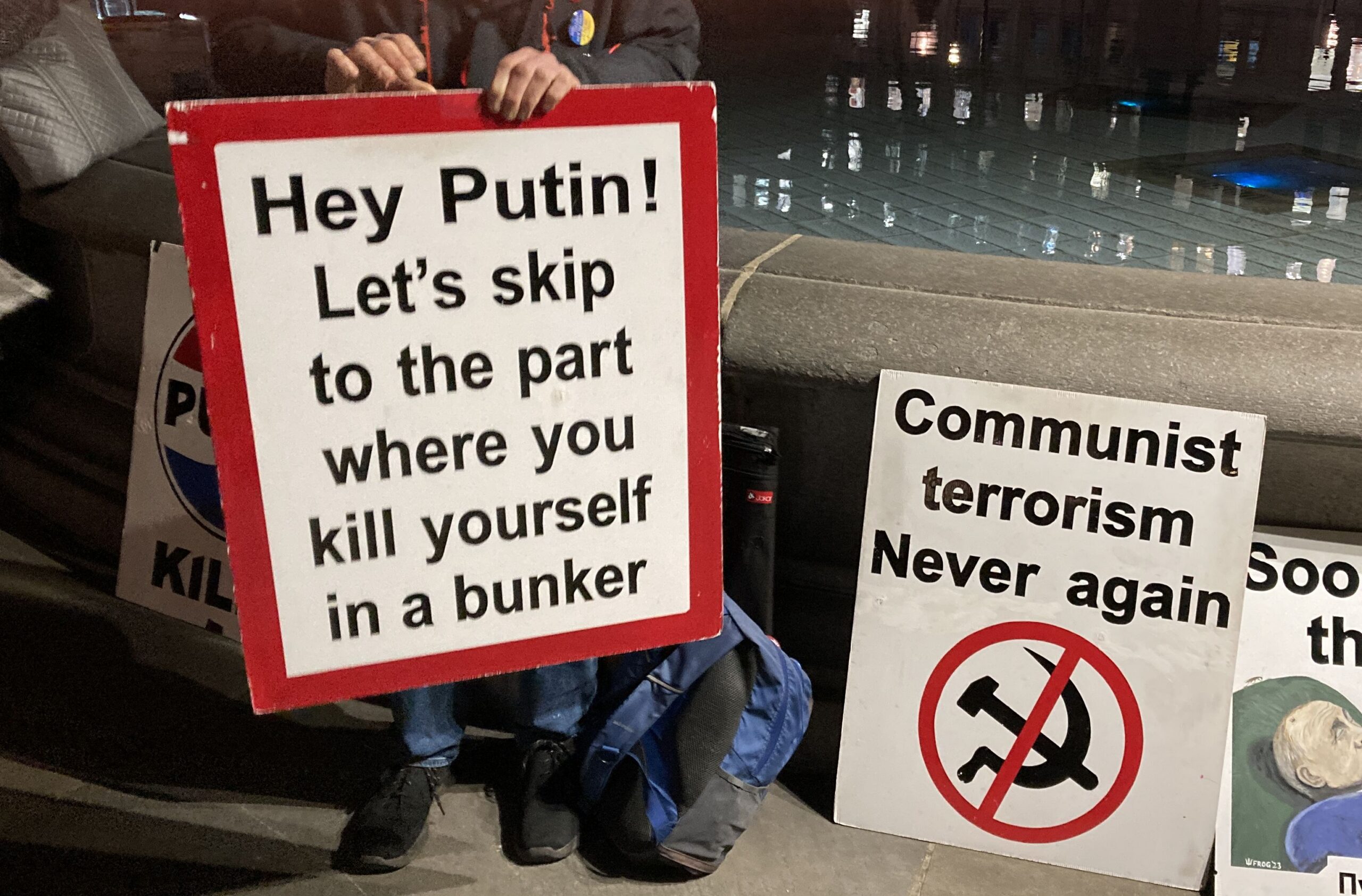На сцені внизу висів плакат: «Коли останній український солдат паде, путін прийде за вами, леді та джентельмени». Плакат відображав загальну думку учасників заходу, оскільки цю ідею багаторазово, десятки разів повторили зі сцени різні апеланти, зокрема представники Британії.